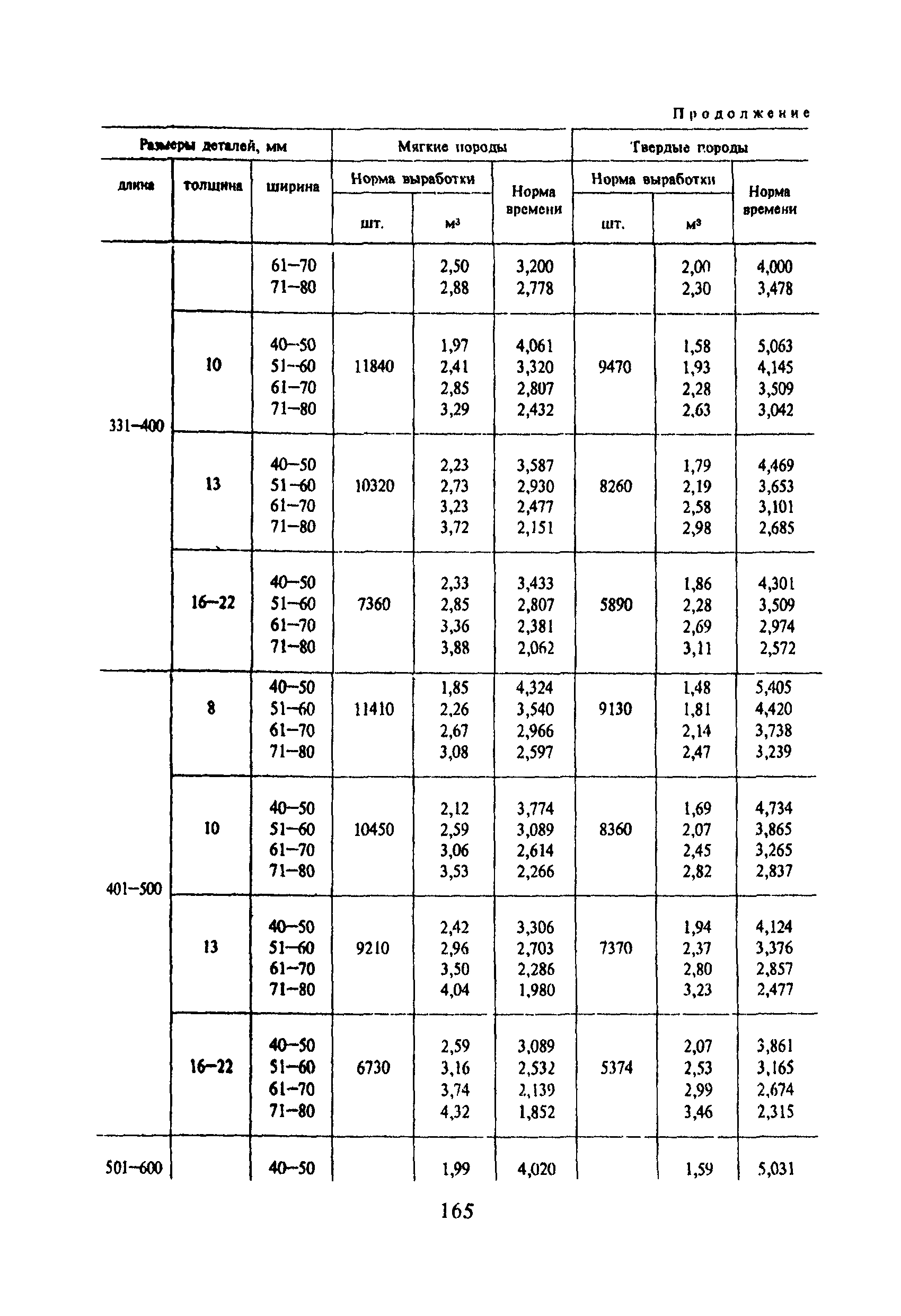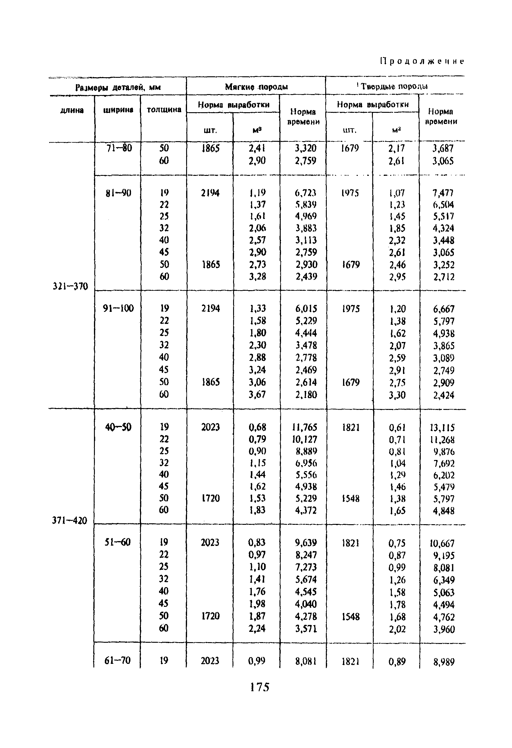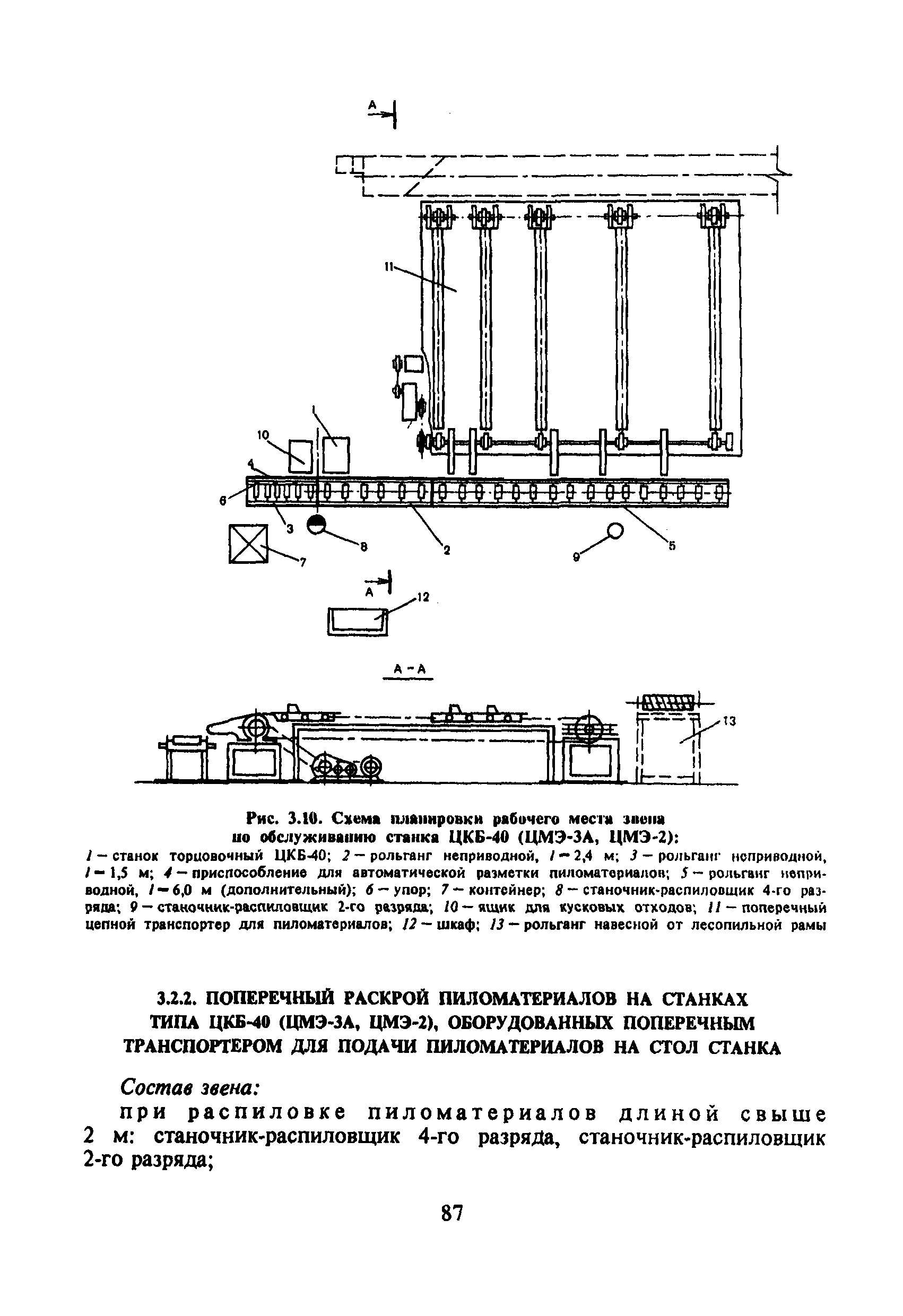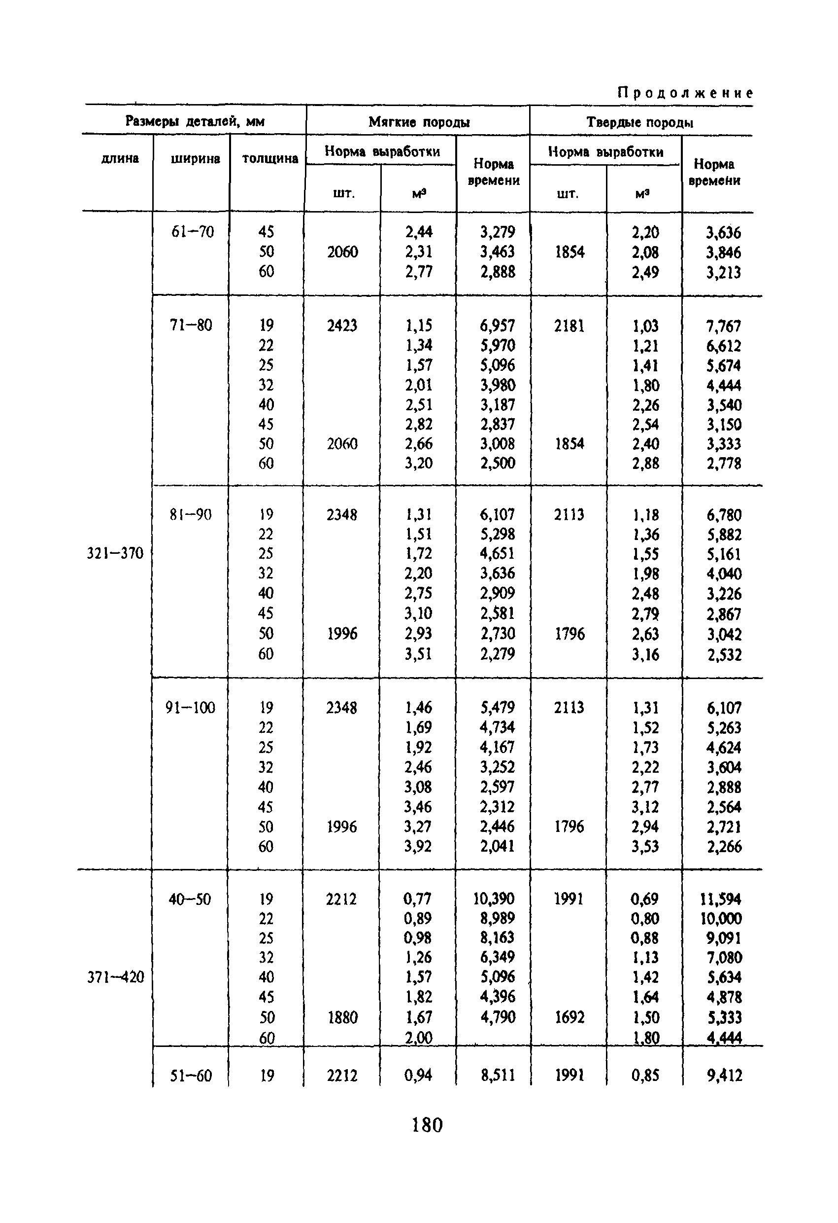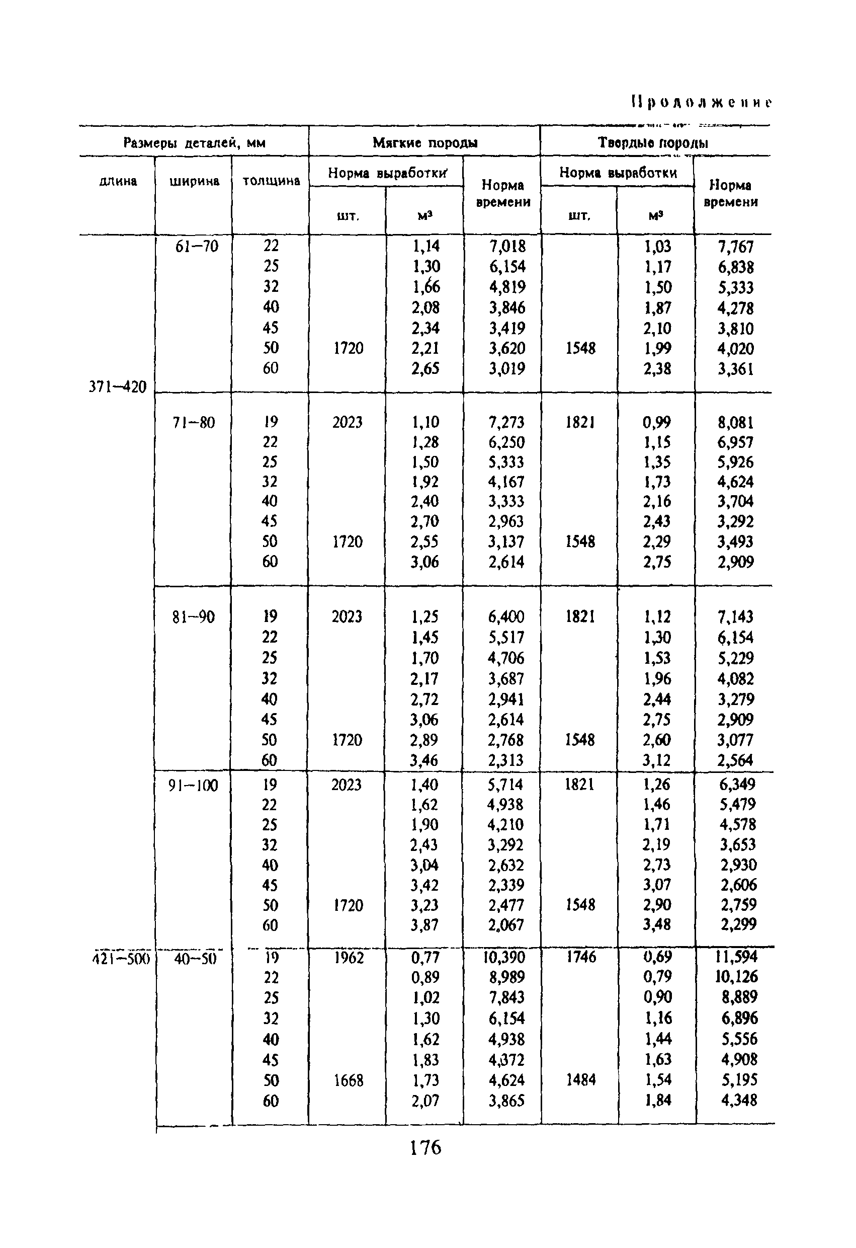 Типовые нормы выработки и времени на лесопильные работы (Работы, выполняемые на одноэтажных лесопильных рамах и круглопильных станках)| Статус: | справочные материалы, мп, тпр | | Название рус.: | Типовые нормы выработки и времени на лесопильные работы (Работы, выполняемые на одноэтажных лесопильных рамах и круглопильных станках) | | Дата добавления в базу: | 01.10.2014 | | Дата актуализации: | 01.01.2021 | | Область применения: | Типовые нормы предназначены для нормирования труда рабочих, выполняющих работы на лесопильных и тарных рамах, круглопильных станках, а также работы по перемещению, увязке и укладке сырья и изделий деревообработки, на всех предприятиях независимо от их ведомственной подчиненности | | Оглавление: | 1. Общая часть 2. Технология работы и организация труда 2.1. Переработка круглых сортиментов мягких пород 2.2. Переработка круглых сортиментов твердых пород 2.3. Переработка круглых короткомерных сортиментов 3. Нормативная часть 3.1. Нормы выработки и времени на распиловку круглых лесоматериалов на одноэтажных лесопильных рамах 3.1.1. Распиловка круглых сортиментов длиной 2,1 - 6,5 м вразвал при немеханизированном и полумеханизированном процессах лесопиления 3.1.2. Распиловка круглых сортиментов длиной 2,1 - 6,5 м на обрезные пиломатериалы при немеханизированном и полумеханизированном процессах лесопиления 3.1.3. Распиловка круглых сортиментов длиной 2,1 - 6,5 м вразвал при механизированном процессе лесопиления 3.1.4. Распиловка круглых сортиментов длиной 2,1 - 6,5 м на обрезные пиломатериалы при механизированном процессе лесопиления 3.1.5. Распиловка круглых сортиментов длиной 1 - 2 м на лесопильной раме РК 3.2. Нормы выработки и времени на поперечный раскрой древесины на круглопильных станках 3.2.1. Поперечный раскрой/круглых сортиментов на станке ЦБ-5 3.2.2. Поперечный раскрой пиломатериалов на станках типа ЦКБ-40 (ЦМЭ-3А, ЦМЭ-2), оборудованных поперечным транспортером для подачи пиломатериалов на стол станка 3.3. Нормы выработки и времени на продольный раскрой чураков на круглопильных станках 3.3.1. Продольный раскрой чураков на станке ЦДТ5-2 3.3.2. Продольный раскрой чураков на станке типа Ц2К- (Ц2К) 3.4. Нормы выработки и времени на продольный раскрой заготовок из пиломатериалов на круглопильных станках 3.4.1. Продольный раскрой необрезных пиломатериалов на станке ЦА-2 3.4.2. Продольный раскрой необрезных пиломатериалов на станках типа ЦДК4-3 (ЦДК4-2, ЦДК-4) 3.4.3. Продольный раскрой необрезных пиломатериалов на круглопильном станке ЦВП-1 3.4.4. Продольный раскрой необрезных пиломатериалов на станке типа Ц6-2 (Ц-6, Ц-5) 3.4 5. Продольный раскрой необрезных пиломатериалов на многопильных станках ЦА-2А, ЦДК5-2, ЦМ-80, ЦМ-120, ЦМР-2 3.5. Нормы выработки и времени на продольную распиловку пиломатериалов на тарной раме 3.5.1. Продольная распиловка пиломатериалов на тарных рамах РТ-2, РТ-36 3.6. Нормы выработки и времени на торцовку и поперечный раскрой заготовок кратной длины на детали на круглопильных станках 3.6.1. Пакетная торцовка деталей с одного конца на станке типа ЦПА-40 (ЦПА-2) 3.6.2. Групповой раскрой заготовок кратной длины на детали на станке ЦПА-40 3.6.3. Индивидуальный раскрой заготовок кратной длины на детали на станке Ц6-2 3.7. Нормы выработки на вспомогательные работы 3.7.1. Подача сырья в лесопильный цех вагонетками УЖД при погрузке мостовым краном 3.7.2. Подача сырья в лесопильный цех и вывозка п