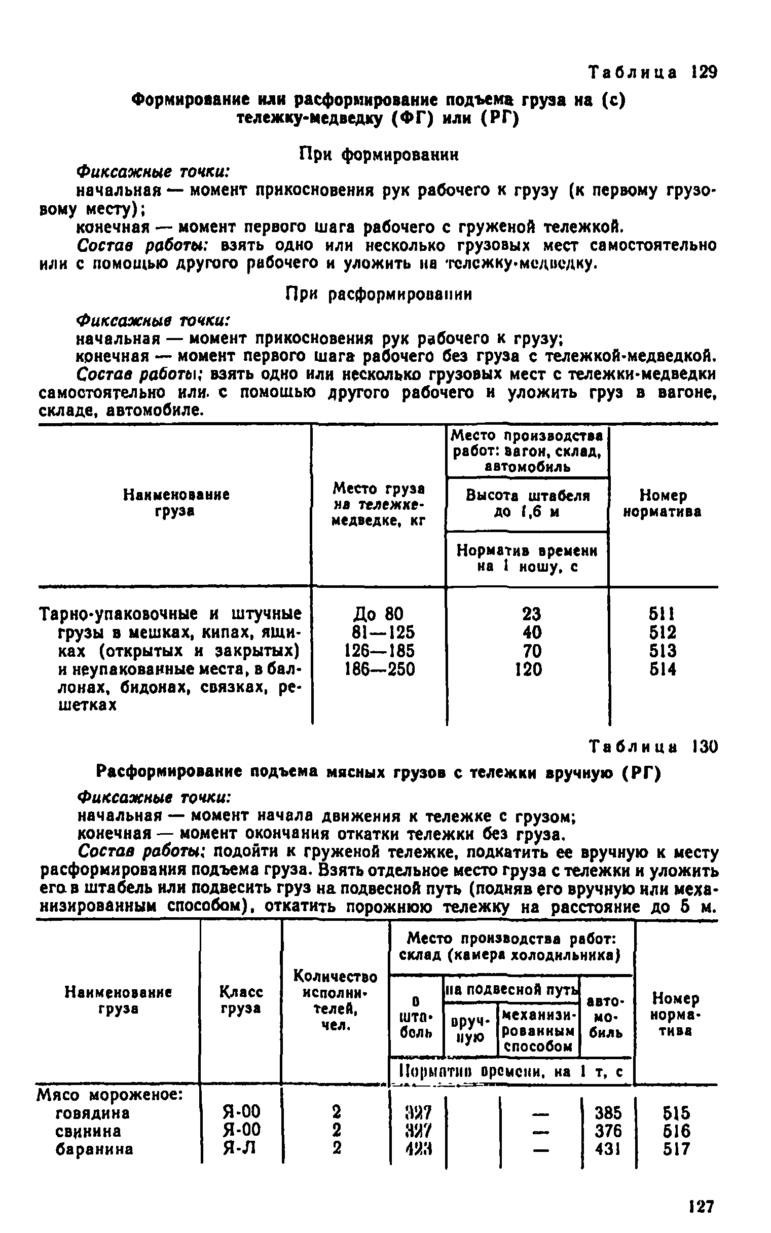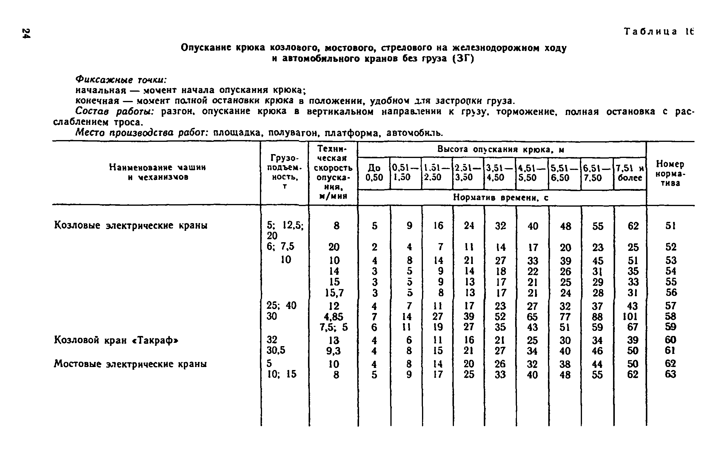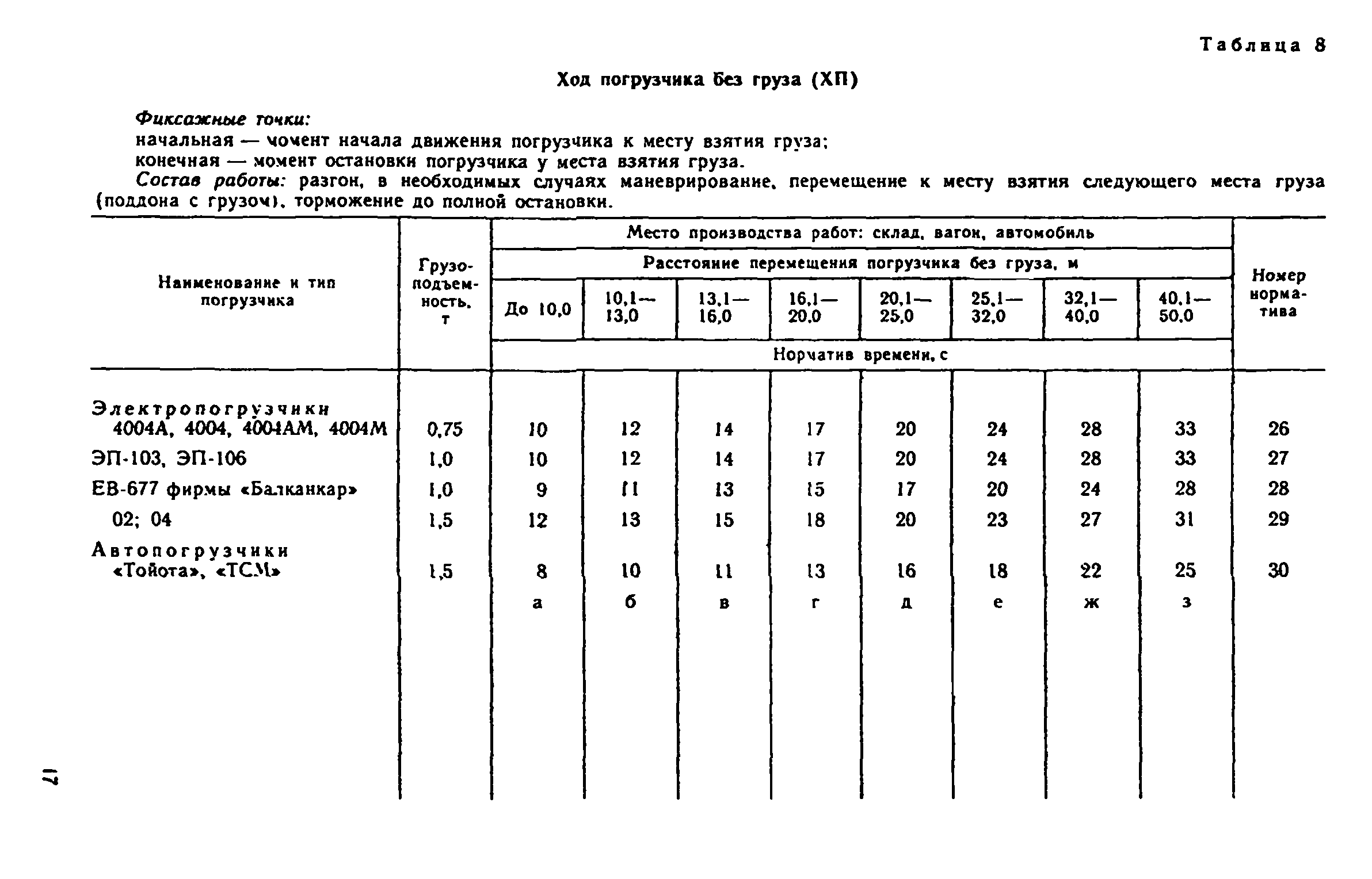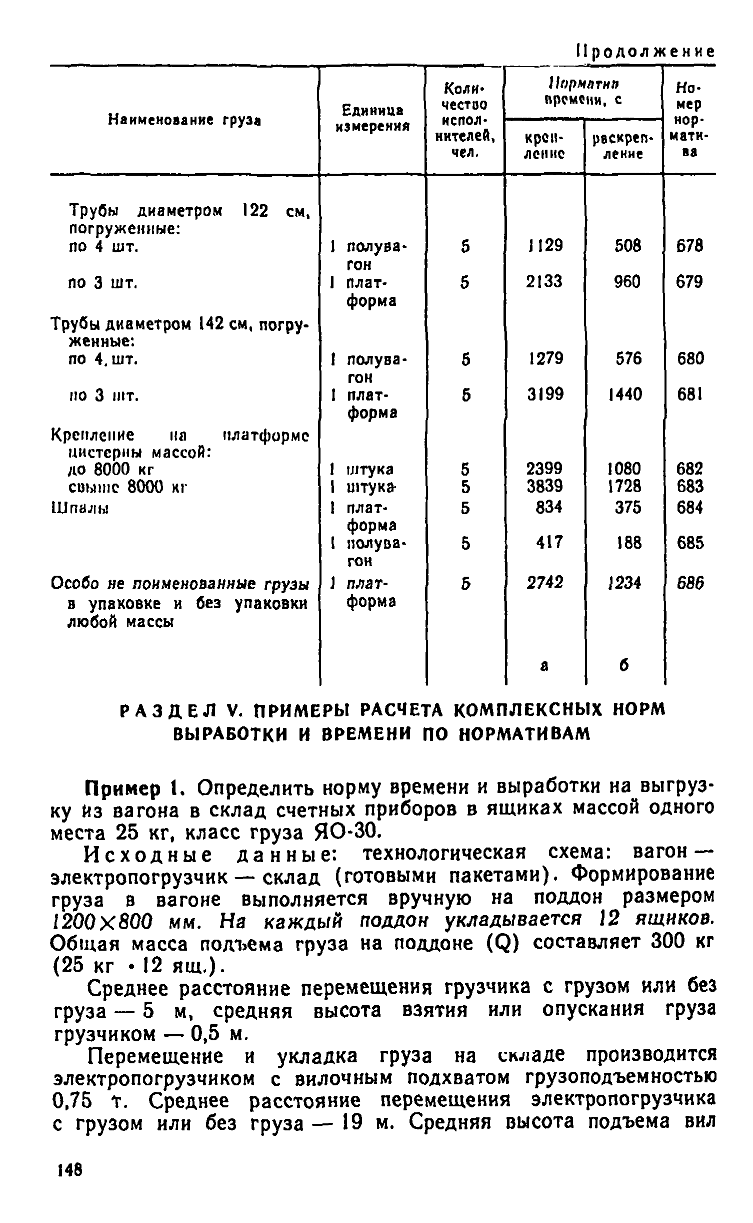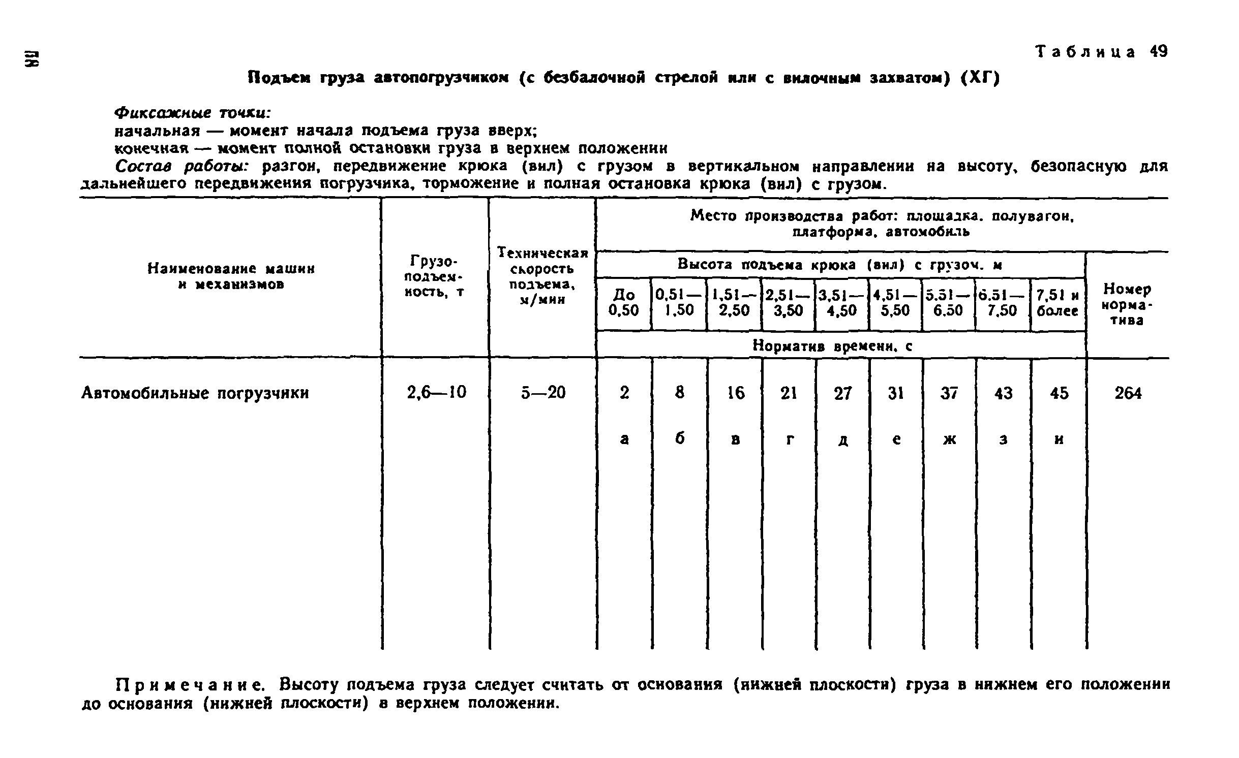 Нормативы времени на погрузочно-разгрузочные работы, выполняемые на железнодорожном, водном и автомобильном транспорте. Часть I. Погрузочно-разгрузочные работы, выполняемые на станциях железных дорог, предприятиях, в организациях, учреждениях отраслей народного хозяйства| Статус: | действует | | Название рус.: | Нормативы времени на погрузочно-разгрузочные работы, выполняемые на железнодорожном, водном и автомобильном транспорте. Часть I. Погрузочно-разгрузочные работы, выполняемые на станциях железных дорог, предприятиях, в организациях, учреждениях отраслей народного хозяйства | | Дата добавления в базу: | 01.09.2013 | | Дата актуализации: | 01.01.2021 | | Область применения: | Нормативы времени предназначены для разработки единых норм выработки и времени на вагонные, автотранспортные и складские погрузочно-разгрузочные работы, а также для разработки местных норм выработки и времени на работы, выполняемые более производительными машинами, механизмами, грузозахватными устройствами при более совершенной организации труда на станциях железных дорог, предприятиях, в организациях и учреждениях отраслей народного хозяйства | | Оглавление: | 1. Общая часть 2. Организация труда 3. Нормативная часть Раздел 1. Нормативы оперативного времени на элементы (комплексы приемов) операций технологического процесса полностью и не полностью механизированных погрузочно-разгрузочных работ А. Тарно-упаковочные и штучные грузы Б. Тяжеловесные грузы, металлы, металлические изделия и лесоматериалы В. Наволочные грузы Раздел II. Нормативы времени на элементы операций технологического процесса погрузочно-разгрузочных работ, выполняемых вручную с применением и без применения простейших приспособлений Раздел III. Нормативы времени на подготовительно-заключительные работы, организационное и техническое обслуживание рабочего места, перерывы, предусмотренные технологией и организацией производственного процесса, перерывы на отдых и личные надобности Раздел IV. Нормативы времени на специальное крепление (раскрепление) грузов на железнодорожном подвижном составе (на платформе или в полувагоне) Раздел V. Примеры расчета комплексных норм выработки и времени по нормативам Приложение 1. Формула расчета высоты укладки грузов в вагоне и их объемов Приложение 2. Классификационный список грузов Приложение 3. Классификационные показатели грузов Приложение 4. Примерный перечень основных погрузочно-разгрузочных машин и механизмов Приложение 5. Примерные схемы укладки груза на поддоны Приложение 6. Коэффициент заполнения грузозахватных устройств навалочными грузами | | Разработан: | ЦБНТ