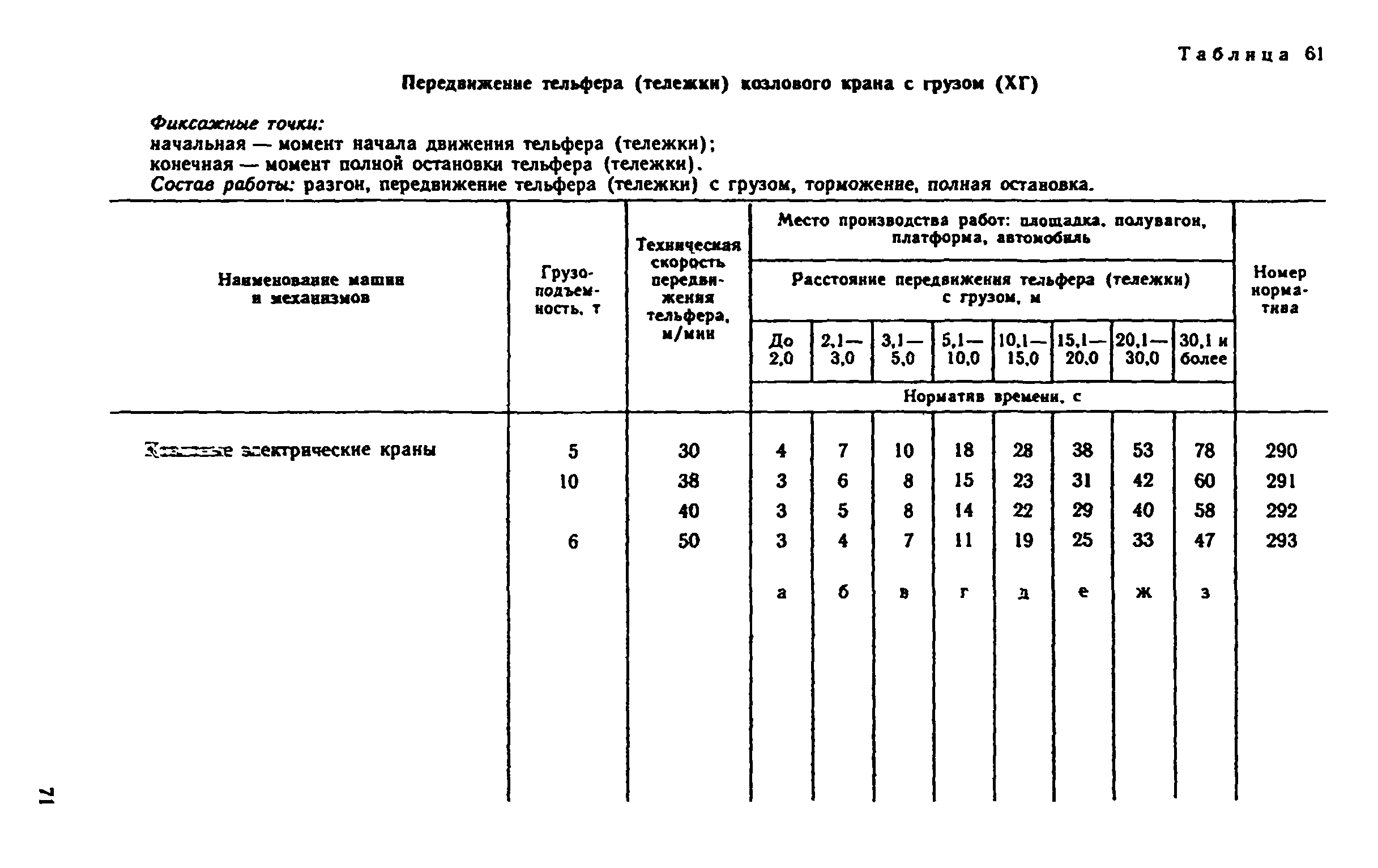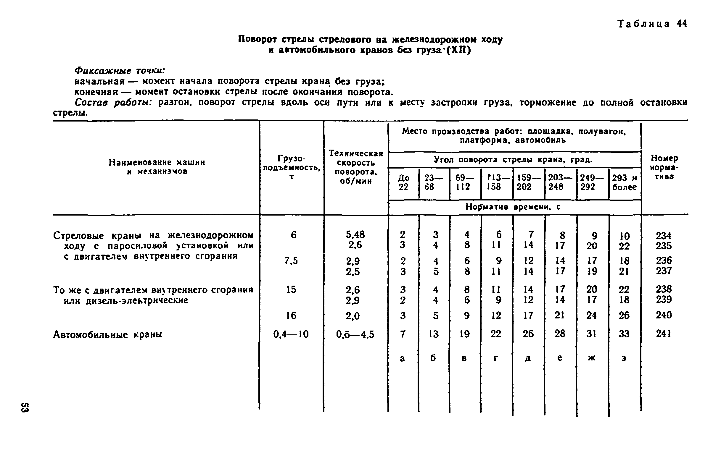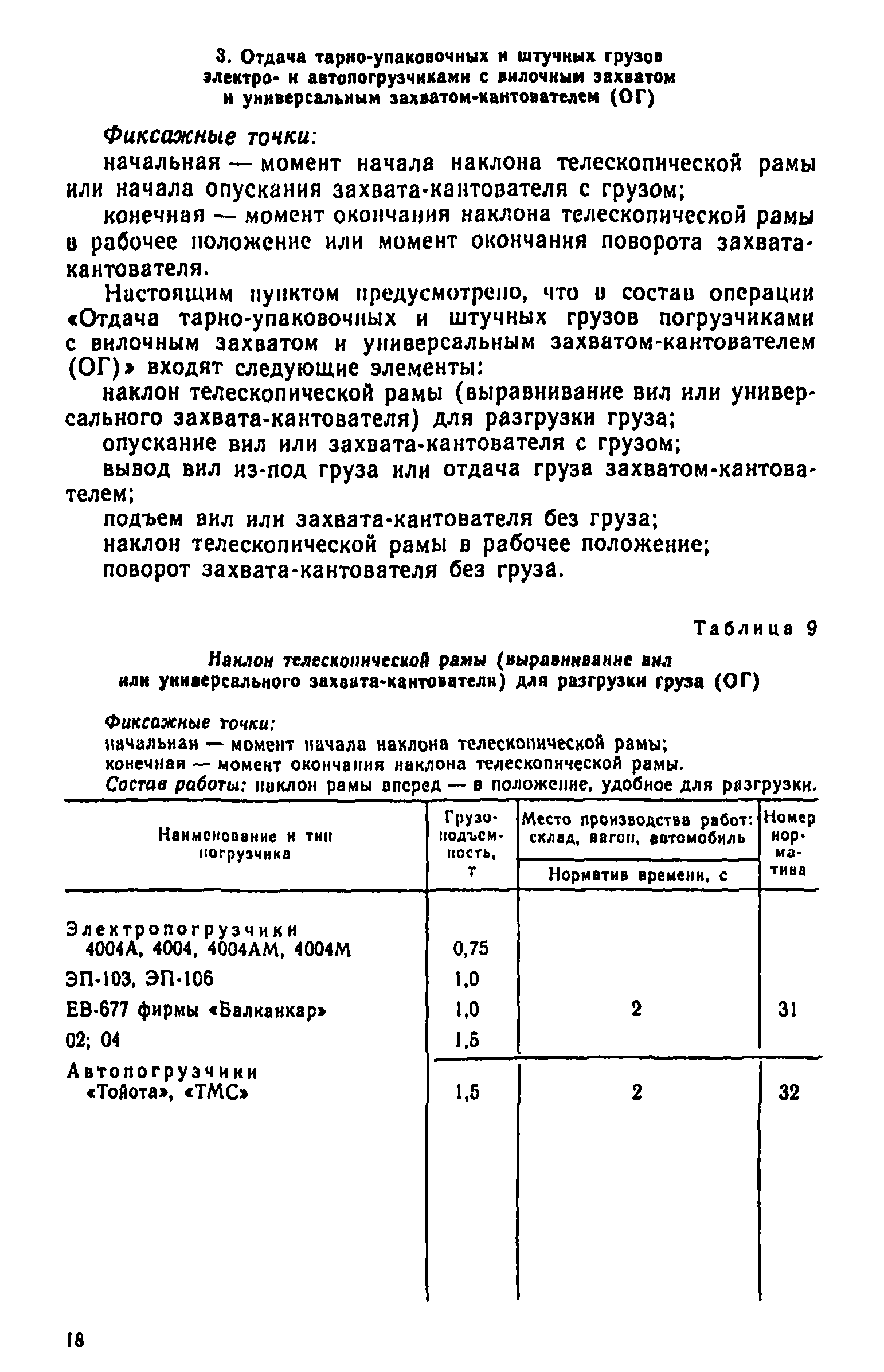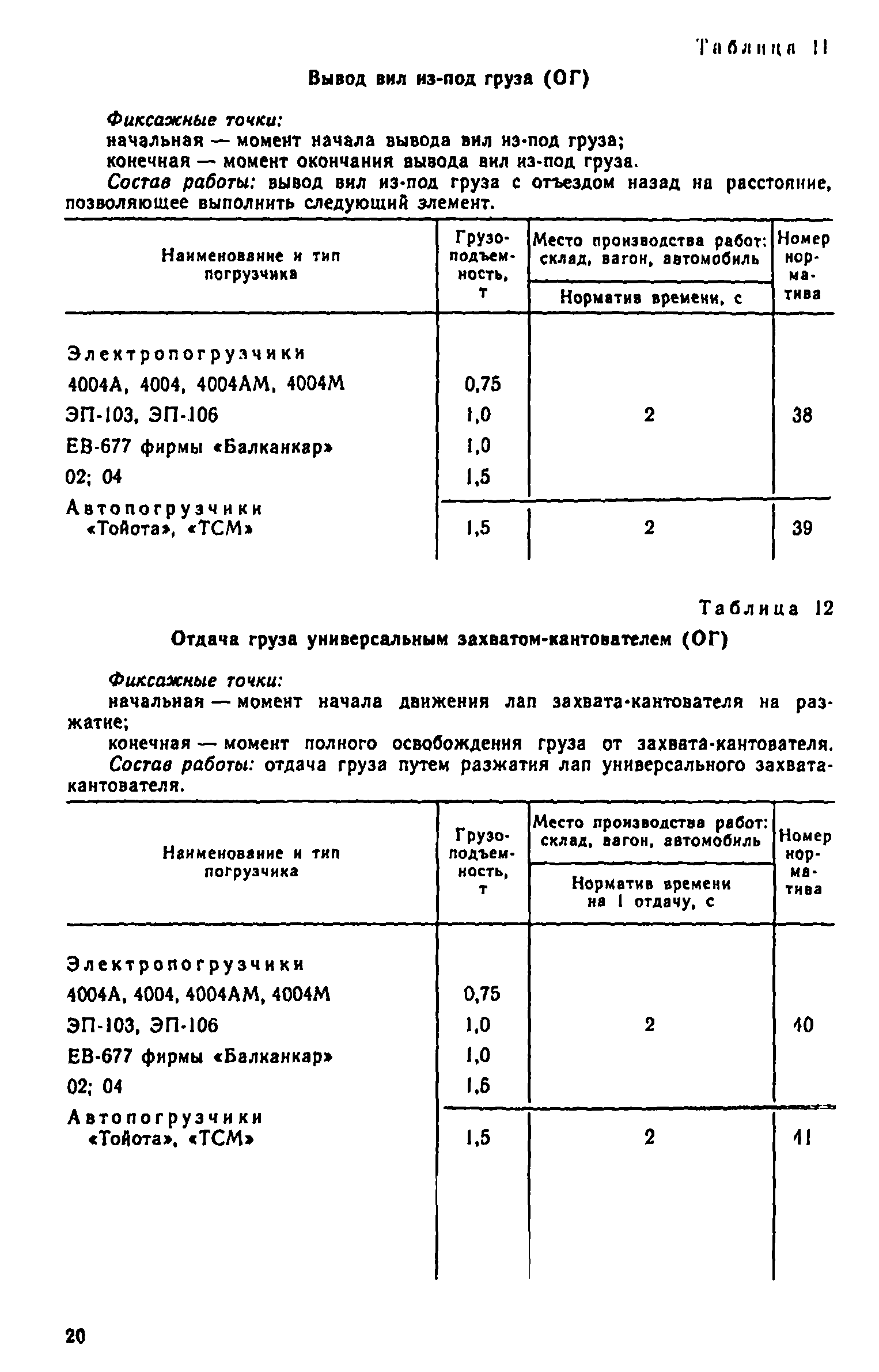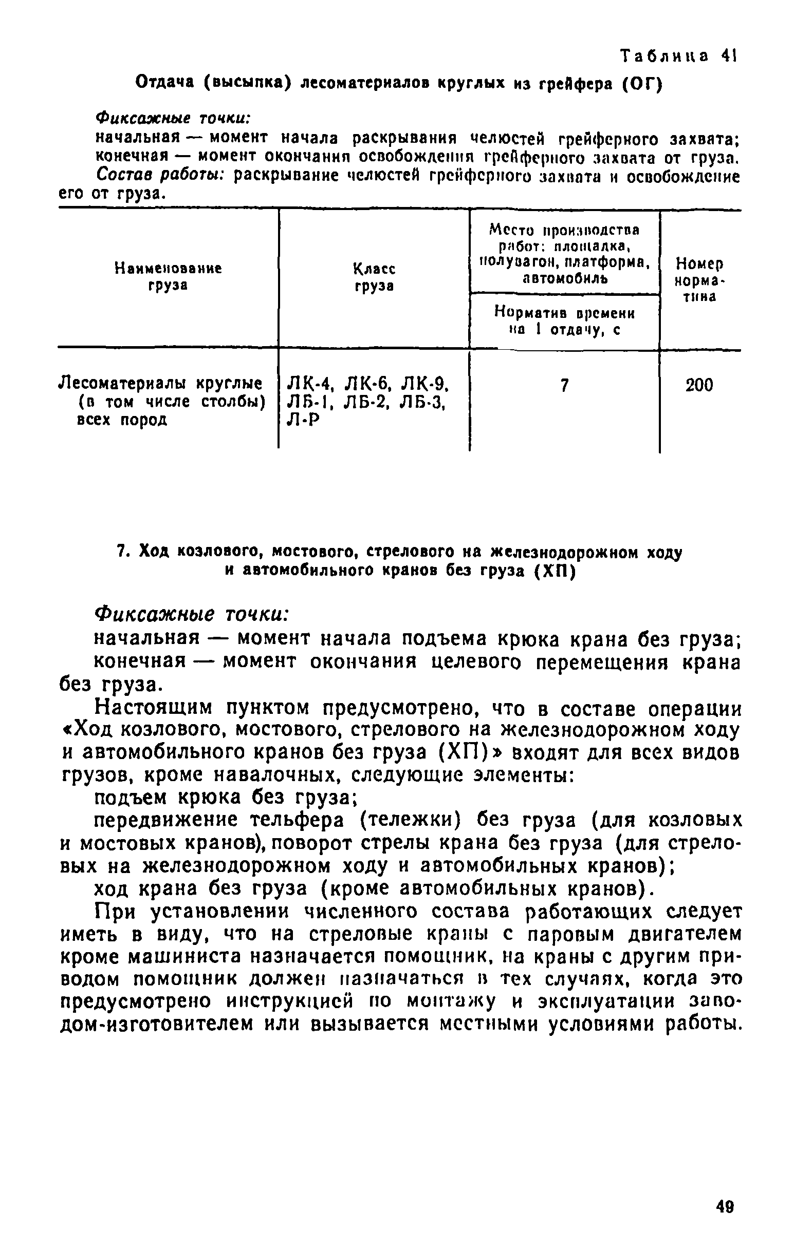Нормативы времени на погрузочно-разгрузочные работы, выполняемые на железнодорожном, водном и автомобильном транспорте. Часть I. Погрузочно-разгрузочные работы, выполняемые на станциях железных дорог, предприятиях, в организациях, учреждениях отраслей народного хозяйства| Статус: | действует | | Название рус.: | Нормативы времени на погрузочно-разгрузочные работы, выполняемые на железнодорожном, водном и автомобильном транспорте. Часть I. Погрузочно-разгрузочные работы, выполняемые на станциях железных дорог, предприятиях, в организациях, учреждениях отраслей народного хозяйства | | Дата добавления в базу: | 01.09.2013 | | Дата актуализации: | 01.01.2021 | | Область применения: | Нормативы времени предназначены для разработки единых норм выработки и времени на вагонные, автотранспортные и складские погрузочно-разгрузочные работы, а также для разработки местных норм выработки и времени на работы, выполняемые более производительными машинами, механизмами, грузозахватными устройствами при более совершенной организации труда на станциях железных дорог, предприятиях, в организациях и учреждениях отраслей народного хозяйства | | Оглавление: | 1. Общая часть 2. Организация труда 3. Нормативная часть Раздел 1. Нормативы оперативного времени на элементы (комплексы приемов) операций технологического процесса полностью и не полностью механизированных погрузочно-разгрузочных работ А. Тарно-упаковочные и штучные грузы Б. Тяжеловесные грузы, металлы, металлические изделия и лесоматериалы В. Наволочные грузы Раздел II. Нормативы времени на элементы операций технологического процесса погрузочно-разгрузочных работ, выполняемых вручную с применением и без применения простейших приспособлений Раздел III. Нормативы времени на подготовительно-заключительные работы, организационное и техническое обслуживание рабочего места, перерывы, предусмотренные технологией и организацией производственного процесса, перерывы на отдых и личные надобности Раздел IV. Нормативы времени на специальное крепление (раскрепление) грузов на железнодорожном подвижном составе (на платформе или в полувагоне) Раздел V. Примеры расчета комплексных норм выработки и времени по нормативам Приложение 1. Формула расчета высоты укладки грузов в вагоне и их объемов Приложение 2. Классификационный список грузов Приложение 3. Классификационные показатели грузов Приложение 4. Примерный перечень основных погрузочно-разгрузочных машин и механизмов Приложение 5. Примерные схемы укладки груза на поддоны Приложение 6. Коэффициент заполнения грузозахватных устройств навалочными грузами | | Разработан: | ЦБНТ