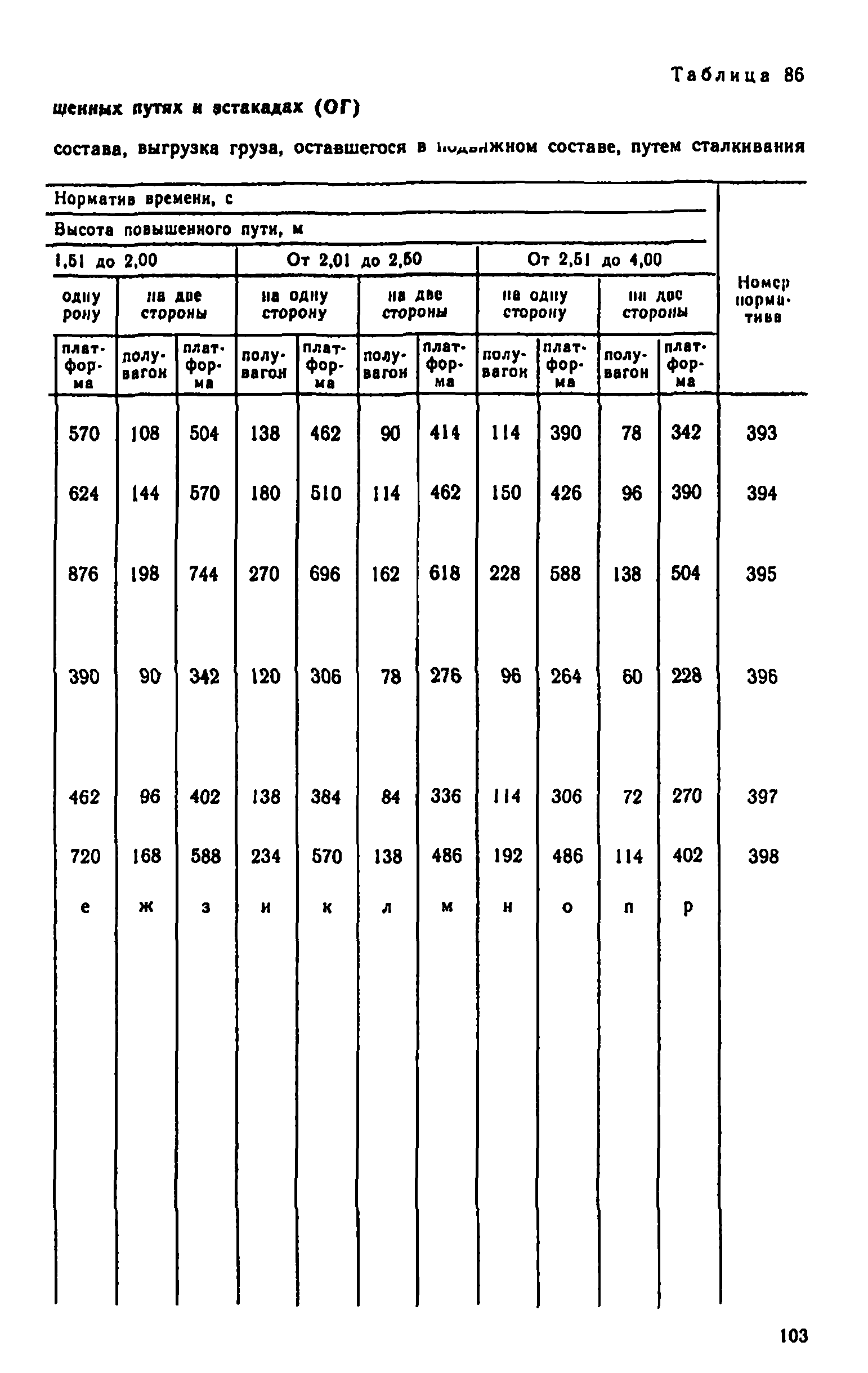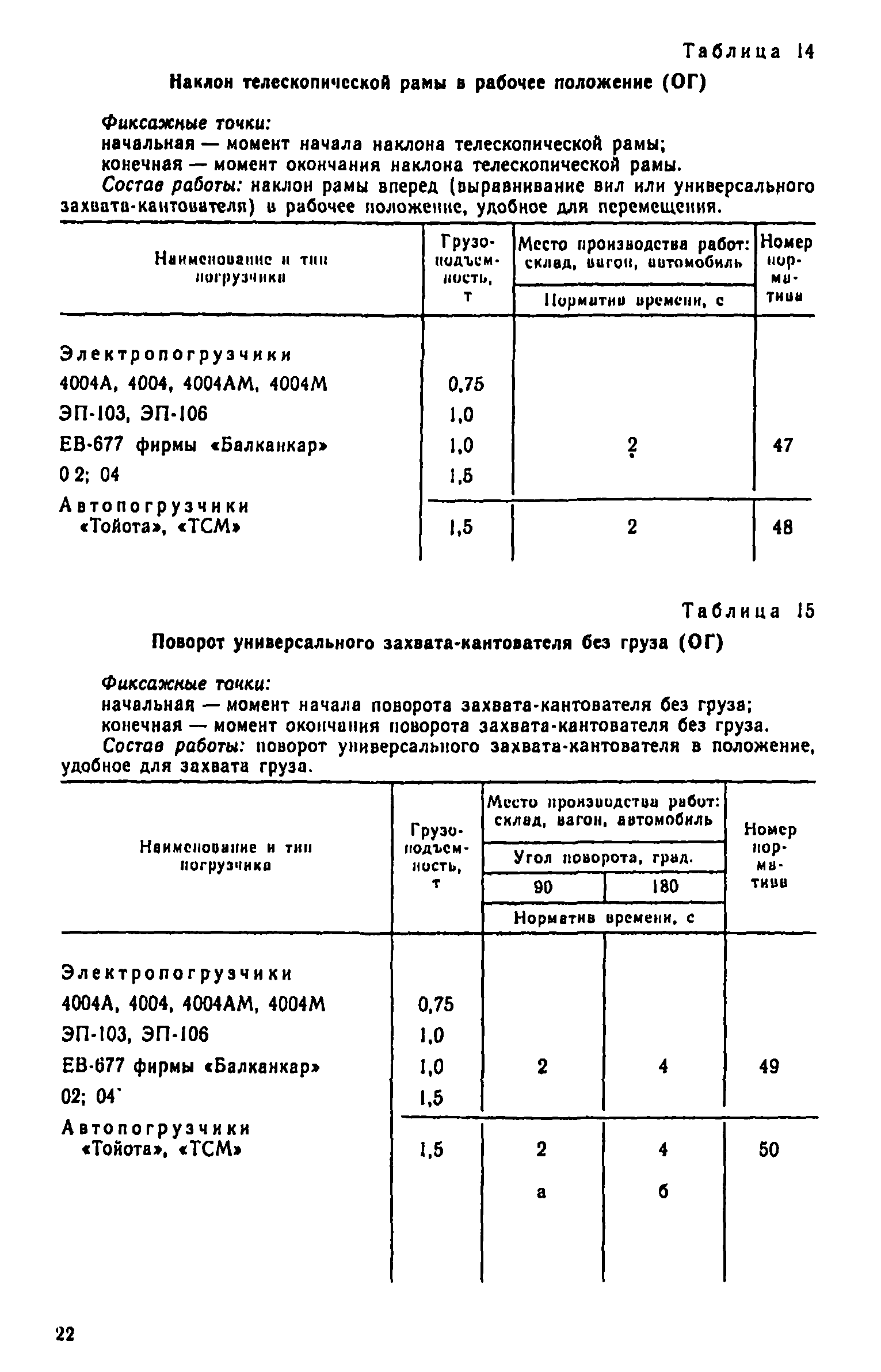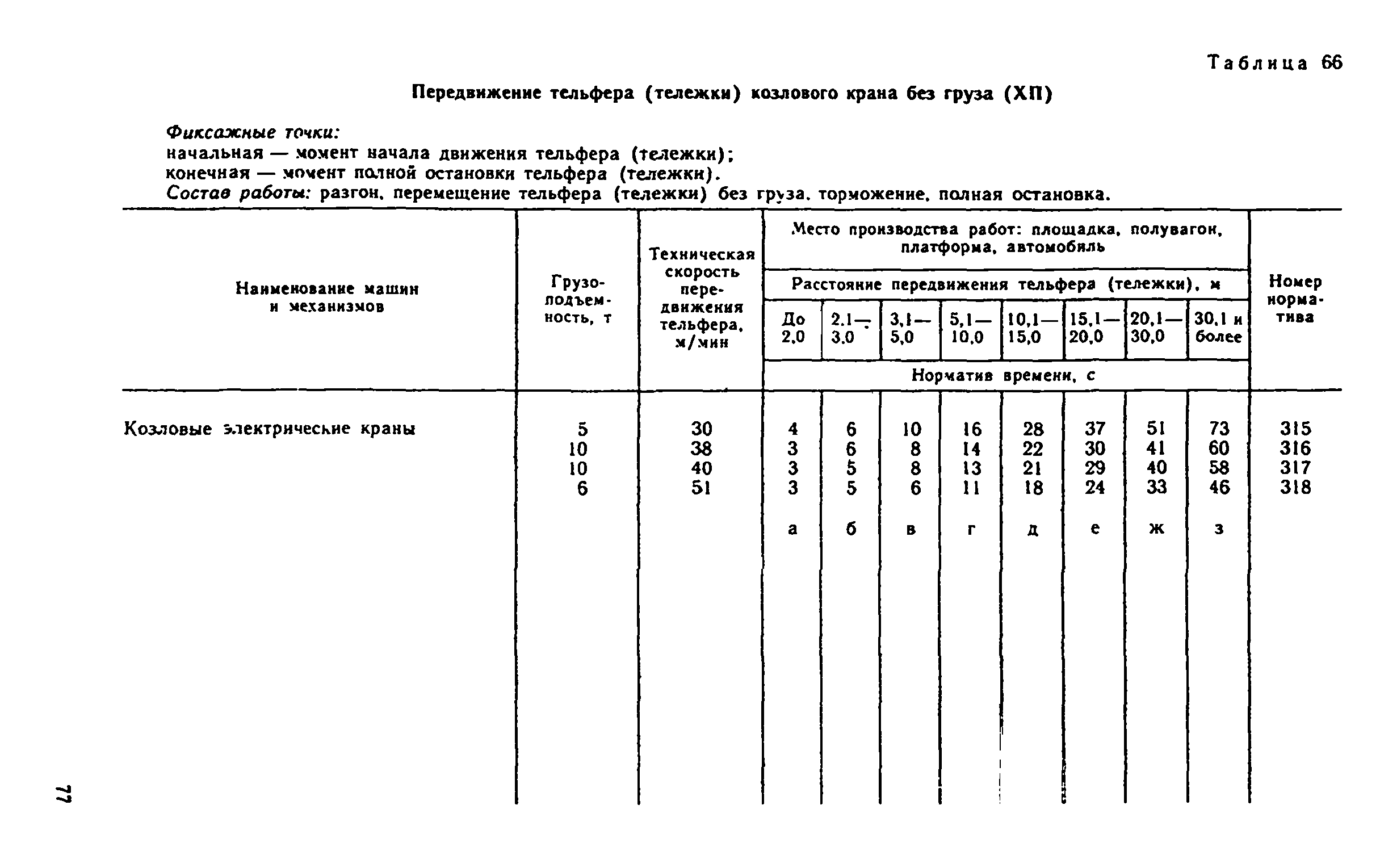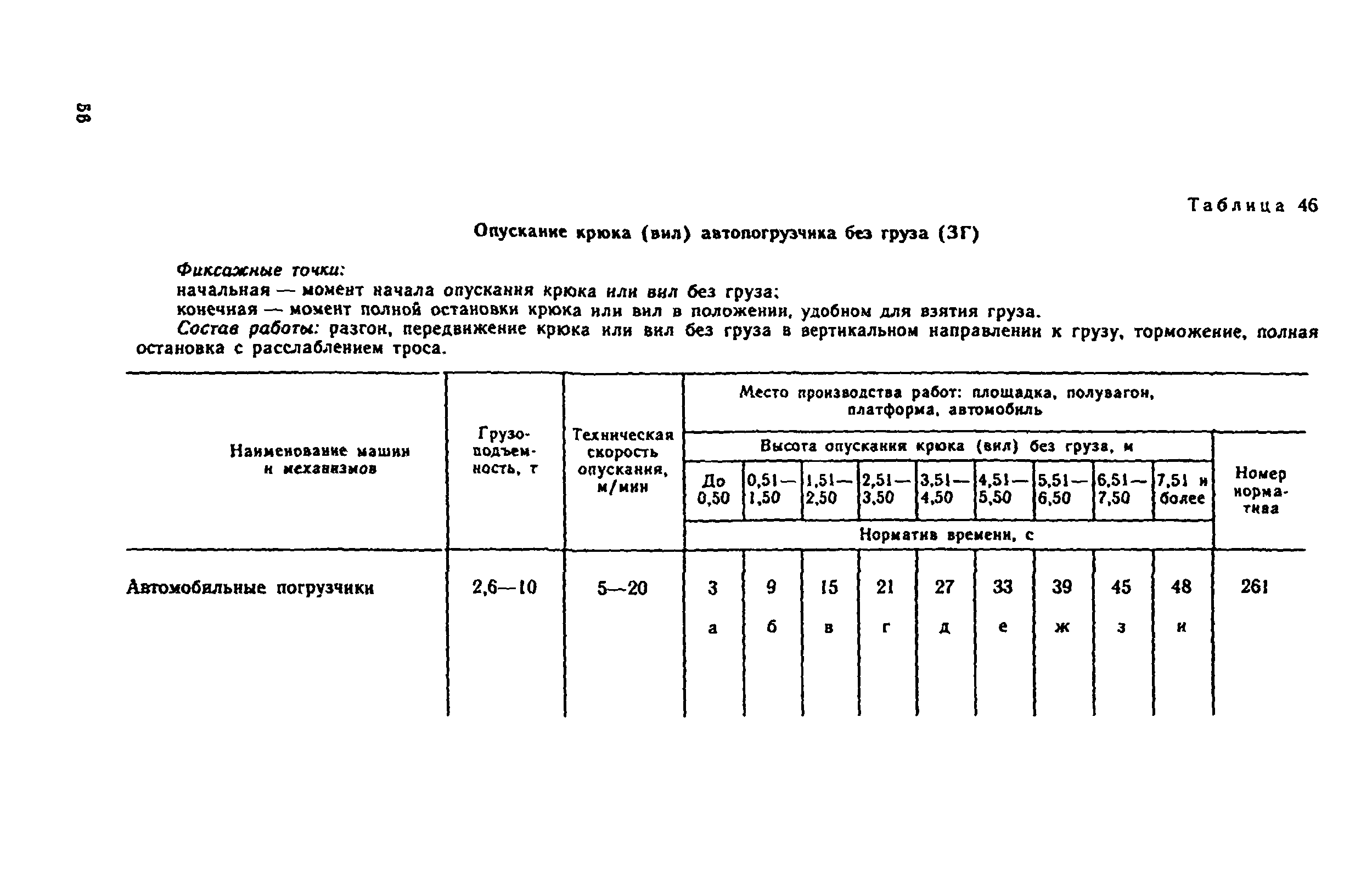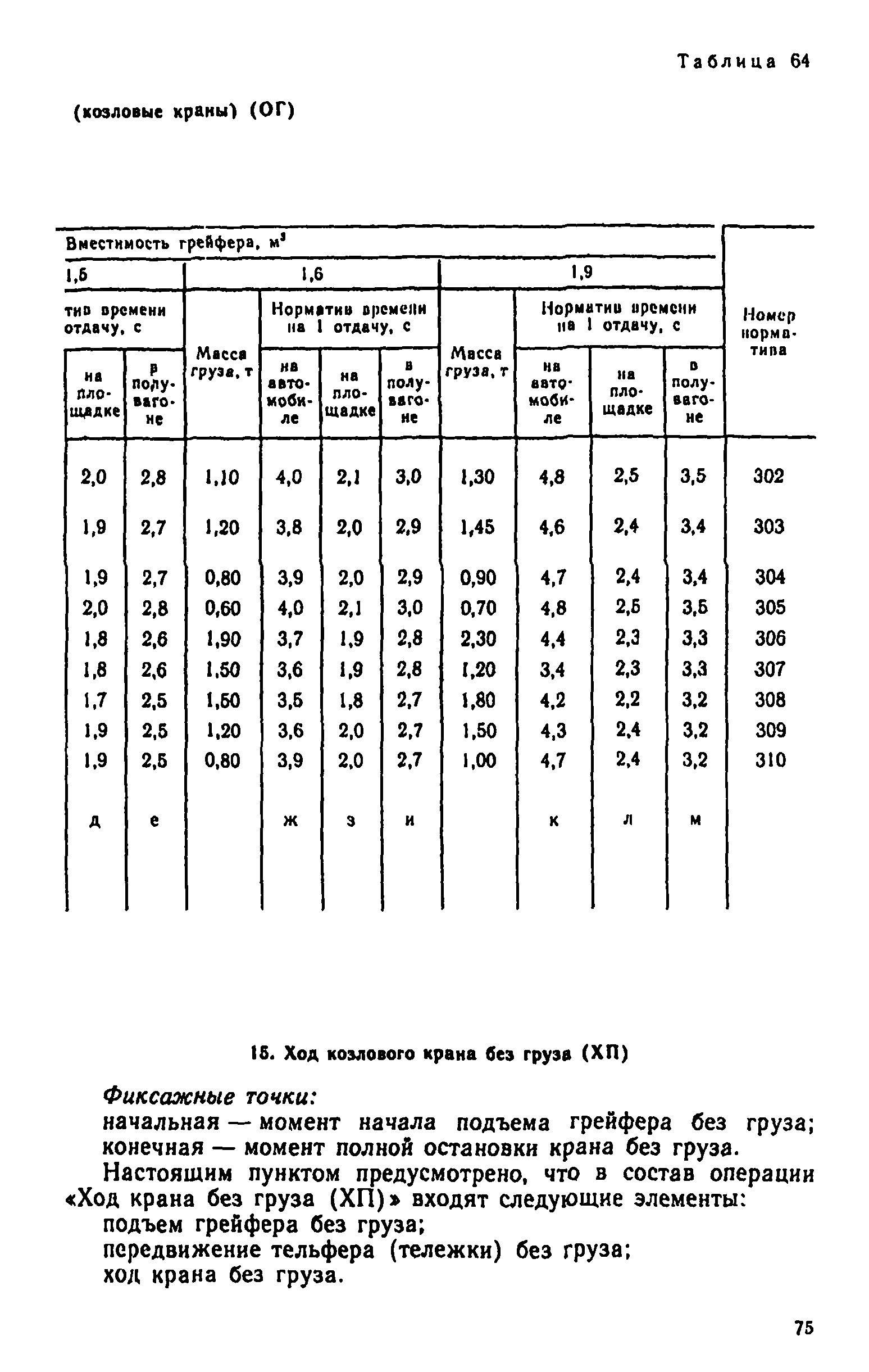 Нормативы времени на погрузочно-разгрузочные работы, выполняемые на железнодорожном, водном и автомобильном транспорте. Часть I. Погрузочно-разгрузочные работы, выполняемые на станциях железных дорог, предприятиях, в организациях, учреждениях отраслей народного хозяйства| Статус: | действует | | Название рус.: | Нормативы времени на погрузочно-разгрузочные работы, выполняемые на железнодорожном, водном и автомобильном транспорте. Часть I. Погрузочно-разгрузочные работы, выполняемые на станциях железных дорог, предприятиях, в организациях, учреждениях отраслей народного хозяйства | | Дата добавления в базу: | 01.09.2013 | | Дата актуализации: | 01.01.2021 | | Область применения: | Нормативы времени предназначены для разработки единых норм выработки и времени на вагонные, автотранспортные и складские погрузочно-разгрузочные работы, а также для разработки местных норм выработки и времени на работы, выполняемые более производительными машинами, механизмами, грузозахватными устройствами при более совершенной организации труда на станциях железных дорог, предприятиях, в организациях и учреждениях отраслей народного хозяйства | | Оглавление: | 1. Общая часть 2. Организация труда 3. Нормативная часть Раздел 1. Нормативы оперативного времени на элементы (комплексы приемов) операций технологического процесса полностью и не полностью механизированных погрузочно-разгрузочных работ А. Тарно-упаковочные и штучные грузы Б. Тяжеловесные грузы, металлы, металлические изделия и лесоматериалы В. Наволочные грузы Раздел II. Нормативы времени на элементы операций технологического процесса погрузочно-разгрузочных работ, выполняемых вручную с применением и без применения простейших приспособлений Раздел III. Нормативы времени на подготовительно-заключительные работы, организационное и техническое обслуживание рабочего места, перерывы, предусмотренные технологией и организацией производственного процесса, перерывы на отдых и личные надобности Раздел IV. Нормативы времени на специальное крепление (раскрепление) грузов на железнодорожном подвижном составе (на платформе или в полувагоне) Раздел V. Примеры расчета комплексных норм выработки и времени по нормативам Приложение 1. Формула расчета высоты укладки грузов в вагоне и их объемов Приложение 2. Классификационный список грузов Приложение 3. Классификационные показатели грузов Приложение 4. Примерный перечень основных погрузочно-разгрузочных машин и механизмов Приложение 5. Примерные схемы укладки груза на поддоны Приложение 6. Коэффициент заполнения грузозахватных устройств навалочными грузами | | Разработан: | ЦБНТ