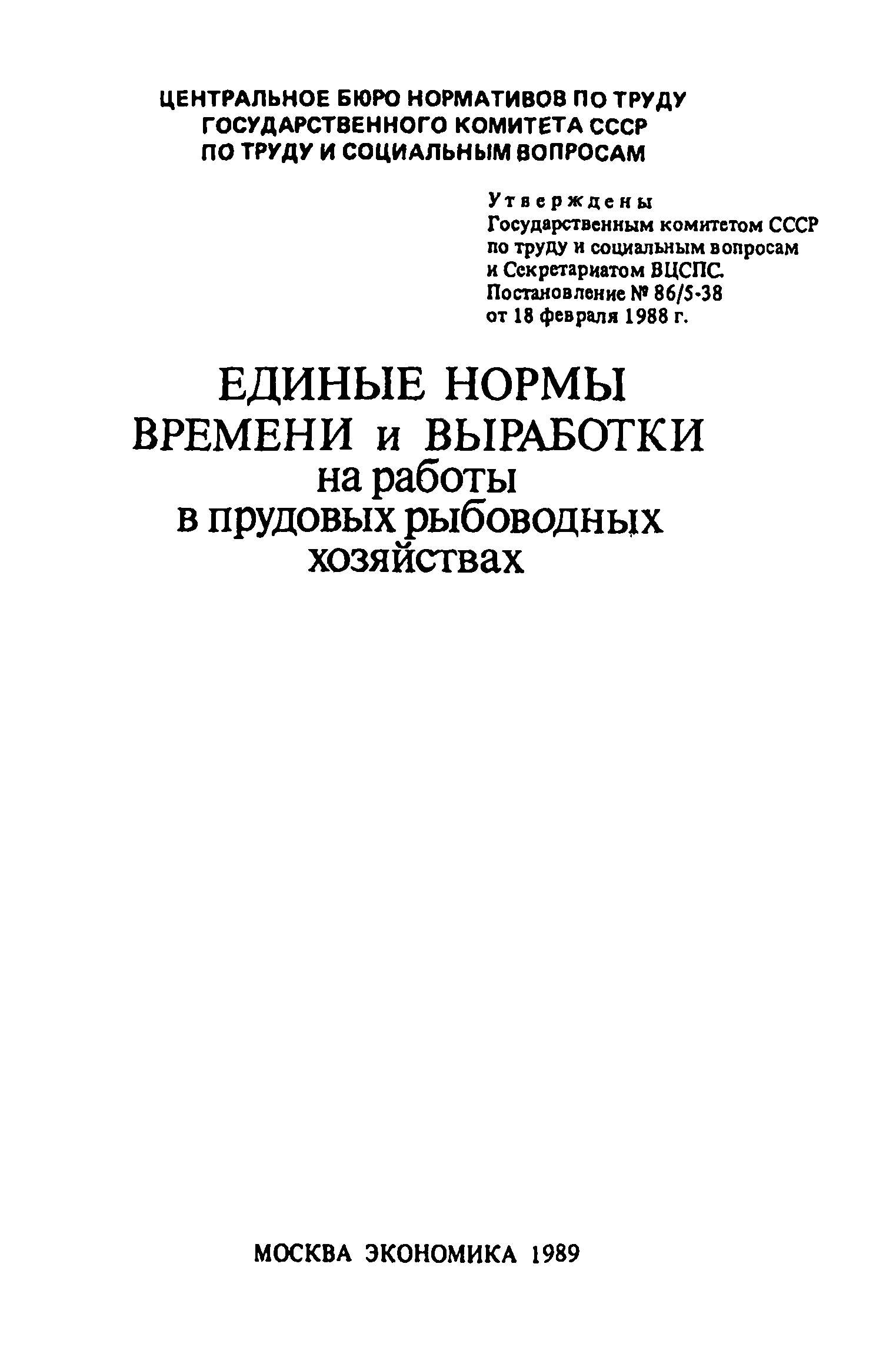 | Название рус.: | Единые нормы времени и выработки на работы в прудовых рыбоводных хозяйствах |