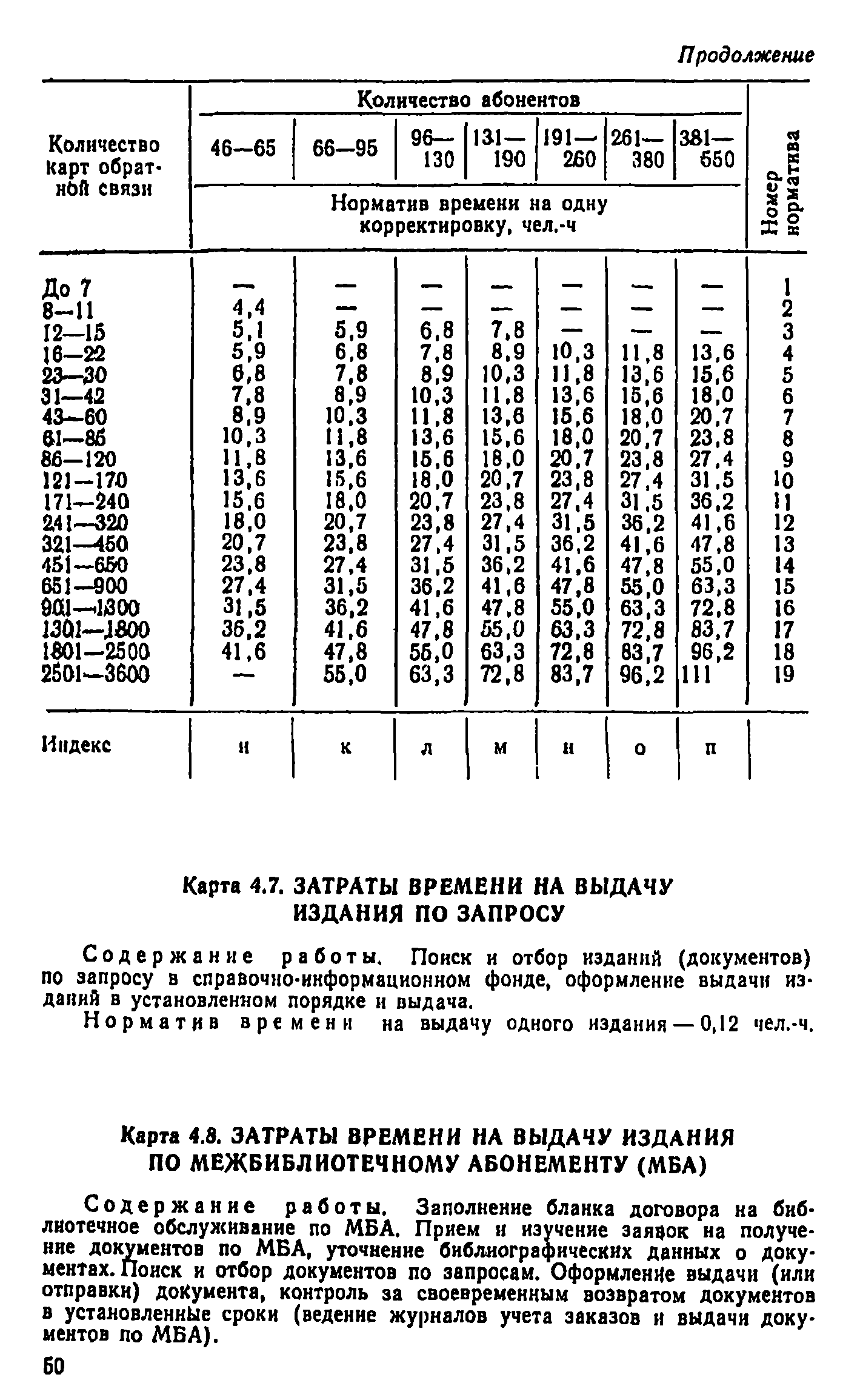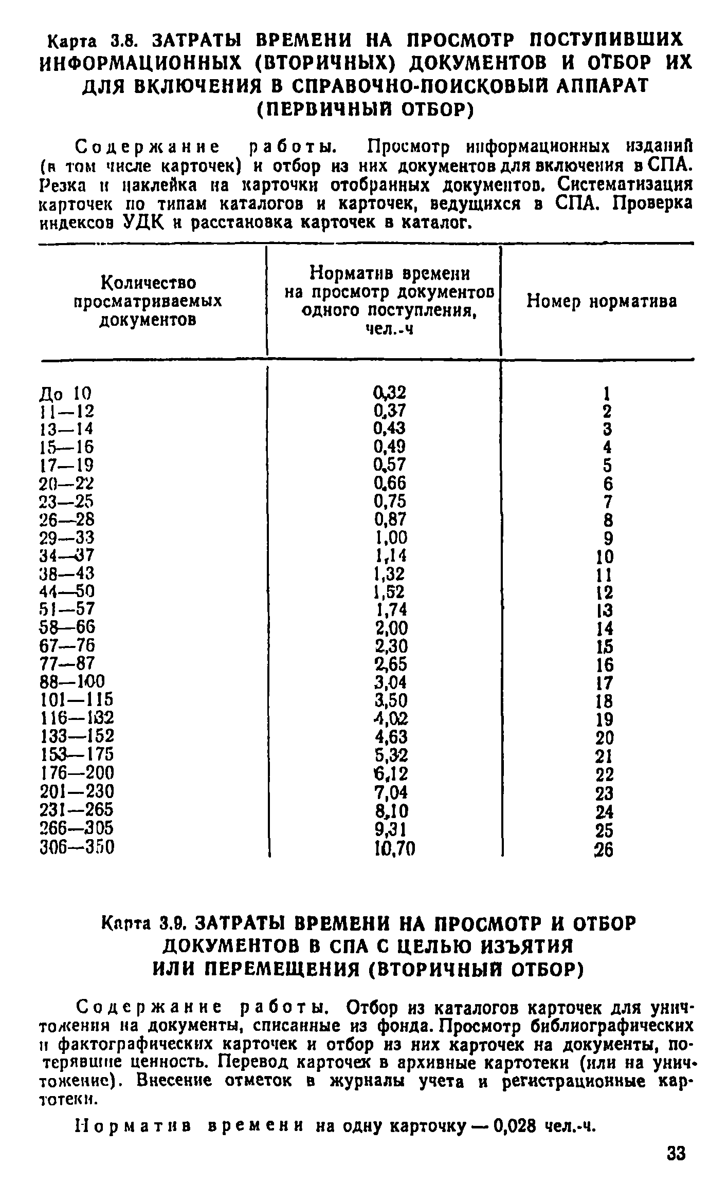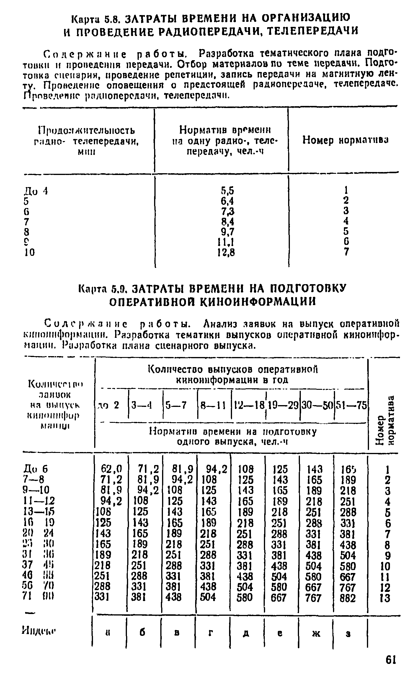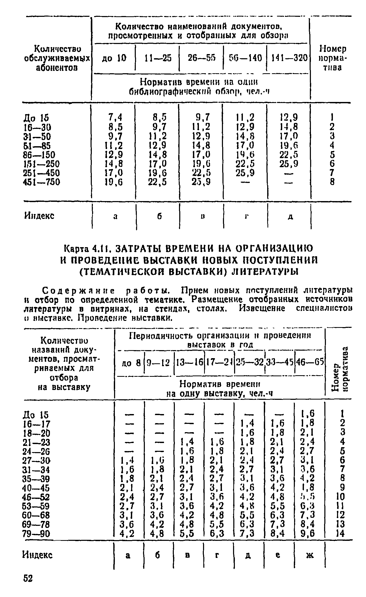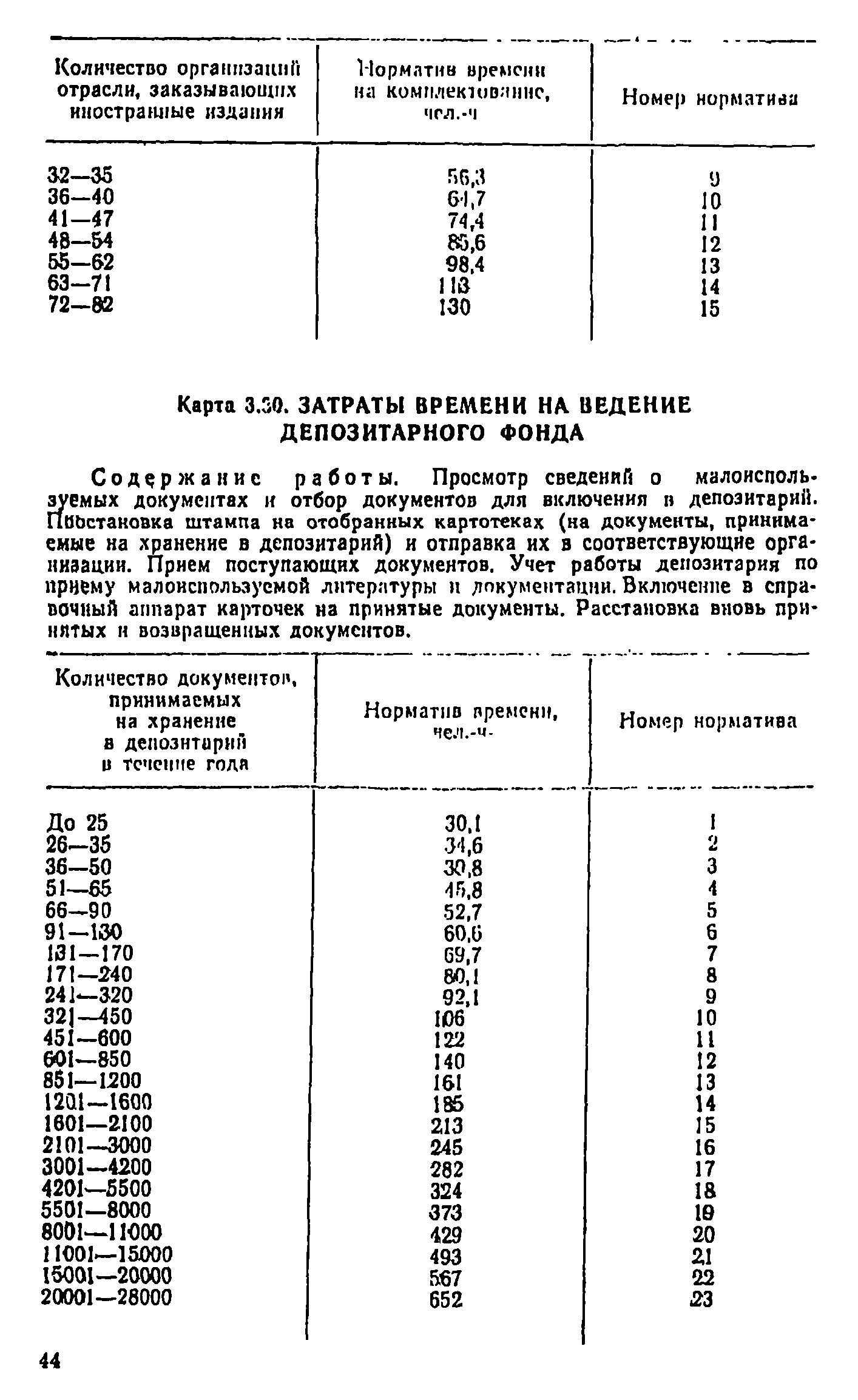 Нормативы времени на работы по научно-технической информации| Статус: | действует | | Название рус.: | Нормативы времени на работы по научно-технической информации | | Дата добавления в базу: | 01.09.2013 | | Дата актуализации: | 01.01.2021 | | Область применения: | Нормативы времени предназначены для расчета норм времени на работы, выполняемые работниками органов научно-технической информации, установления им нормируемых заданий, определения их численности и рекомендуются для применения в центральных отраслевых, республиканских и межотраслевых территориальных органах НТИ, отделах (бюро) информации НИИ, КБ и соответствующих им НТБ | | Оглавление: | 1. Общая часть 2. Организация труда 3. Нормативная часть Раздел 1. Затраты времени на работы по планированию, учету и отчетности Раздел 2. Затраты времени на аналитико-синтетическую переработку информационных материалов Раздел 3. Затраты времени на работы в справочно-информационном фонде Раздел 4. Затраты времени на работы по справочно-информационному обеспечению Раздел 5. Затраты времени на работы по научно-технической пропаганде и распространению передового опыта | | Разработан: | ЦБНТ