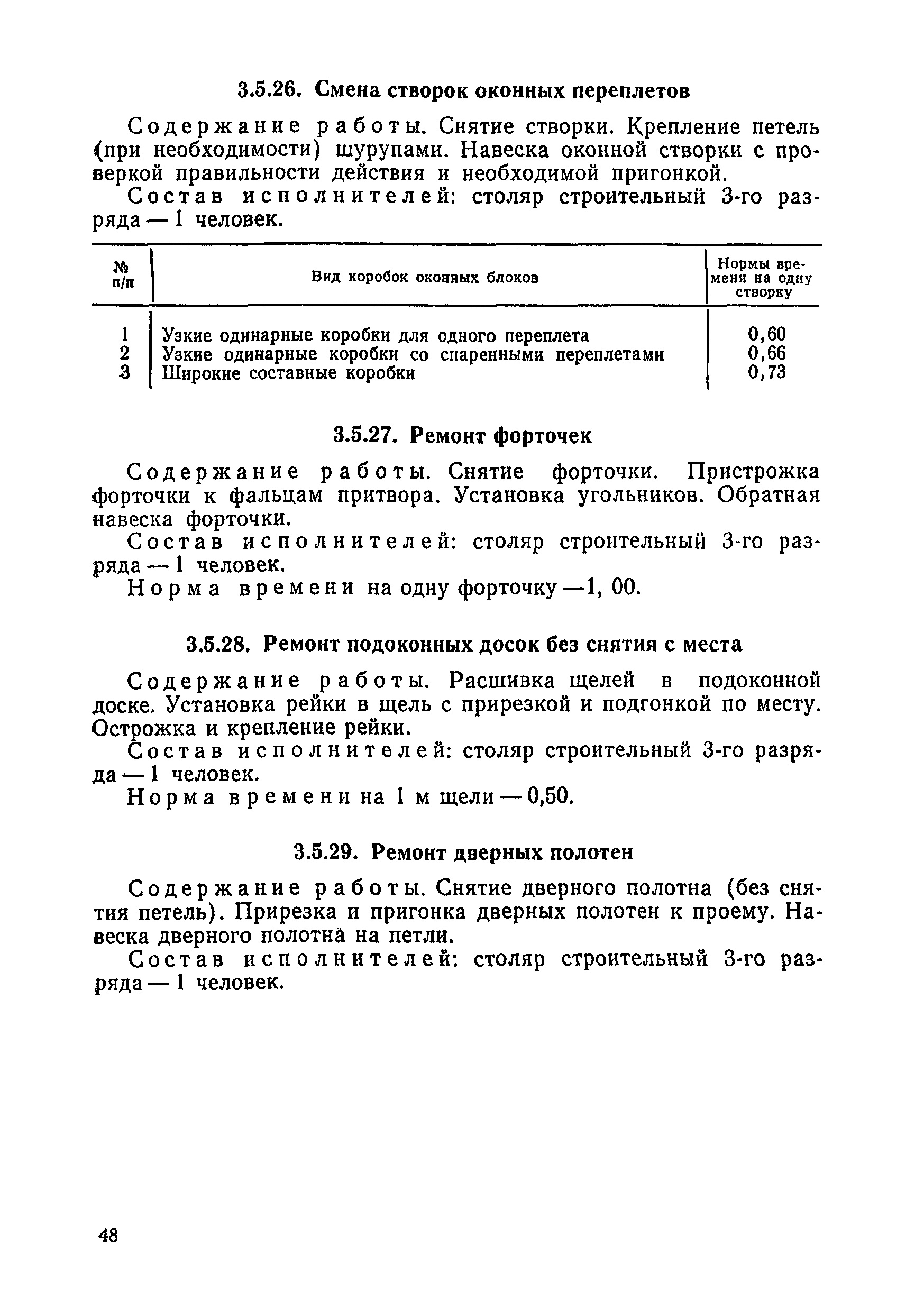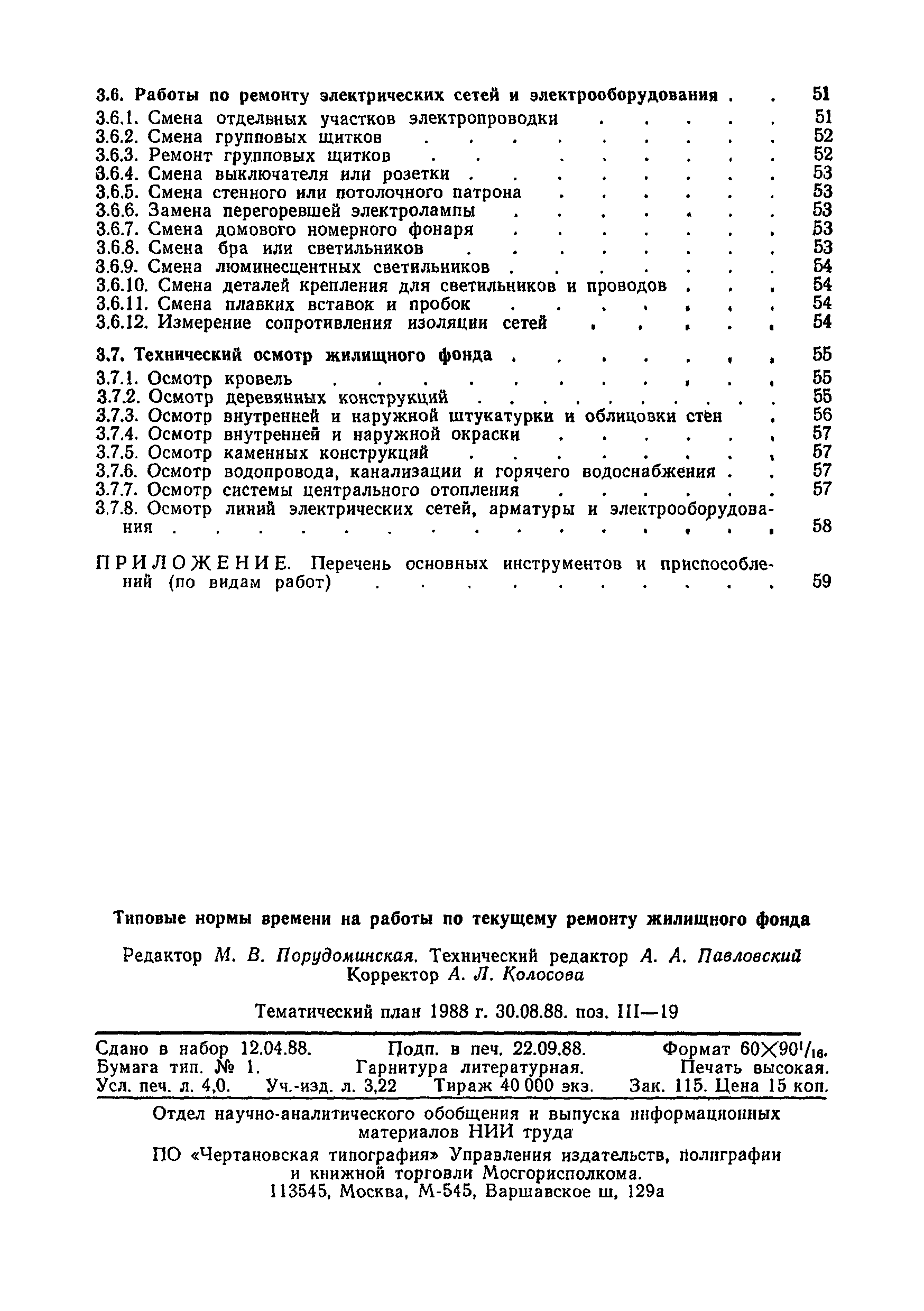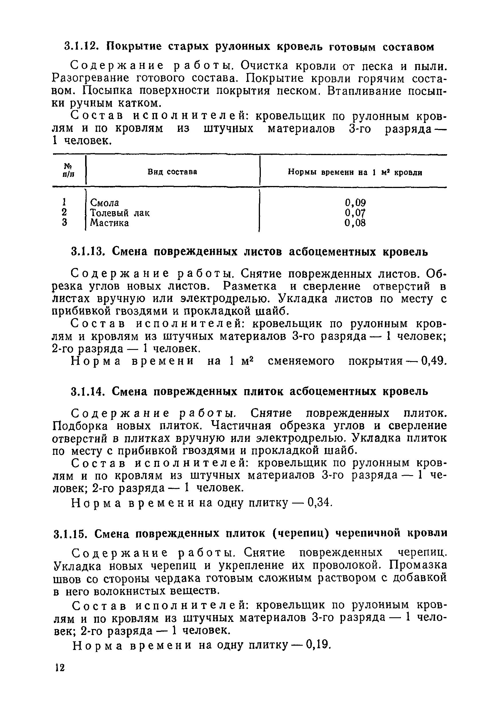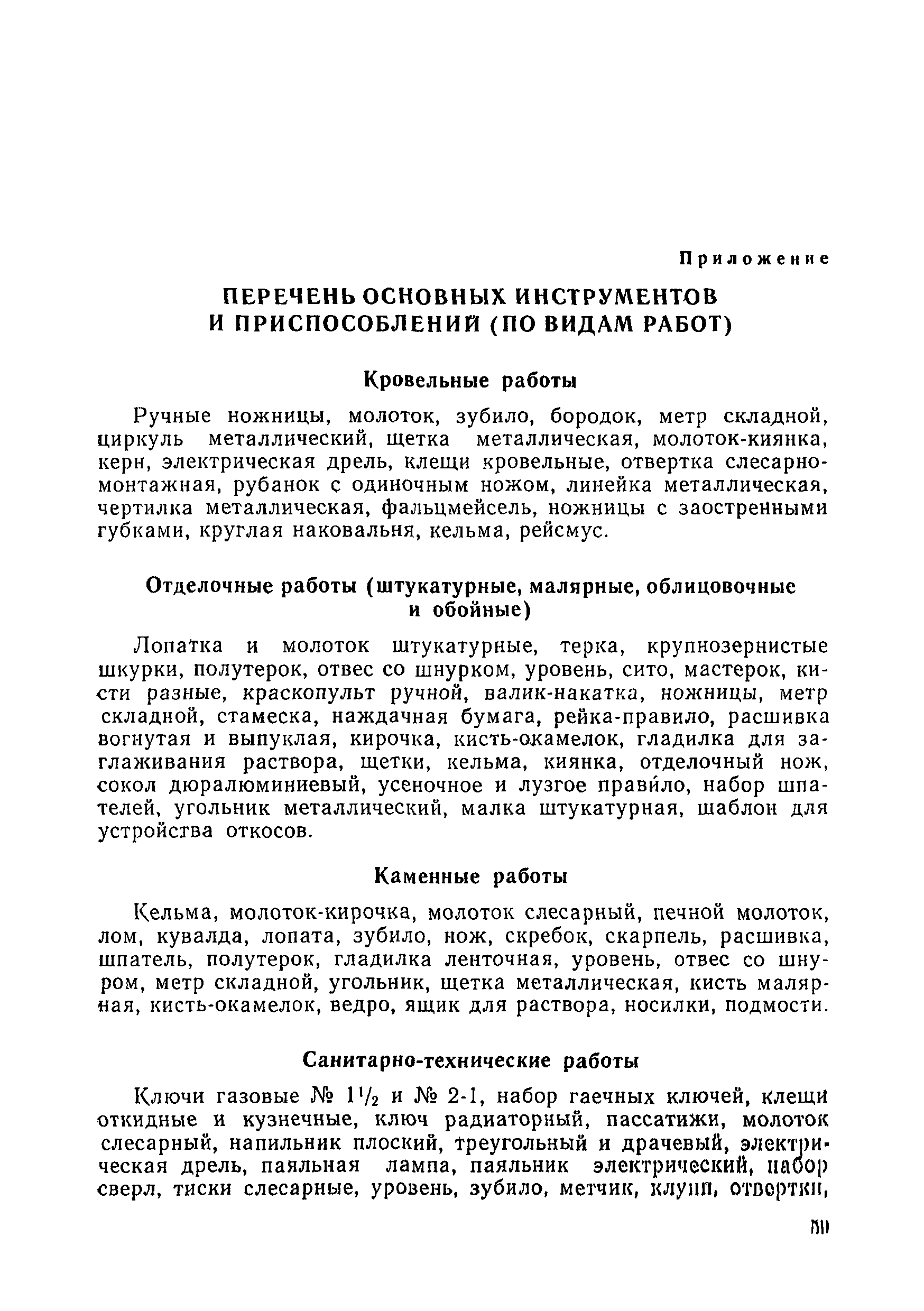 | Оглавление: | 1. Общая часть 2. Организация труда 3. Нормативная часть 3.1 Кровельные работы 3.2 Отделочные работы 3.3 Каменные работы 3.4 Санитарно-технические работы 3.5 Плотничные, столярные и стекольные работы 3.6 Работы по ремонту электрических сетей и электрооборудования 3.7 Технический осмотр жилищного фонда Приложение. Перечень основных инструментов и приспособлений (по видам работ) |