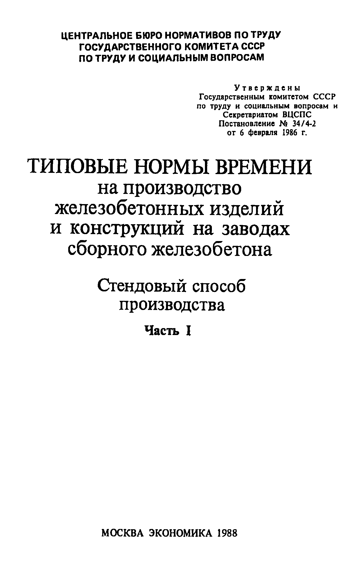 | Название рус.: | Типовые нормы времени на производство железобетонных изделий и конструкций на заводах сборного железобетона. Стендовый способ производства. Часть I |