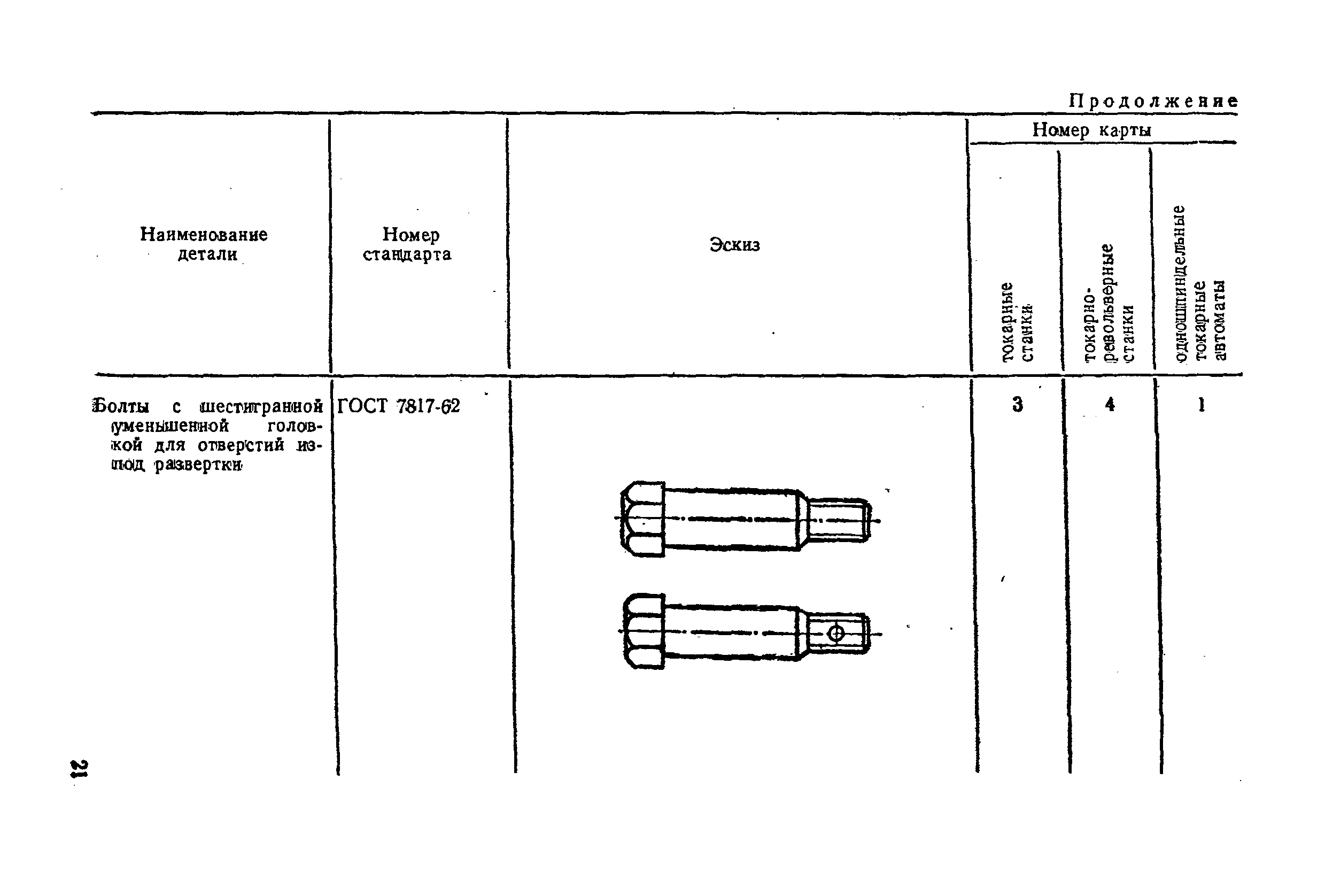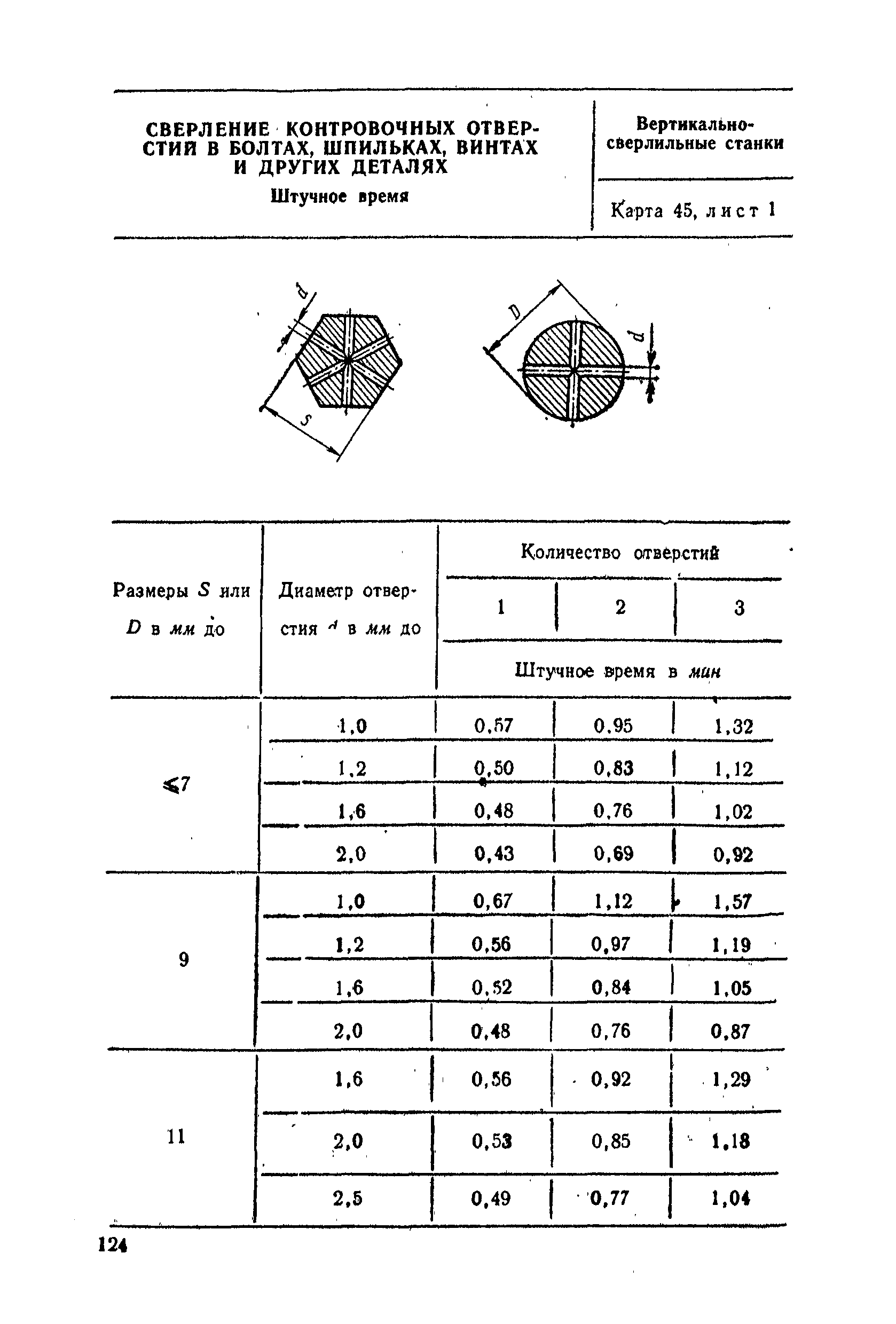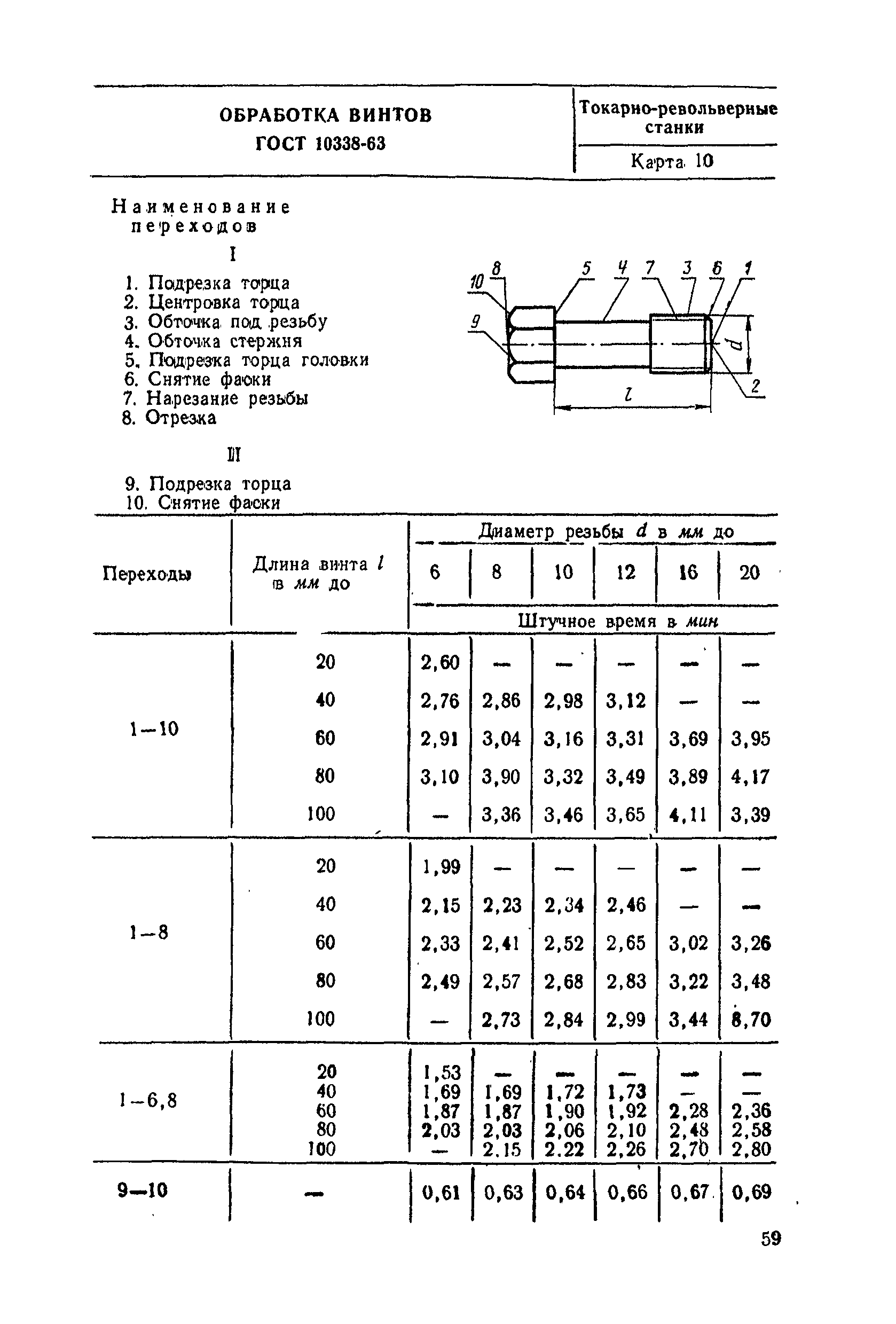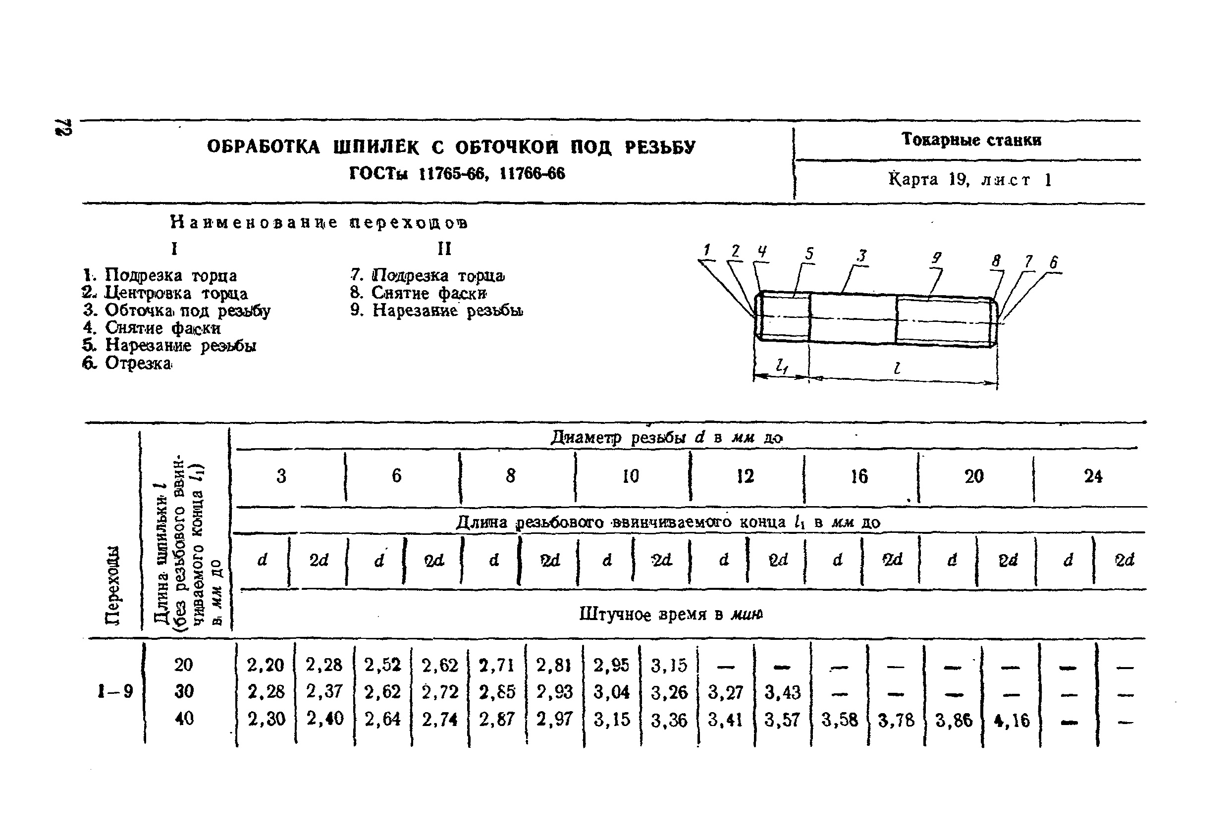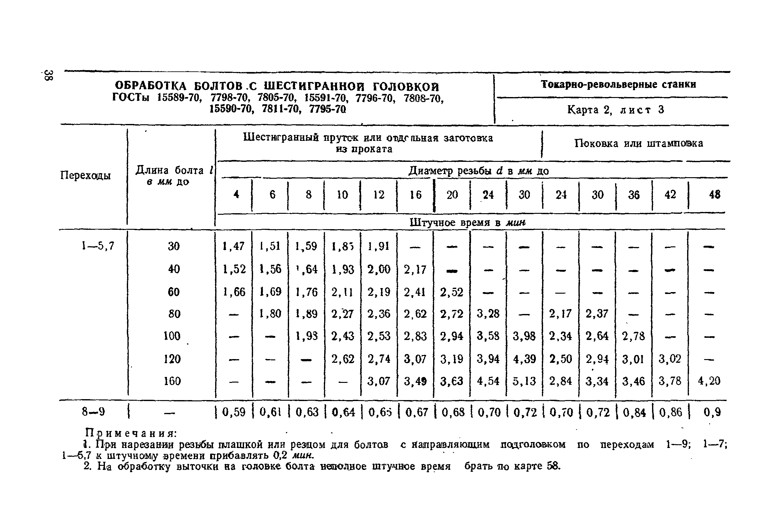 | Оглавление: | 1. Общая часть Перечень крепежных деталей, охваченных типовыми нормами времени Примеры расчета нормы времени 1. Типовые нормы времени на обработку крепежных деталей на токарных и токарно-револьверных станках 2. Типовые нормы времени на обработку крепежных деталей на одношпиндельных токарных автоматах 3. Типовые нормы времени на обработку крепежных деталей на фрезерных, сверлильных, шлифовальных и других станках 4. Подготовительно-заключительное время Приложение 1. Режимы резания для сталей (приближенные значения) Приложение 2. Пример заполнения инструкционно-эксплуатационной карты для выбора режимов резания |