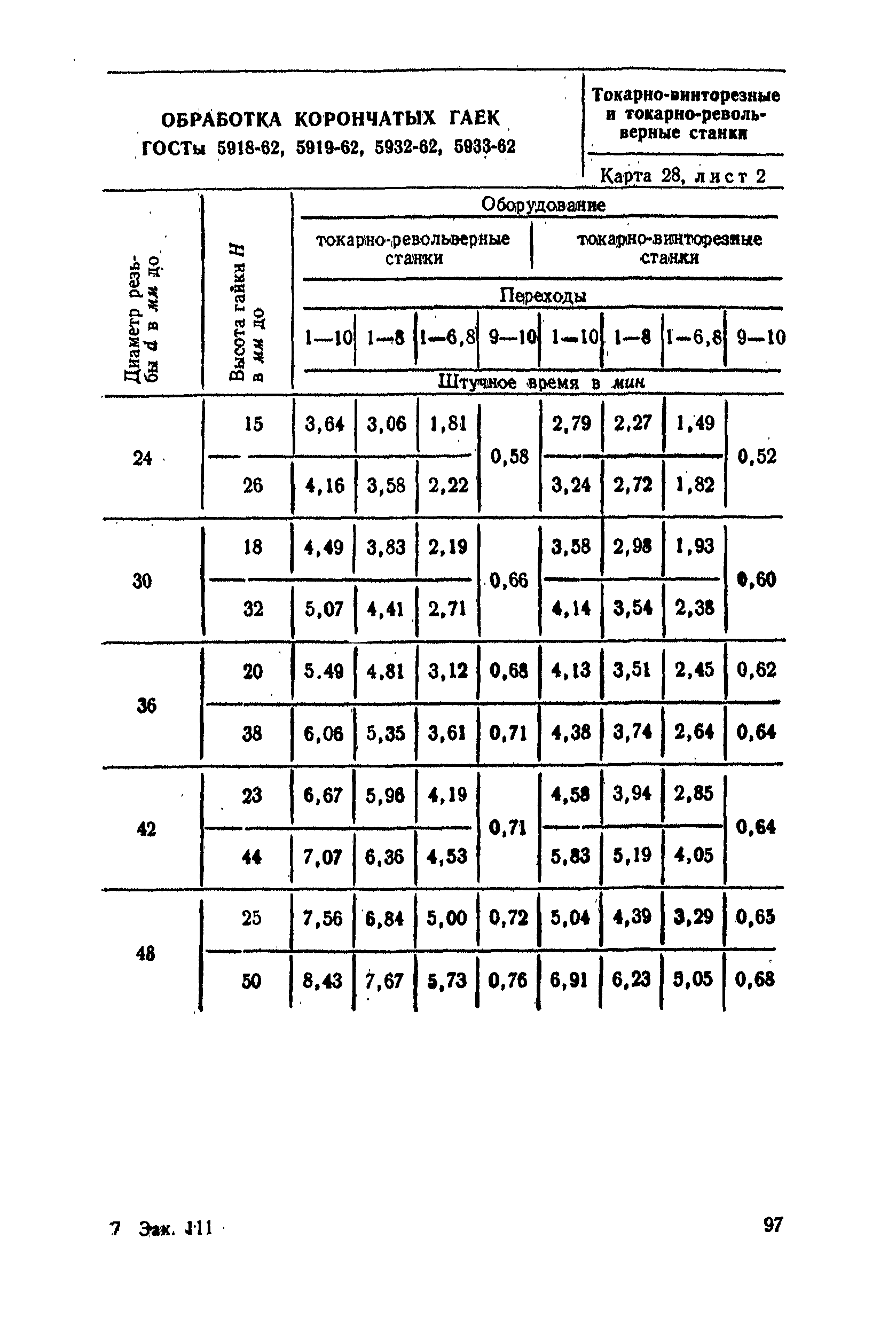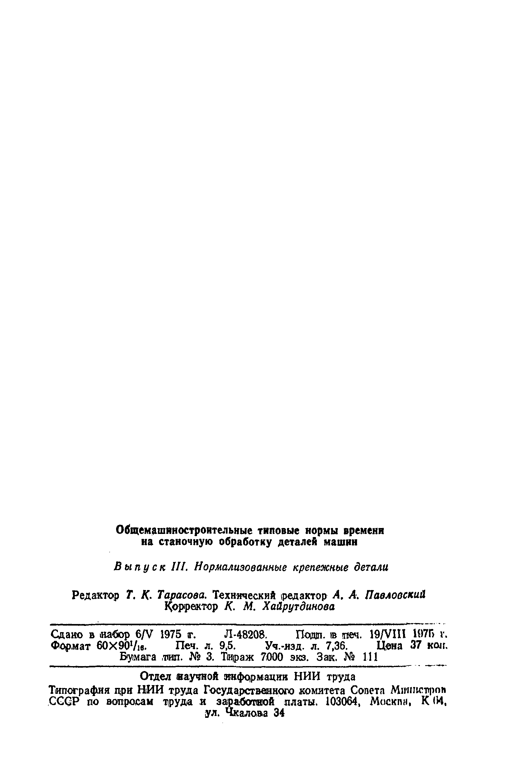 | Название рус.: | Общемашиностроительные типовые нормы времени на станочную обработку деталей машин. Выпуск III. Нормализованные крепежные детали |