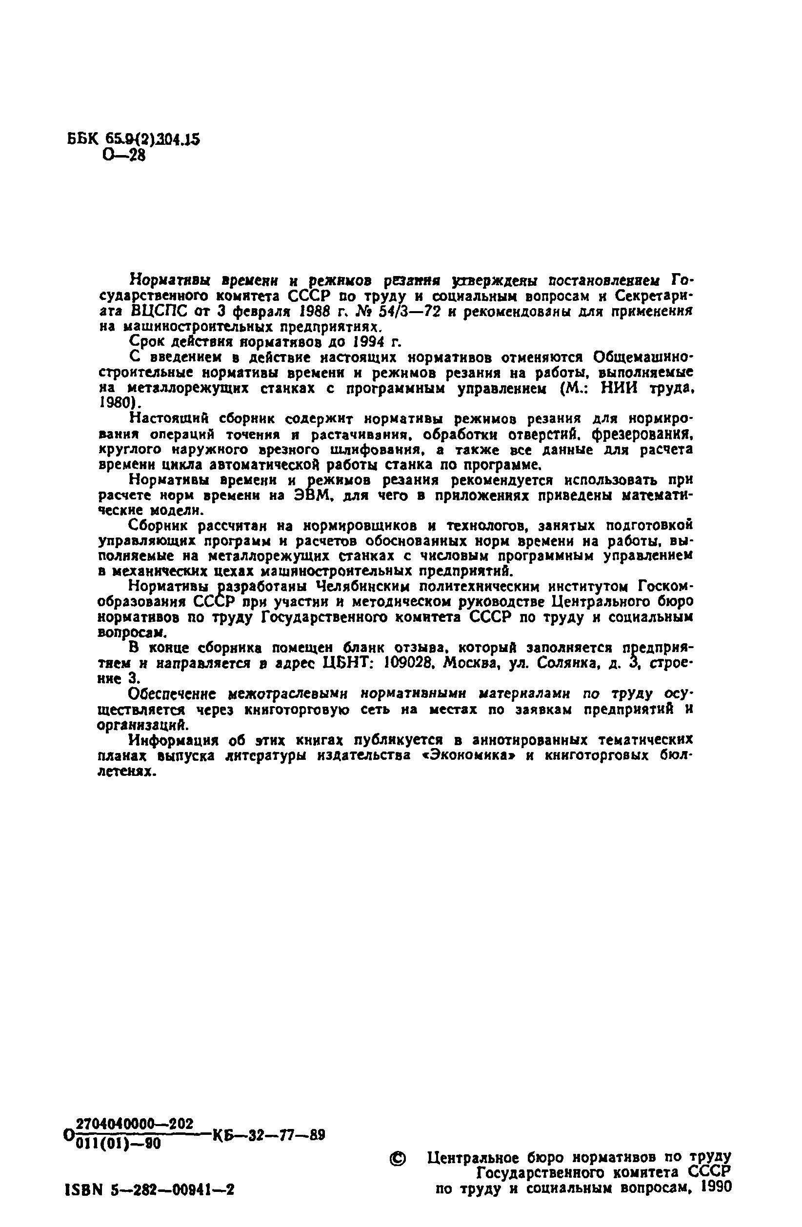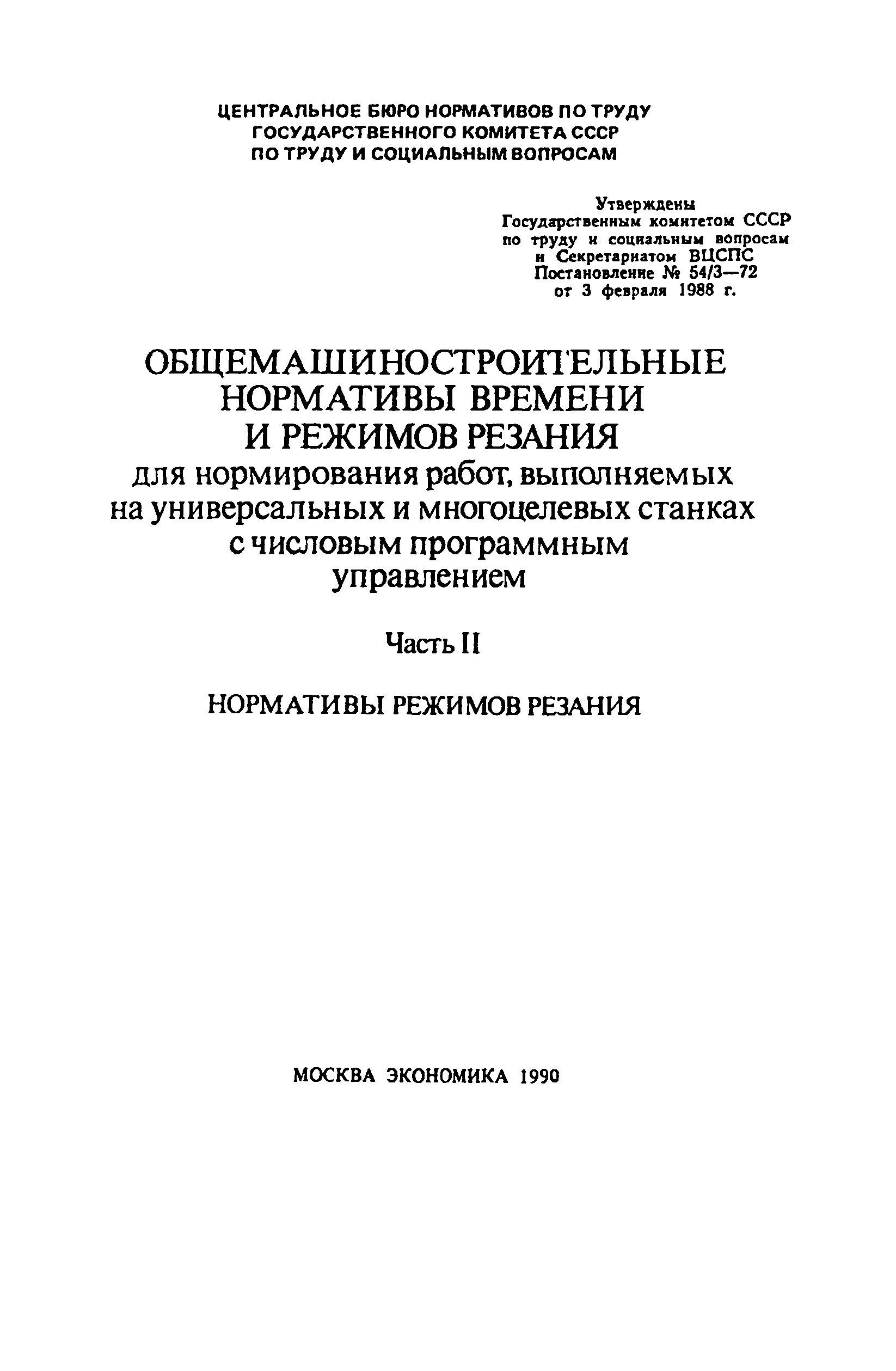 | Название рус.: | Общемашиностроительные нормативы времени и режимов резания для нормирования работ, выполняемых на универсальных и многоцелевых станках с числовым программным управлением. Часть II. Нормативы режимов резания |