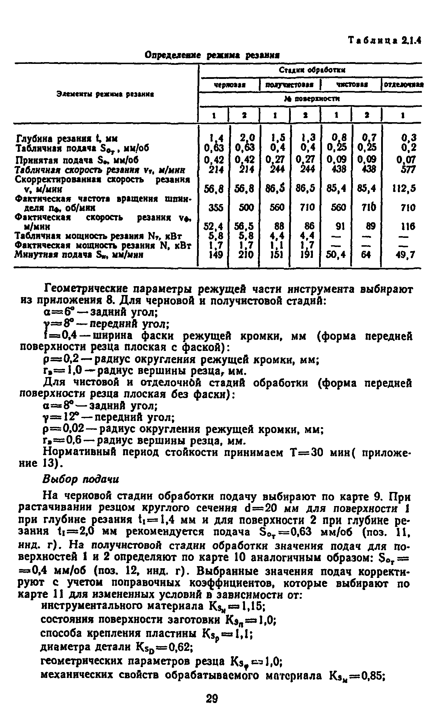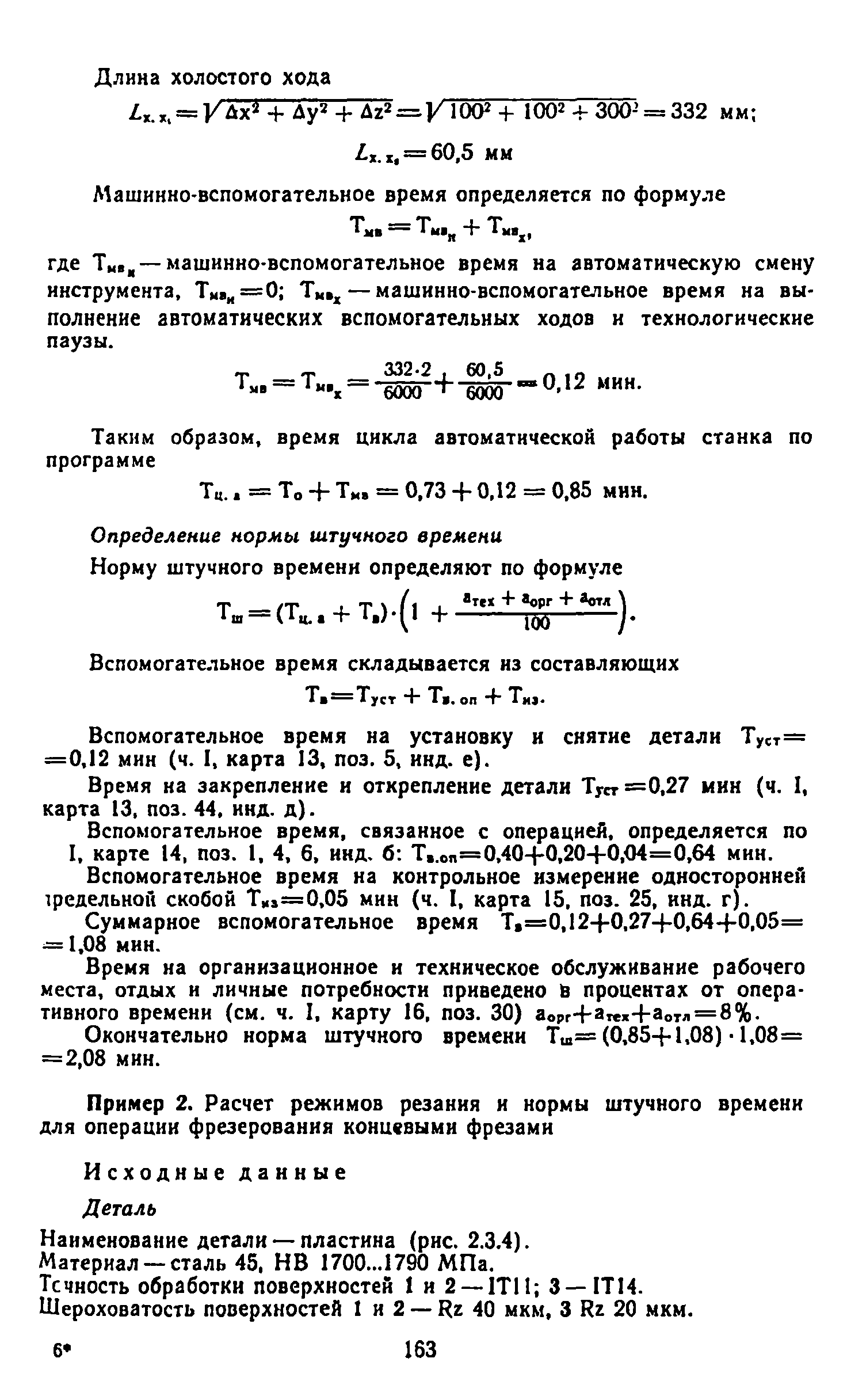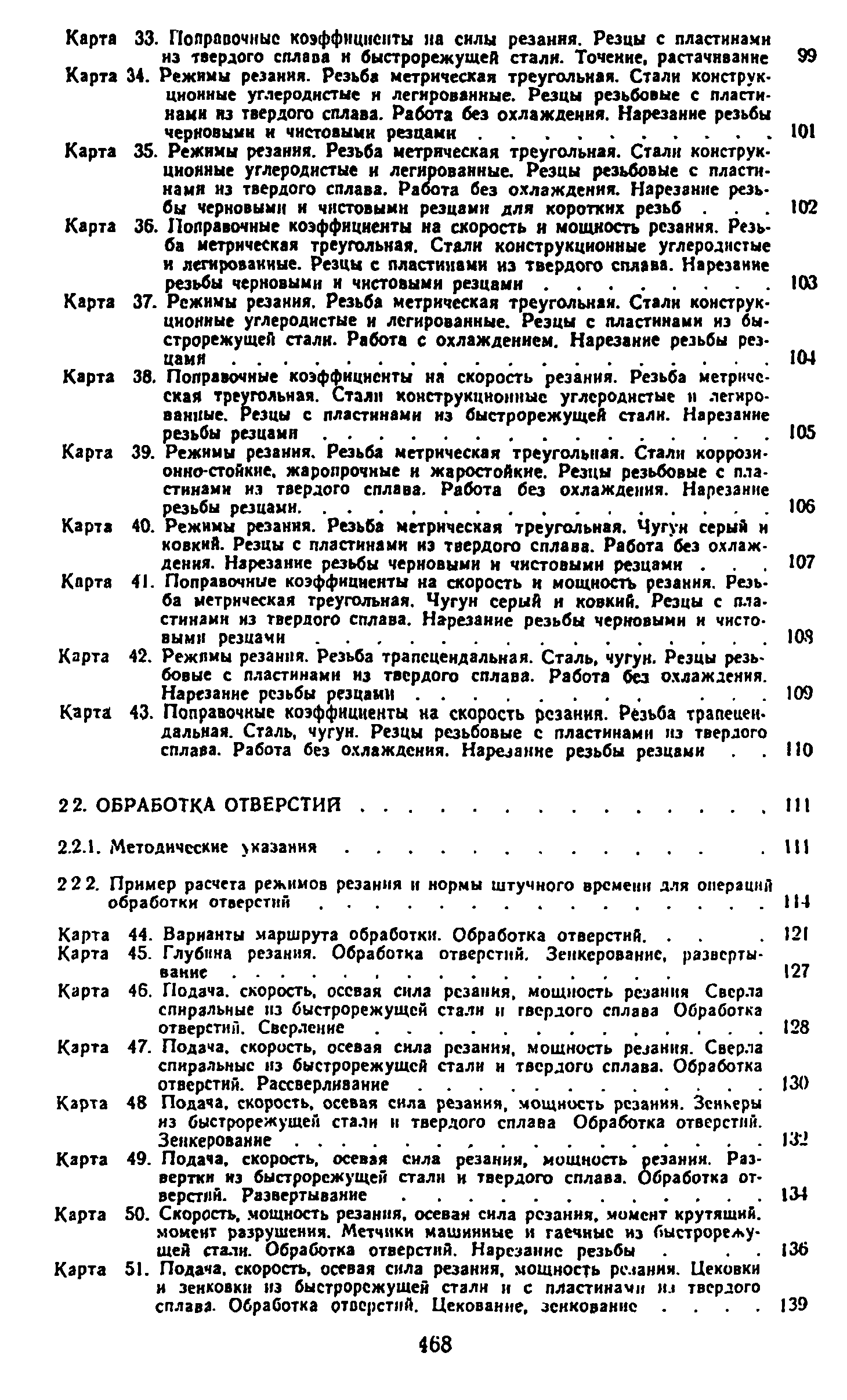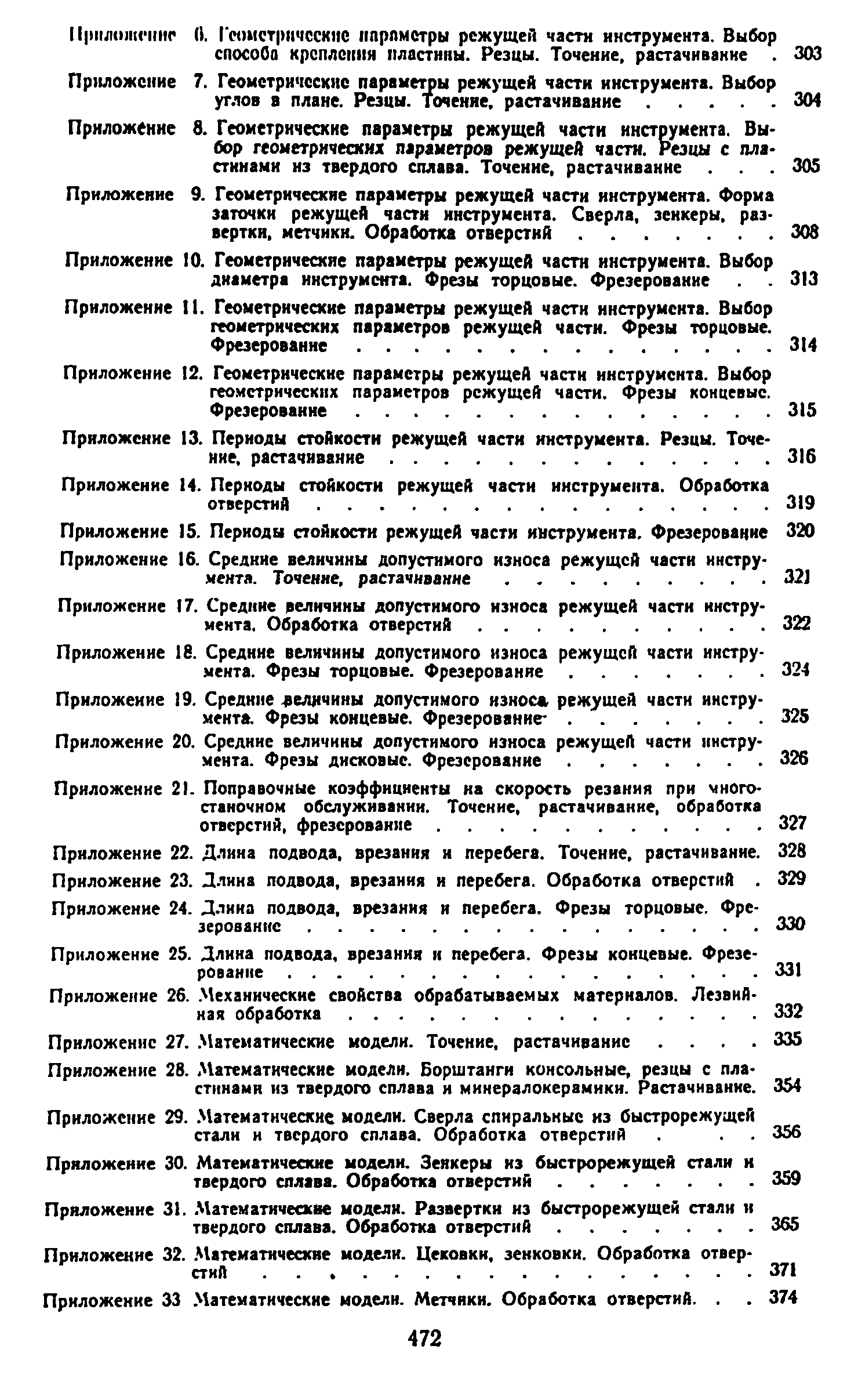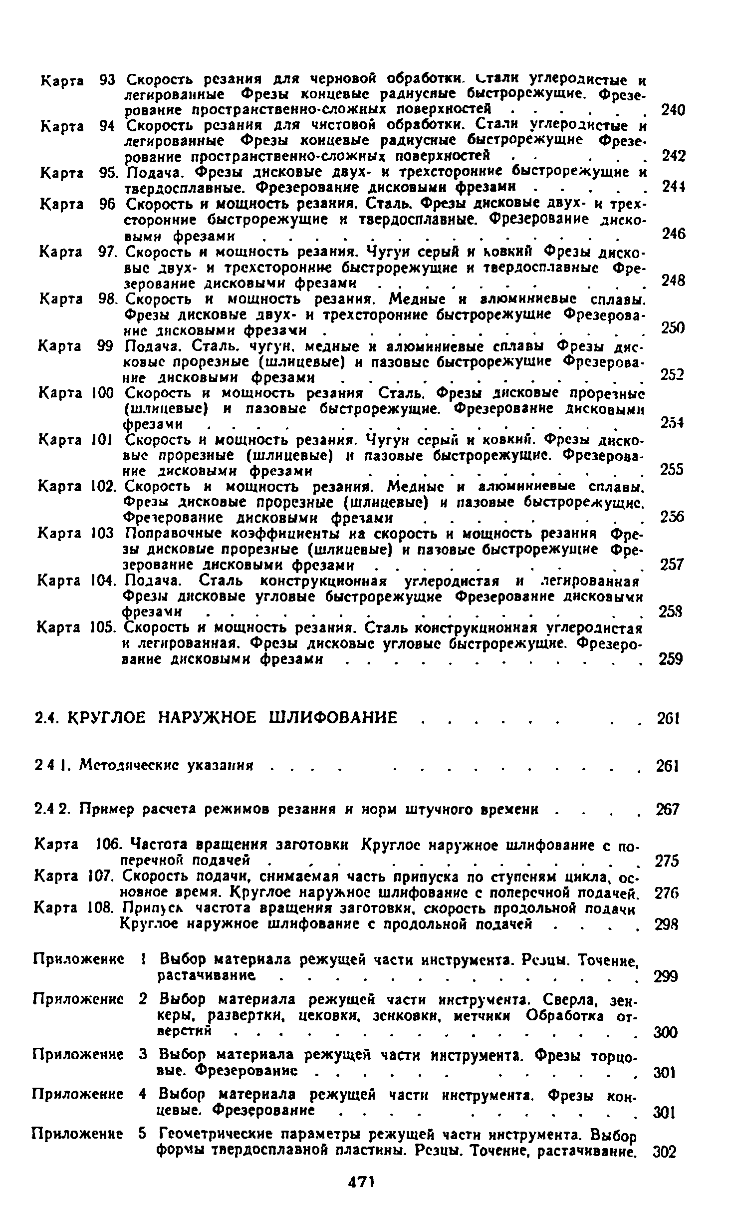 | Оглавление: | Основные условные обозначения и размерности 1. Общая часть 2. Нормативы режимов резания 2.1. Точение и растачивание 2.1.2. Примеры расчета режимов резания и норм штучного времени 2.2. Обработка отверстий 2.2.1. Методические указания 2.2.2. Пример расчета режимов резания и нормы штучного времени для операций обработки отверстий 2.3. Фрезерование 2.3.1. Методические указания 2.3.1.1. Фрезерование плоскостей торцовыми фрезами 2.3.1.2. Фрезерование концевыми фрезами 2.3.1.3. Объемное фрезерование концевыми радиусными фрезами 2.3.1.4. Фрезерование дисковыми фрезами 2.3.2. Примеры расчета режимов резания и норм штучного времени 2.4. Круглое наружное шлифование 2.4.1. Методические указания 2.4.2. Пример расчета режимов резания и норм штучного времени Приложения |