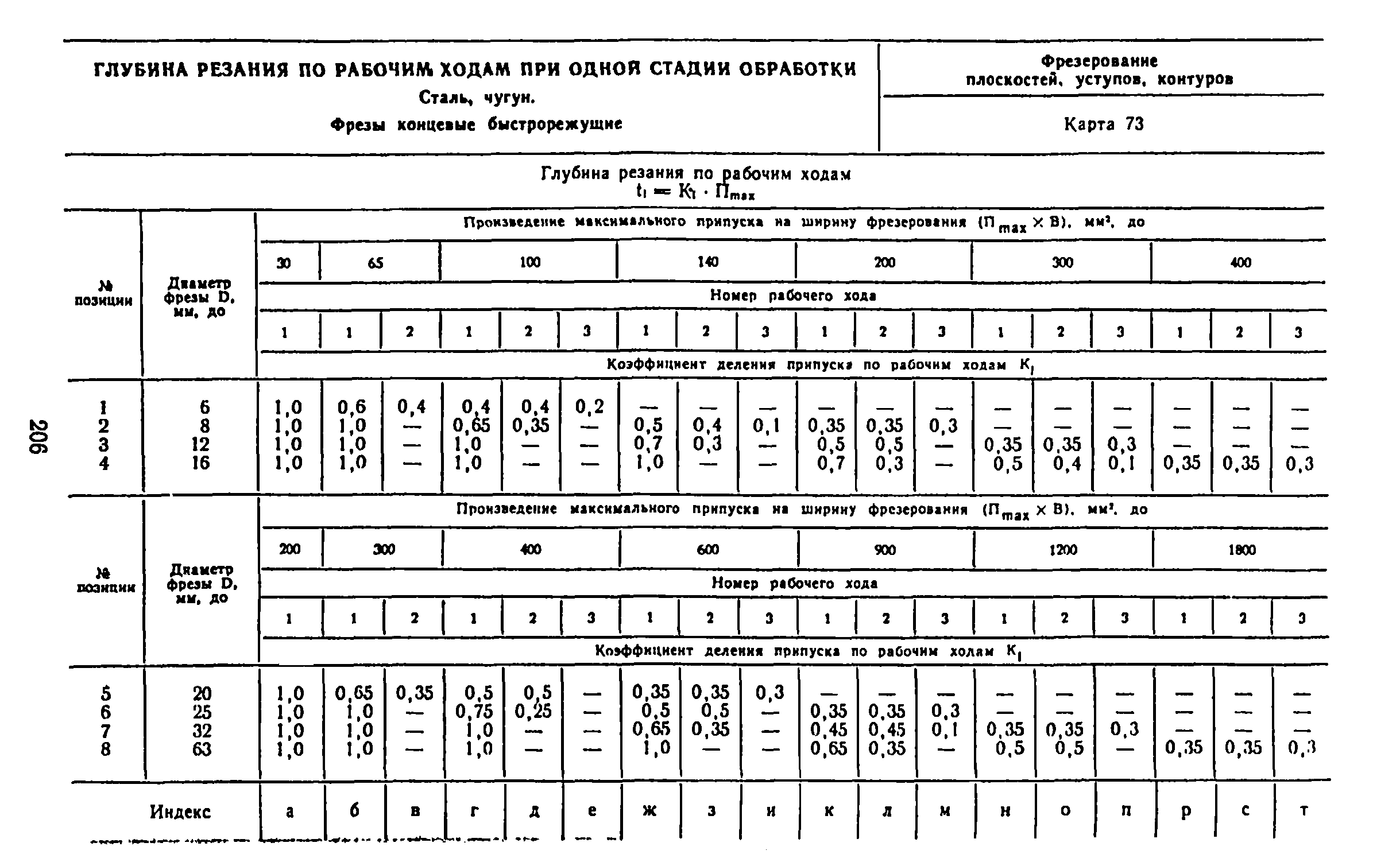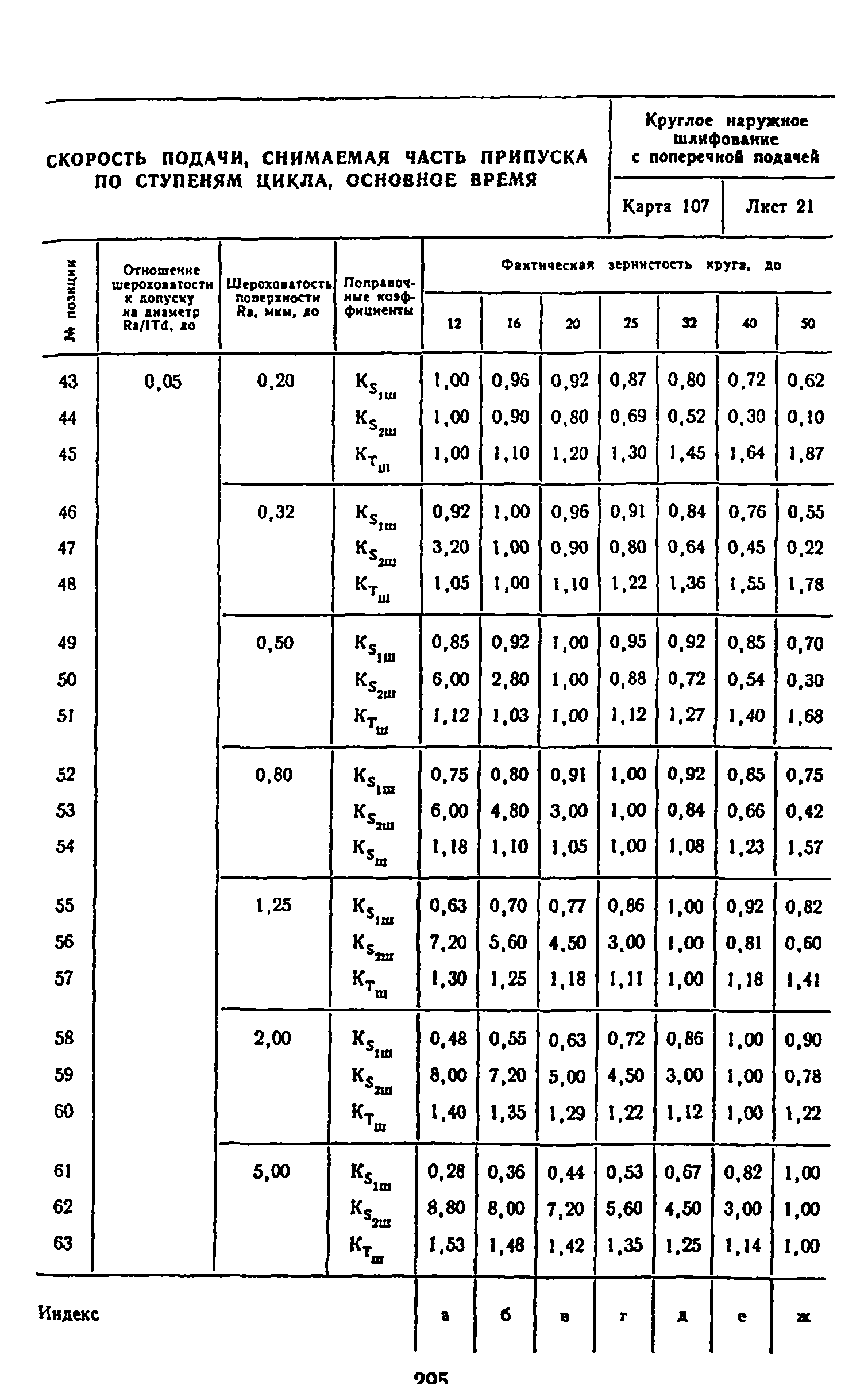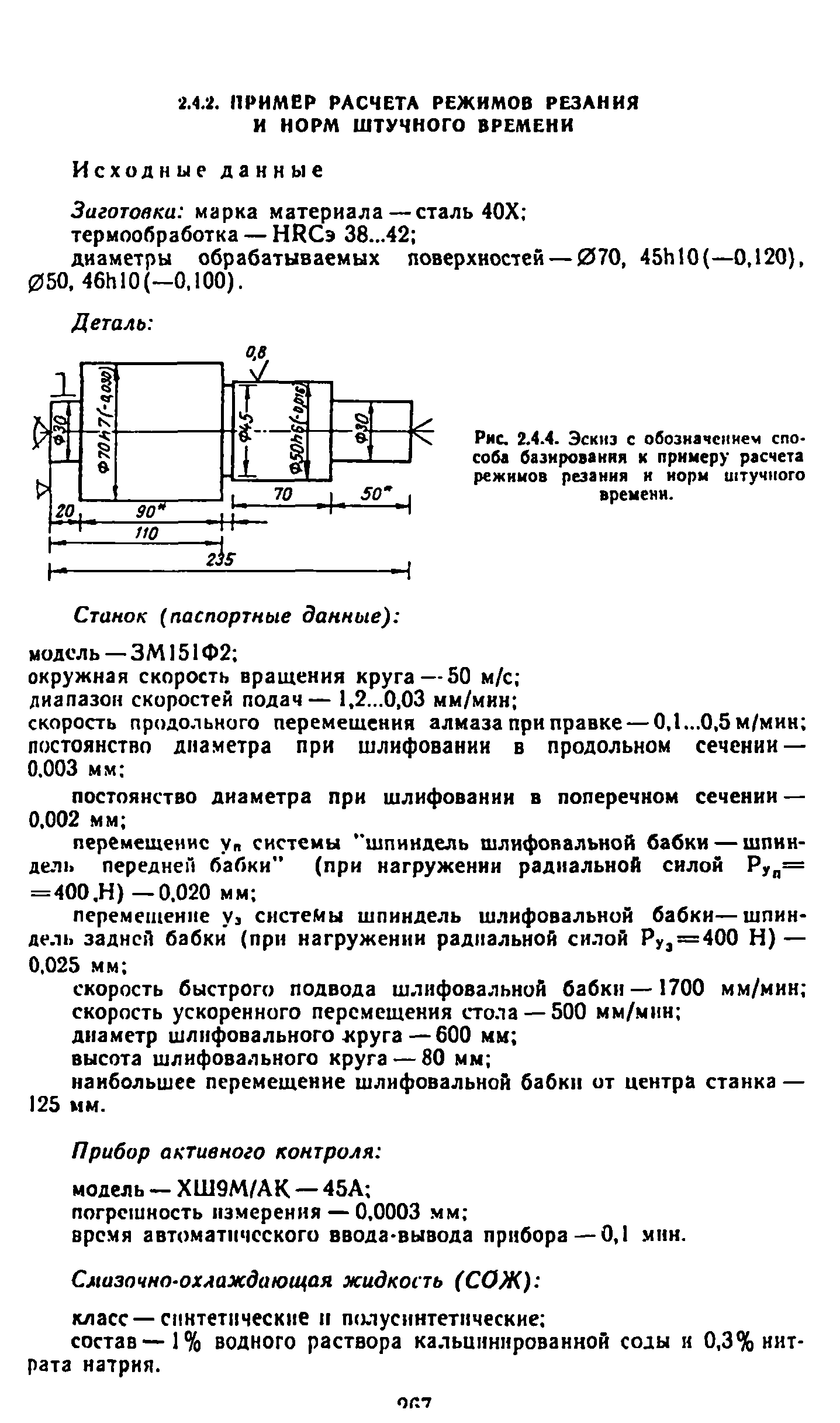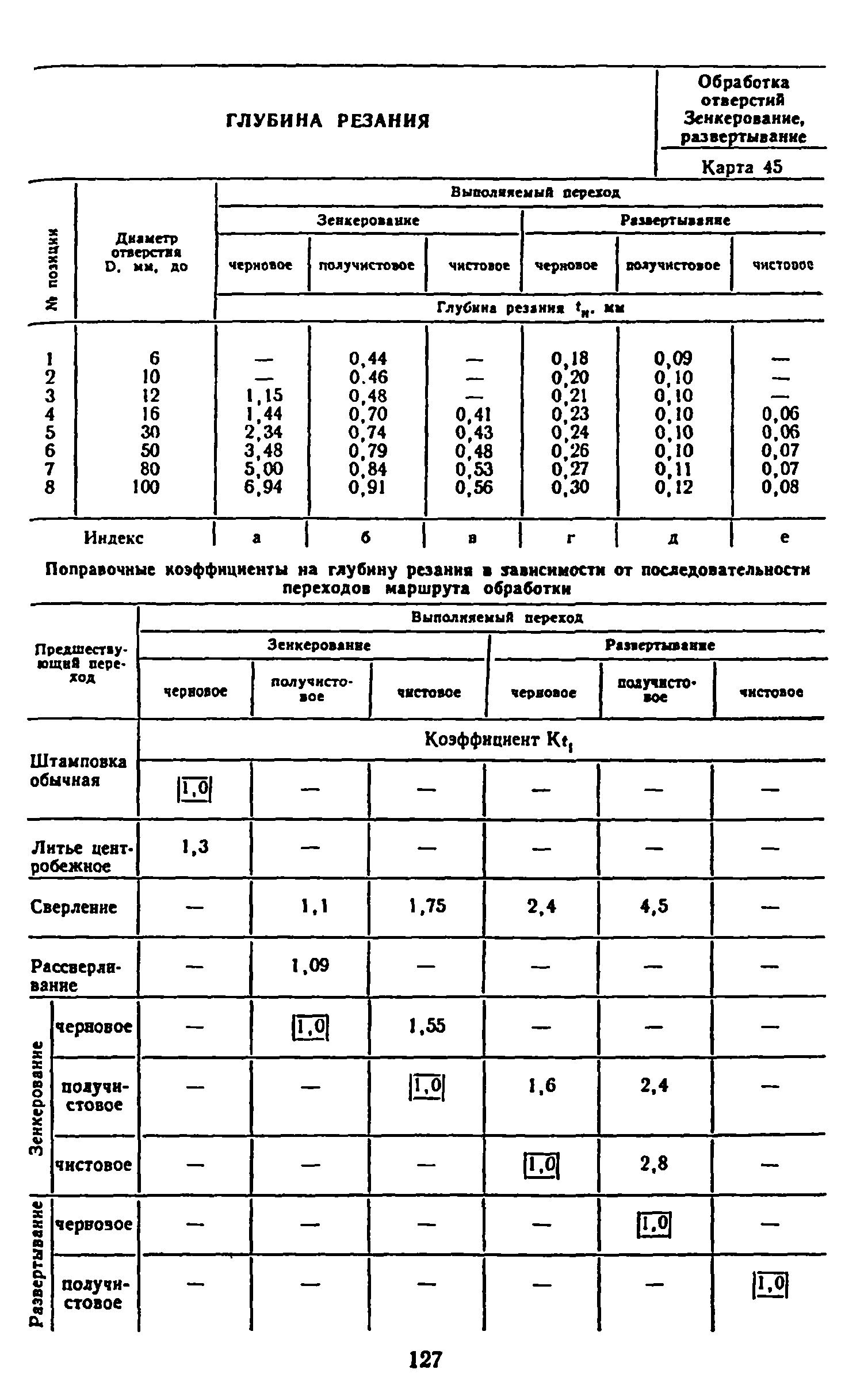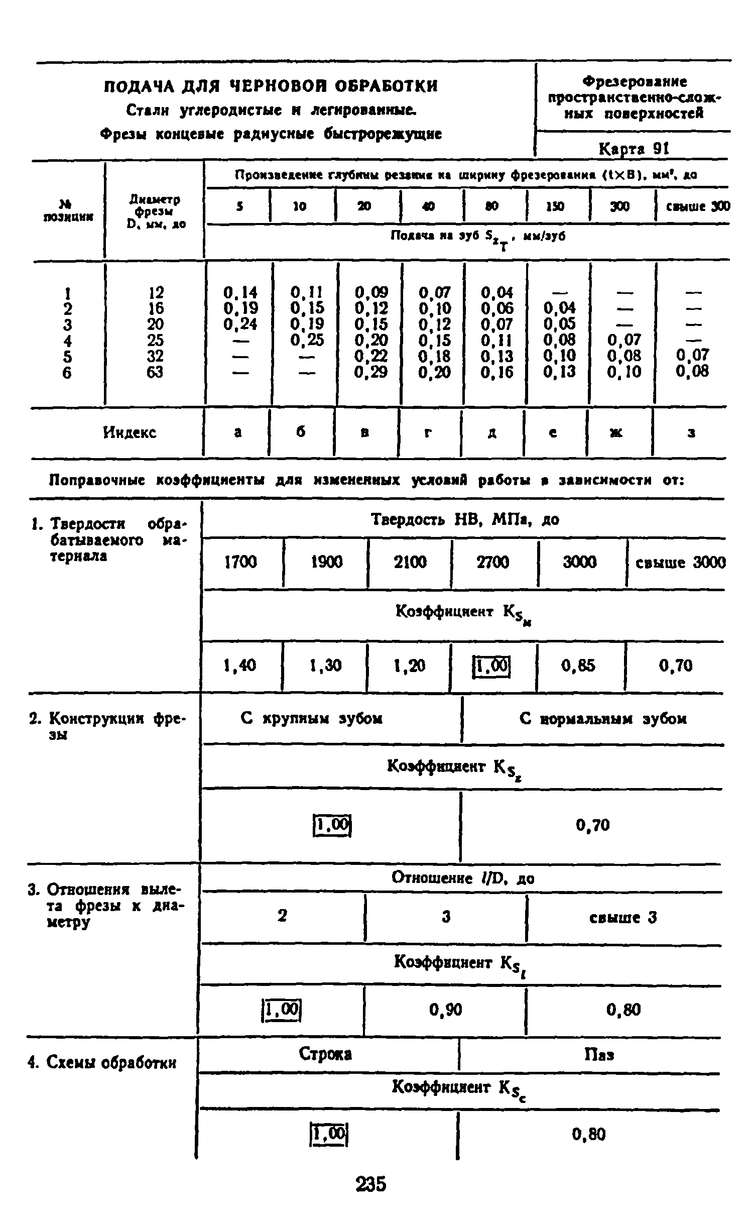 | Оглавление: | Основные условные обозначения и размерности 1. Общая часть 2. Нормативы режимов резания 2.1. Точение и растачивание 2.1.2. Примеры расчета режимов резания и норм штучного времени 2.2. Обработка отверстий 2.2.1. Методические указания 2.2.2. Пример расчета режимов резания и нормы штучного времени для операций обработки отверстий 2.3. Фрезерование 2.3.1. Методические указания 2.3.1.1. Фрезерование плоскостей торцовыми фрезами 2.3.1.2. Фрезерование концевыми фрезами 2.3.1.3. Объемное фрезерование концевыми радиусными фрезами 2.3.1.4. Фрезерование дисковыми фрезами 2.3.2. Примеры расчета режимов резания и норм штучного времени 2.4. Круглое наружное шлифование 2.4.1. Методические указания 2.4.2. Пример расчета режимов резания и норм штучного времени Приложения |