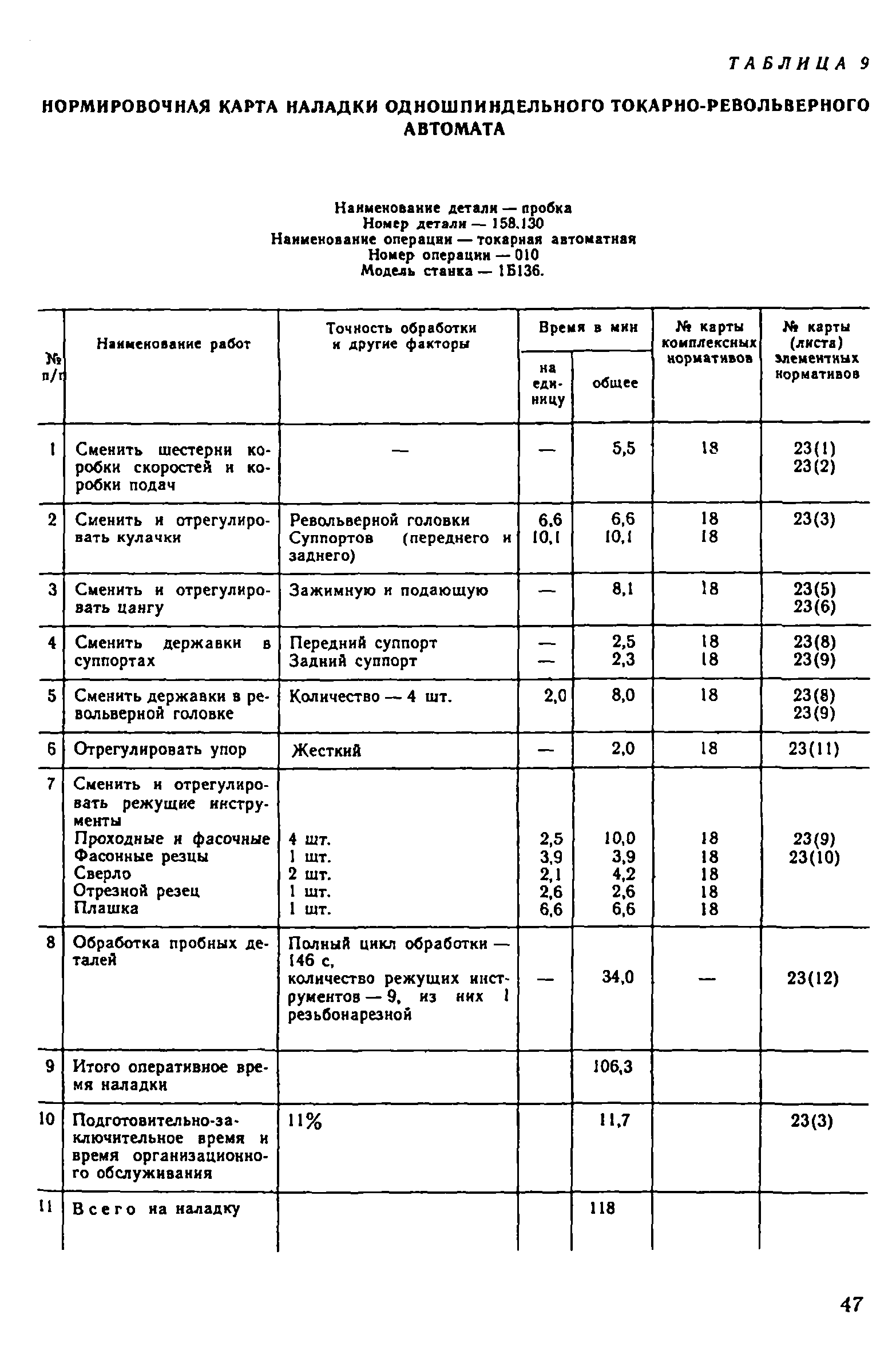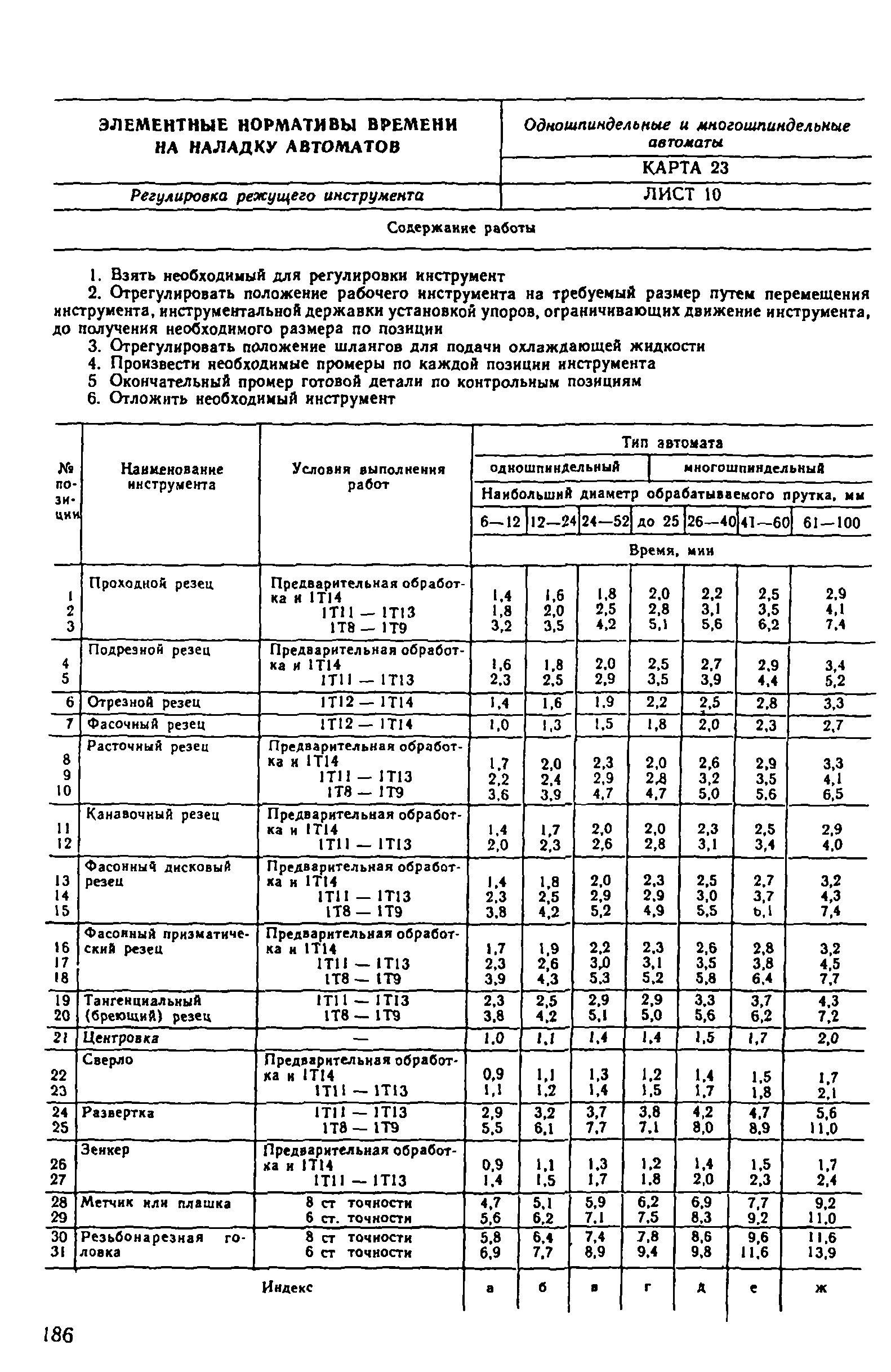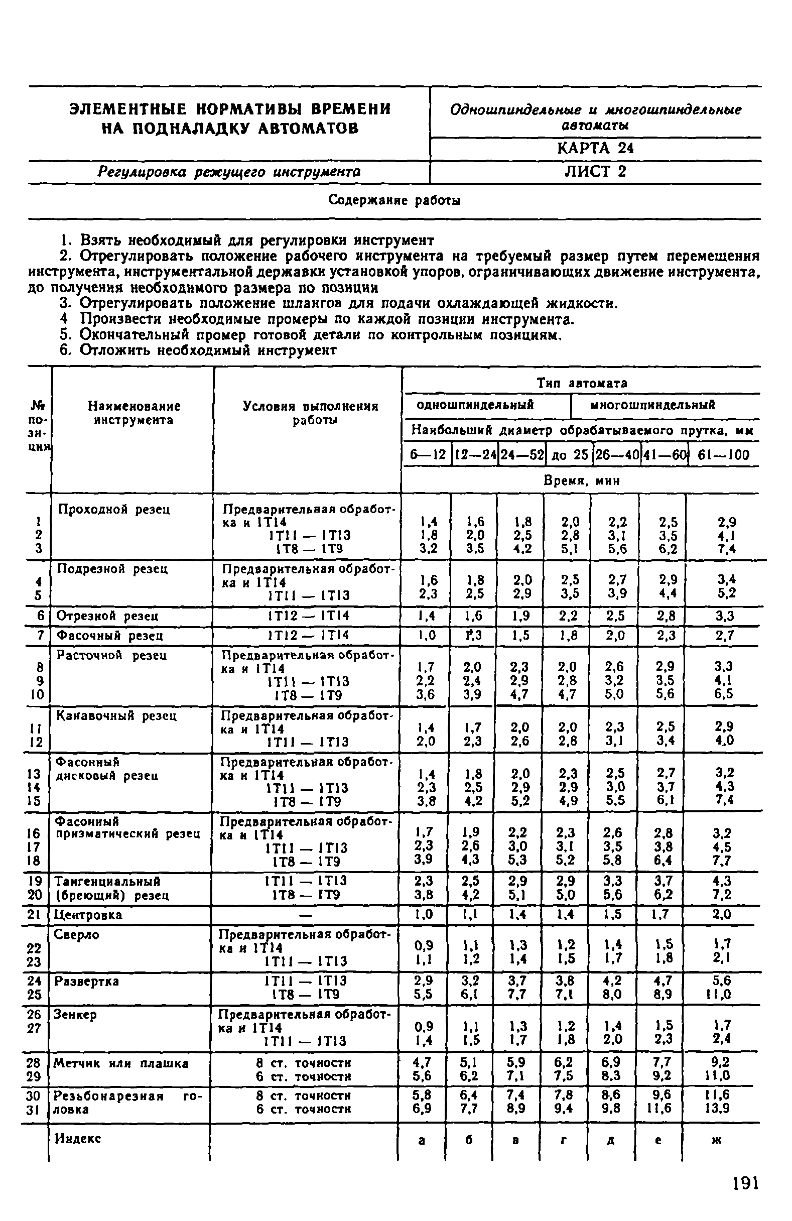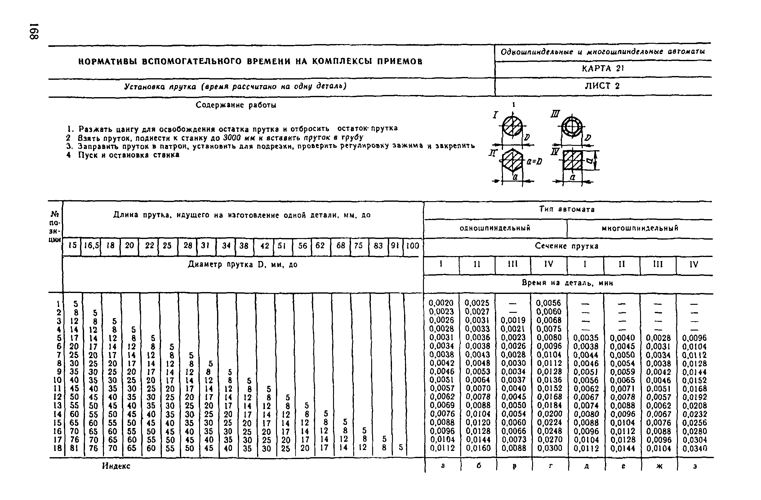 | Область применения: | Нормативы времени и режимов резания предназначены для расчета норм времени на операции, выполняемые на одношпиндельных токарно-револьверных или многошпиндельных токарных станках-автоматах и рекомендуются для применения на предприятиях машиностроения и металлообработки независимо от ведомственной подчиненности |