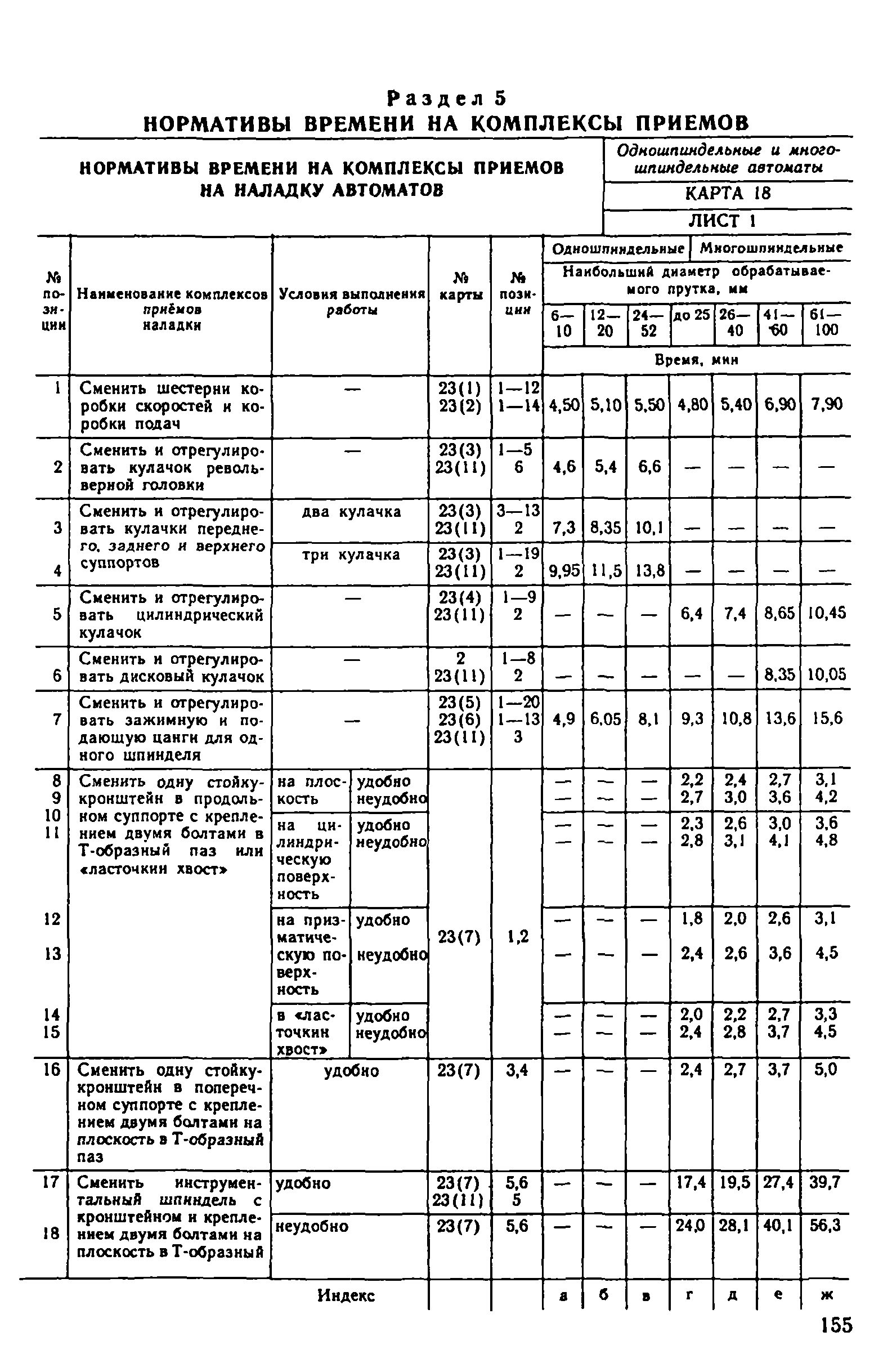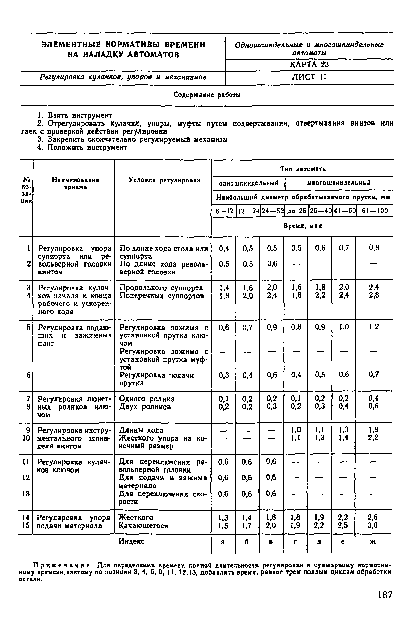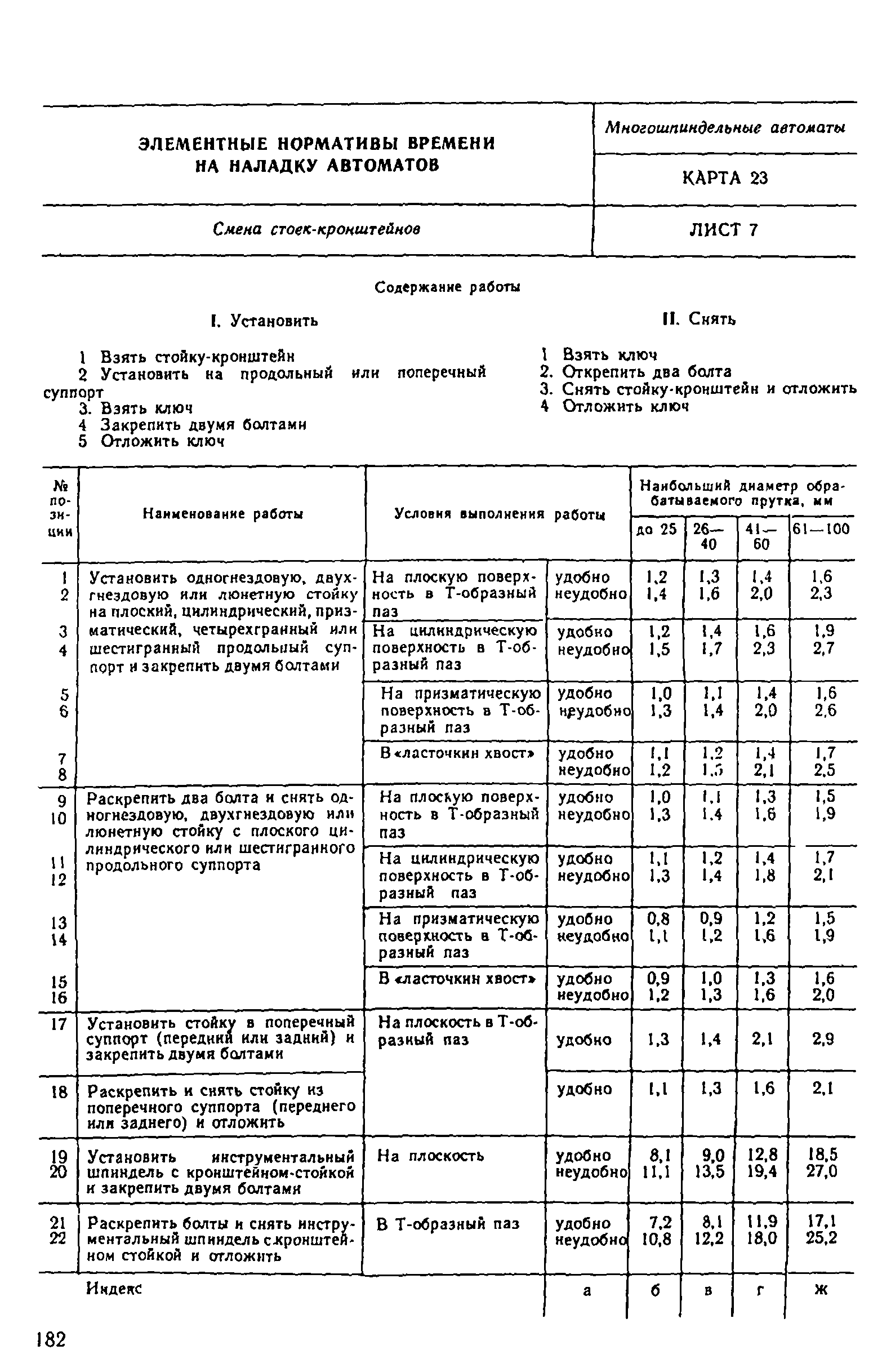 | Область применения: | Нормативы времени и режимов резания предназначены для расчета норм времени на операции, выполняемые на одношпиндельных токарно-револьверных или многошпиндельных токарных станках-автоматах и рекомендуются для применения на предприятиях машиностроения и металлообработки независимо от ведомственной подчиненности |