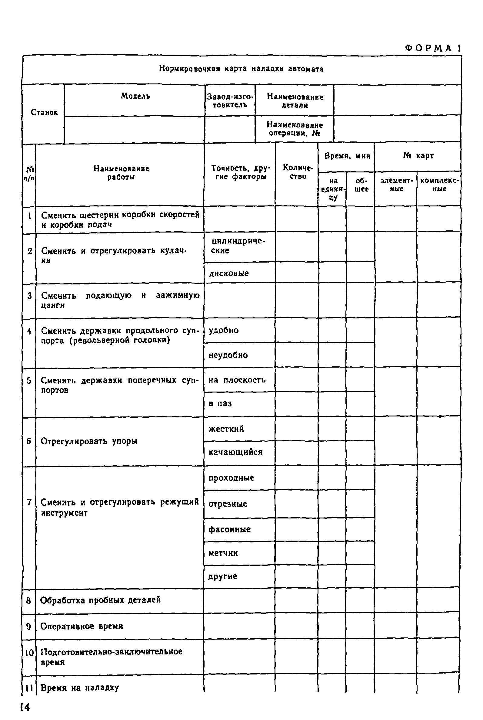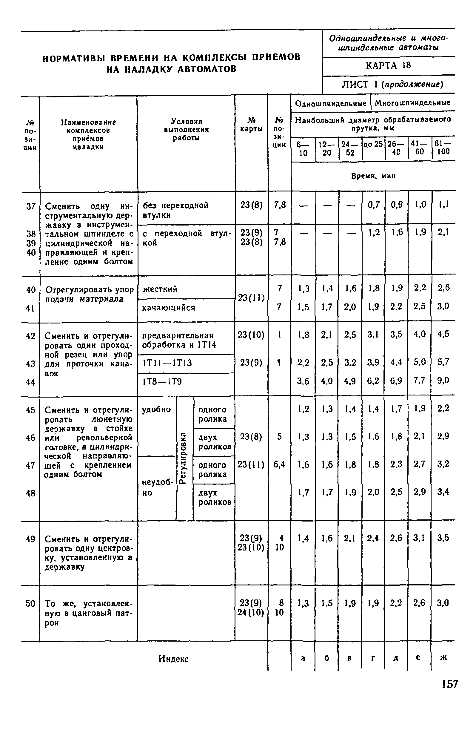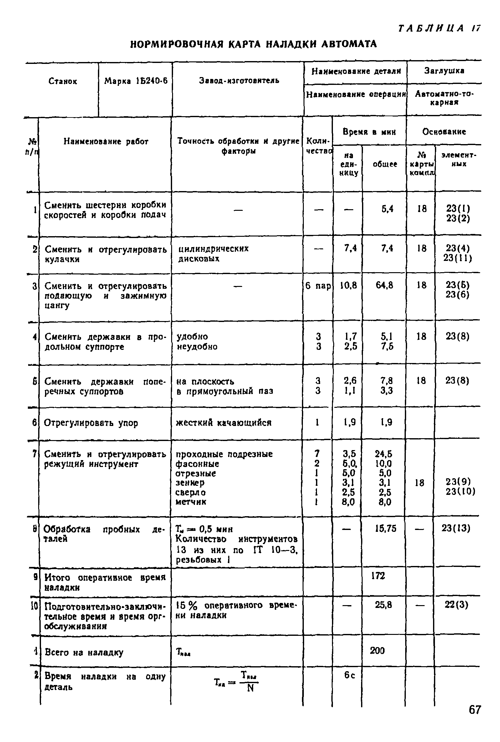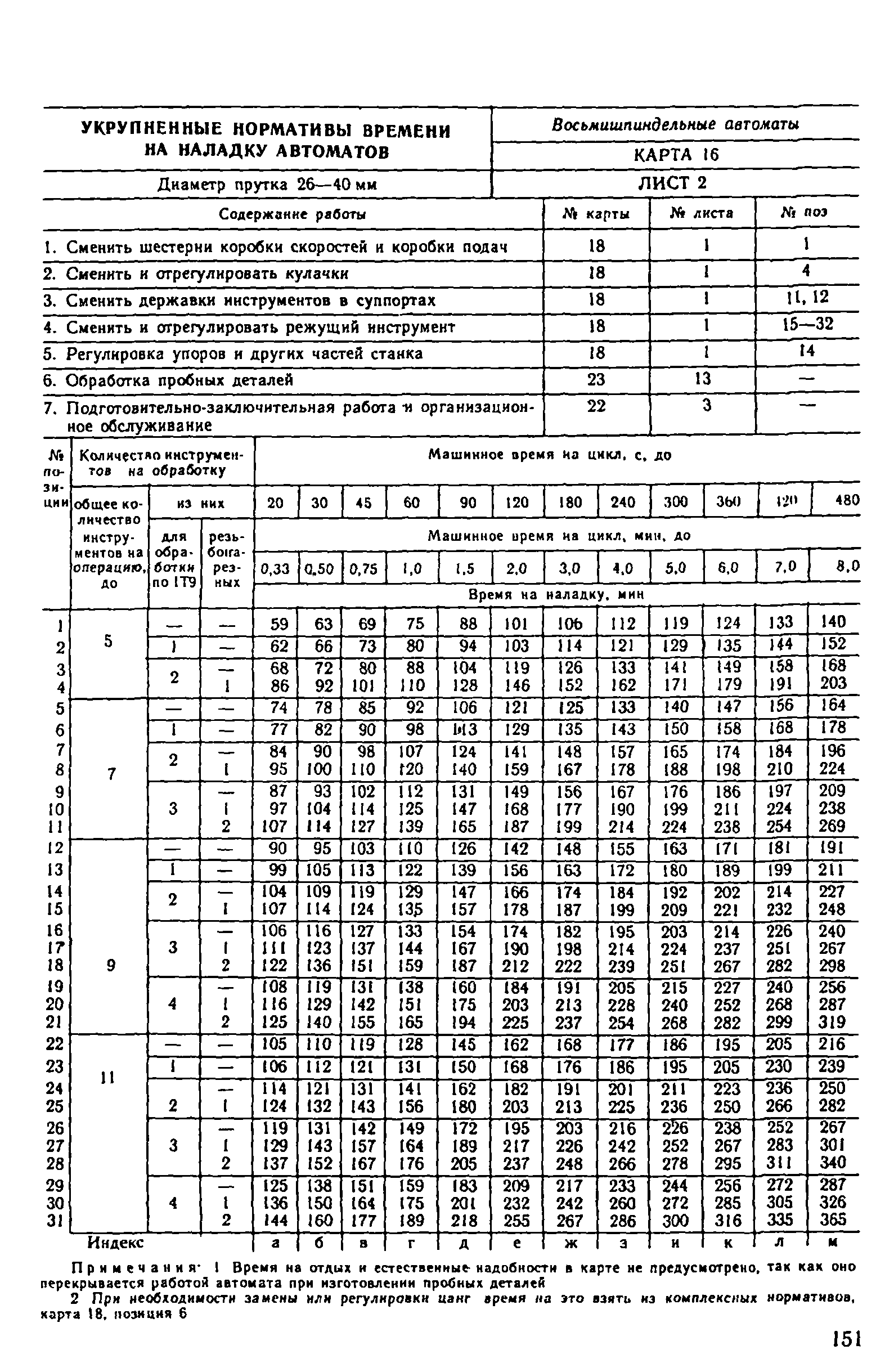 | Область применения: | Нормативы времени и режимов резания предназначены для расчета норм времени на операции, выполняемые на одношпиндельных токарно-револьверных или многошпиндельных токарных станках-автоматах и рекомендуются для применения на предприятиях машиностроения и металлообработки независимо от ведомственной подчиненности |