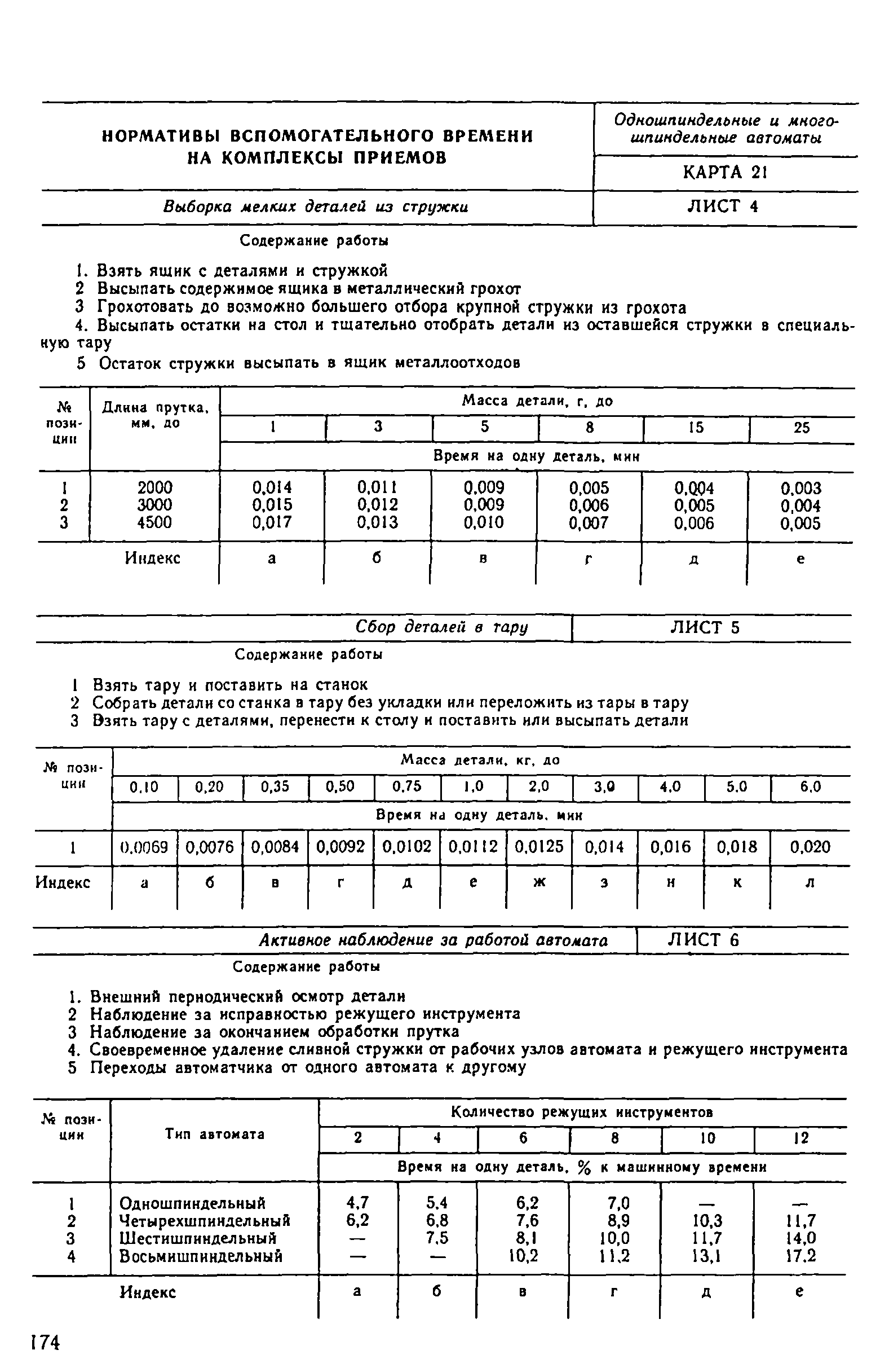 | Оглавление: | Условные обозначения Общая часть 1. Назначение и структура нормативов 2. Методические указания 3. Примеры расчета режимов резания, норм времени и кулачков при обработке деталей на автоматах 4. Организация работ на токарных автоматах Нормативная часть Раздел 1. Общие технологические условия Раздел 2. Наладка автомата Раздел 3. Режимы резания Раздел 4. Укрупненные нормативы времени Раздел 5. Нормативы времени на комплексы приемов Раздел 6. Элементные нормативы времени Приложения |