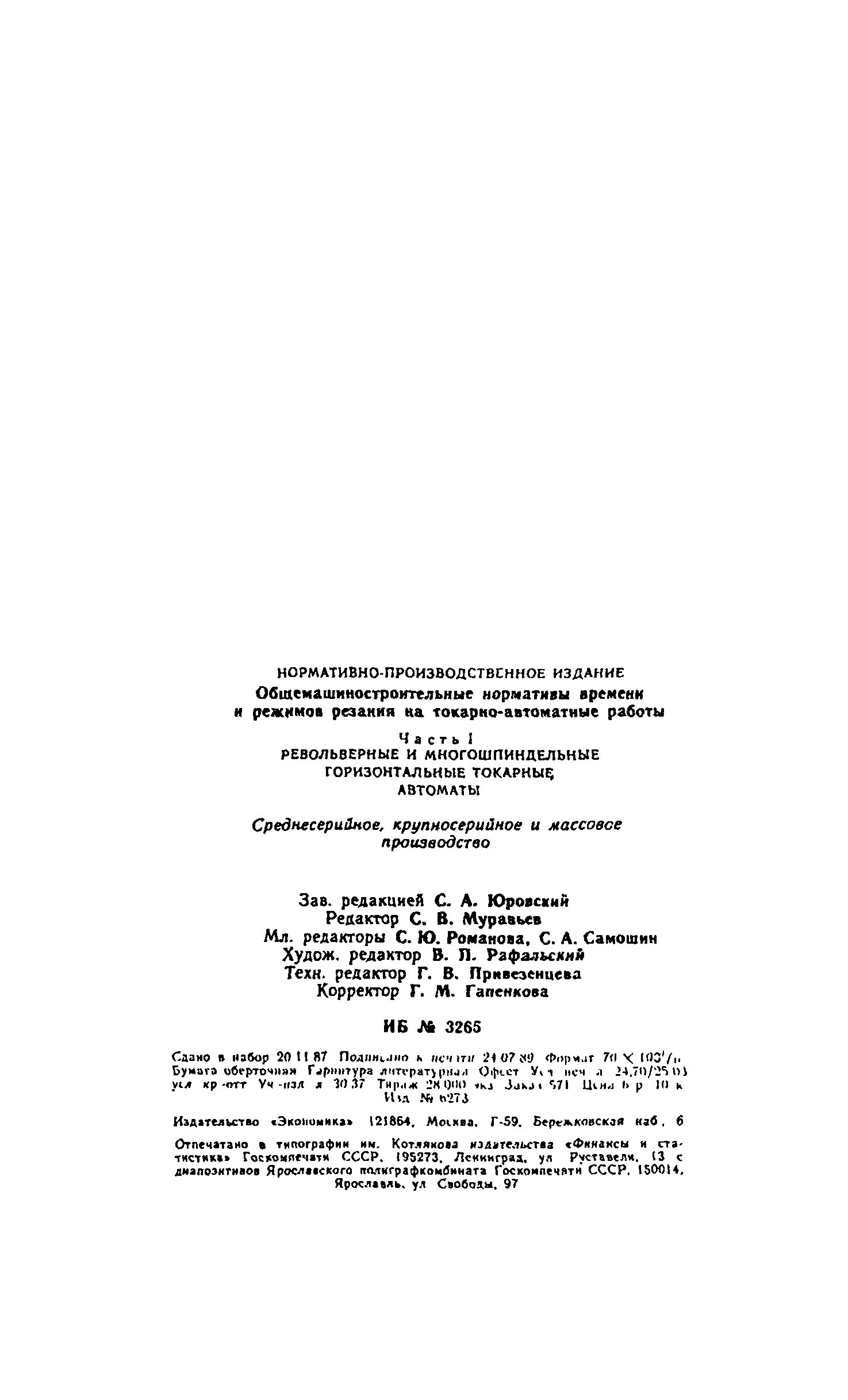 | Название рус.: | Общемашиностроительные нормативы времени и режимов резания на токарно-автоматные работы. Часть I. Револьверные и многошпиндельные горизонтальные токарные автоматы. Среднесерийное, крупносерийное и массовое производство |