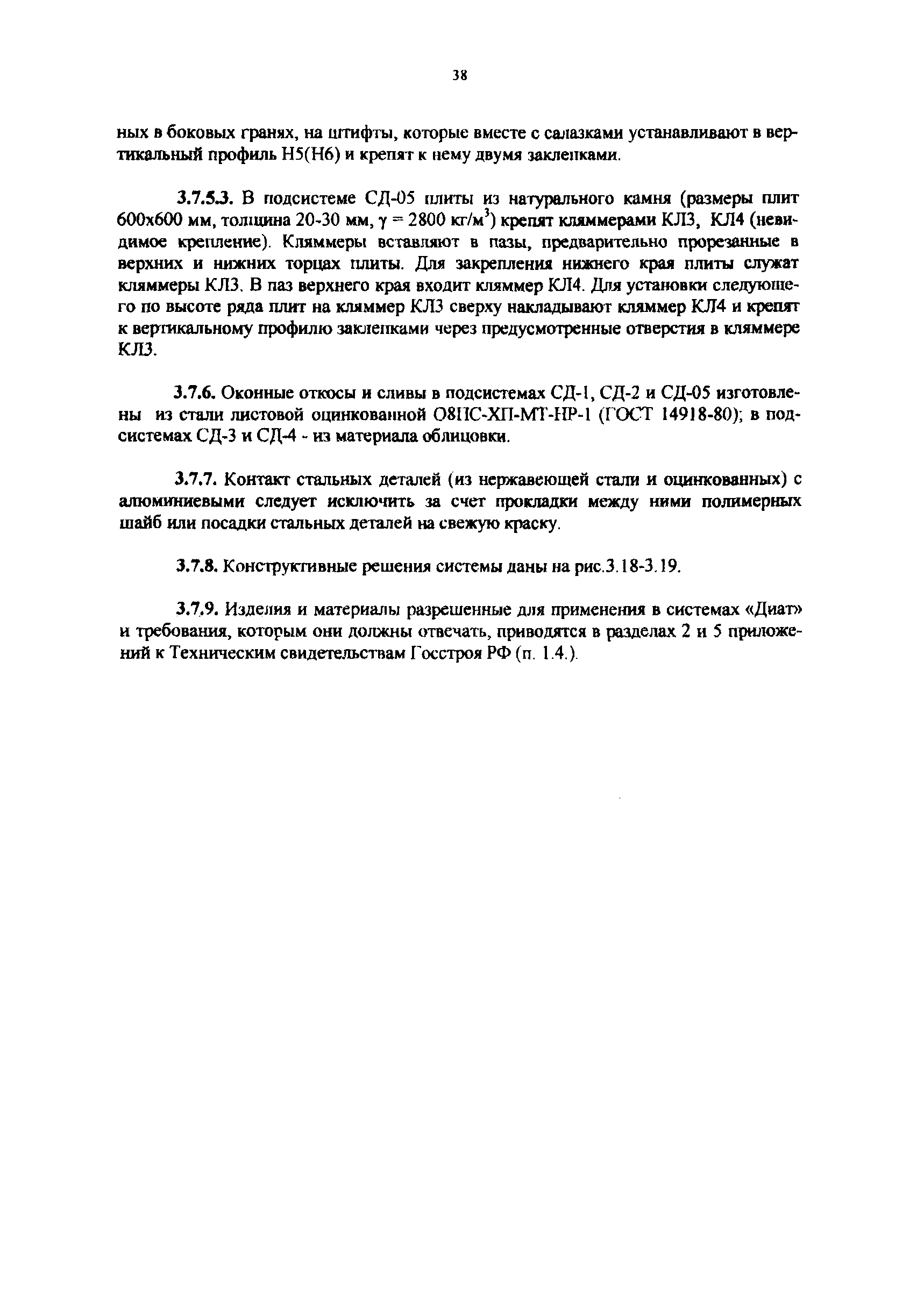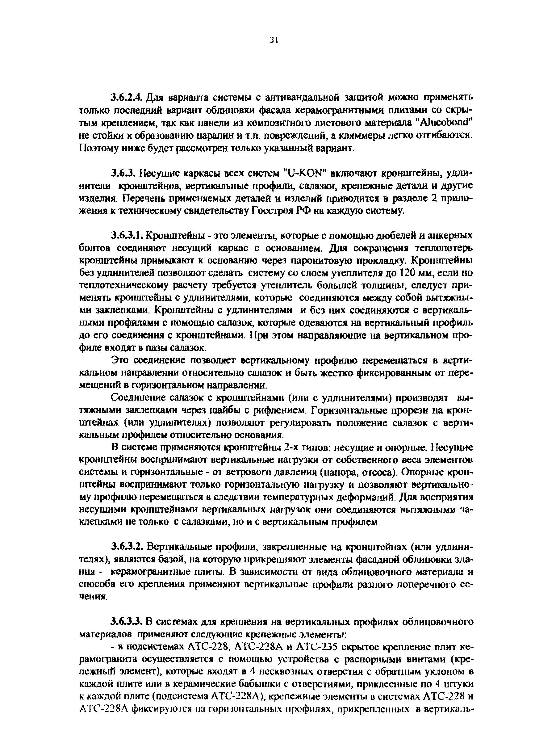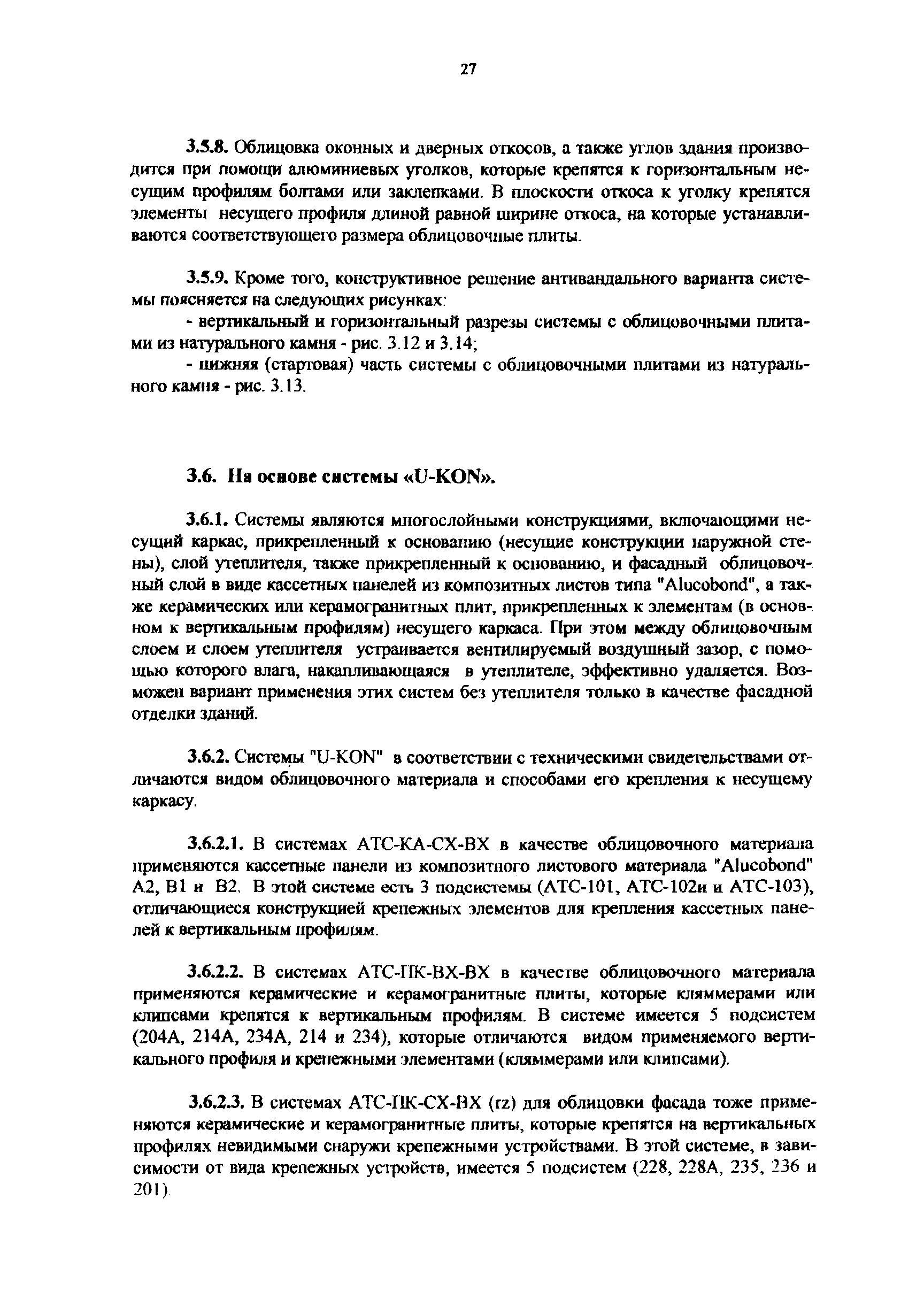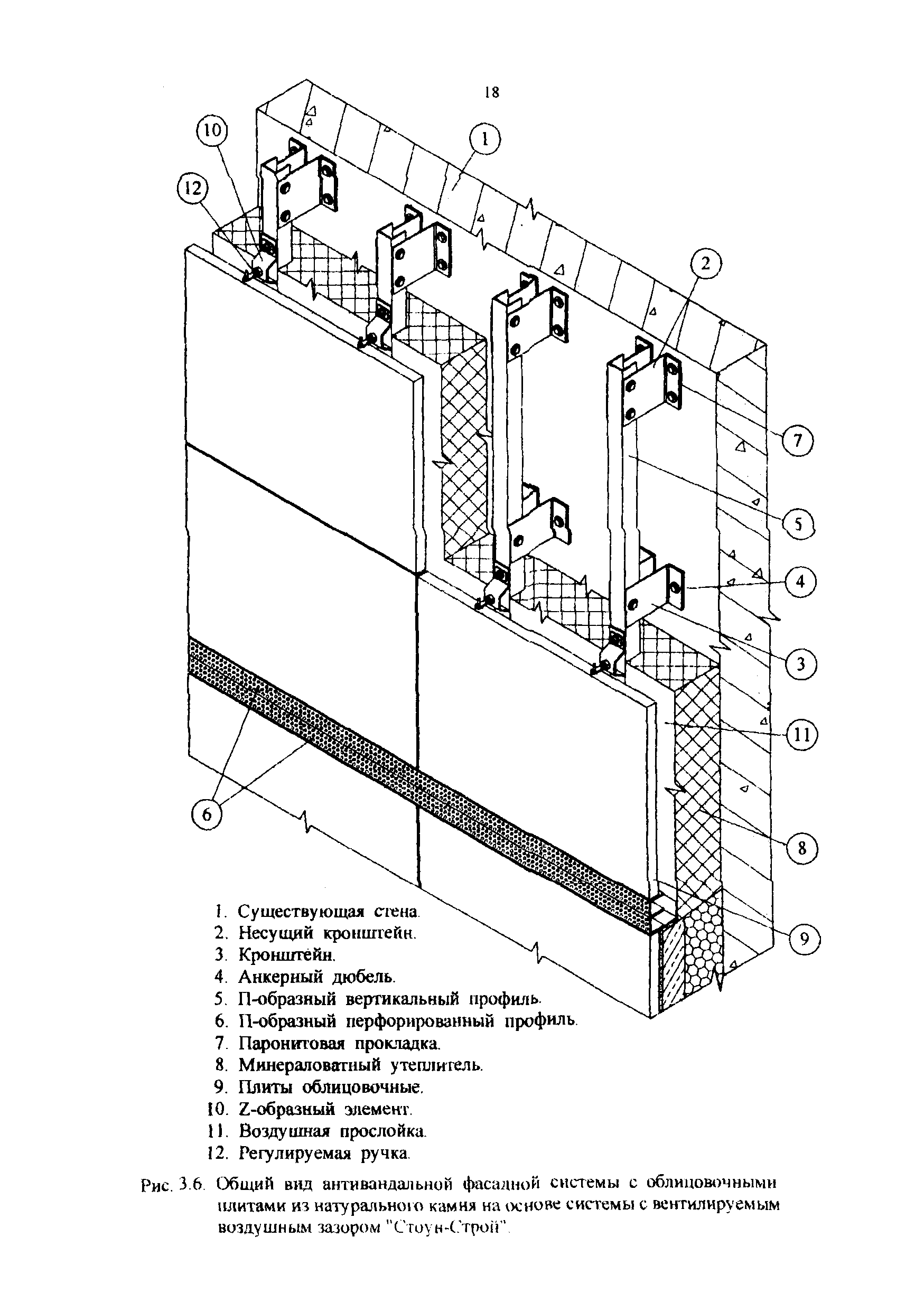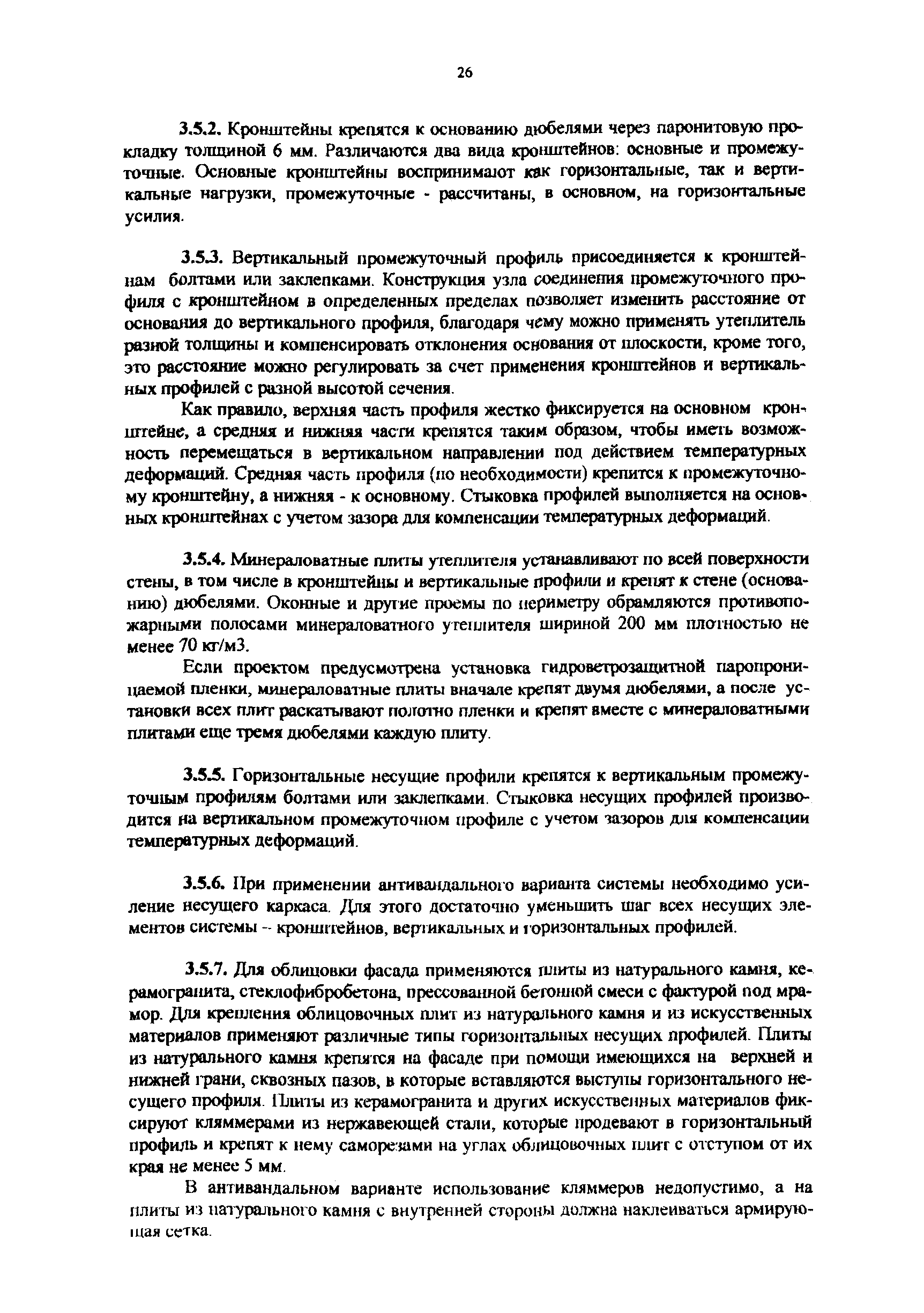 | Оглавление: | 1. Введение 2. Возможные виды вандальных воздействий и предложения по принципиальным защитным техническим решениям 3. Конструктивное решение навесных фасадных систем с защитой от вандальных воздействий 4. Основные положения по конструированию, прочностным и теплотехническим расчетам антивандальных навесных фасадных систем 5. Основные положения по производству работ и контролю качества продукции 6. Технико-экономические показатели 7. Перечень нормативных документов и литературы |
