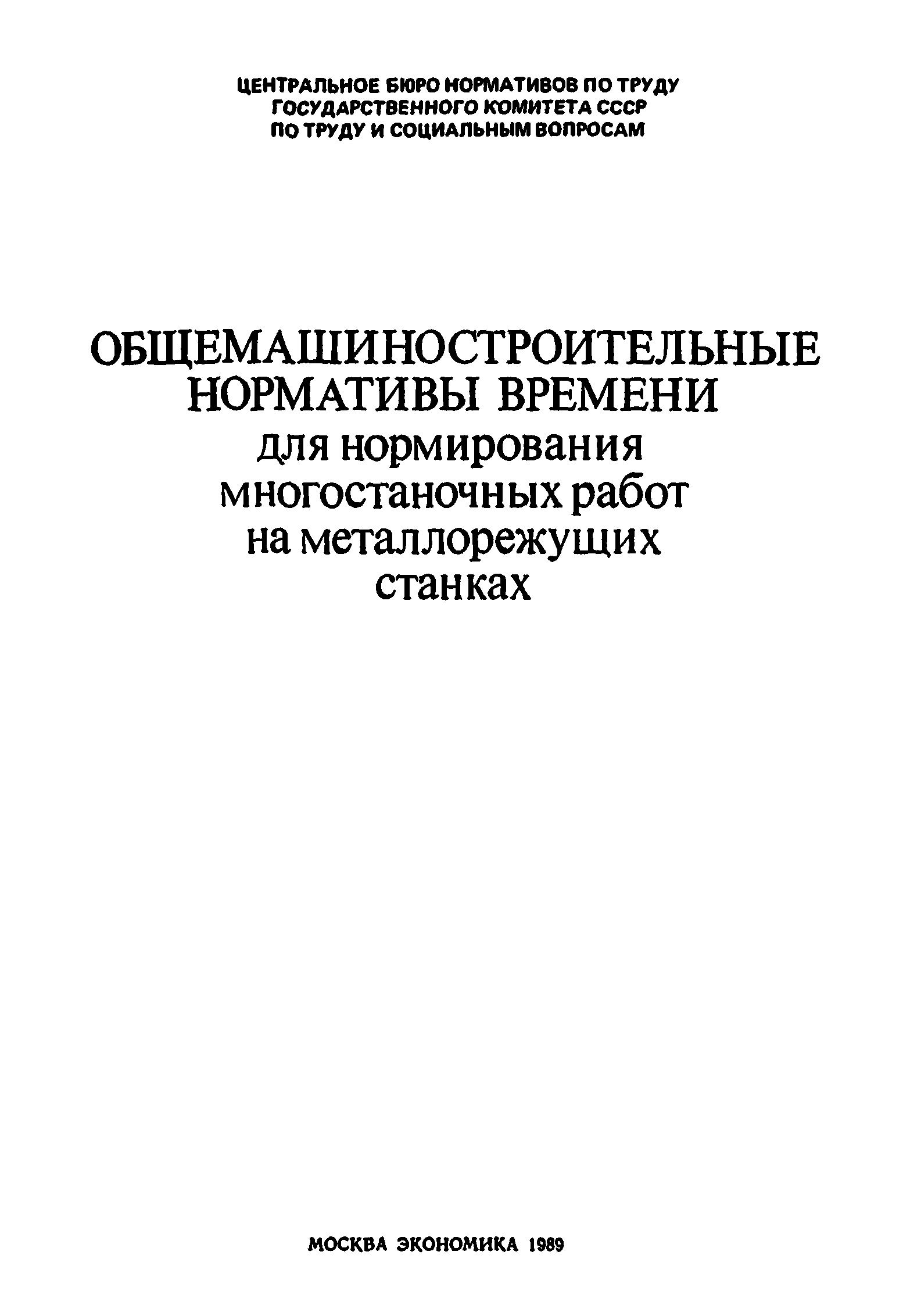 | Название рус.: | Общемашиностроительные нормативы времени для нормирования многостаночных работ на металлорежущих станках |