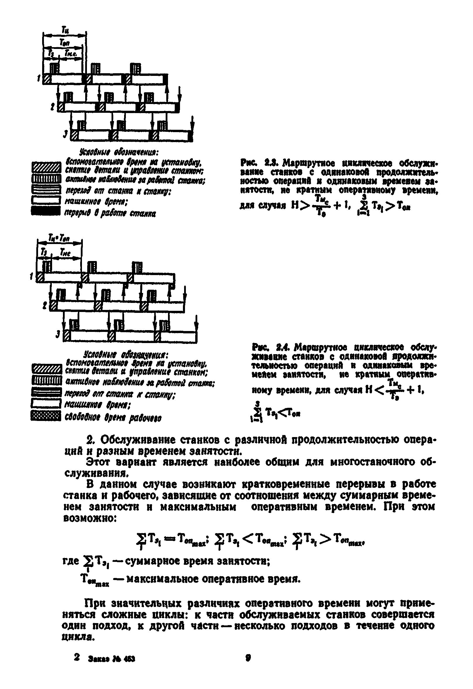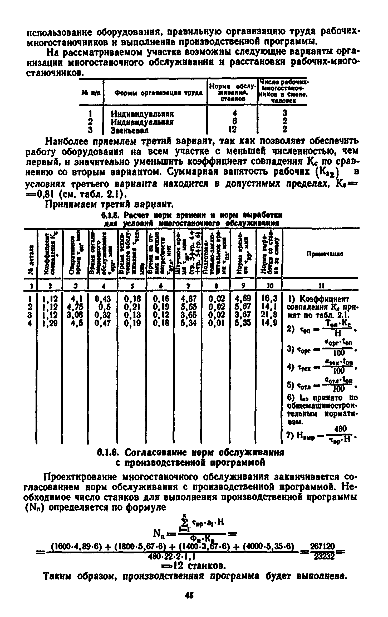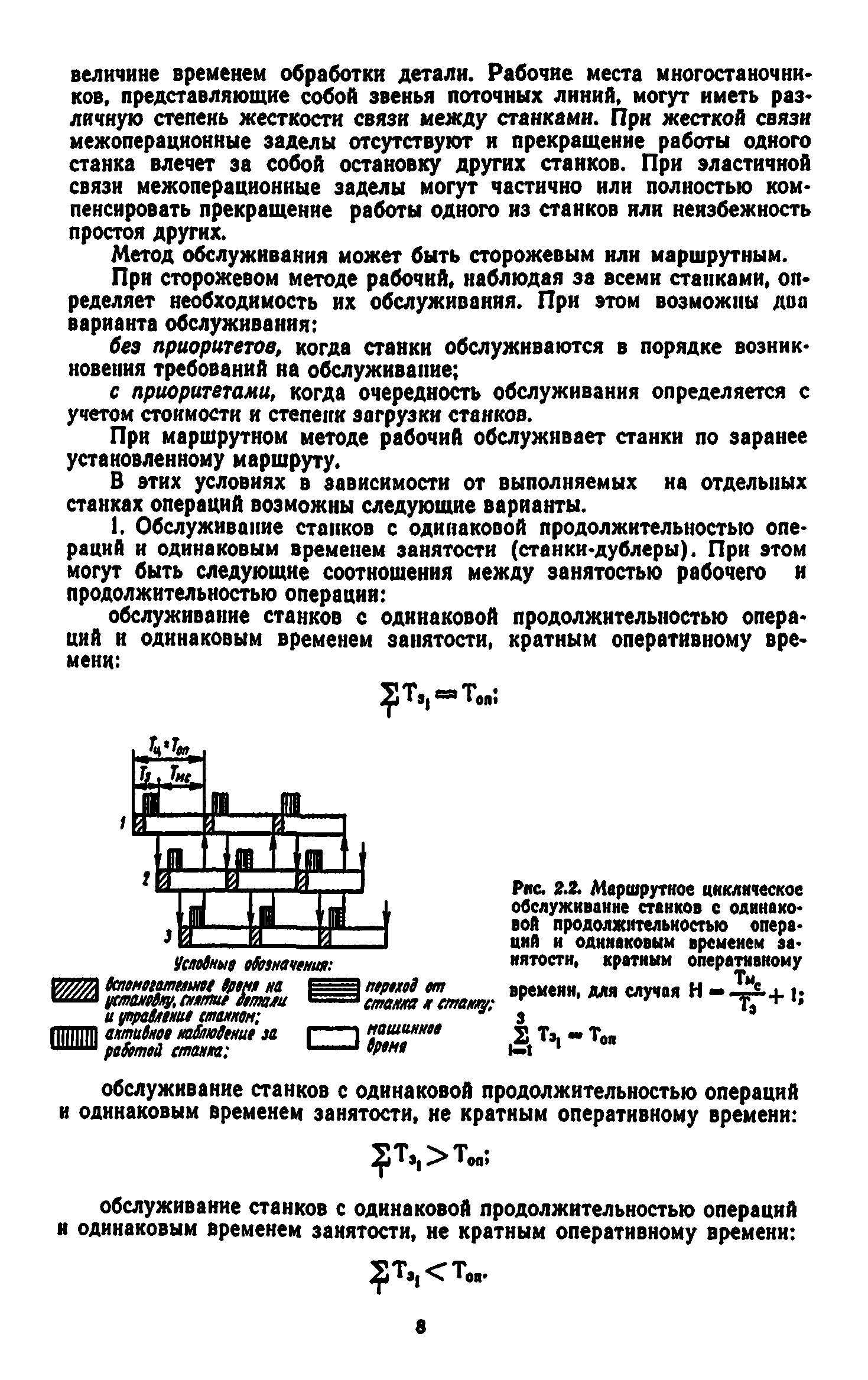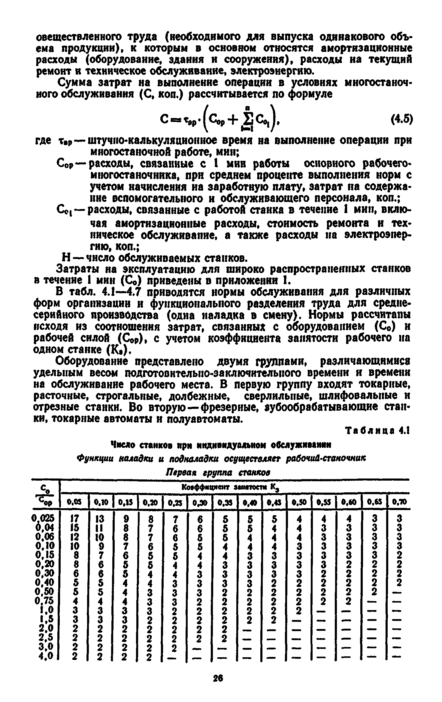 | Оглавление: | 1. Общая часть Условные обозначения 2. Классификация многостаночного обслуживания 3. Проектирование многостаночного обслуживания 4. Расчет норм обслуживания, времени и выработки для рабочих мест, не связанных общим ритмом работы 5. Расчет норм времени и выработки 6. Примеры выбора числа обслуживаемых станков и расчета технически обоснованных норм времени и выработки при многостаночном обслуживании 7. Расчет норм обслуживания и расстановки рабочих при многостаночном обслуживании на станках, связанных общим ритмом работы (поточные линии) 8. Приложения |