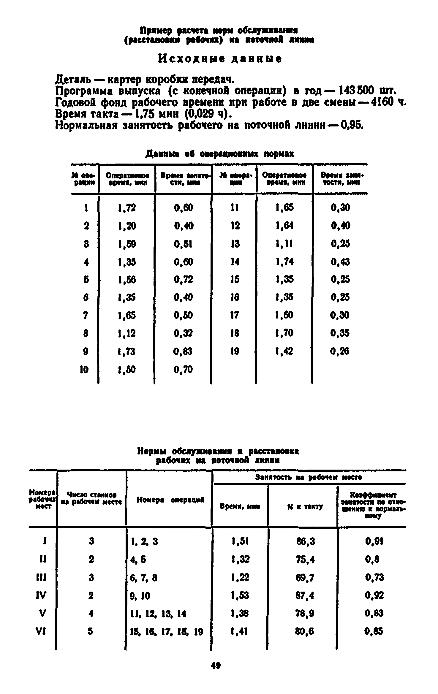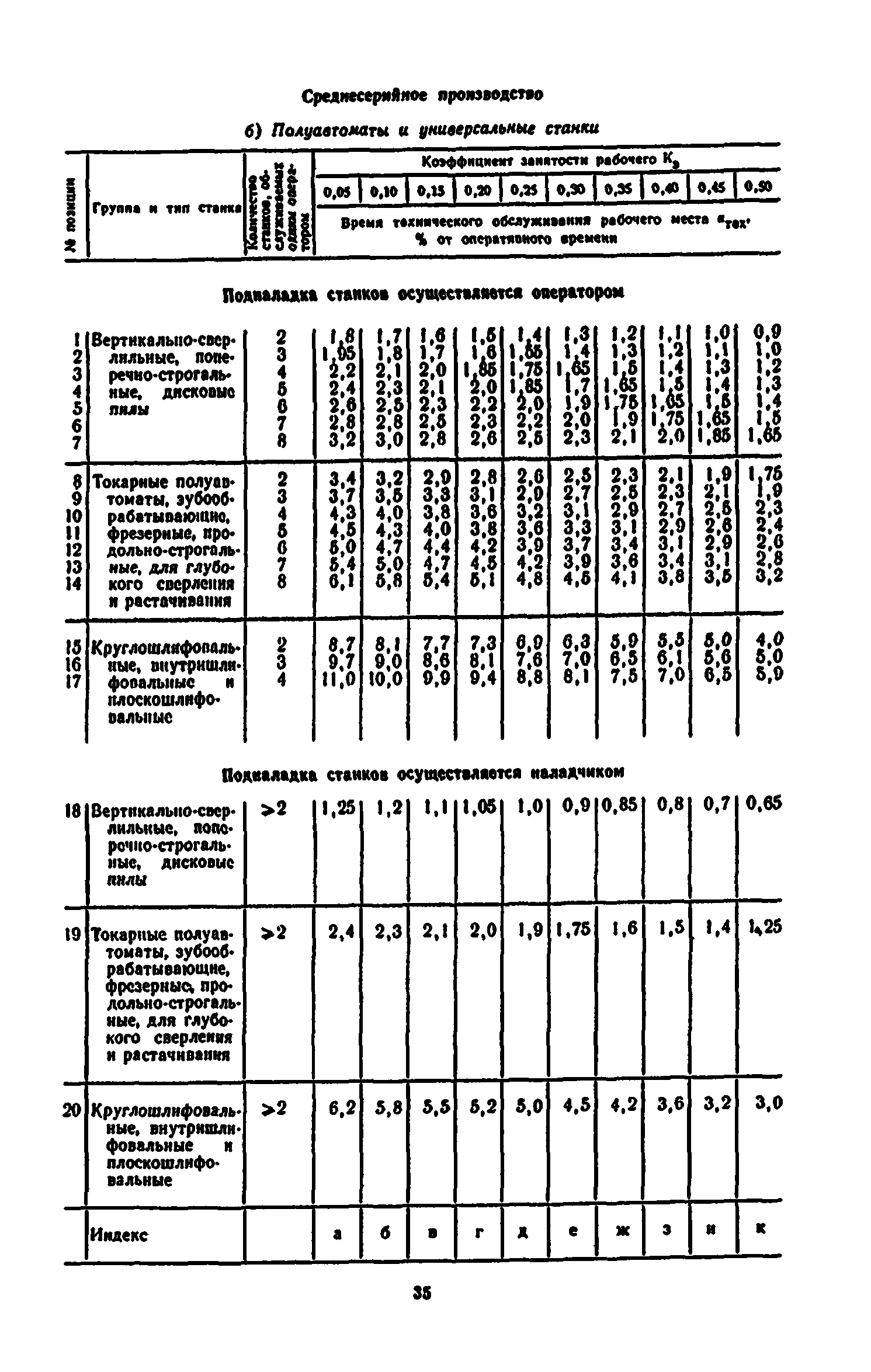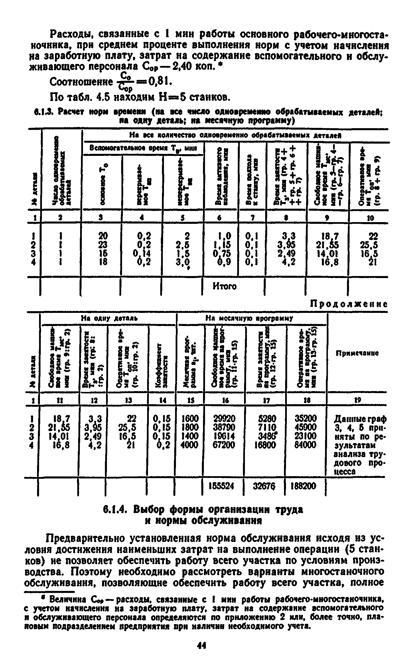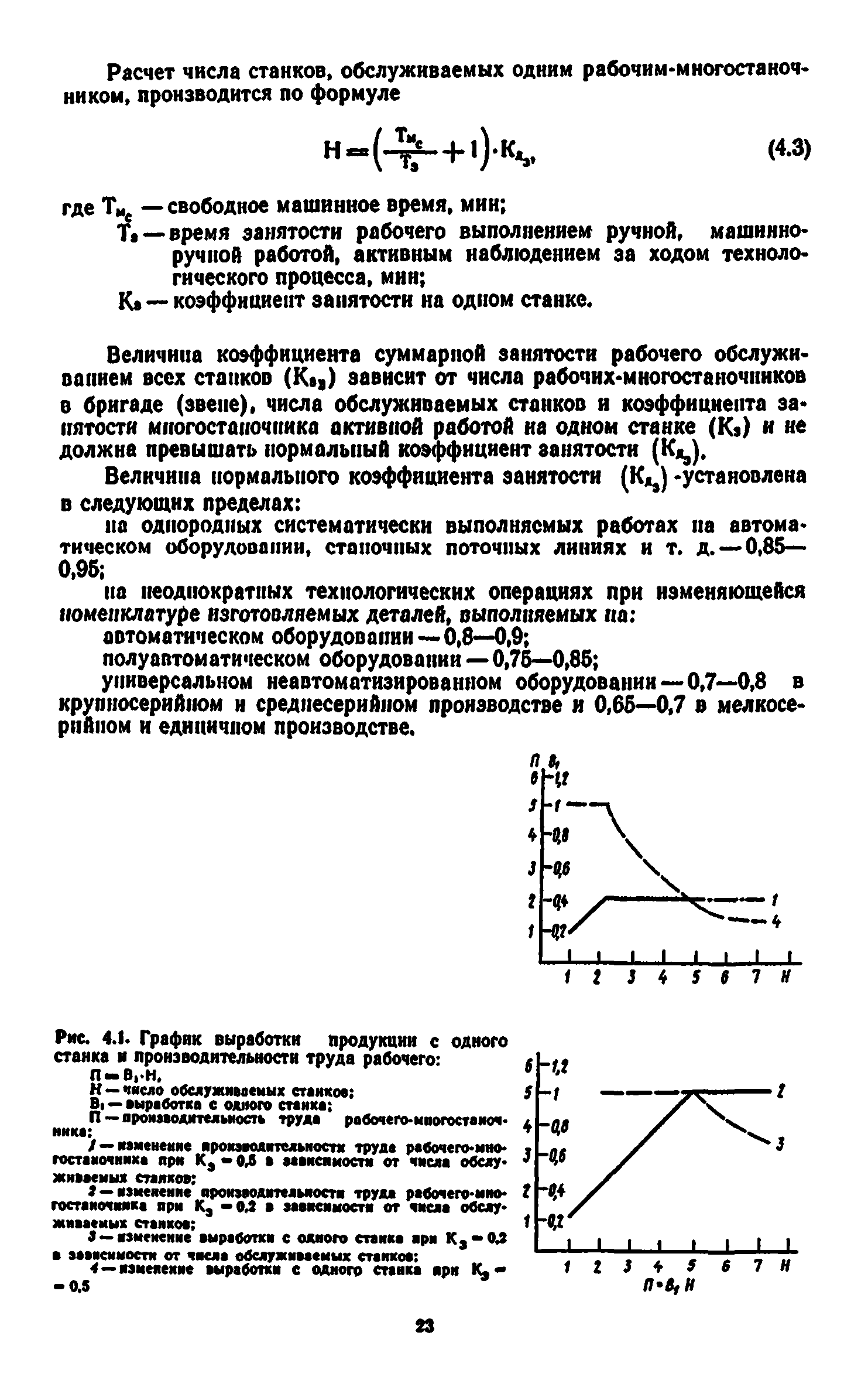 | Оглавление: | 1. Общая часть Условные обозначения 2. Классификация многостаночного обслуживания 3. Проектирование многостаночного обслуживания 4. Расчет норм обслуживания, времени и выработки для рабочих мест, не связанных общим ритмом работы 5. Расчет норм времени и выработки 6. Примеры выбора числа обслуживаемых станков и расчета технически обоснованных норм времени и выработки при многостаночном обслуживании 7. Расчет норм обслуживания и расстановки рабочих при многостаночном обслуживании на станках, связанных общим ритмом работы (поточные линии) 8. Приложения |