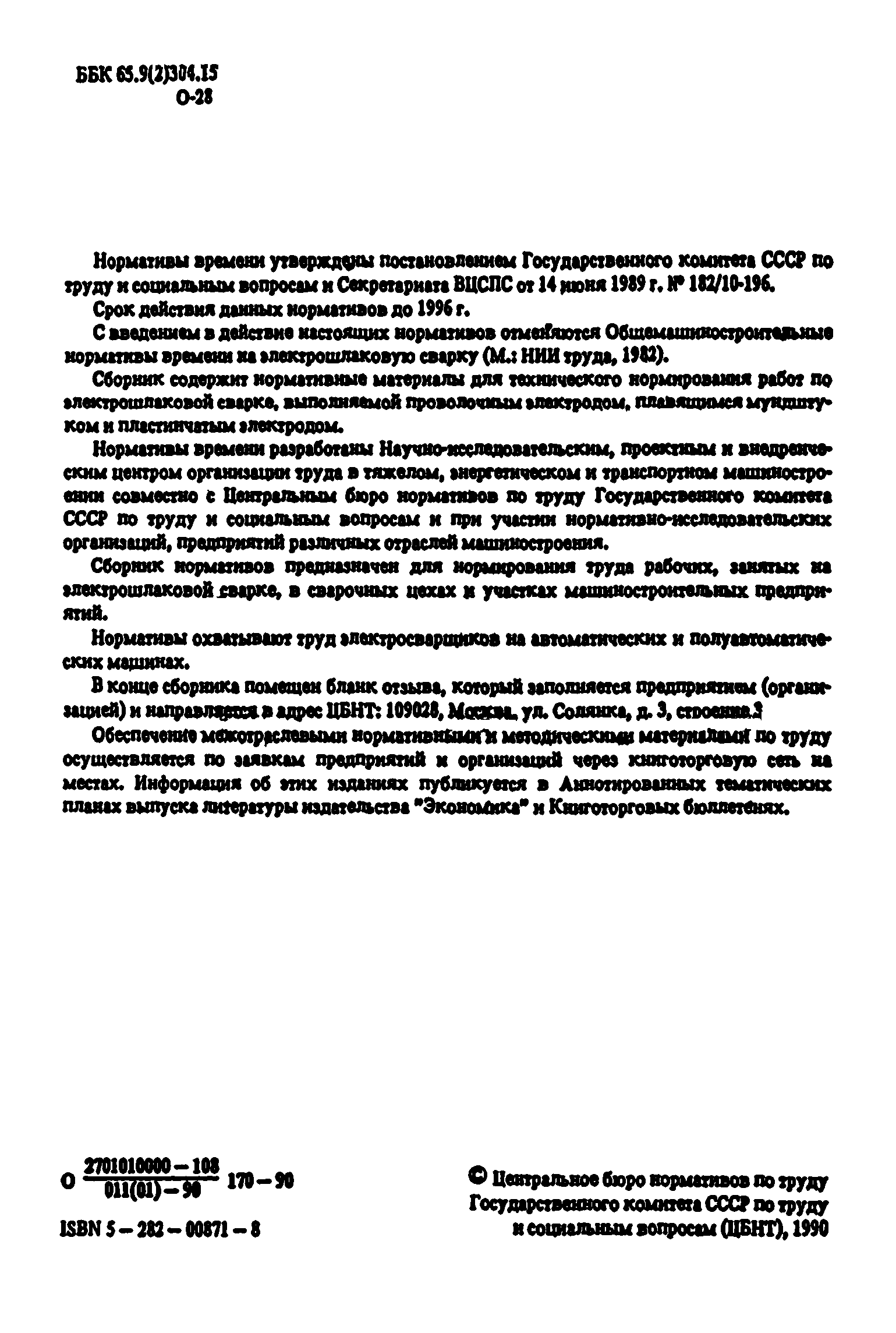| Название рус.: | Общемашиностроительные нормативы времени на электрошлаковую сварку. Единичное и мелкосерийное производство |