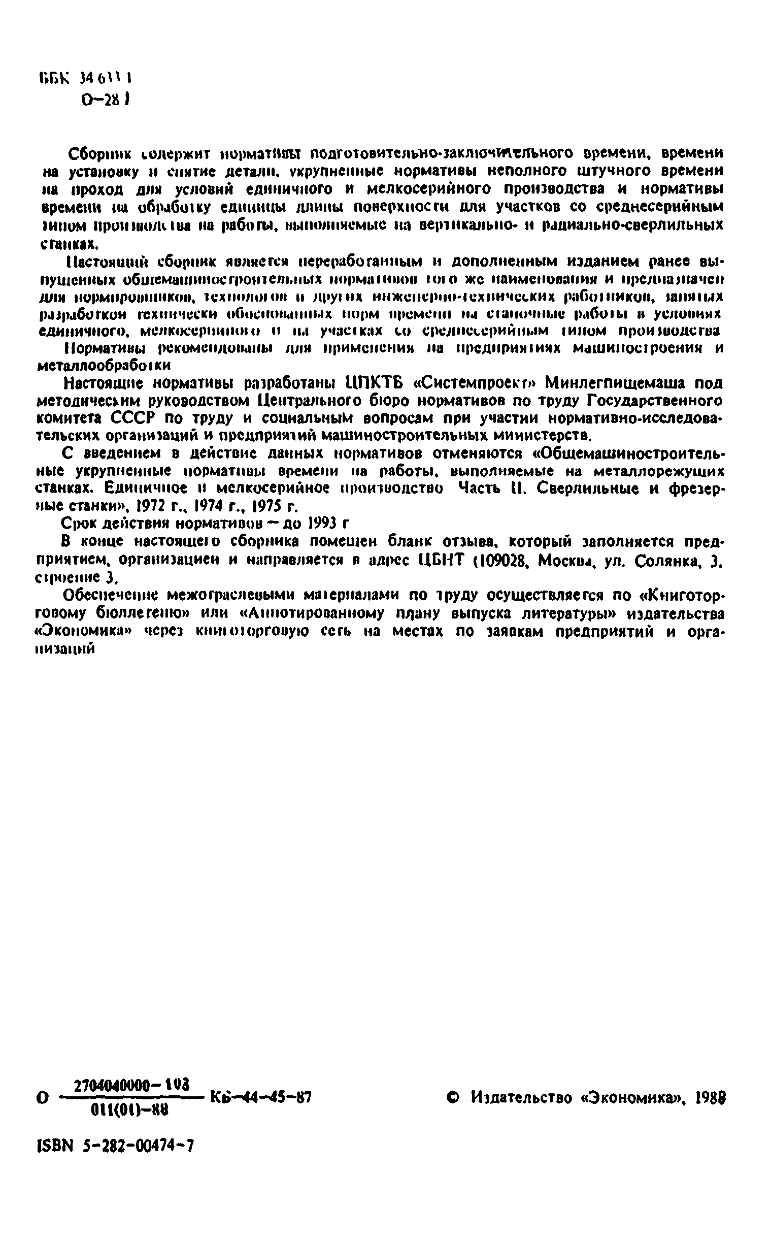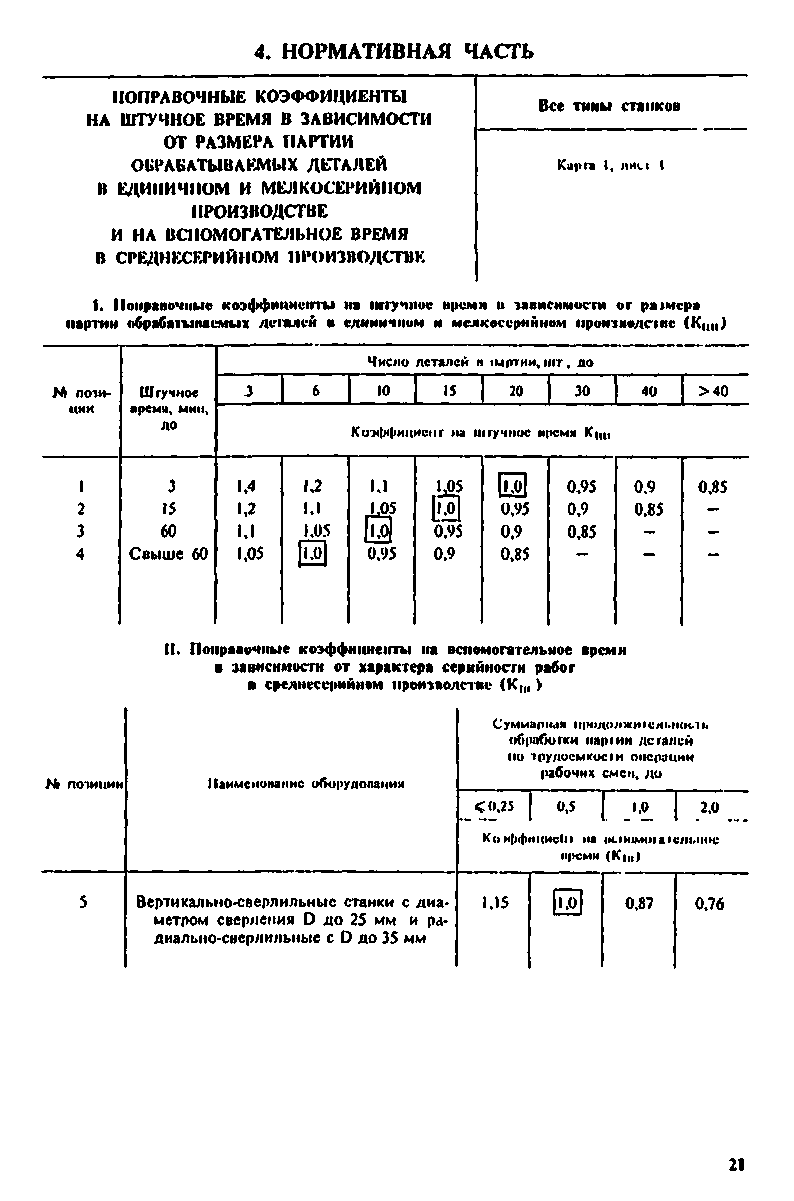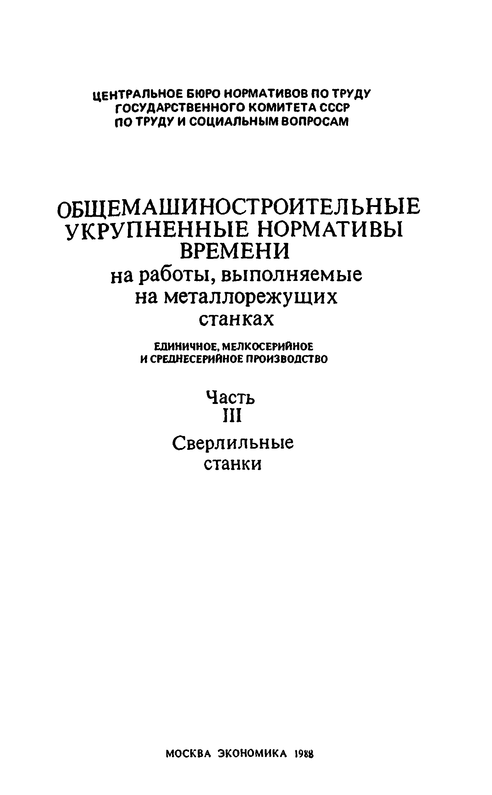 | | Заменяет собой: | - «Общемашиностроительные укрупненные нормативы времени на работы, выполняемые на металлорежущих станках. Единичное, мелкосерийное и среднесерийное производство. Часть II. Сверлильные и фрезерные станки» (1972, 1974,1975 г.)