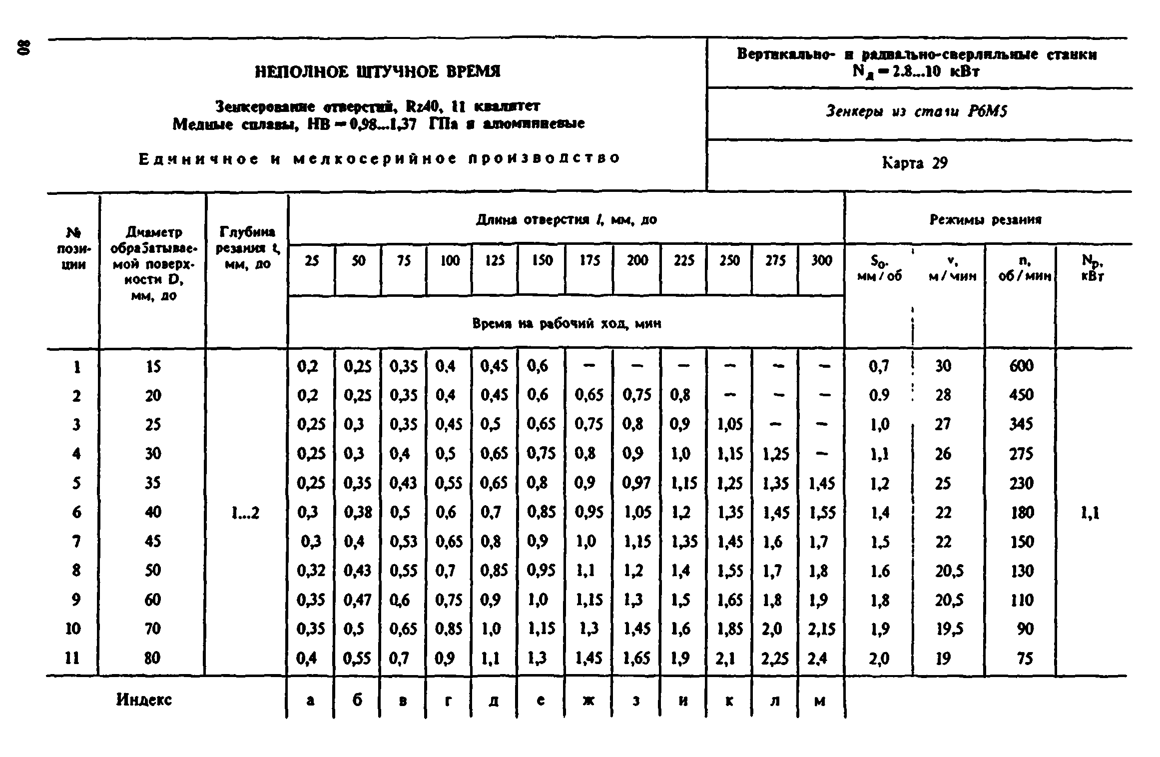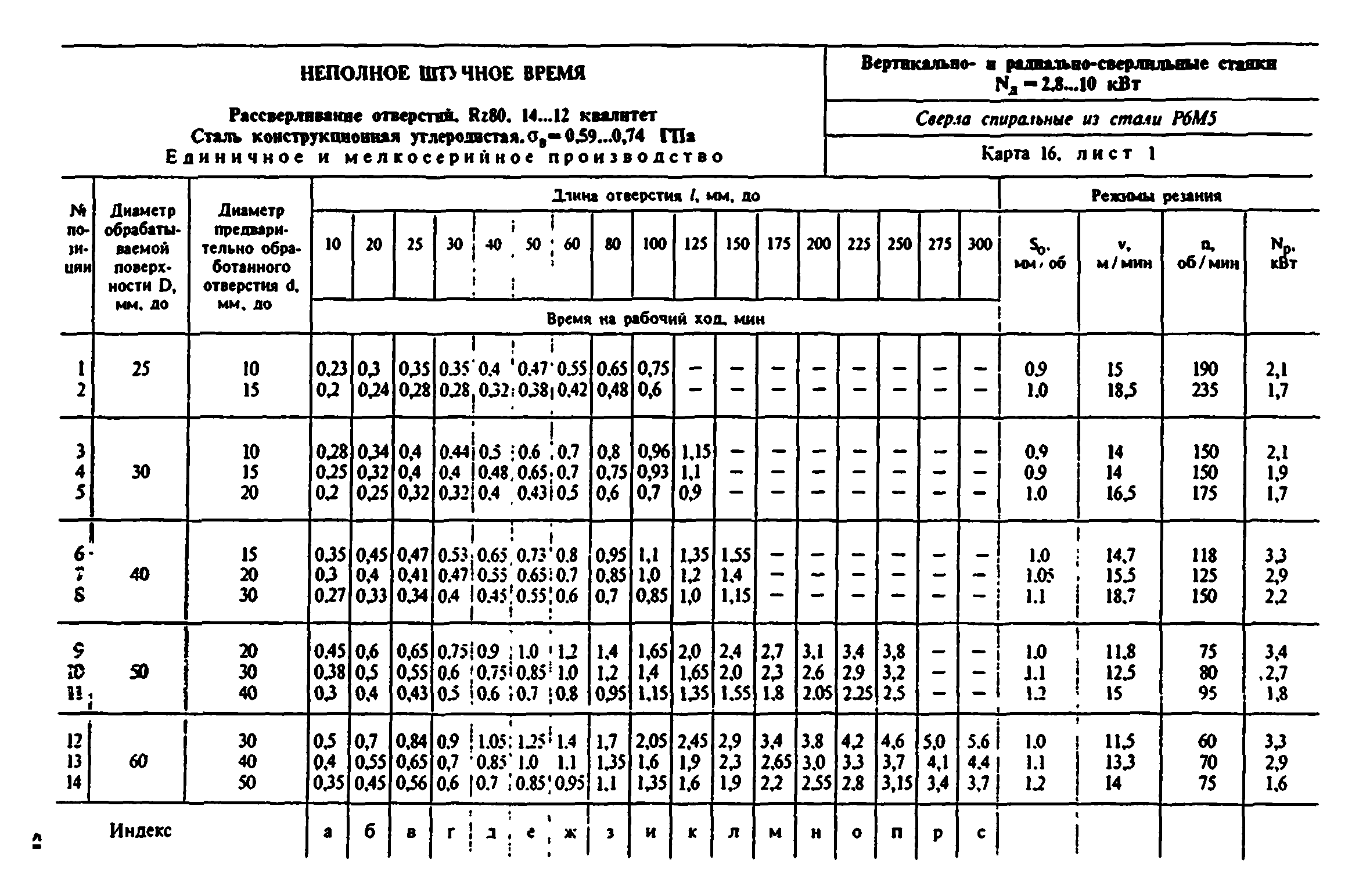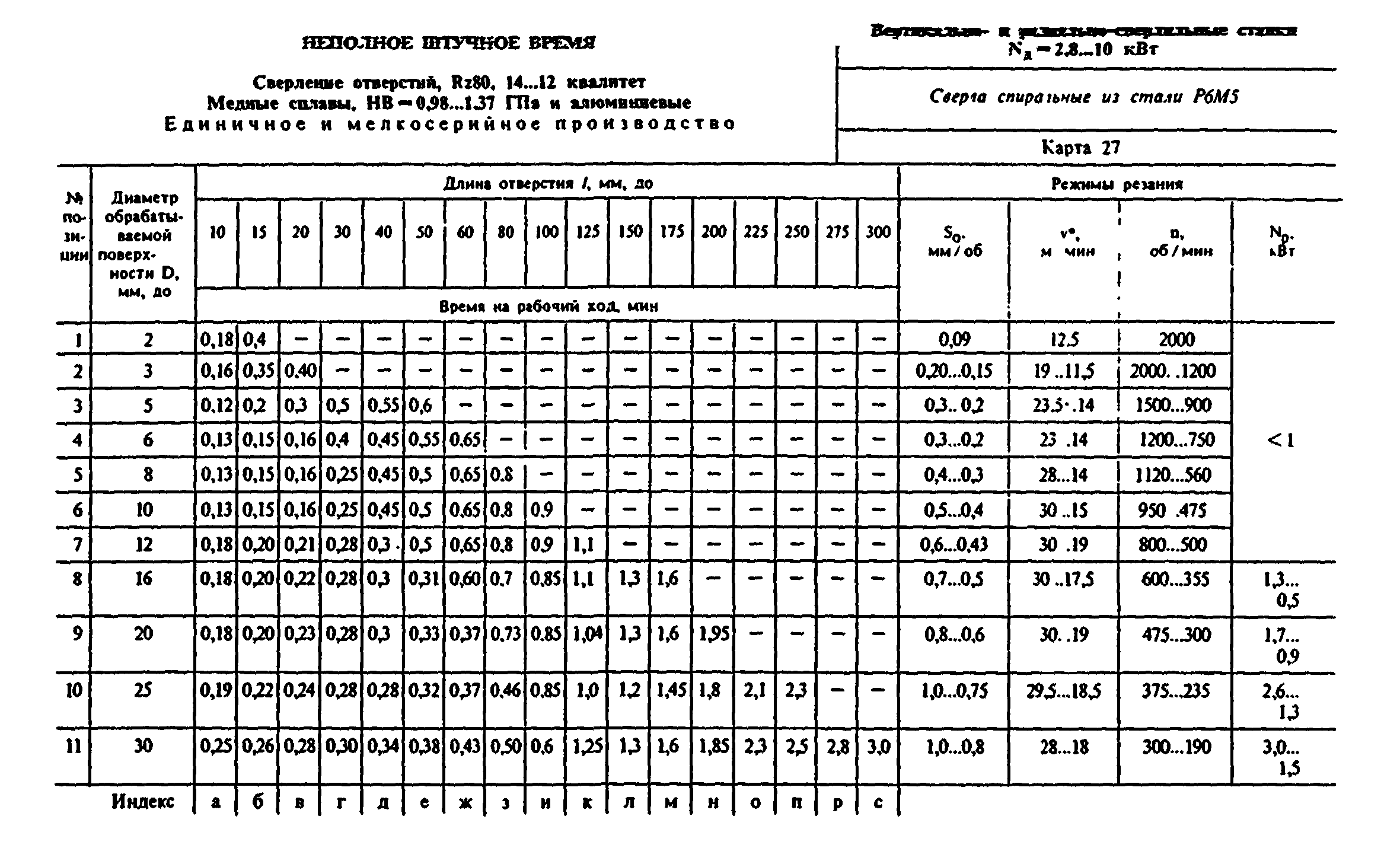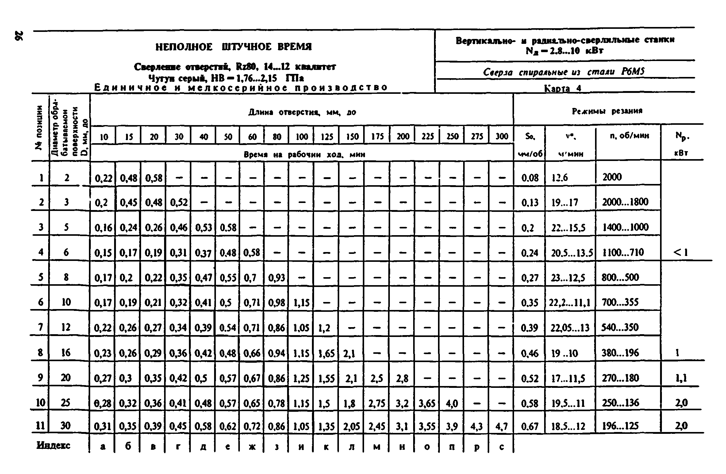 Общемашиностроительные укрупненные нормативы времени на работы, выполняемые на металлорежущих станках. Единичное, мелкосерийное и среднесерийное производство. Часть III. Сверлильные станки| Статус: | действует | | Название рус.: | Общемашиностроительные укрупненные нормативы времени на работы, выполняемые на металлорежущих станках. Единичное, мелкосерийное и среднесерийное производство. Часть III. Сверлильные станки | | Дата добавления в базу: | 01.09.2013 | | Дата актуализации: | 01.01.2021 | | Область применения: | Сборник содержит нормативы подготовительно-заключительного времени, времени на установку и снятие детали, укрупненные нормативы неполного штучного времени на рабочий ход для условий единичного и мелкосерийного производства и нормативы времени на обработку единицы длины поверхности для участков со среднесерийным типом производства на работы, выполняемые на вертикально- и радиально-сверлильных станках. | | Оглавление: | 1. Общая часть 2. Характеристика применяемого оборудования и технология работы 3. Организация труда 4. Нормативная часть Карты Приложения | | Разработан: | ЦПКТБ Системпроект