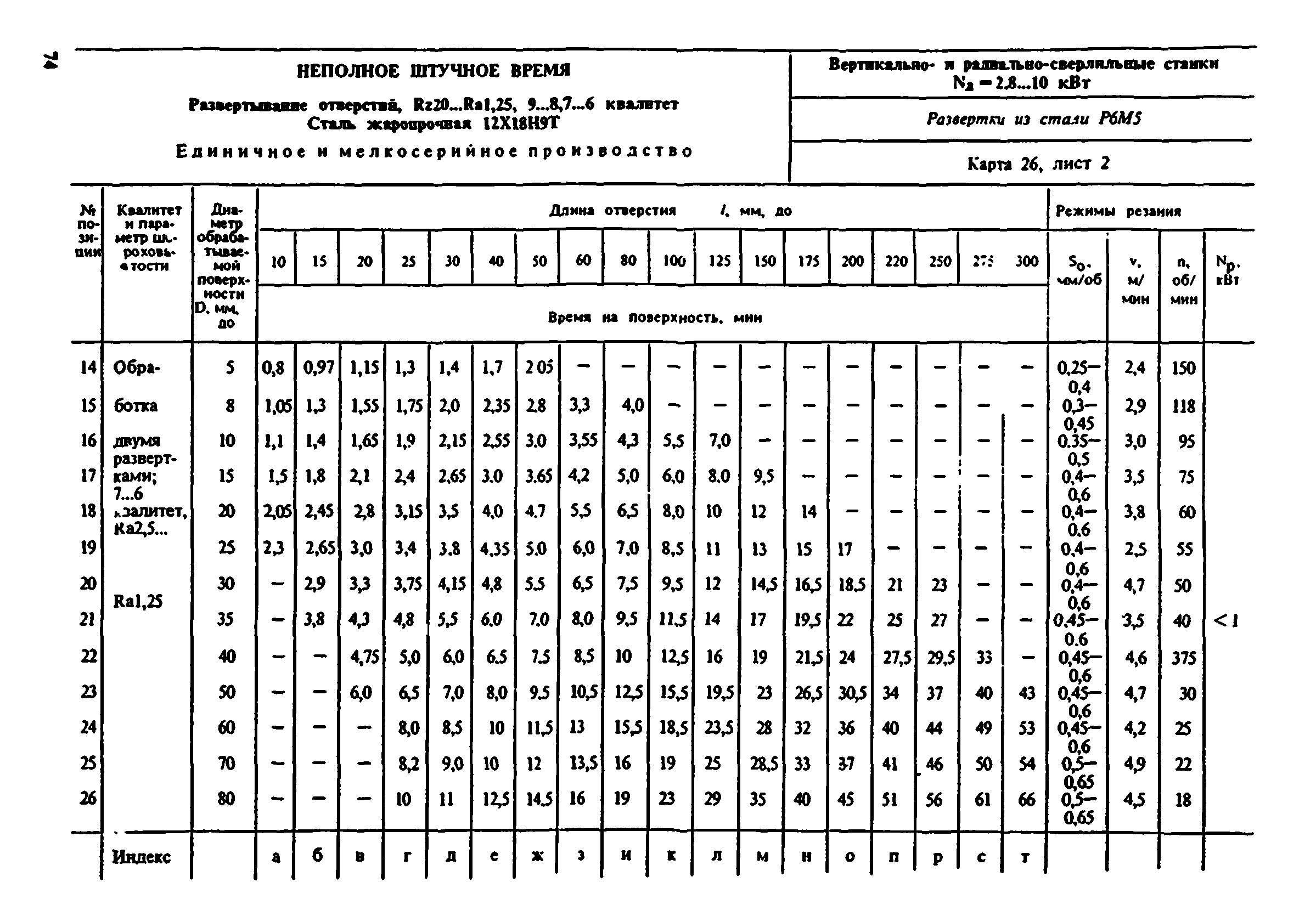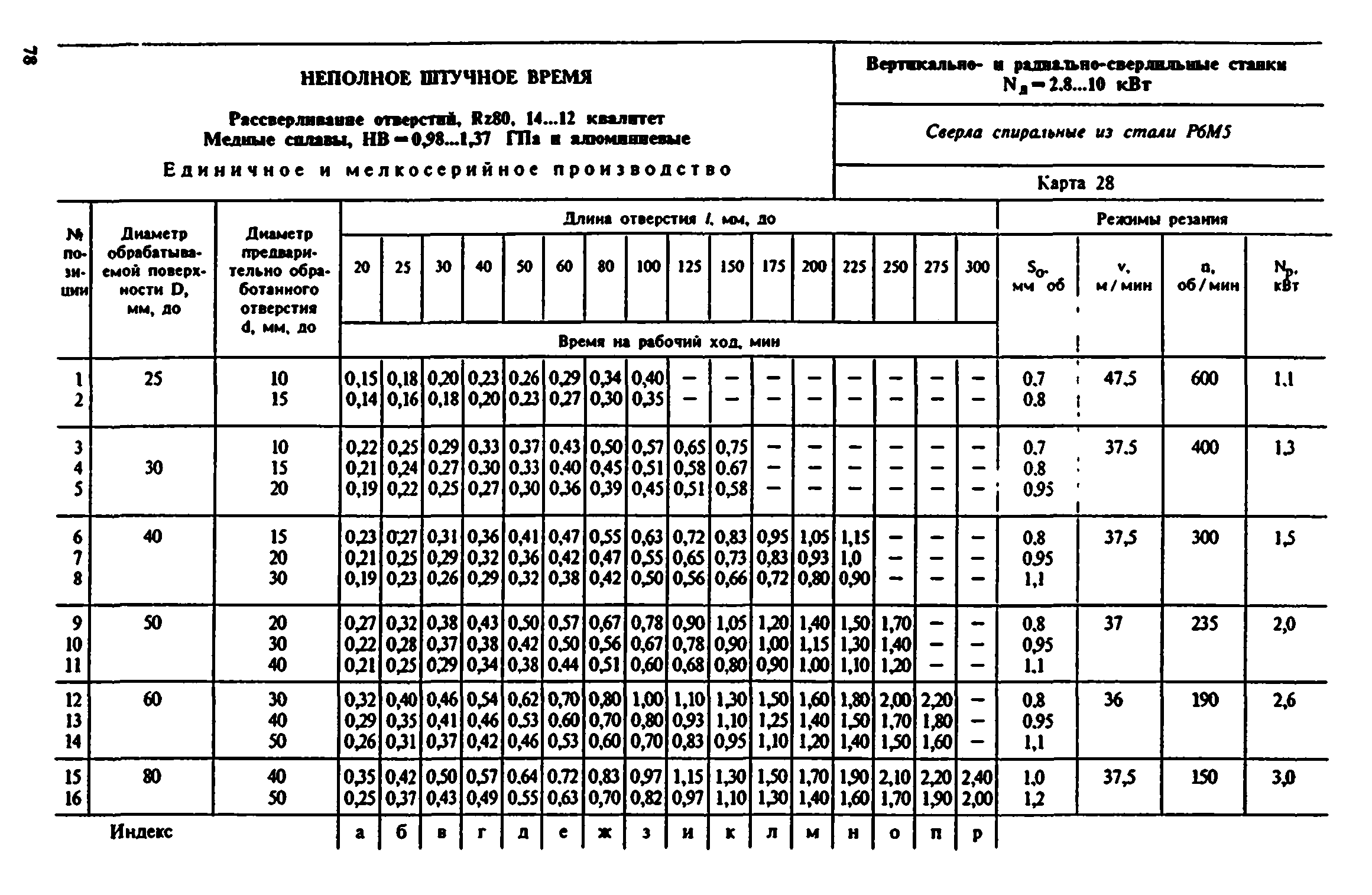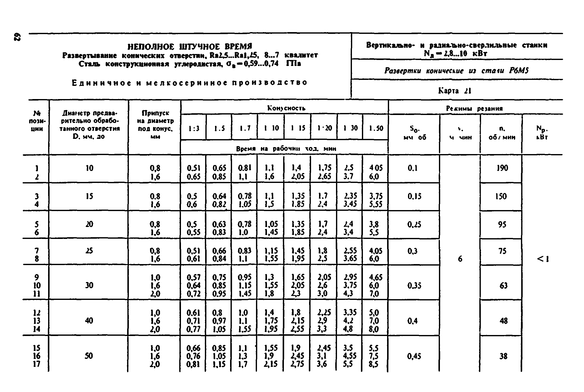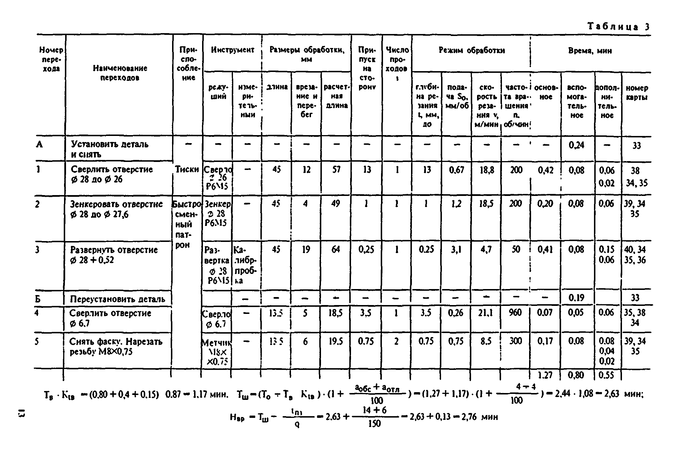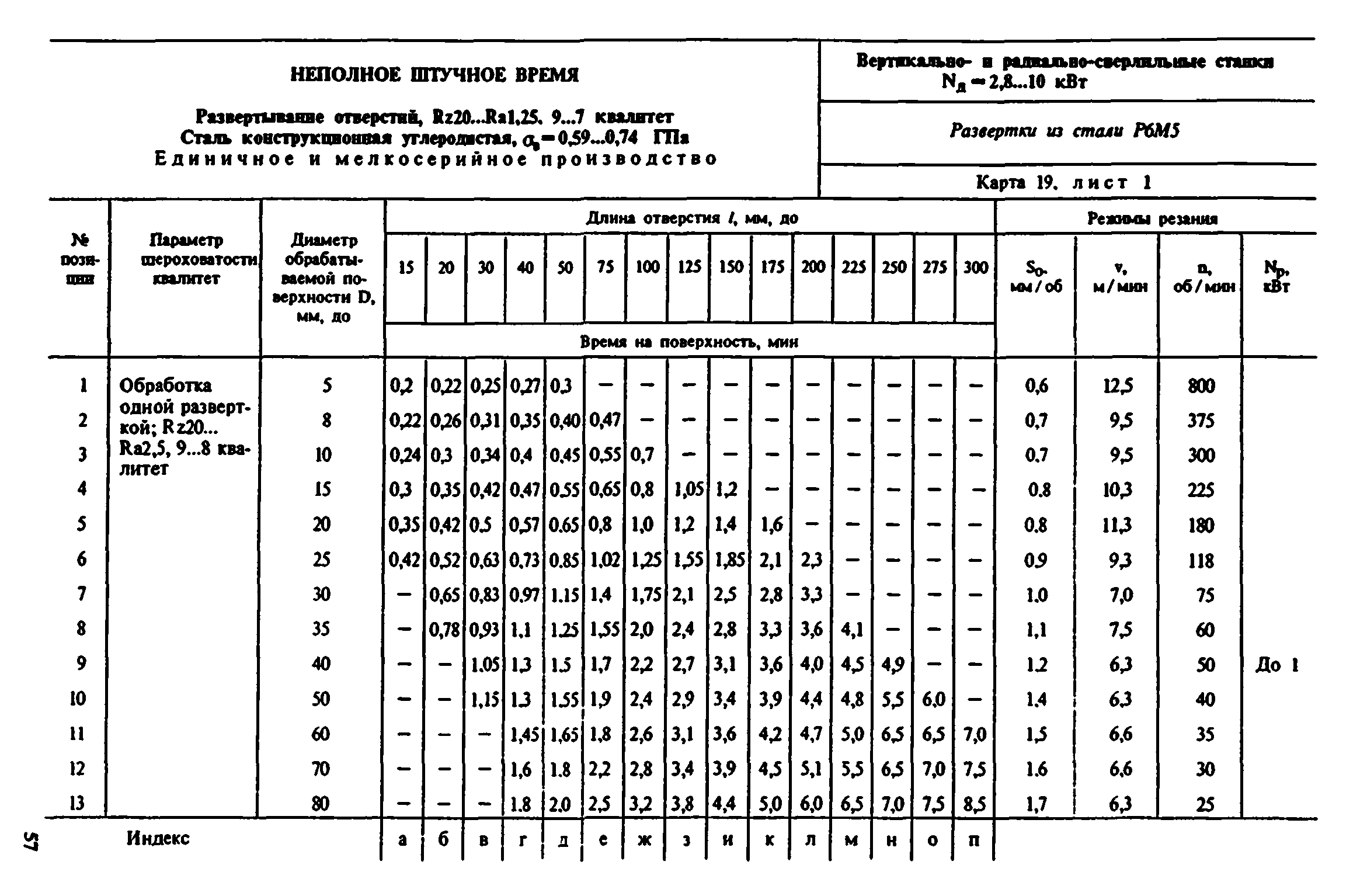 Общемашиностроительные укрупненные нормативы времени на работы, выполняемые на металлорежущих станках. Единичное, мелкосерийное и среднесерийное производство. Часть III. Сверлильные станки| Статус: | действует | | Название рус.: | Общемашиностроительные укрупненные нормативы времени на работы, выполняемые на металлорежущих станках. Единичное, мелкосерийное и среднесерийное производство. Часть III. Сверлильные станки | | Дата добавления в базу: | 01.09.2013 | | Дата актуализации: | 01.01.2021 | | Область применения: | Сборник содержит нормативы подготовительно-заключительного времени, времени на установку и снятие детали, укрупненные нормативы неполного штучного времени на рабочий ход для условий единичного и мелкосерийного производства и нормативы времени на обработку единицы длины поверхности для участков со среднесерийным типом производства на работы, выполняемые на вертикально- и радиально-сверлильных станках. | | Оглавление: | 1. Общая часть 2. Характеристика применяемого оборудования и технология работы 3. Организация труда 4. Нормативная часть Карты Приложения | | Разработан: | ЦПКТБ Системпроект