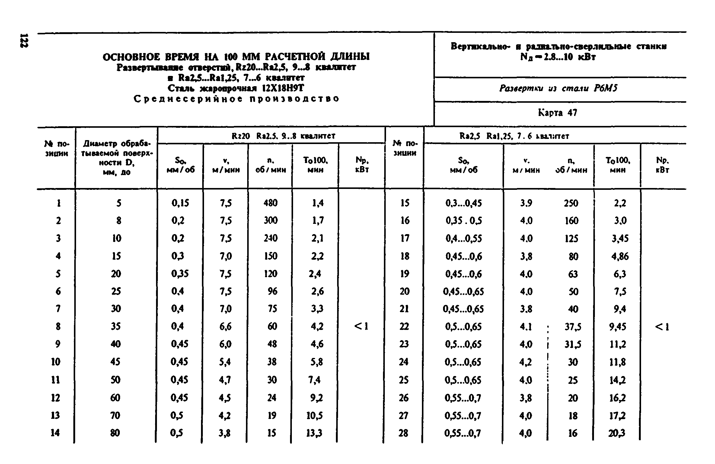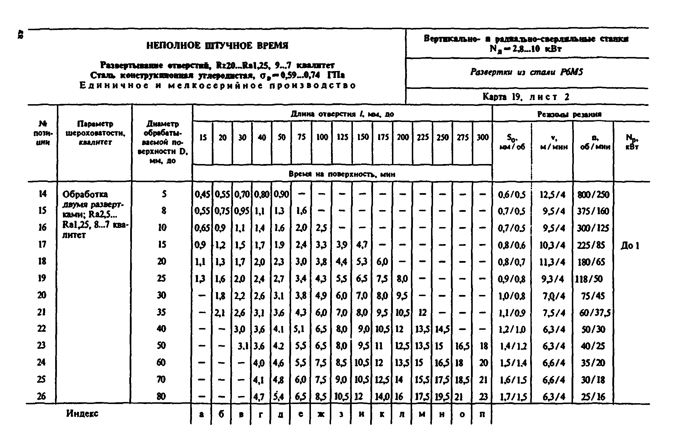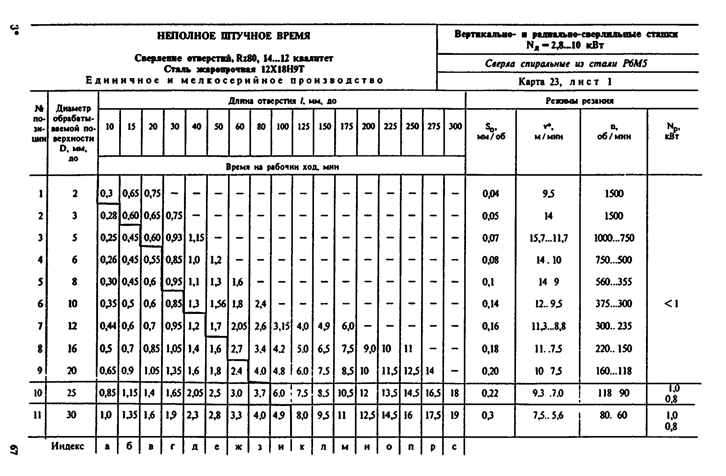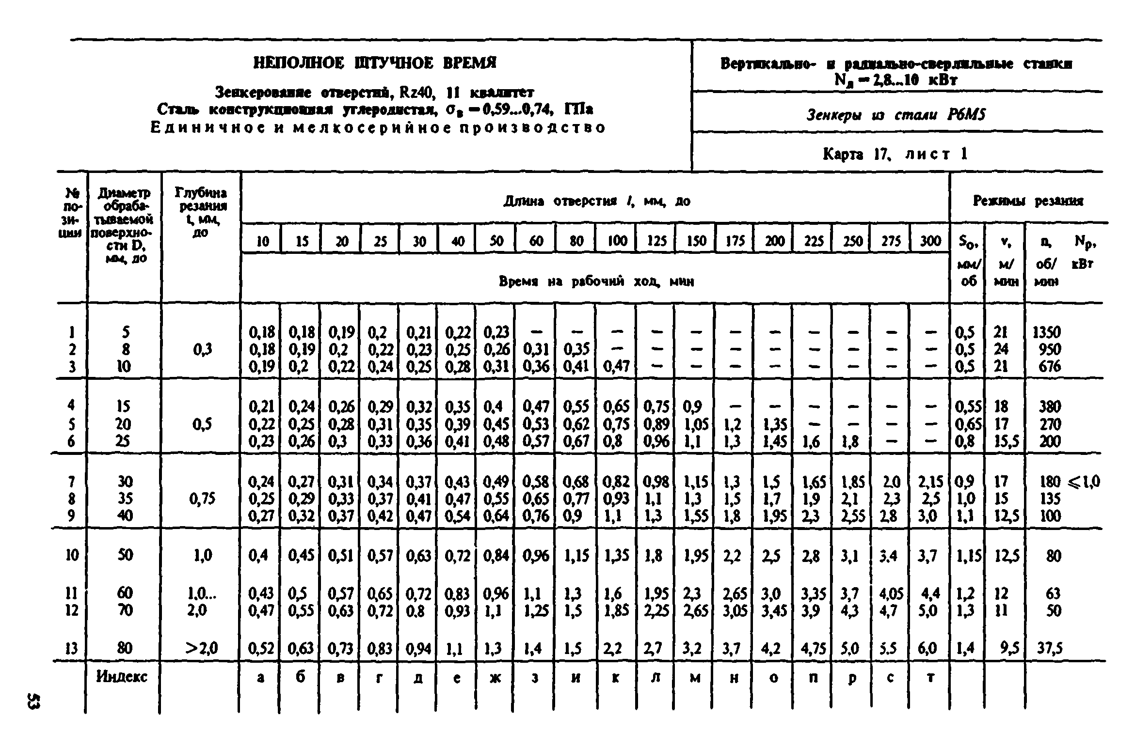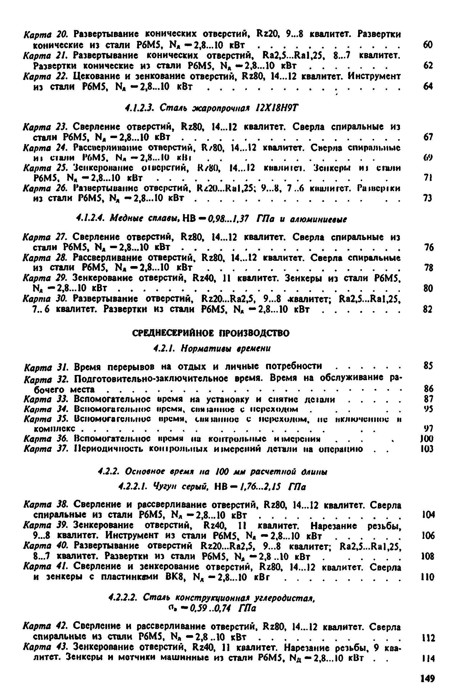 Общемашиностроительные укрупненные нормативы времени на работы, выполняемые на металлорежущих станках. Единичное, мелкосерийное и среднесерийное производство. Часть III. Сверлильные станки| Статус: | действует | | Название рус.: | Общемашиностроительные укрупненные нормативы времени на работы, выполняемые на металлорежущих станках. Единичное, мелкосерийное и среднесерийное производство. Часть III. Сверлильные станки | | Дата добавления в базу: | 01.09.2013 | | Дата актуализации: | 01.01.2021 | | Область применения: | Сборник содержит нормативы подготовительно-заключительного времени, времени на установку и снятие детали, укрупненные нормативы неполного штучного времени на рабочий ход для условий единичного и мелкосерийного производства и нормативы времени на обработку единицы длины поверхности для участков со среднесерийным типом производства на работы, выполняемые на вертикально- и радиально-сверлильных станках. | | Оглавление: | 1. Общая часть 2. Характеристика применяемого оборудования и технология работы 3. Организация труда 4. Нормативная часть Карты Приложения | | Разработан: | ЦПКТБ Системпроект