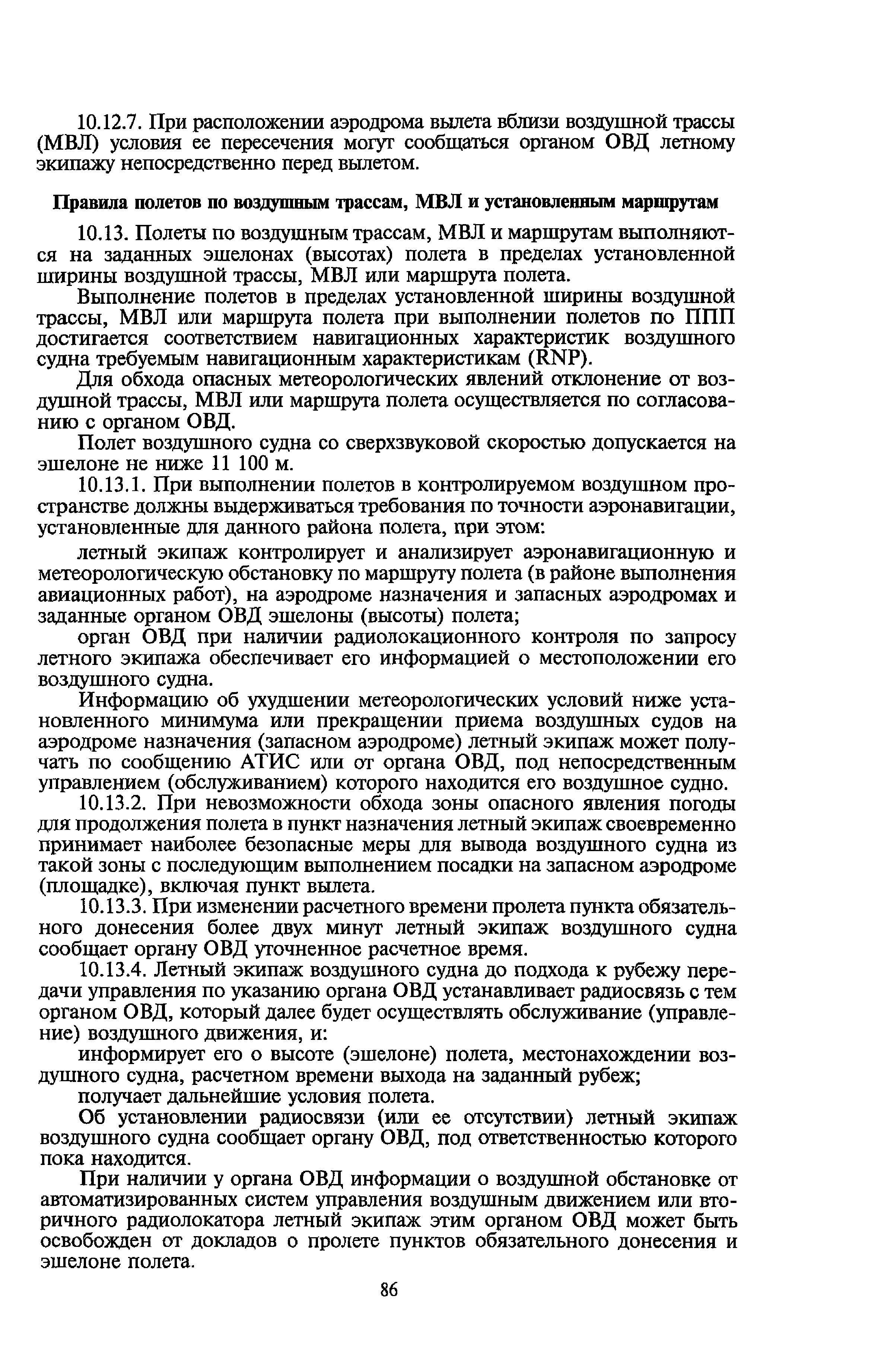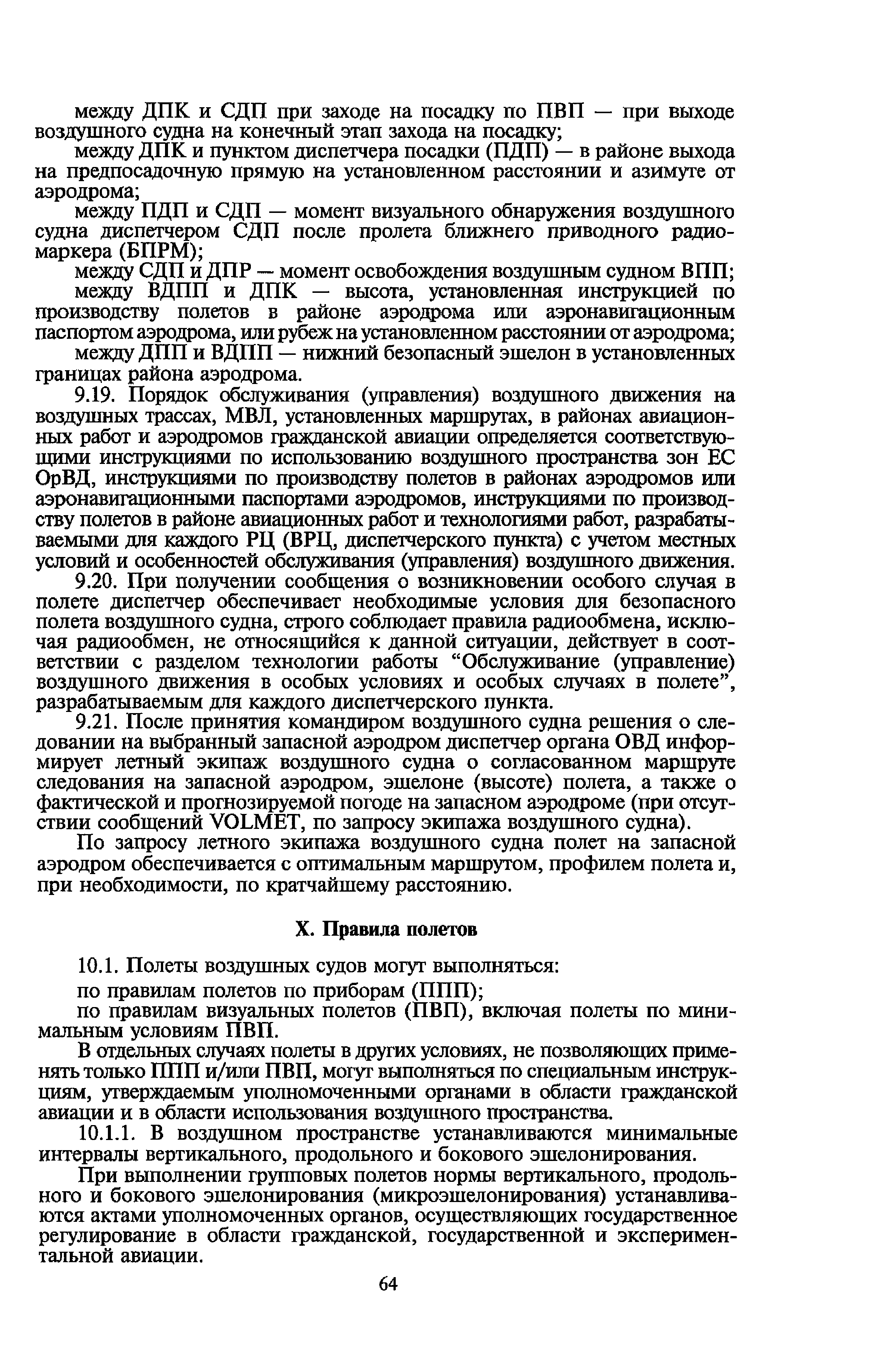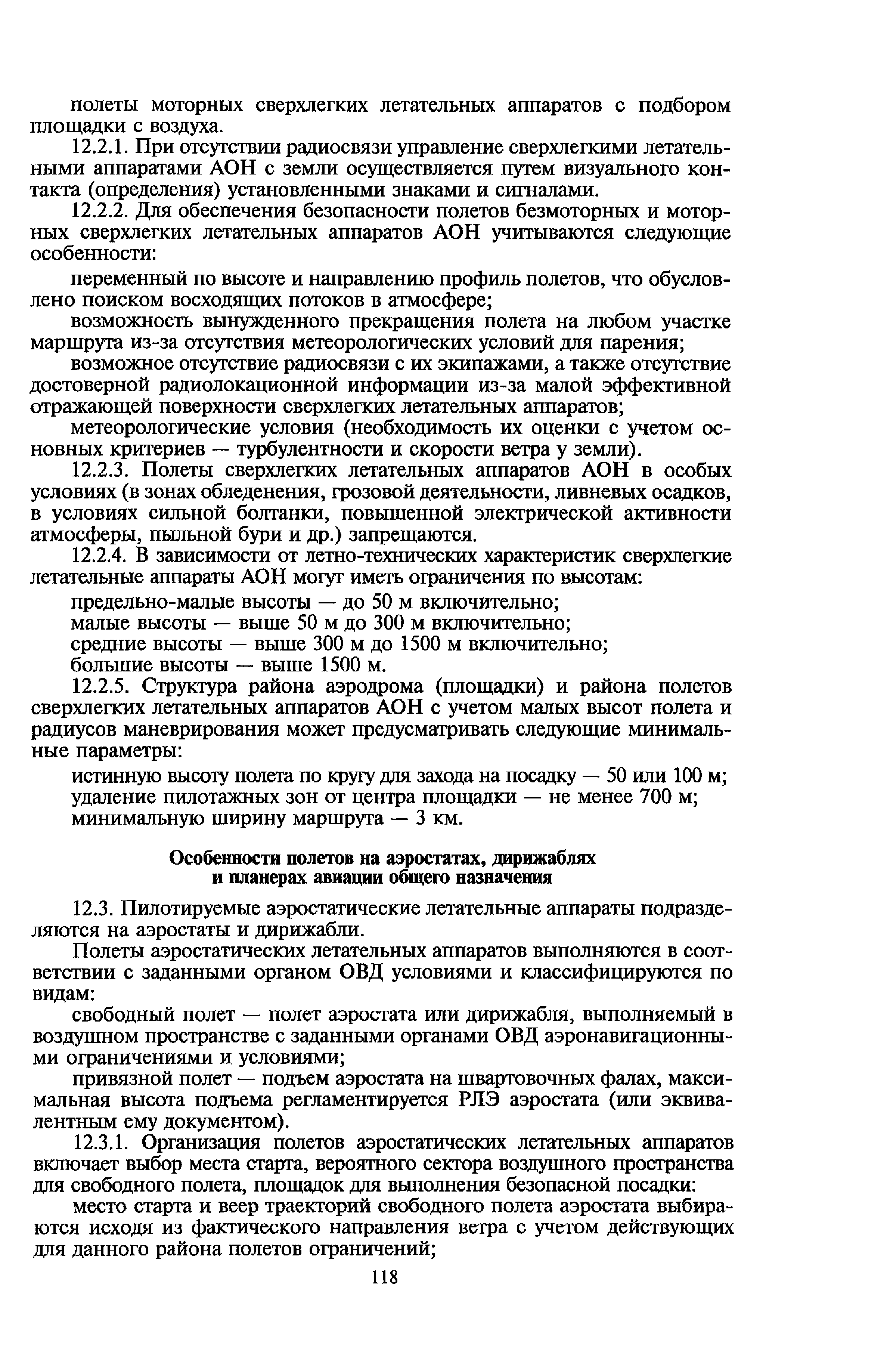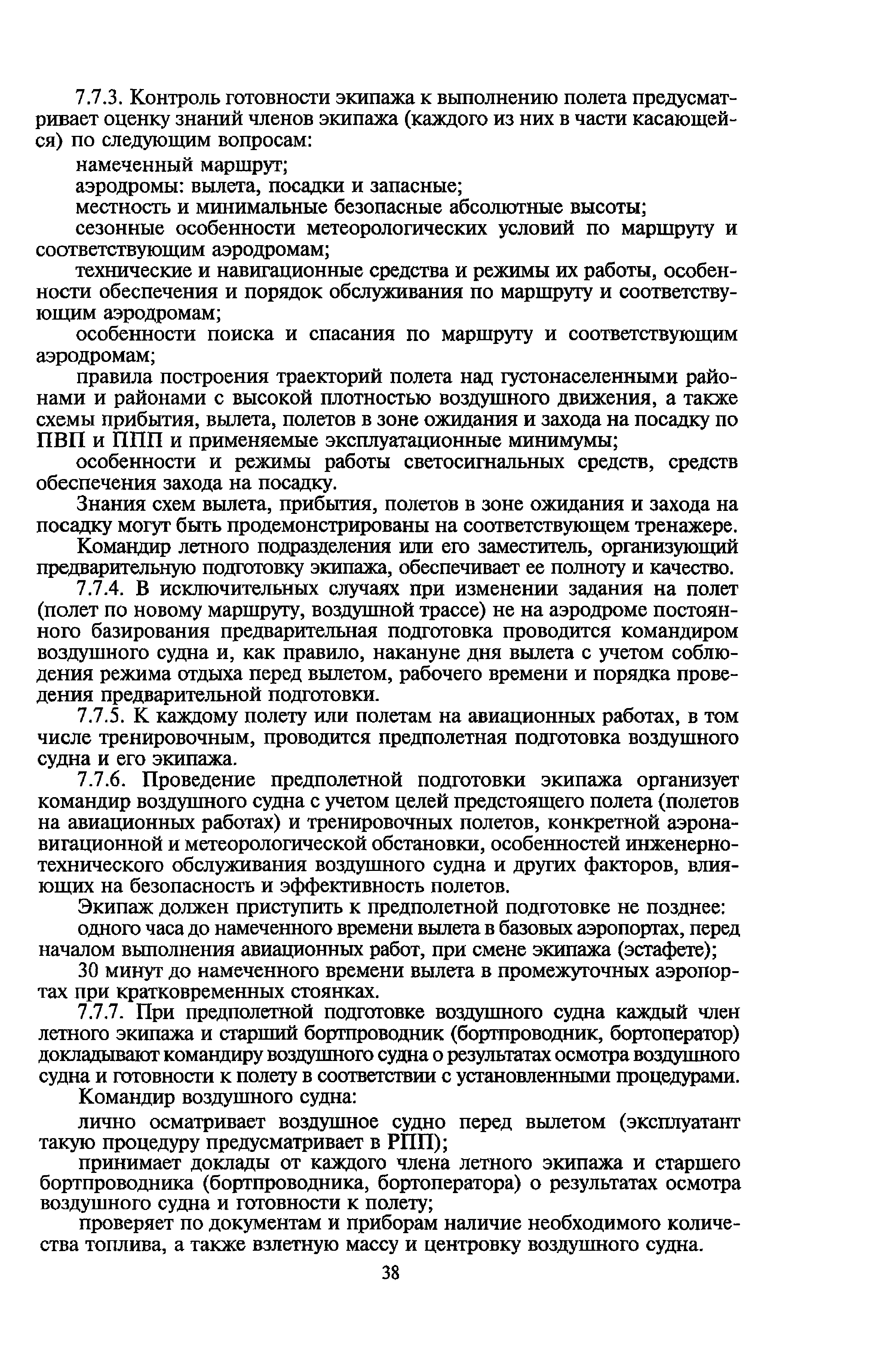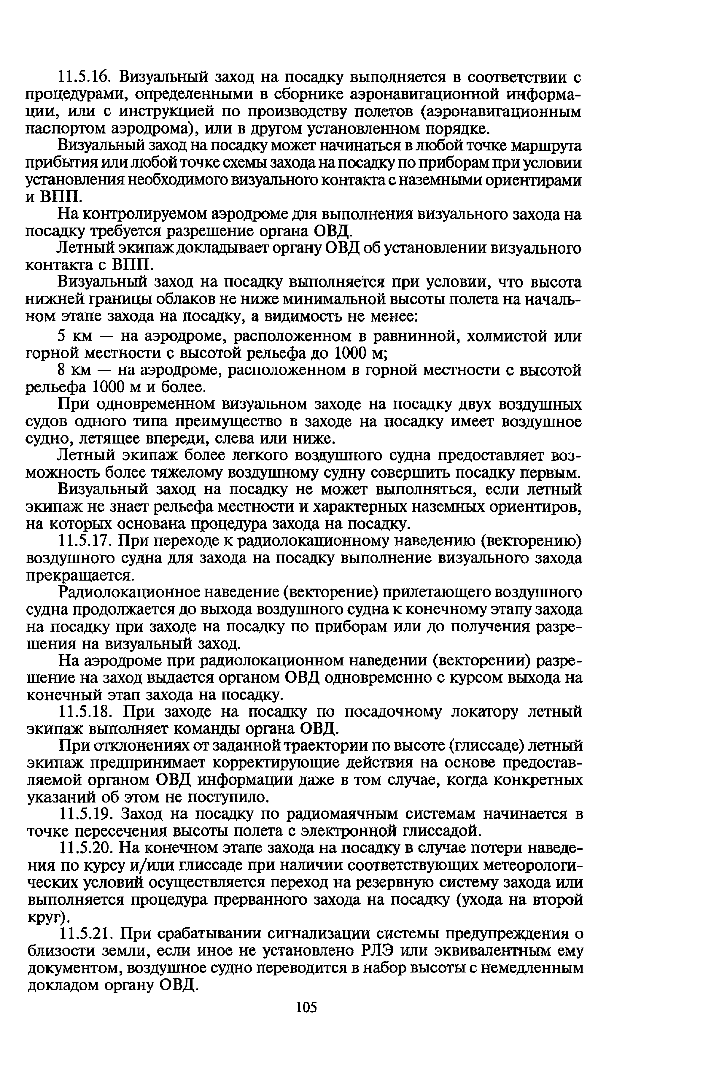 | Оглавление: | I. Общие положения II. Воздушные суда III. Экипаж воздушного судна IV. Аэродромы, аэропорты, вертодромы и посадочные площадки V. Классификация полетов в гражданской авиации VI. Минимумы Эксплуатационные минимумы аэродрома (вертодрома) Минимум командира воздушного судна Минимум вида авиационных работ VII. Организация летной работы Планирование летной работы Летно-методическая работа Профессиональная подготовка членов экипажей воздушных судов Допуск летного состава к полетам Формирование экипажей воздушных судов Предварительная и предполетная подготовка членов летных экипажей Полеты с проверяющими в составе экипажа воздушного судна Проверки техники пилотирования, практической работы членов экипажа Разборы полетов Контроль полетов, анализ летной работы и безопасности полетов VIII. Обеспечение полетов Аэронавигационное обслуживание полетов воздушных судов Навигационное (штурманское) обеспечение полетов Метеорологическое обеспечение полетов Инженерно-авиационное обеспечение Аэродромное обеспечение Авиатопливообеспечение Светотехническое обеспечение Радиотехническое обеспечение Орнитологическое обеспечение Организационное обеспечение перевозок, авиационных работ Организационное обеспечение полетов Обеспечение авиационной безопасности Авиационное медицинское обеспечение Аварийно-спасательное обеспечение IX. Воздушное пространство Российской Федерации. Организация и обслуживание (управление) воздушного движения в Российской Федерации Разрешительный и уведомительный порядок использования воздушного пространства Обслуживание (управление) воздушного движения X. Правила полетов Правила полетов по приборам Правила визуальных полетов, включая полеты по минимальным условиям ПВП Общие правила вылета, прилета воздушных судов и определение запасного аэродрома Особенности принятия решения на вылет и прилет по ППП Особенности принятия решения на вылет и прилет по ПВП Правила установки шкалы давления барометрического высотомера Правила определения и выдерживания безопасных высот полета Правила вертикального эшелонирования Правила продольного эшелонирования Правила бокового эшелонирования Правила изменения эшелона (высоты) полета и пересечения воздушной трассы, МВЛ и маршрута полета Правила полетов по воздушным трассам, МВЛ и установленным маршрутам Правила определения минимального количества топлива на полет и аэронавигационного запаса топлива Особенности полетов в воздушном пространстве приграничной полосы Российской Федерации и при пересечении государственной границы Российской Федерации Особенности производства полетов в районе аэродрома (аэроузла) и на контролируемых аэродромах Особенности в правилах выполнения особо важных и специальных рейсов (полетов) на вертолетах XI. Порядок выполнения полетов Буксировка, запуск, руление Взлет Набор высоты Выполнение полетов по воздушным трассам, МВЛ и маршрутам Снижение, заход на посадку и посадка Полеты на вертолетах Полеты на гидросамолетах Учебные и тренировочные полеты Полеты по перегонке воздушных судов, в том числе при групповых перелетах Испытательные, исследовательские и контрольные полеты (облеты) XII. Особенности организации и выполнения полетов в авиации общего назначения Общие правила выполнения полетов сверхлегк