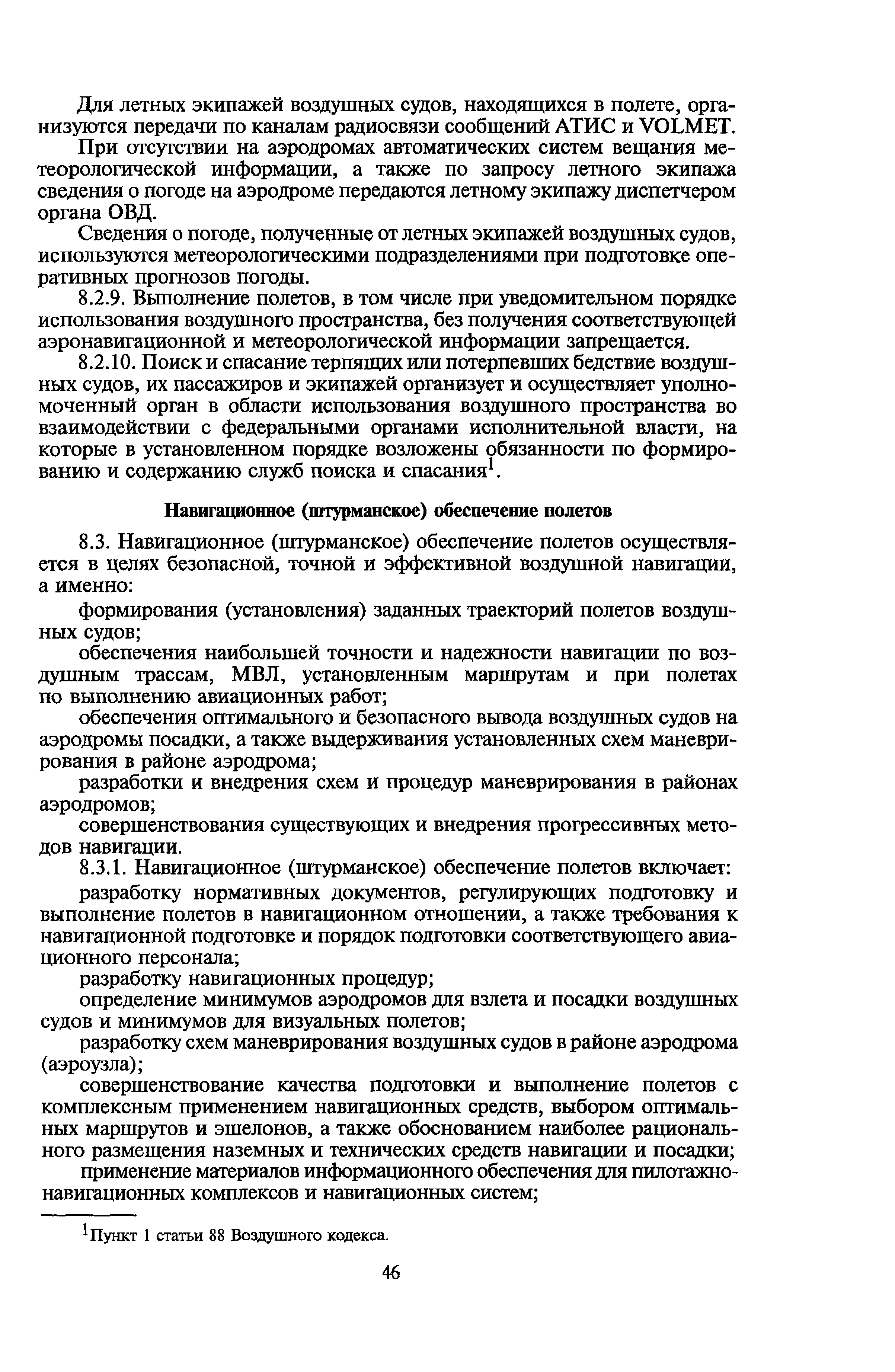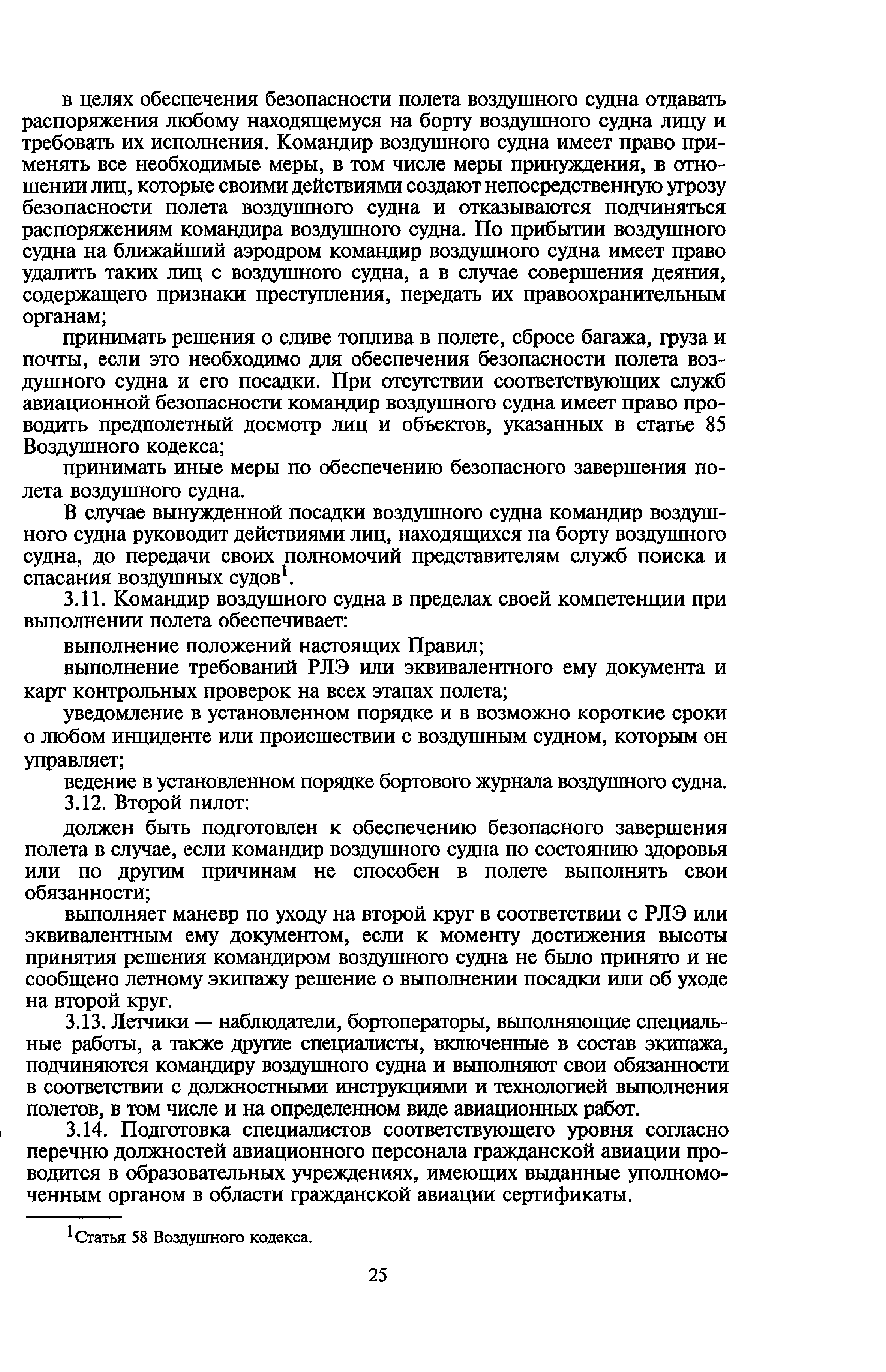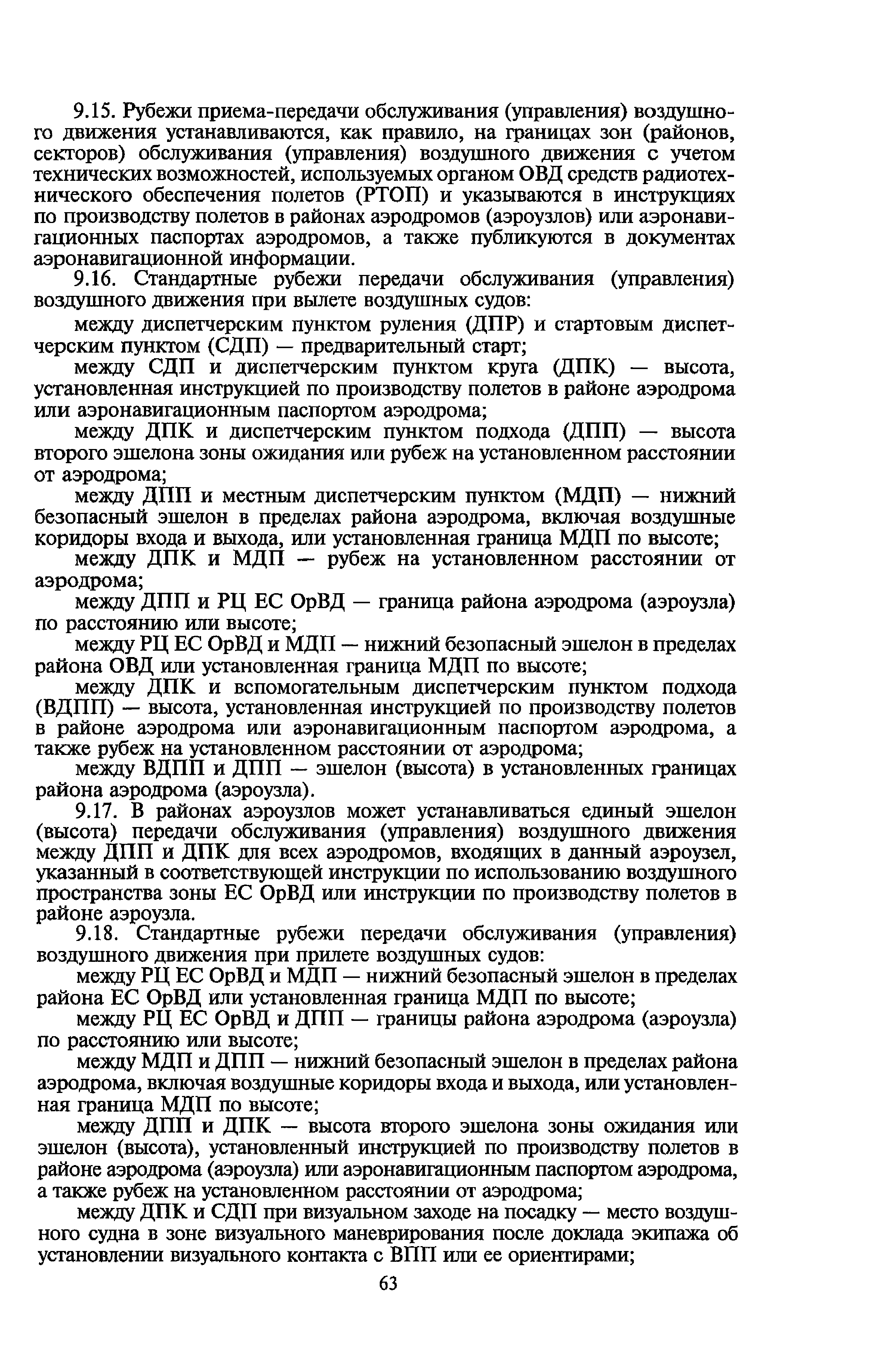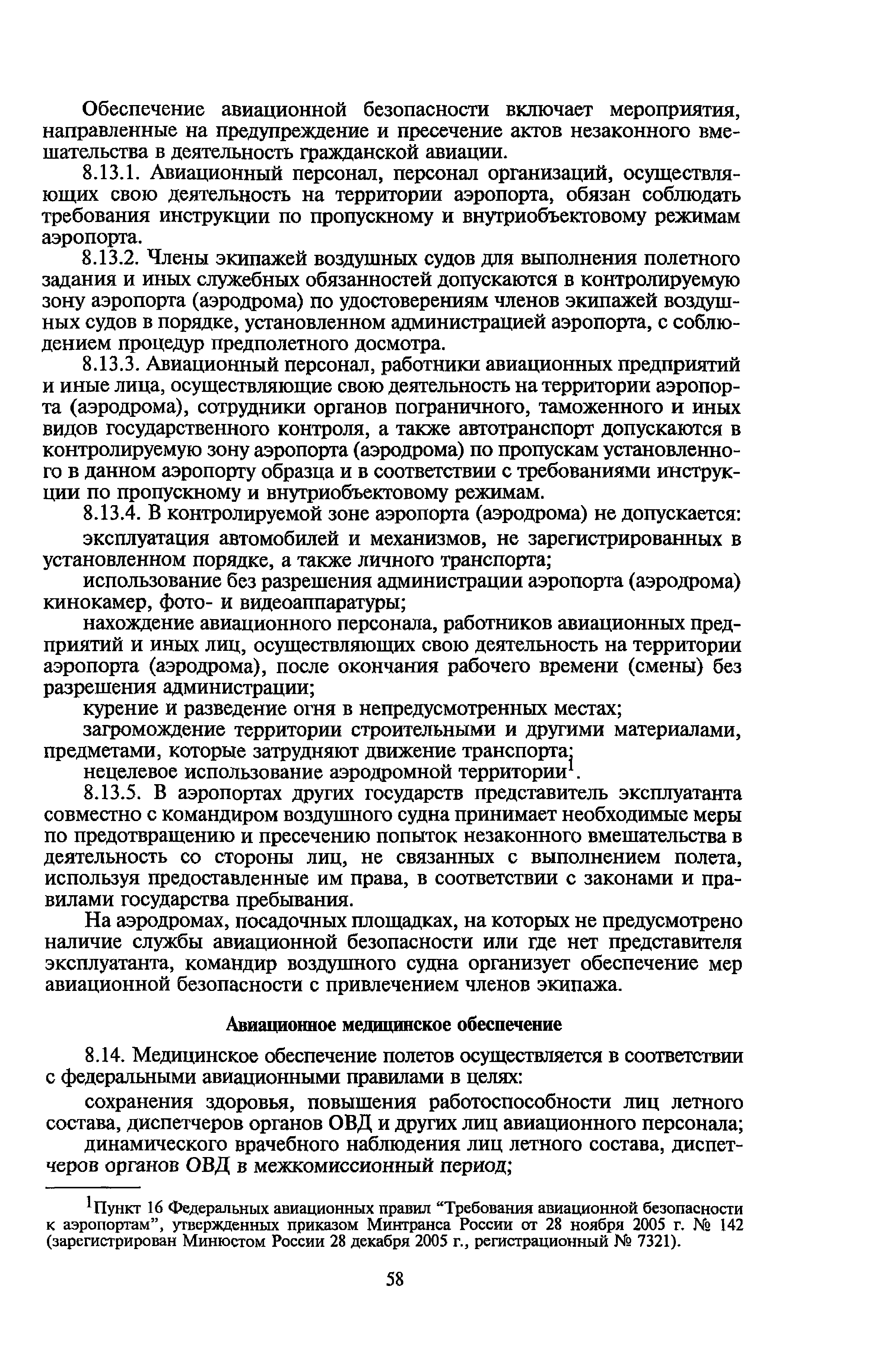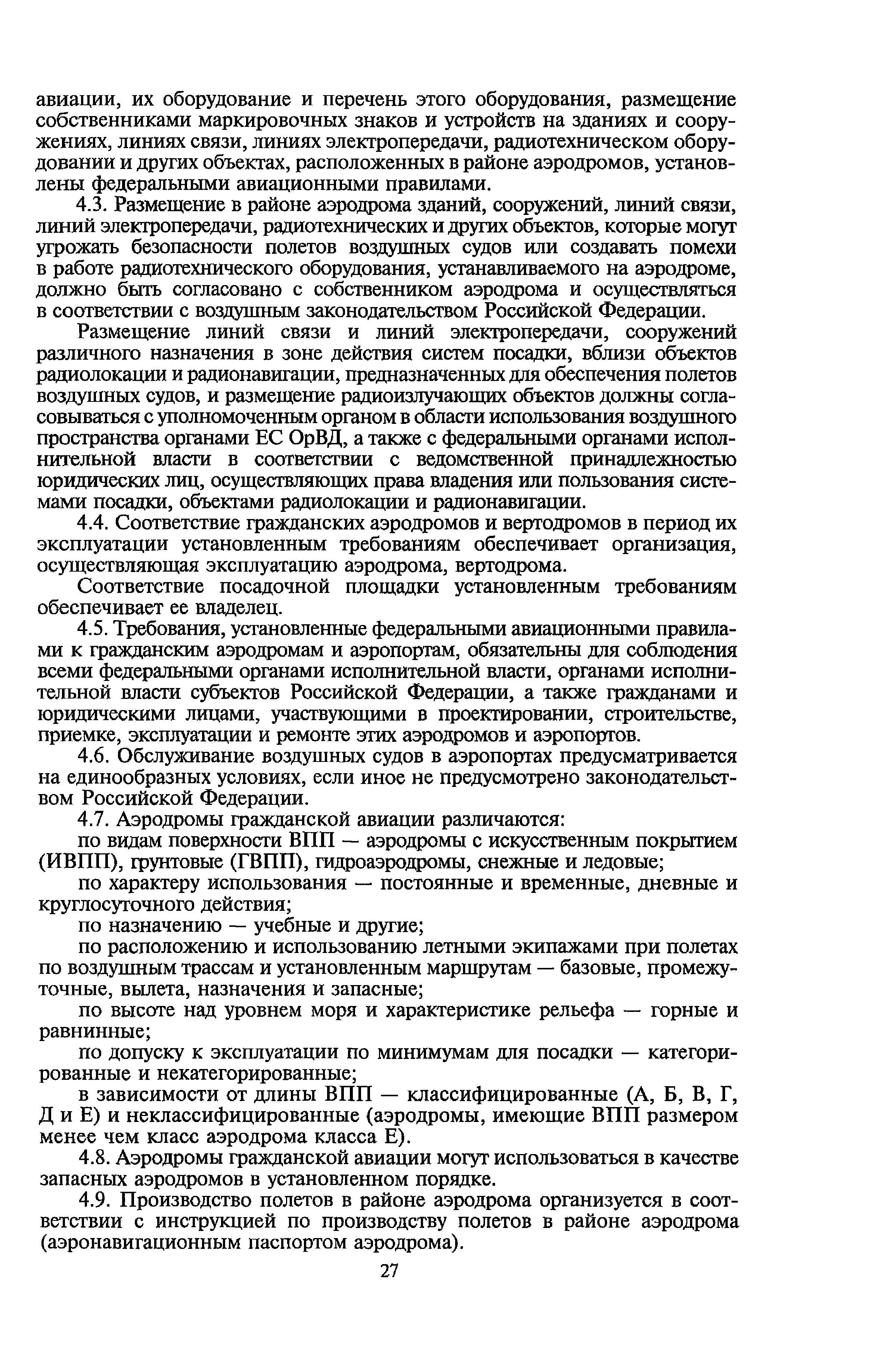 | Оглавление: | I. Общие положения II. Воздушные суда III. Экипаж воздушного судна IV. Аэродромы, аэропорты, вертодромы и посадочные площадки V. Классификация полетов в гражданской авиации VI. Минимумы Эксплуатационные минимумы аэродрома (вертодрома) Минимум командира воздушного судна Минимум вида авиационных работ VII. Организация летной работы Планирование летной работы Летно-методическая работа Профессиональная подготовка членов экипажей воздушных судов Допуск летного состава к полетам Формирование экипажей воздушных судов Предварительная и предполетная подготовка членов летных экипажей Полеты с проверяющими в составе экипажа воздушного судна Проверки техники пилотирования, практической работы членов экипажа Разборы полетов Контроль полетов, анализ летной работы и безопасности полетов VIII. Обеспечение полетов Аэронавигационное обслуживание полетов воздушных судов Навигационное (штурманское) обеспечение полетов Метеорологическое обеспечение полетов Инженерно-авиационное обеспечение Аэродромное обеспечение Авиатопливообеспечение Светотехническое обеспечение Радиотехническое обеспечение Орнитологическое обеспечение Организационное обеспечение перевозок, авиационных работ Организационное обеспечение полетов Обеспечение авиационной безопасности Авиационное медицинское обеспечение Аварийно-спасательное обеспечение IX. Воздушное пространство Российской Федерации. Организация и обслуживание (управление) воздушного движения в Российской Федерации Разрешительный и уведомительный порядок использования воздушного пространства Обслуживание (управление) воздушного движения X. Правила полетов Правила полетов по приборам Правила визуальных полетов, включая полеты по минимальным условиям ПВП Общие правила вылета, прилета воздушных судов и определение запасного аэродрома Особенности принятия решения на вылет и прилет по ППП Особенности принятия решения на вылет и прилет по ПВП Правила установки шкалы давления барометрического высотомера Правила определения и выдерживания безопасных высот полета Правила вертикального эшелонирования Правила продольного эшелонирования Правила бокового эшелонирования Правила изменения эшелона (высоты) полета и пересечения воздушной трассы, МВЛ и маршрута полета Правила полетов по воздушным трассам, МВЛ и установленным маршрутам Правила определения минимального количества топлива на полет и аэронавигационного запаса топлива Особенности полетов в воздушном пространстве приграничной полосы Российской Федерации и при пересечении государственной границы Российской Федерации Особенности производства полетов в районе аэродрома (аэроузла) и на контролируемых аэродромах Особенности в правилах выполнения особо важных и специальных рейсов (полетов) на вертолетах XI. Порядок выполнения полетов Буксировка, запуск, руление Взлет Набор высоты Выполнение полетов по воздушным трассам, МВЛ и маршрутам Снижение, заход на посадку и посадка Полеты на вертолетах Полеты на гидросамолетах Учебные и тренировочные полеты Полеты по перегонке воздушных судов, в том числе при групповых перелетах Испытательные, исследовательские и контрольные полеты (облеты) XII. Особенности организации и выполнения полетов в авиации общего назначения Общие правила выполнения полетов сверхлегк