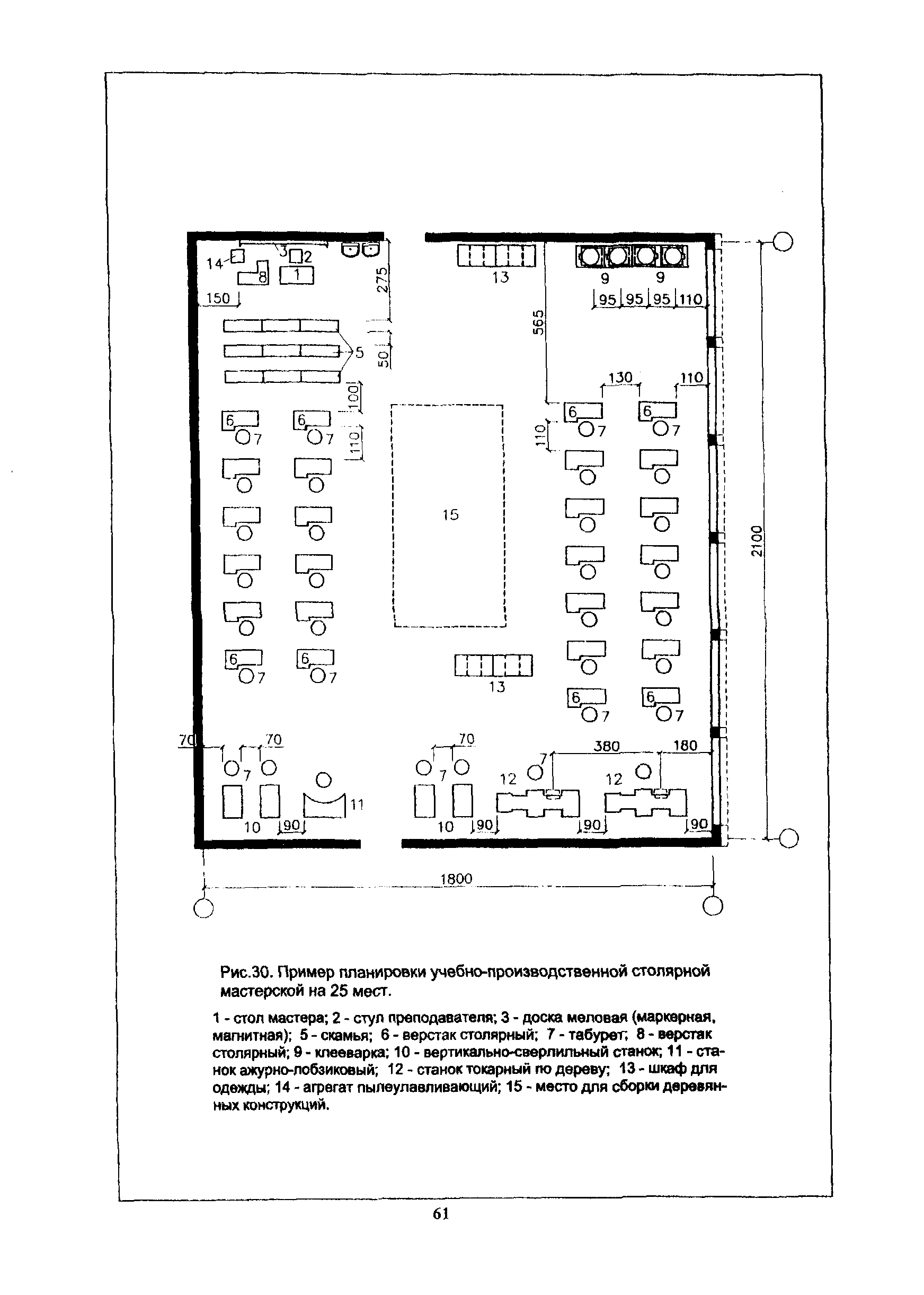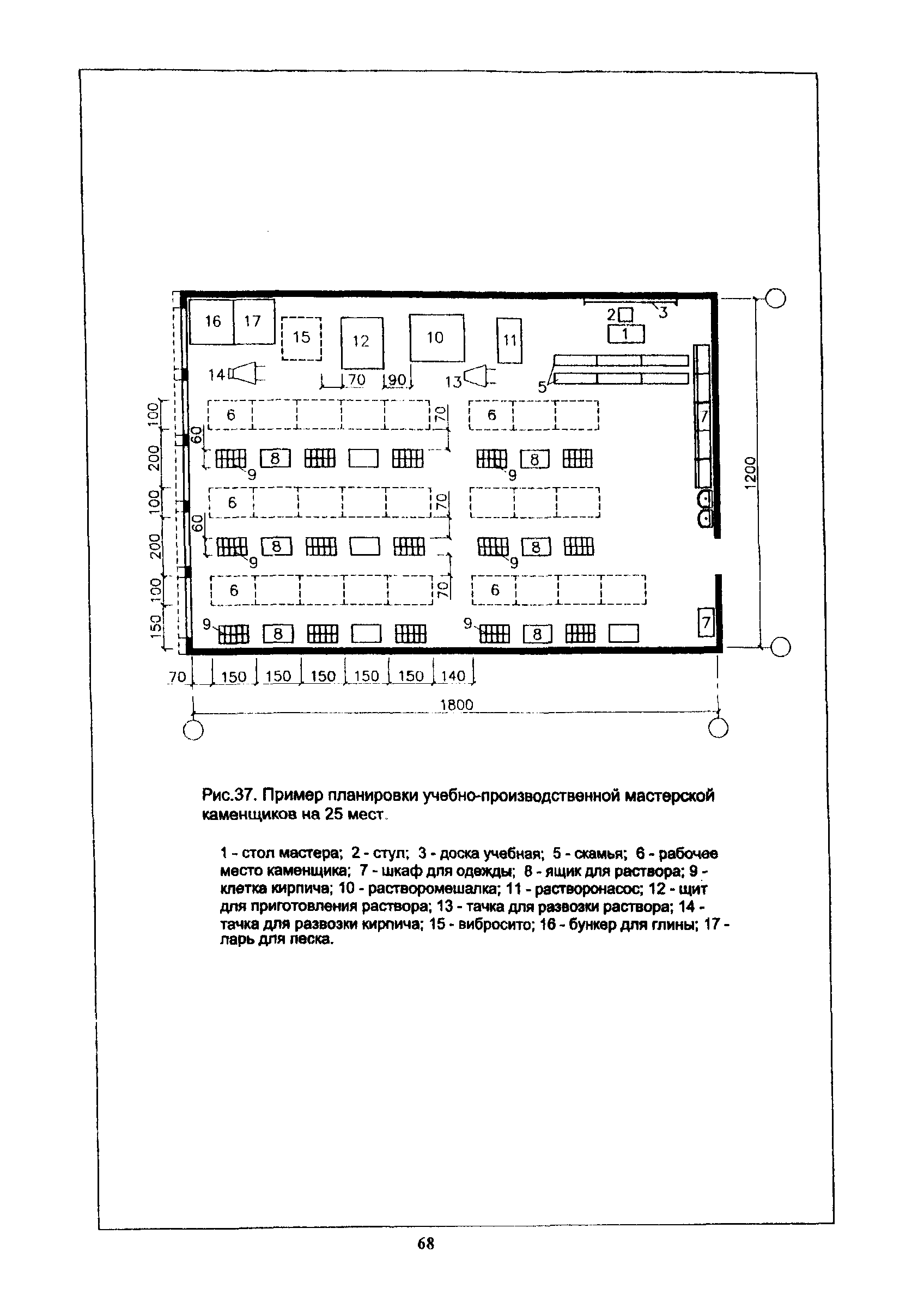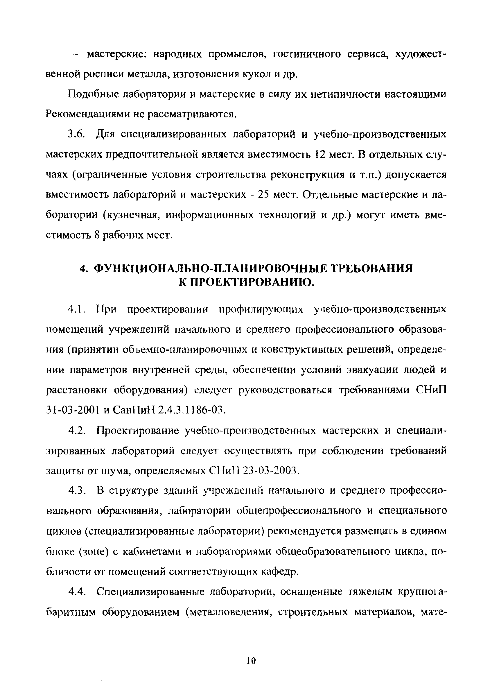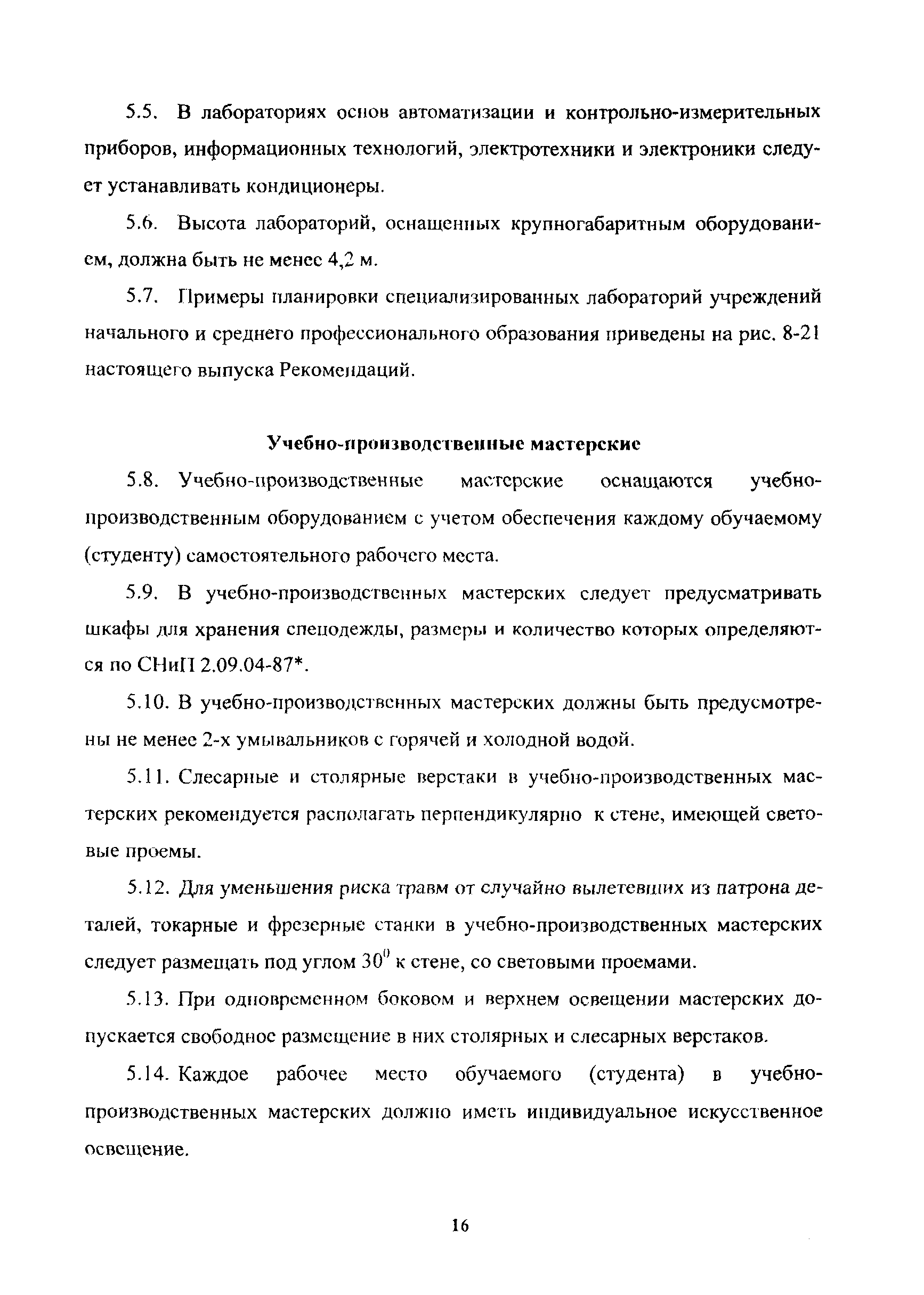 | Оглавление: | 1. Область применения 2. Нормативные ссылки 3. Общая часть 4. Функционально-планировочные требования к проектированию 5. Примеры планировки основных профилирующих учебно-производственных помещений Приложения |