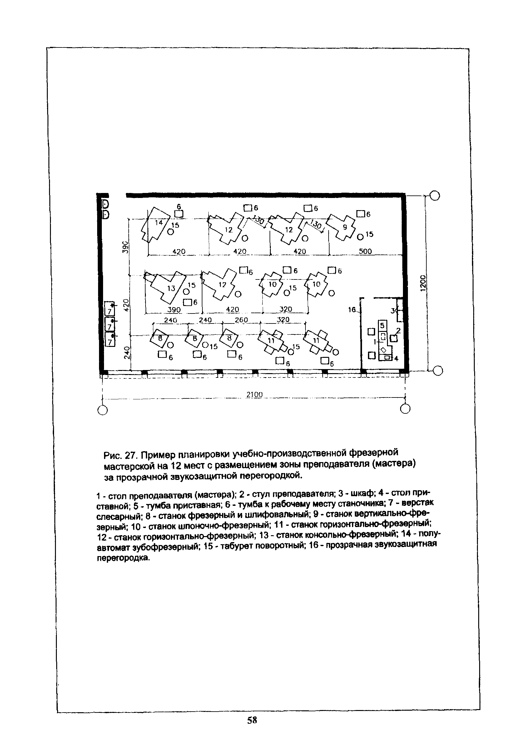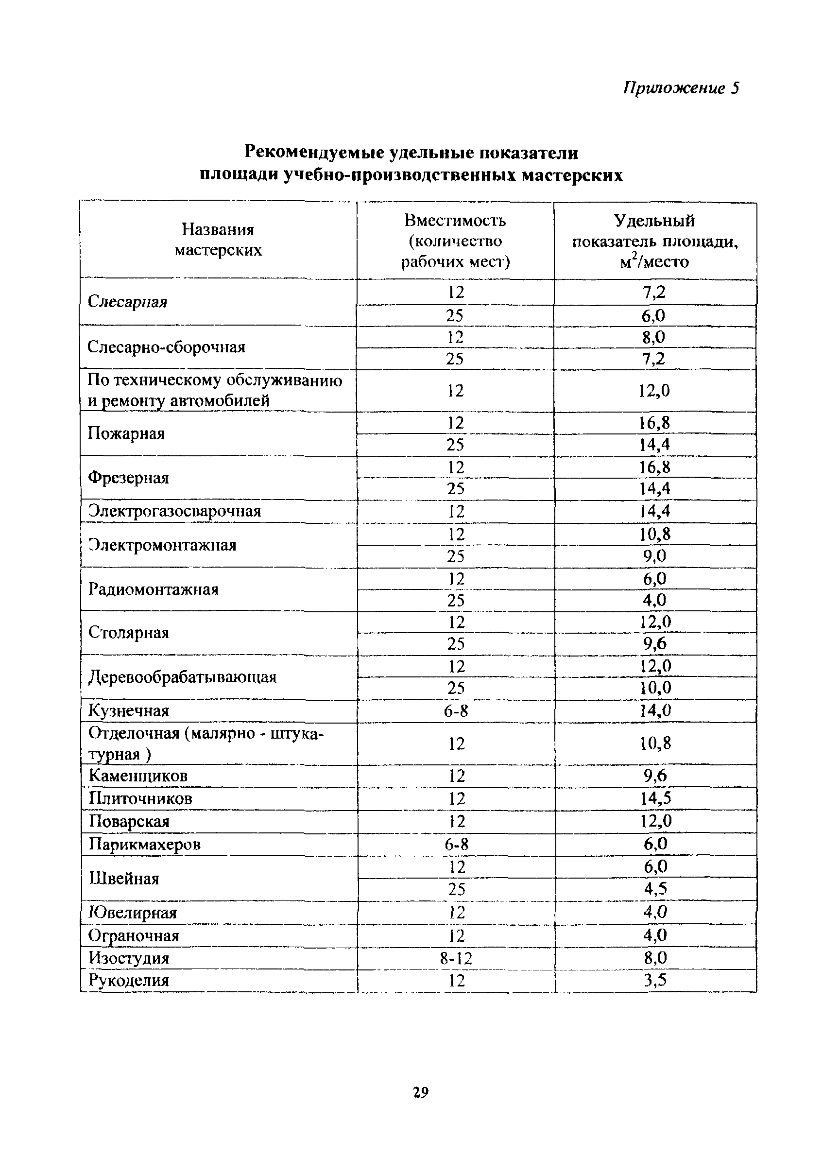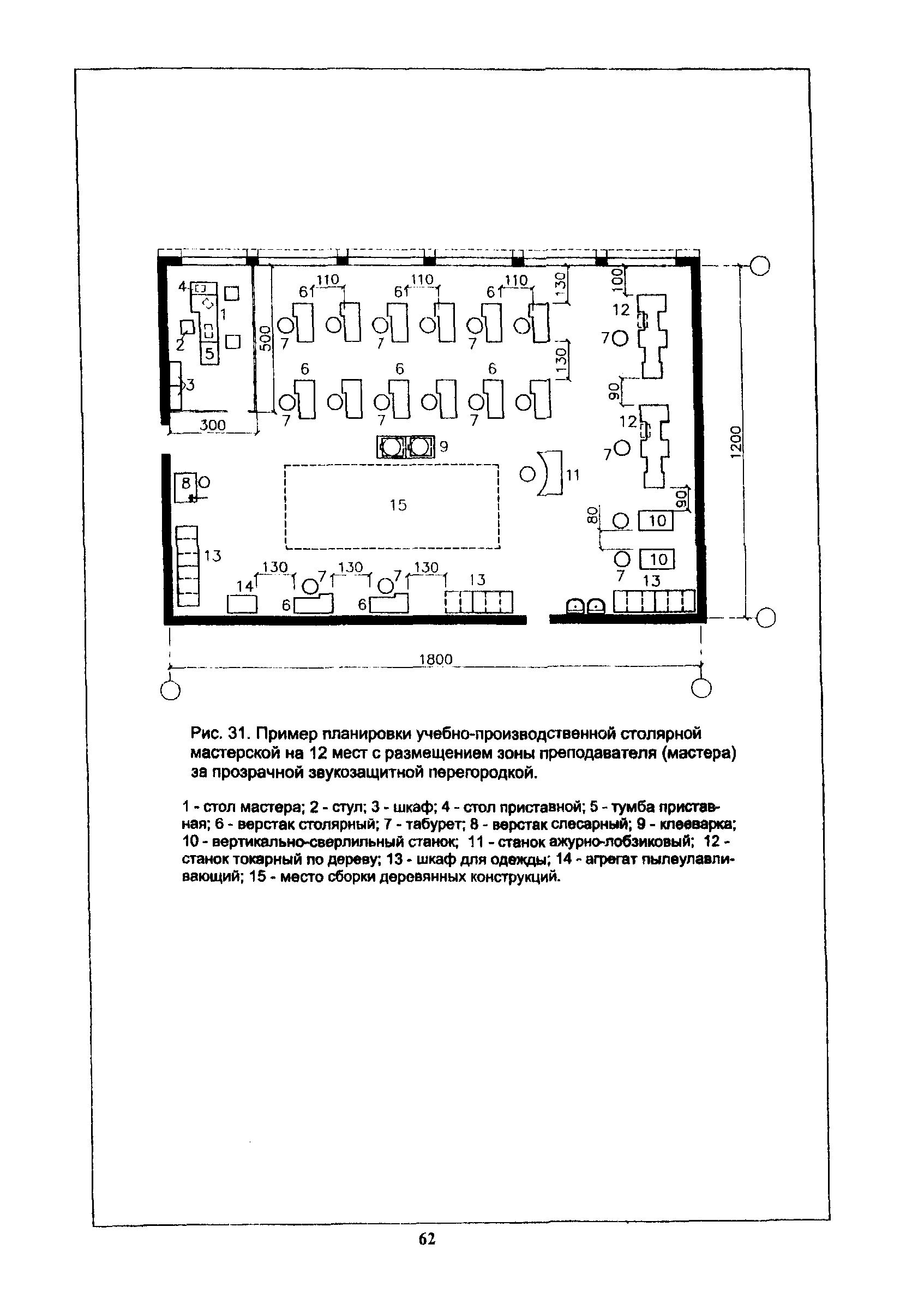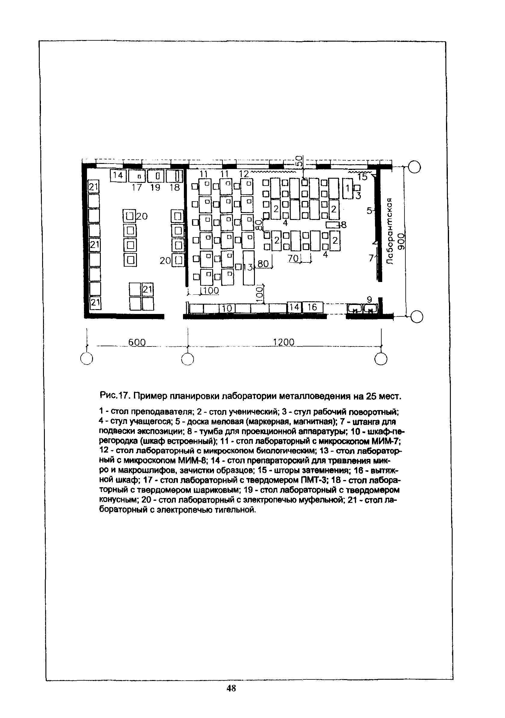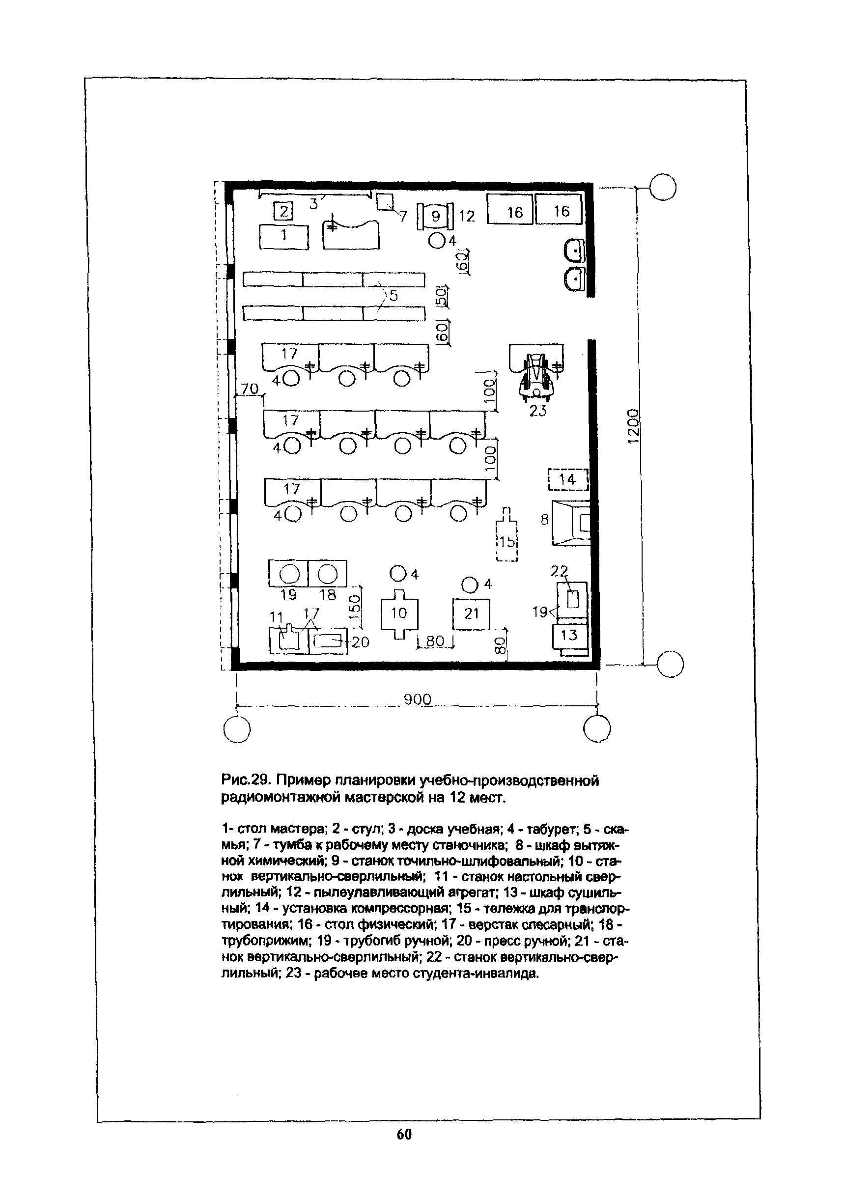 | Оглавление: | 1. Область применения 2. Нормативные ссылки 3. Общая часть 4. Функционально-планировочные требования к проектированию 5. Примеры планировки основных профилирующих учебно-производственных помещений Приложения |