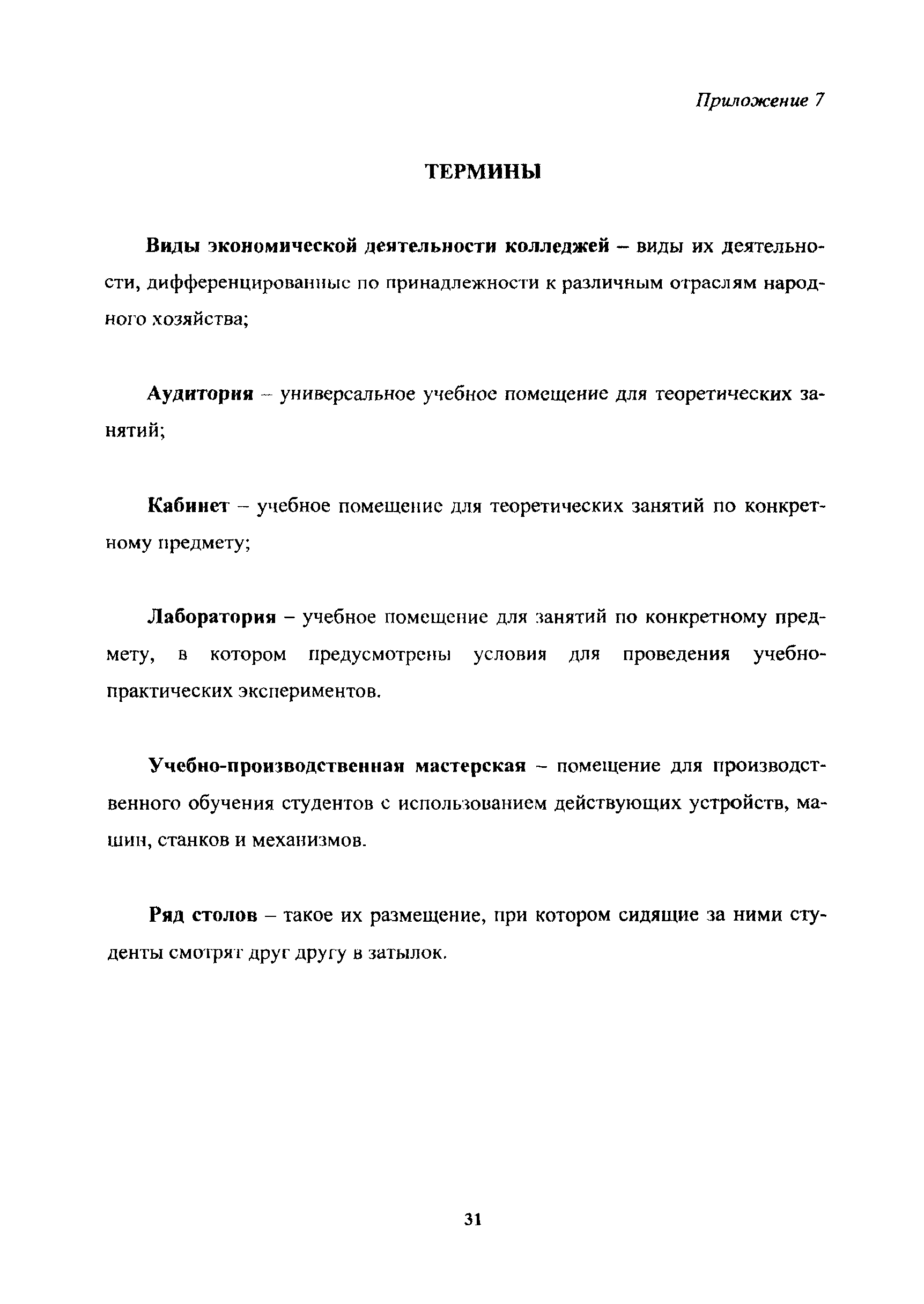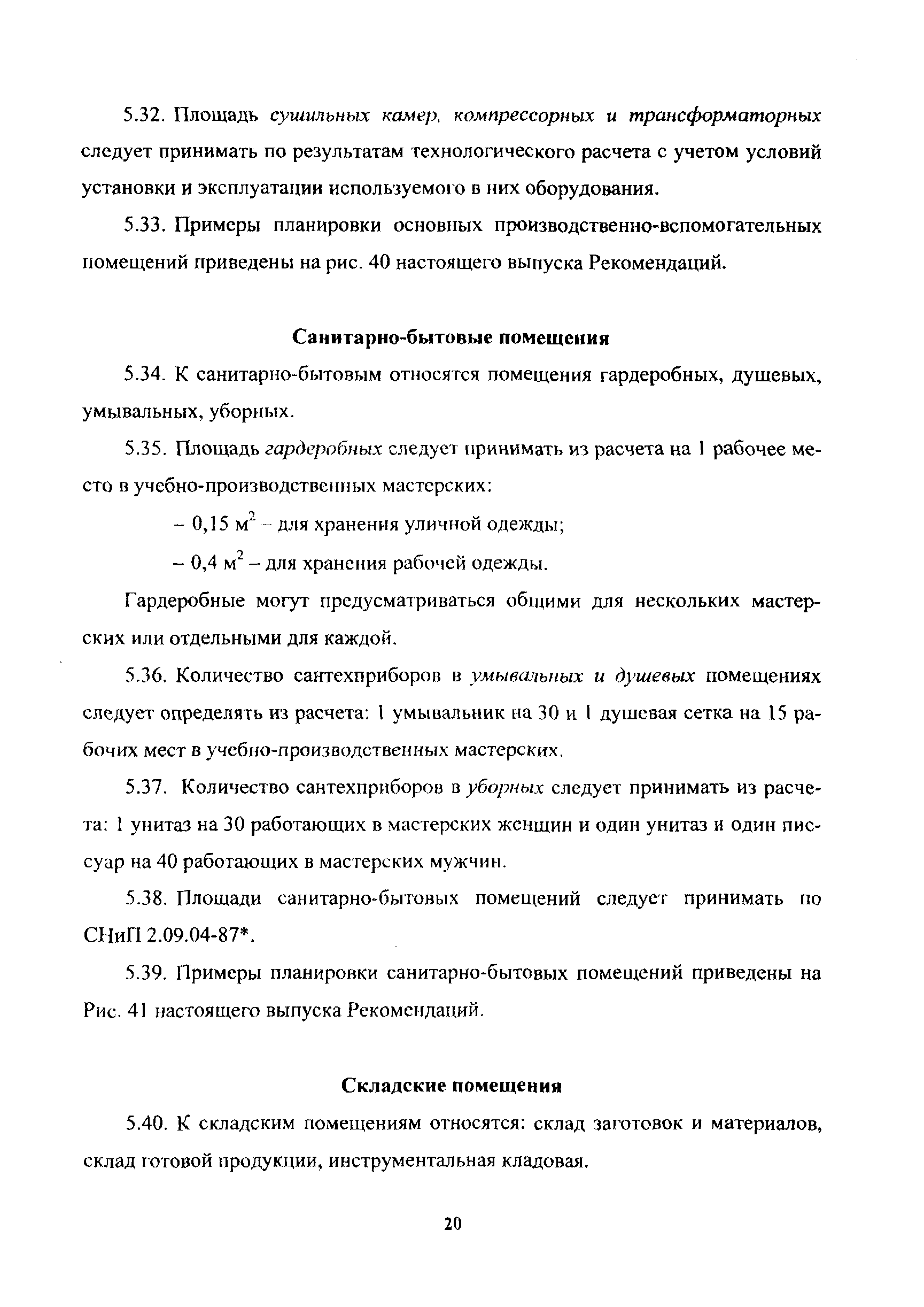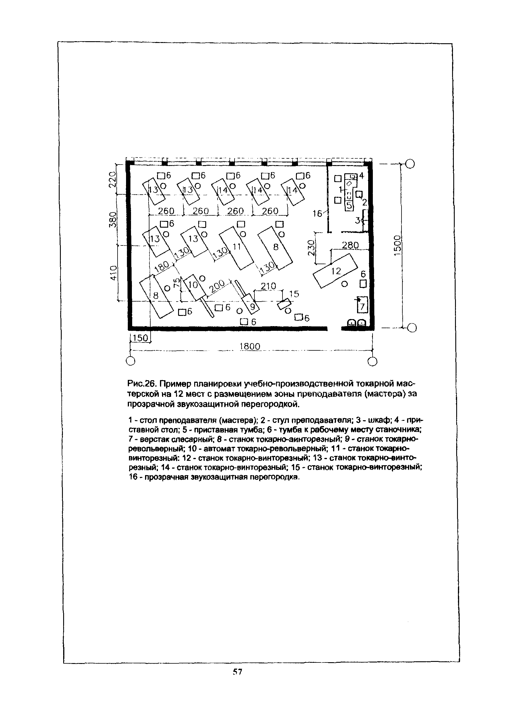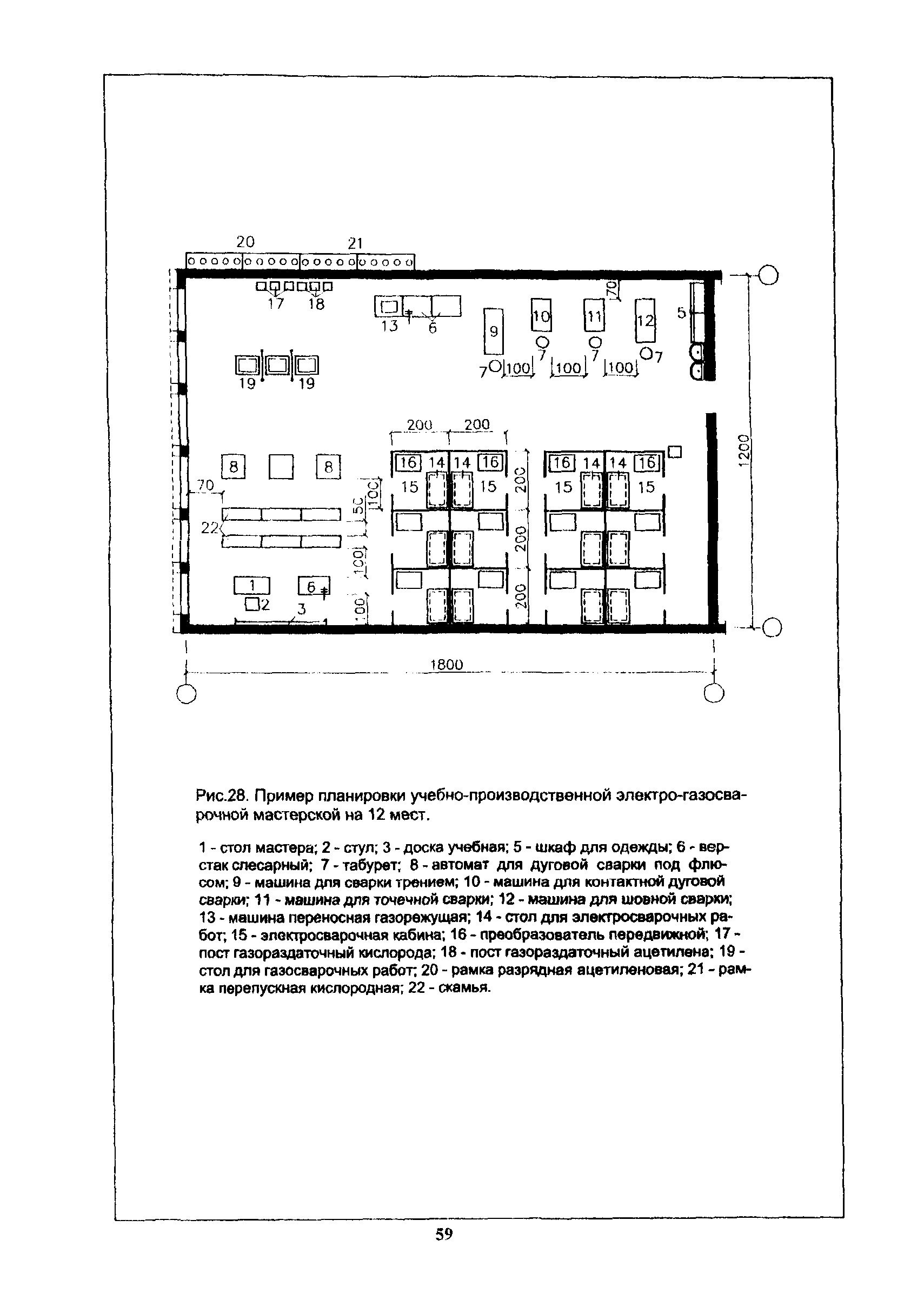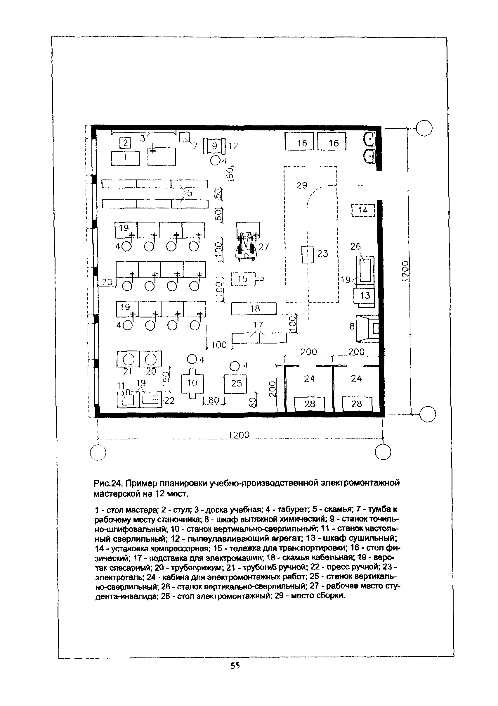 | Оглавление: | 1. Область применения 2. Нормативные ссылки 3. Общая часть 4. Функционально-планировочные требования к проектированию 5. Примеры планировки основных профилирующих учебно-производственных помещений Приложения |