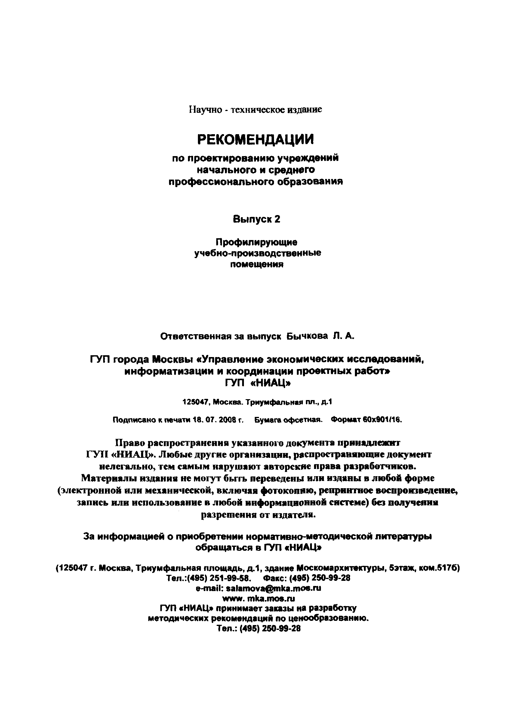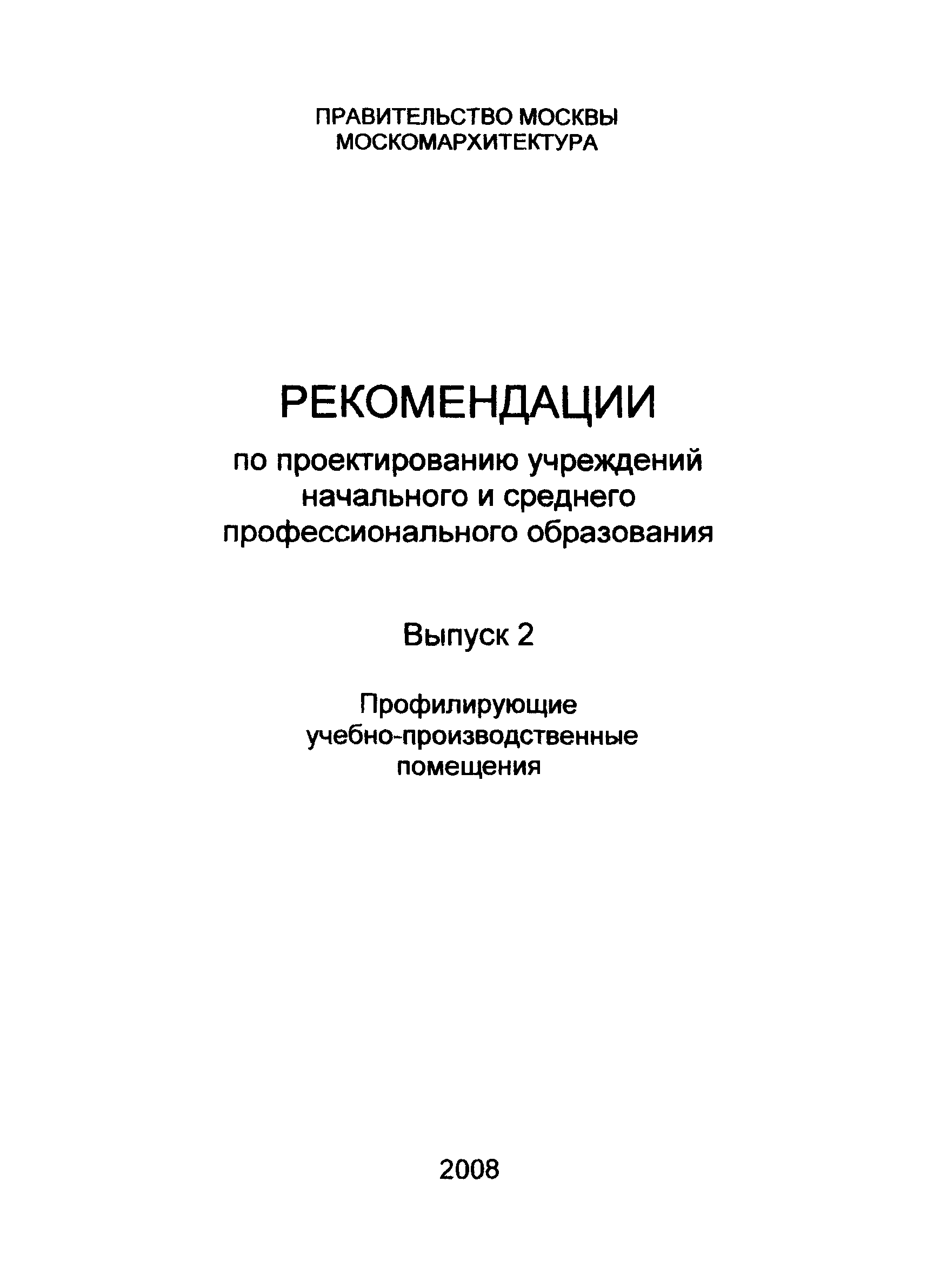 | Название рус.: | Рекомендации по проектированию учреждений начального и среднего профессионального образования. Выпуск 2. Профилирующие учебно-производственные помещения |