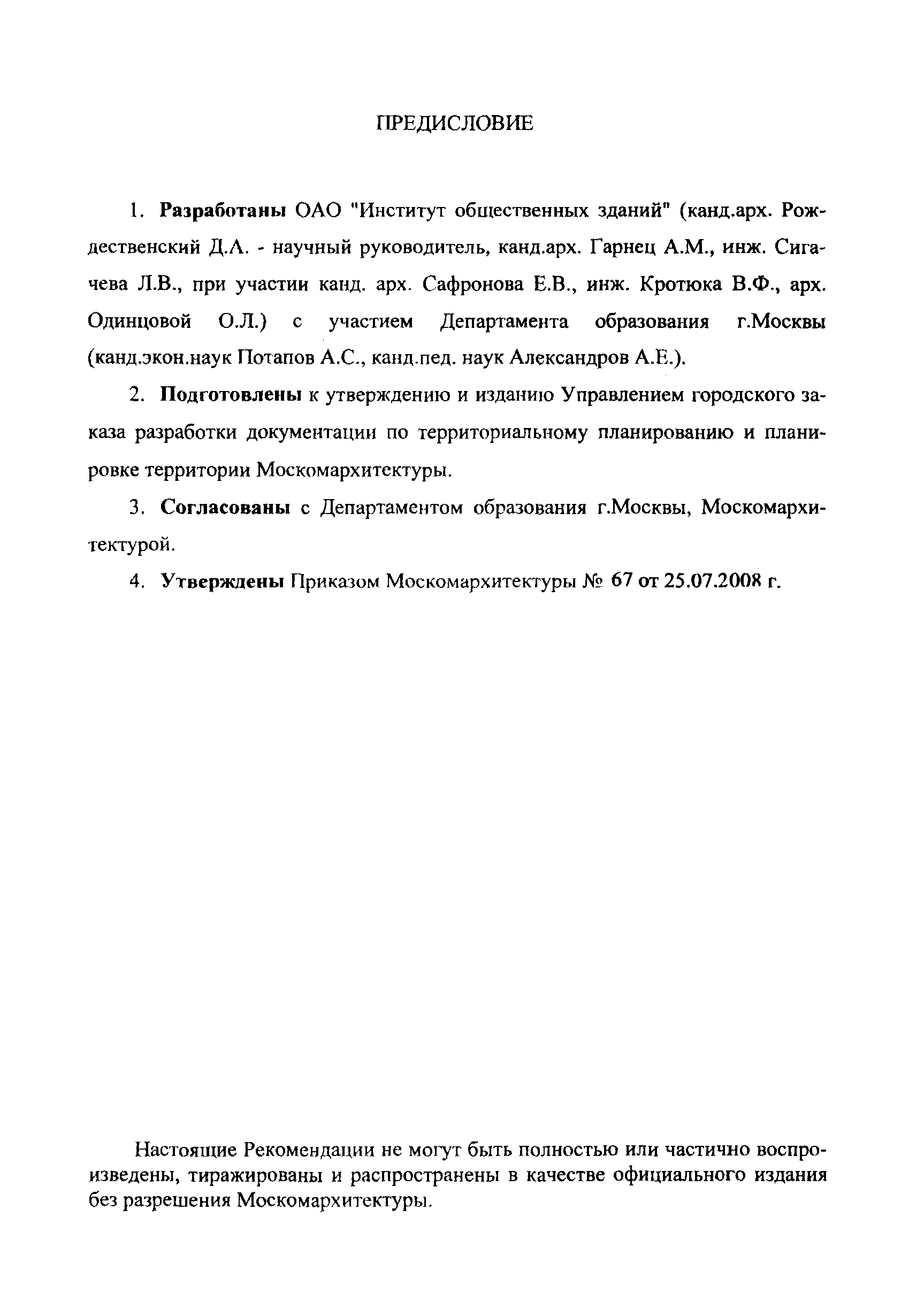 | Принят: | Департамент образования г. Москвы (Department of Education of the City of Moscow ) Москомархитектура (Moskomarkhitektura ) |