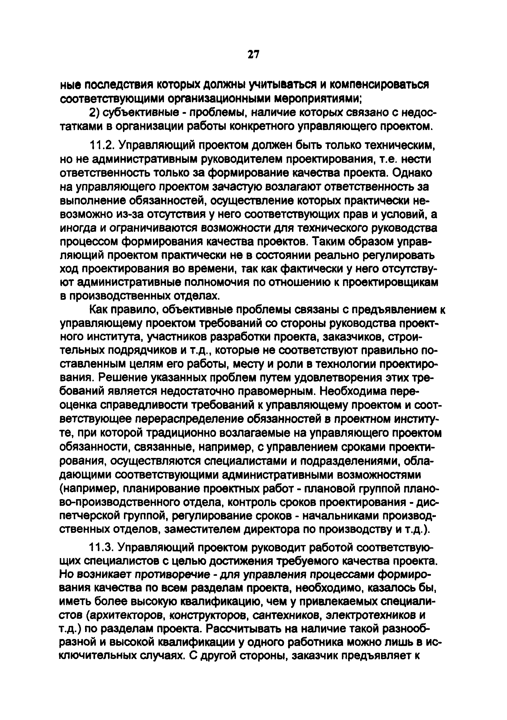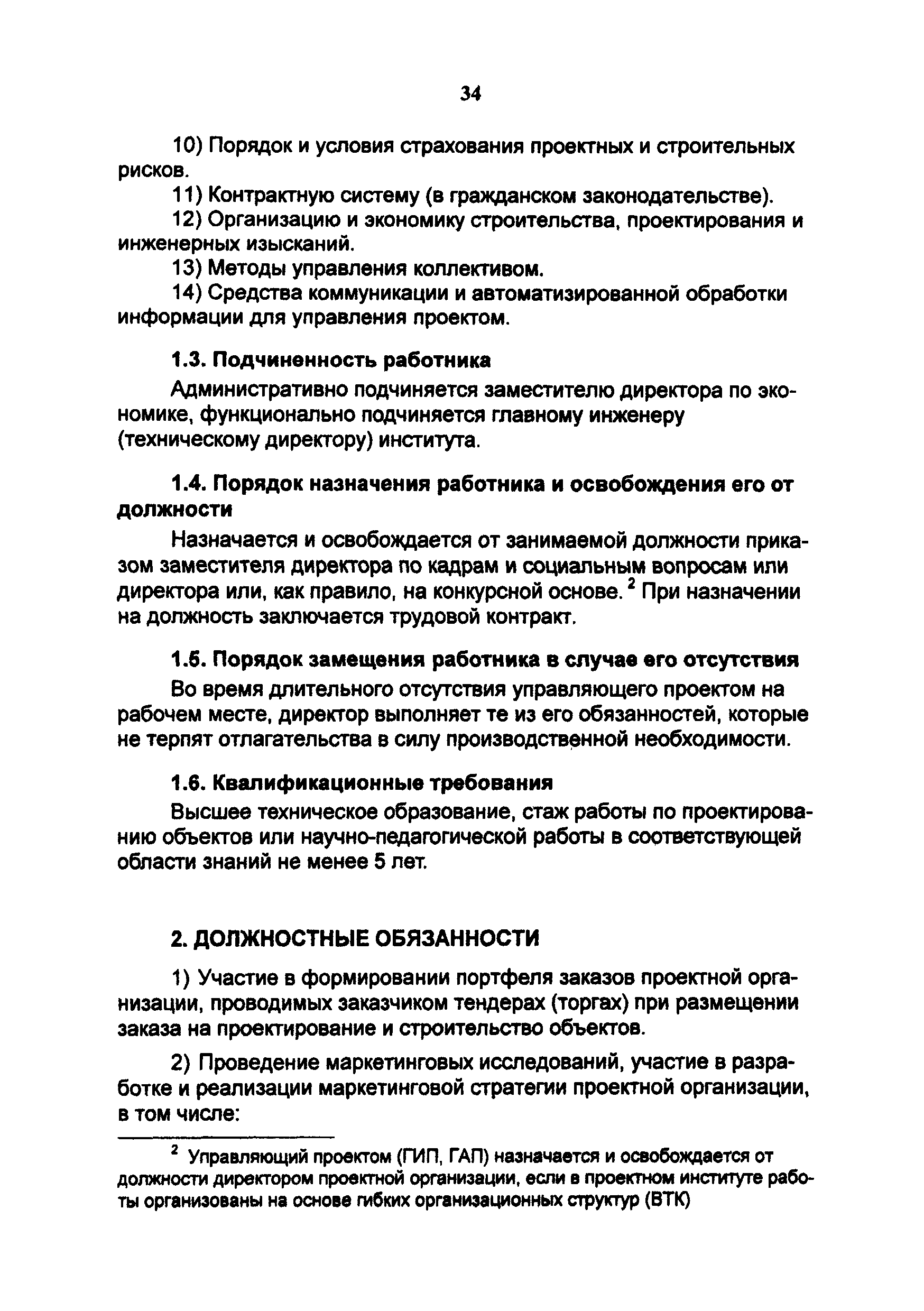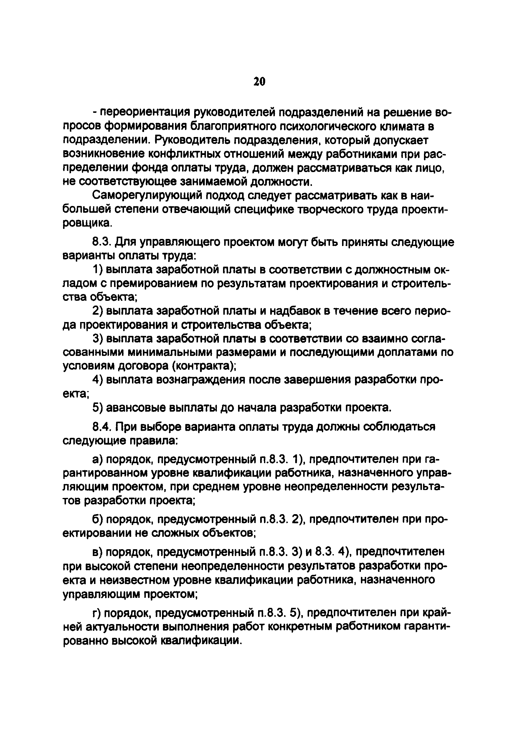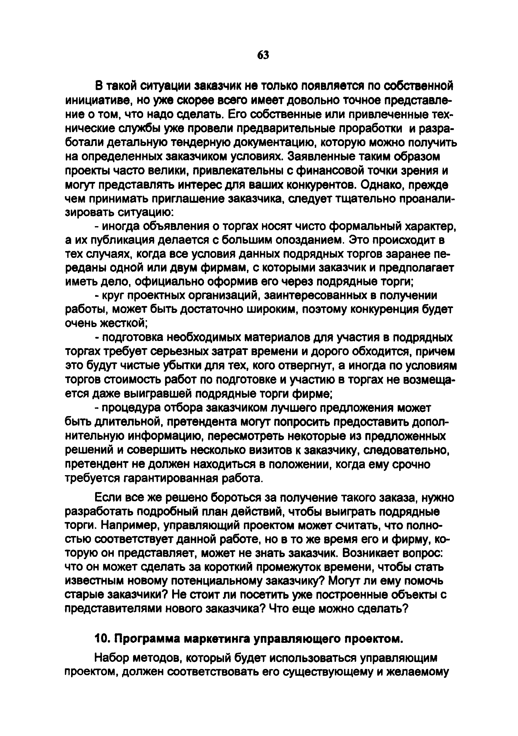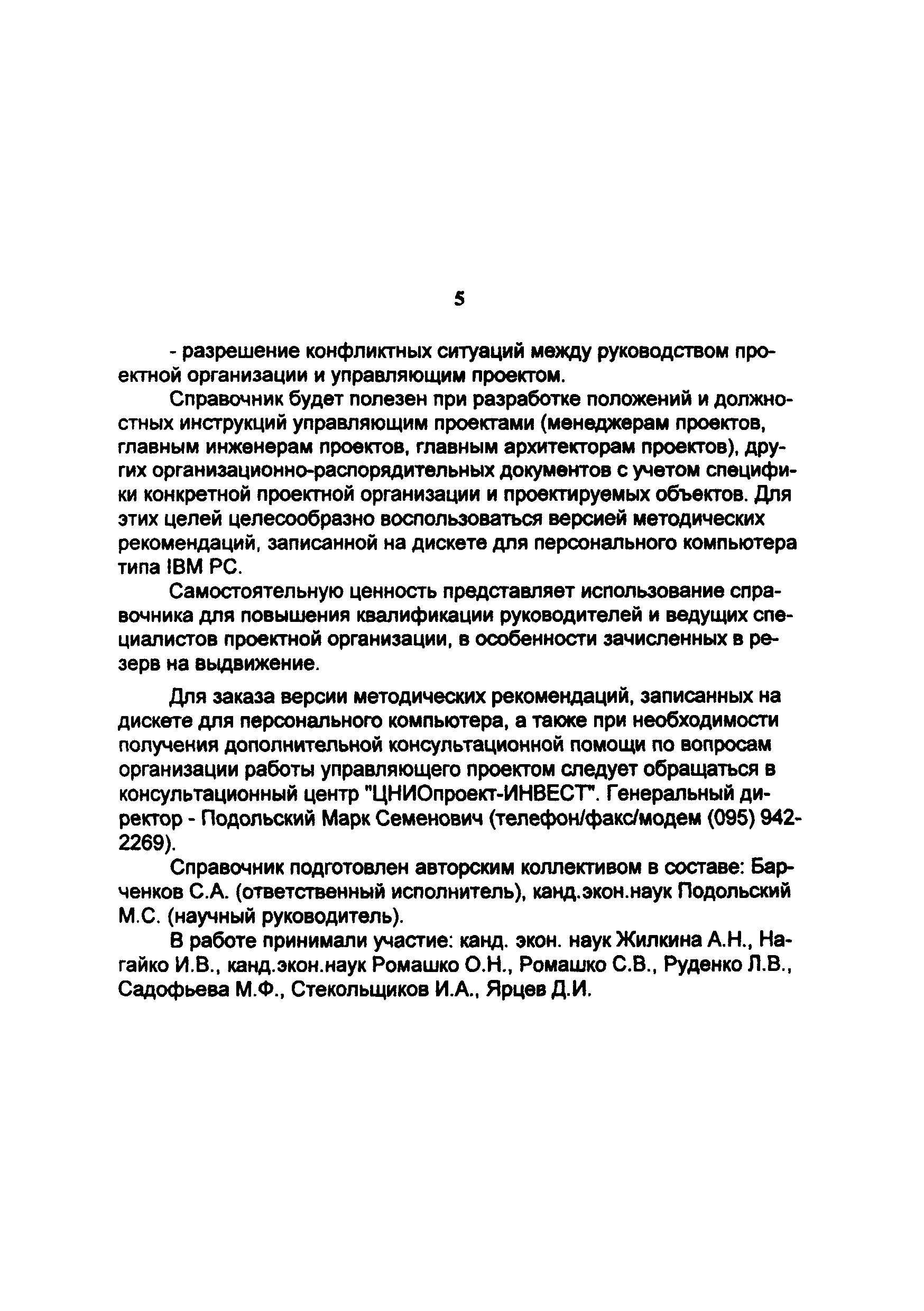 | Оглавление: | Введение 1. Общие положения 2. Назначение управляющего проектом 3. Главные задачи и обязанности управляющего проектом 4. Права управляющего проектом 5. Ответственность управляющего проектом 6. Требования к квалификации управляющего проектом 7. Этические нормы профессиональной деятельности управляющего проектом 8. Принципы оплаты труда управляющего проектом 9. Управляющий проектом в структуре проектной организации 10. Принципы и методы маркетинга для управляющего проектом 11. Деятельность управляющего проектом по техническому руководству проектными работами 12. Роль и основные функции управляющего проектом при осуществлении авторского надзора за строительством Приложения |