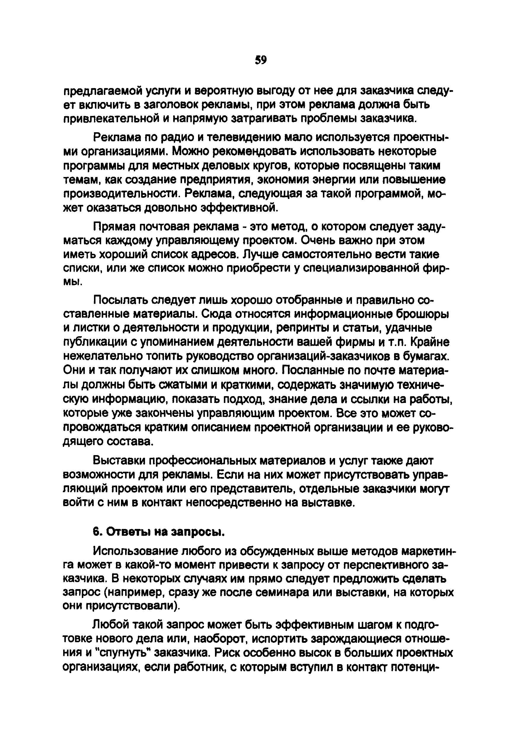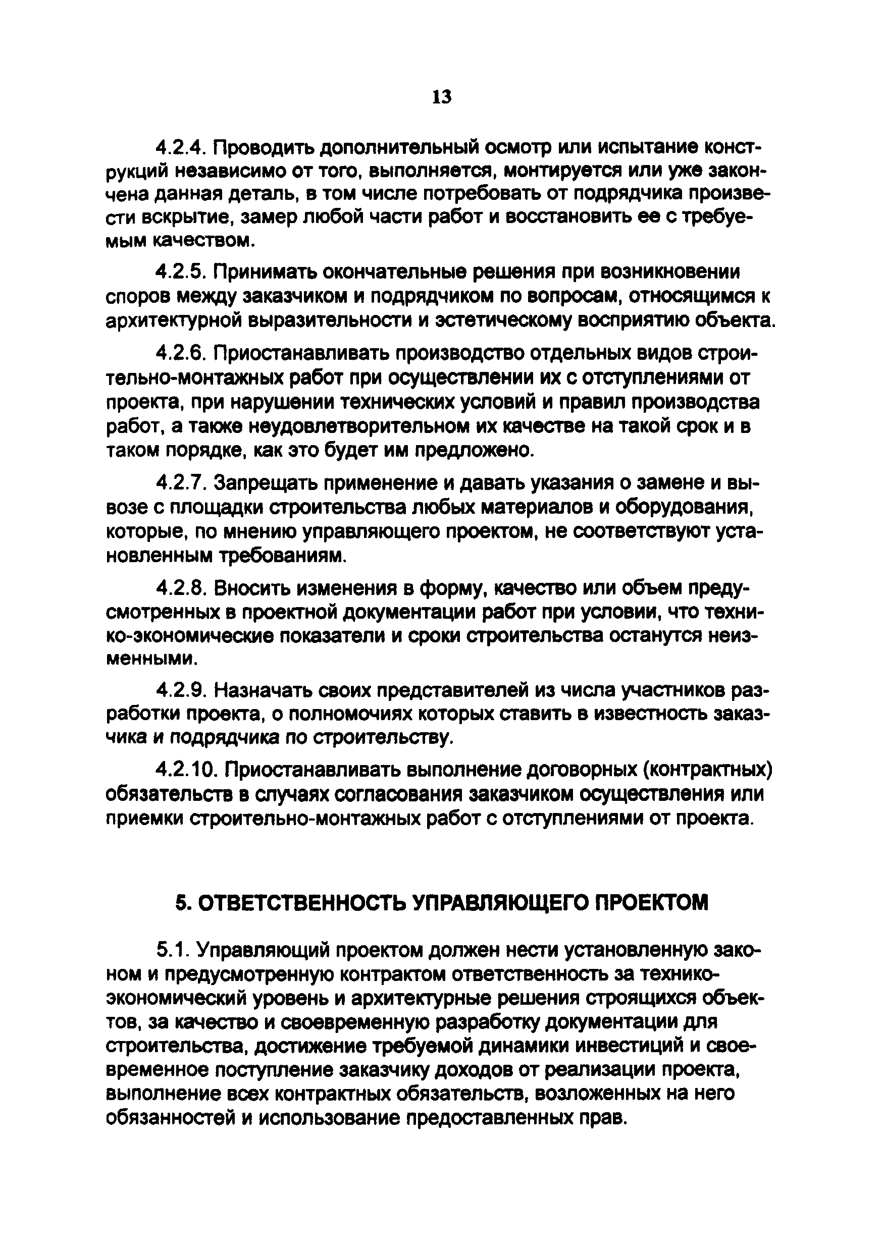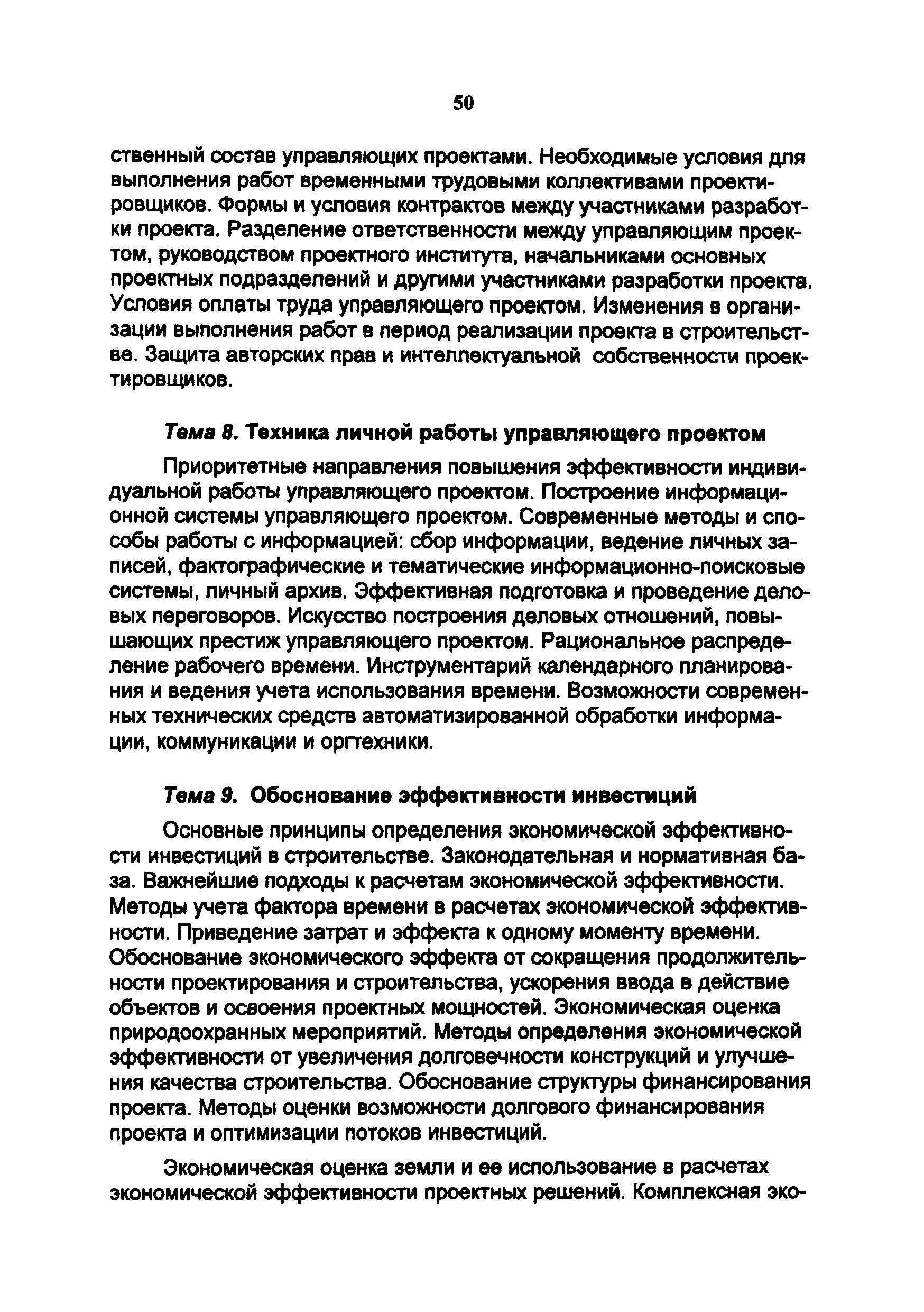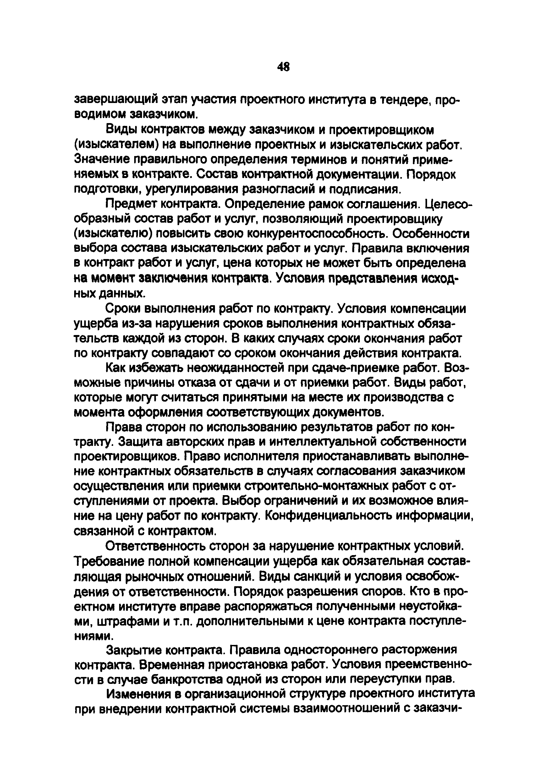 | Оглавление: | Введение 1. Общие положения 2. Назначение управляющего проектом 3. Главные задачи и обязанности управляющего проектом 4. Права управляющего проектом 5. Ответственность управляющего проектом 6. Требования к квалификации управляющего проектом 7. Этические нормы профессиональной деятельности управляющего проектом 8. Принципы оплаты труда управляющего проектом 9. Управляющий проектом в структуре проектной организации 10. Принципы и методы маркетинга для управляющего проектом 11. Деятельность управляющего проектом по техническому руководству проектными работами 12. Роль и основные функции управляющего проектом при осуществлении авторского надзора за строительством Приложения |
