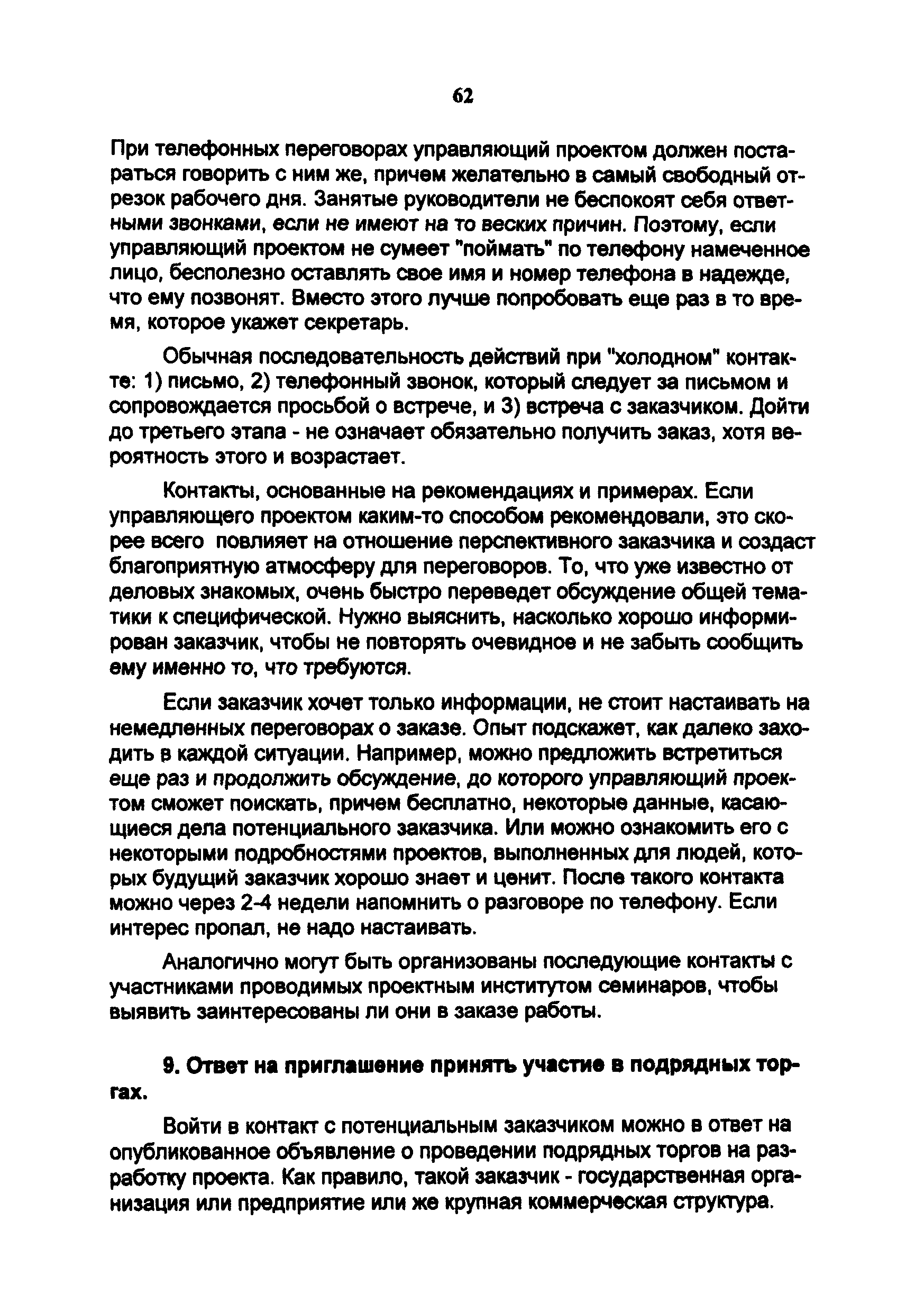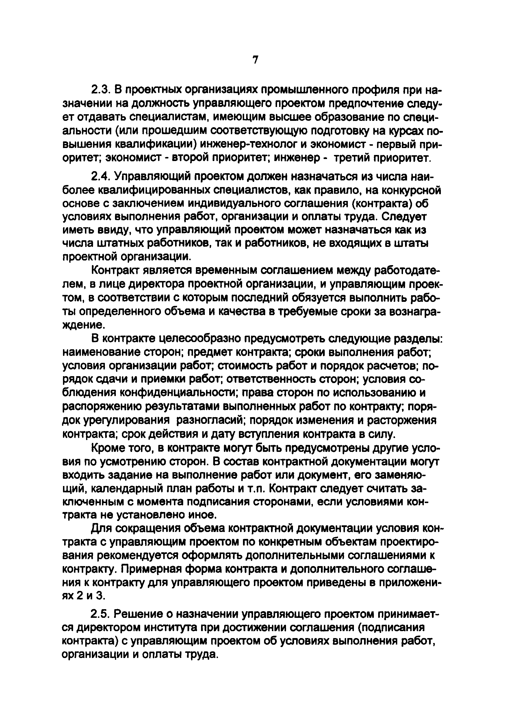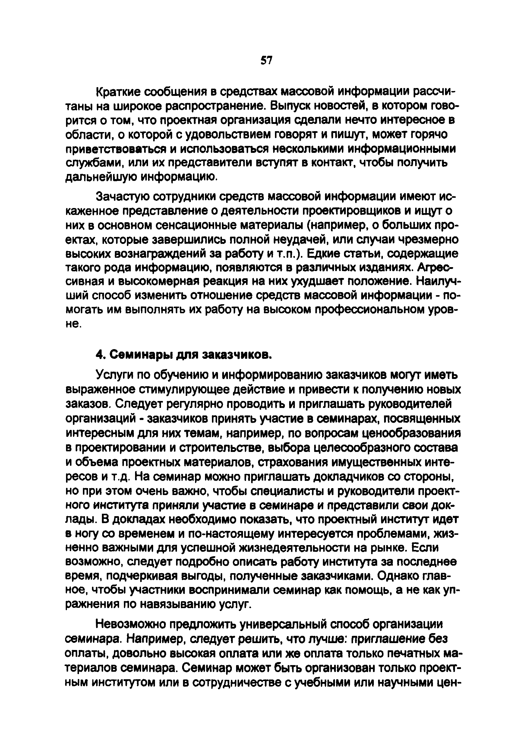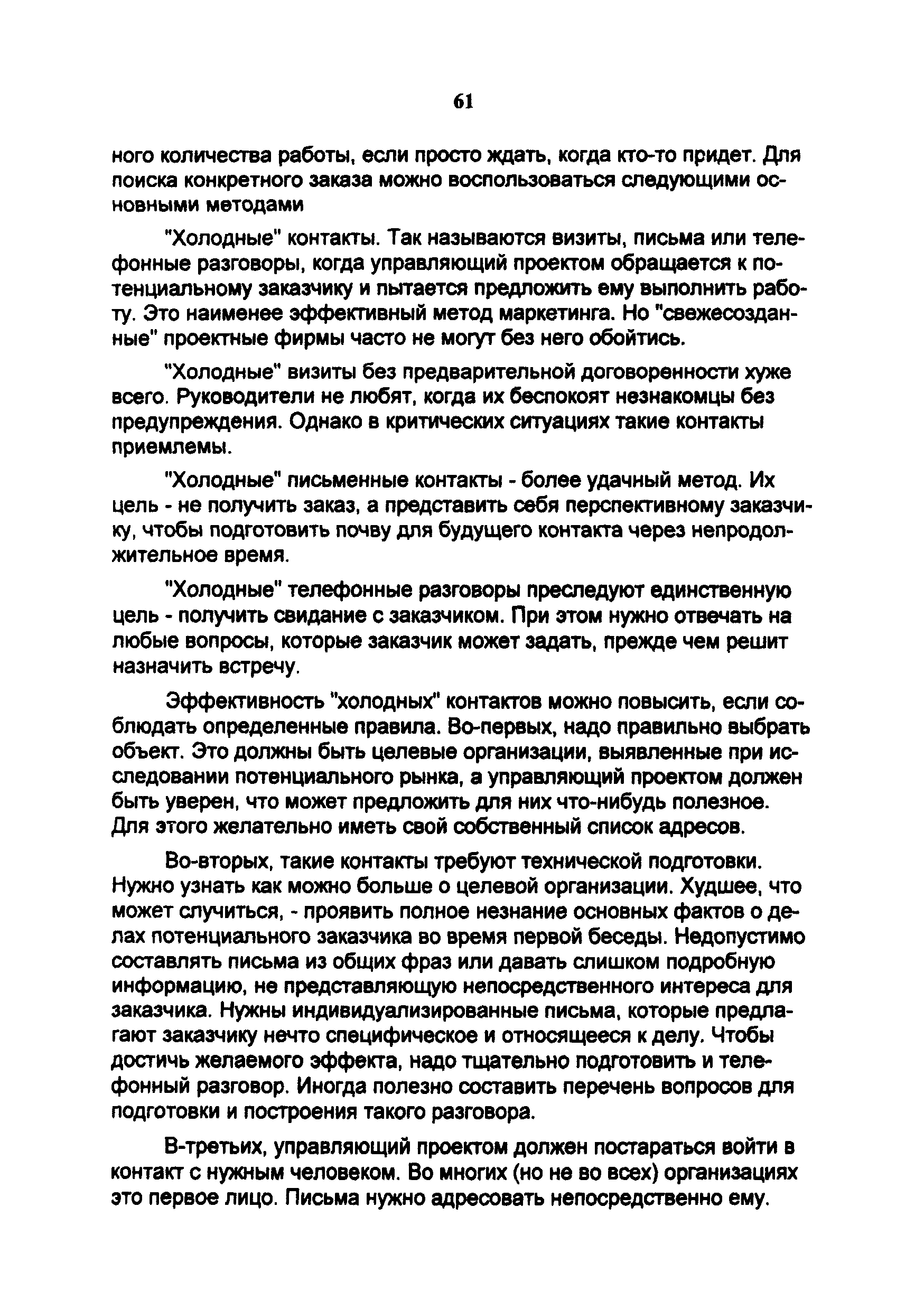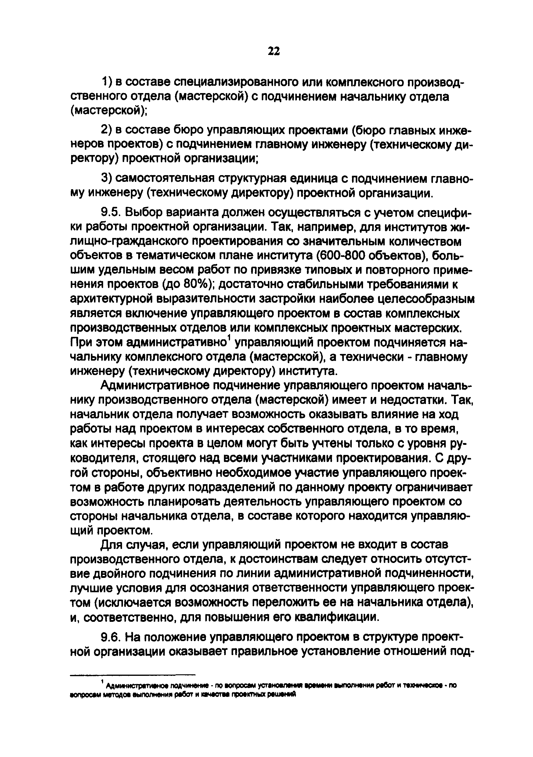 | Оглавление: | Введение 1. Общие положения 2. Назначение управляющего проектом 3. Главные задачи и обязанности управляющего проектом 4. Права управляющего проектом 5. Ответственность управляющего проектом 6. Требования к квалификации управляющего проектом 7. Этические нормы профессиональной деятельности управляющего проектом 8. Принципы оплаты труда управляющего проектом 9. Управляющий проектом в структуре проектной организации 10. Принципы и методы маркетинга для управляющего проектом 11. Деятельность управляющего проектом по техническому руководству проектными работами 12. Роль и основные функции управляющего проектом при осуществлении авторского надзора за строительством Приложения |