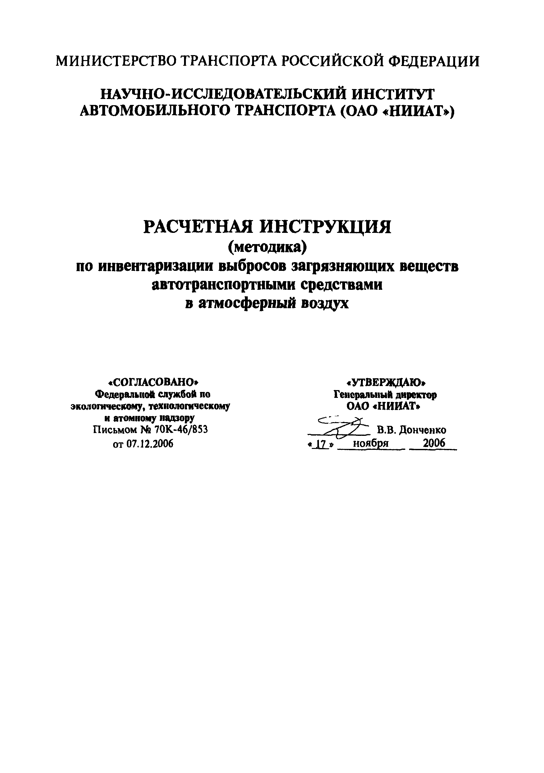 | Утверждён: | 17.11.2006 НИИАТ |