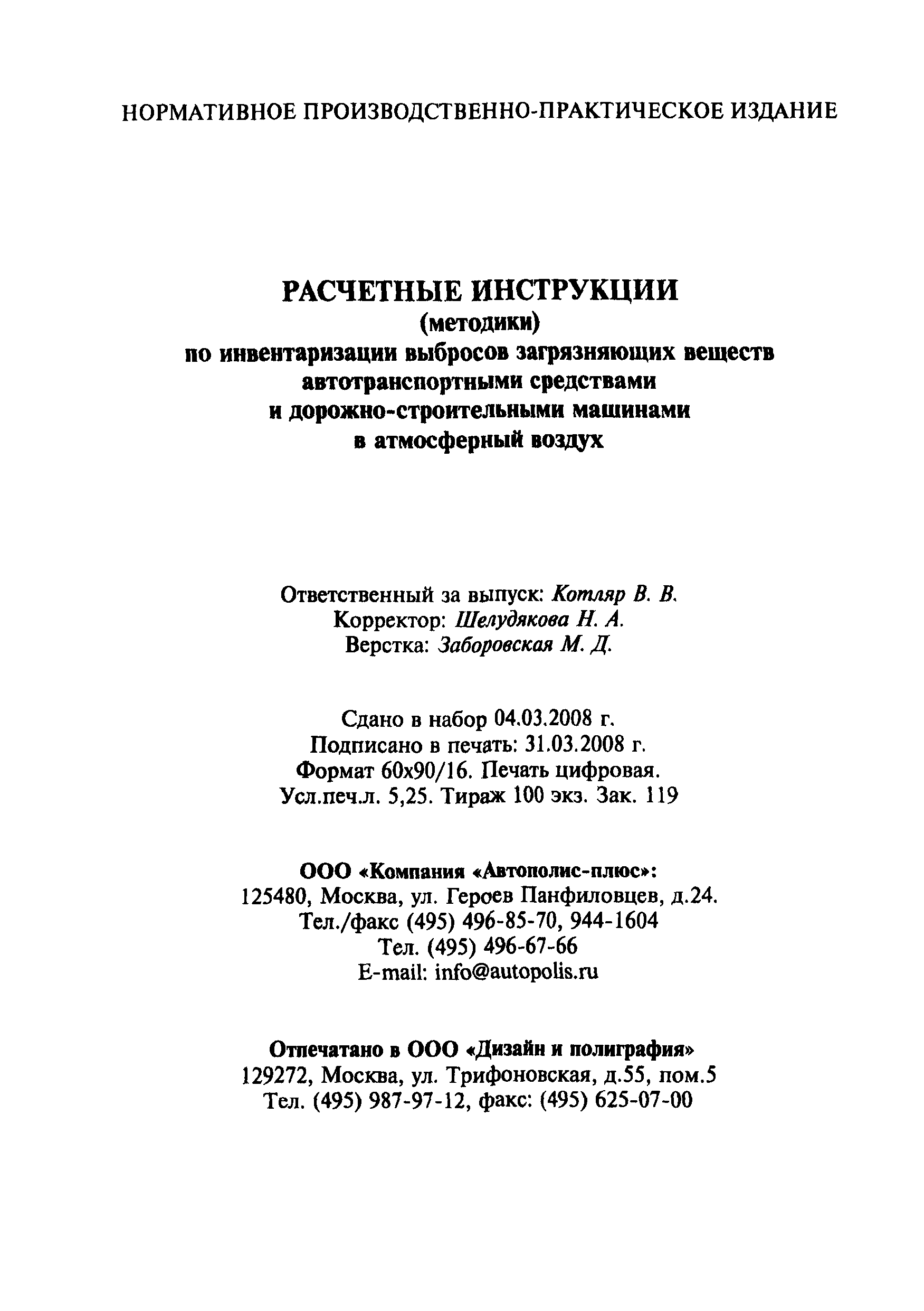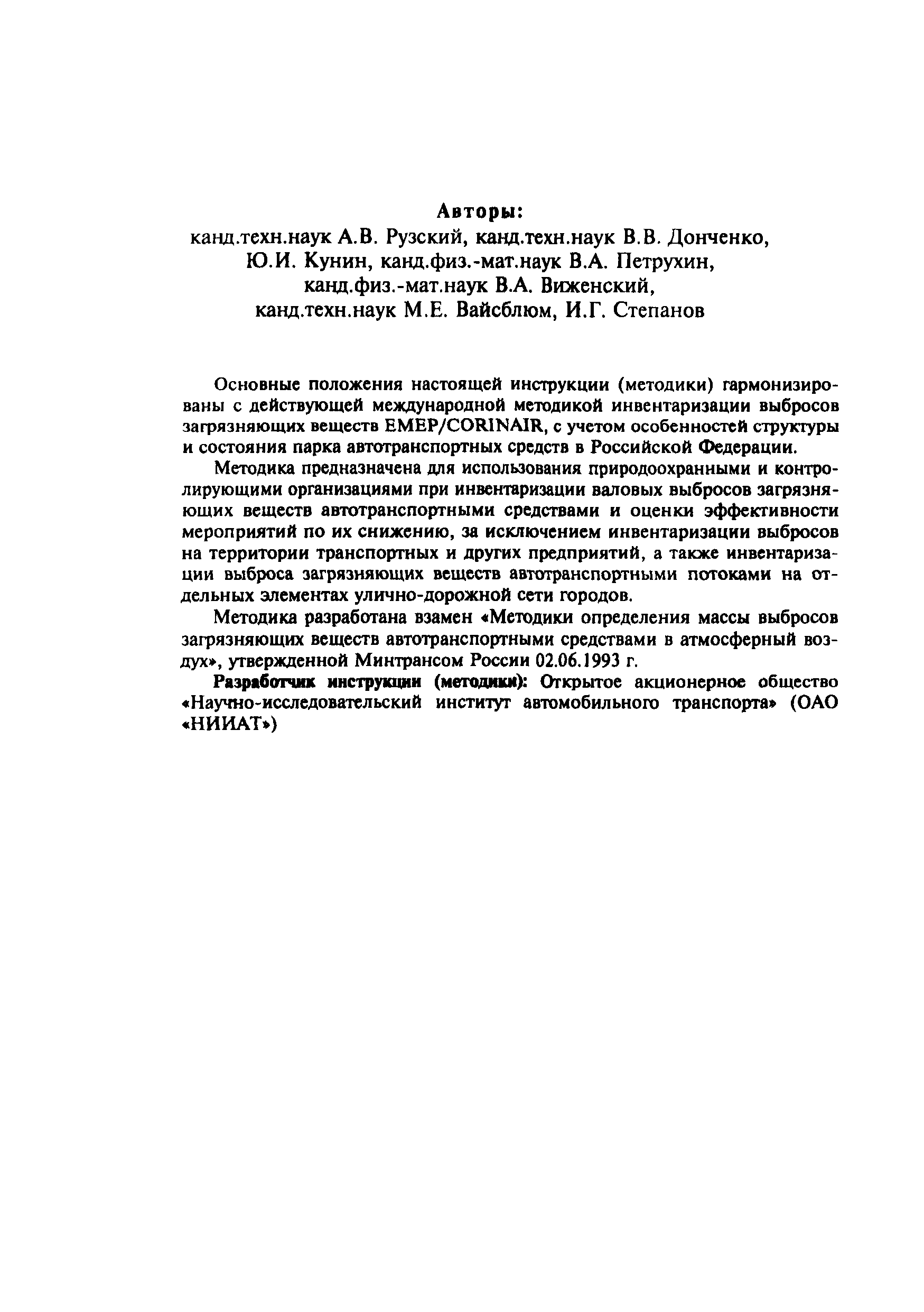 | Название рус.: | Расчетная инструкция (методика) по инвентаризации выбросов загрязняющих веществ автотранспортными средствами в атмосферный воздух |