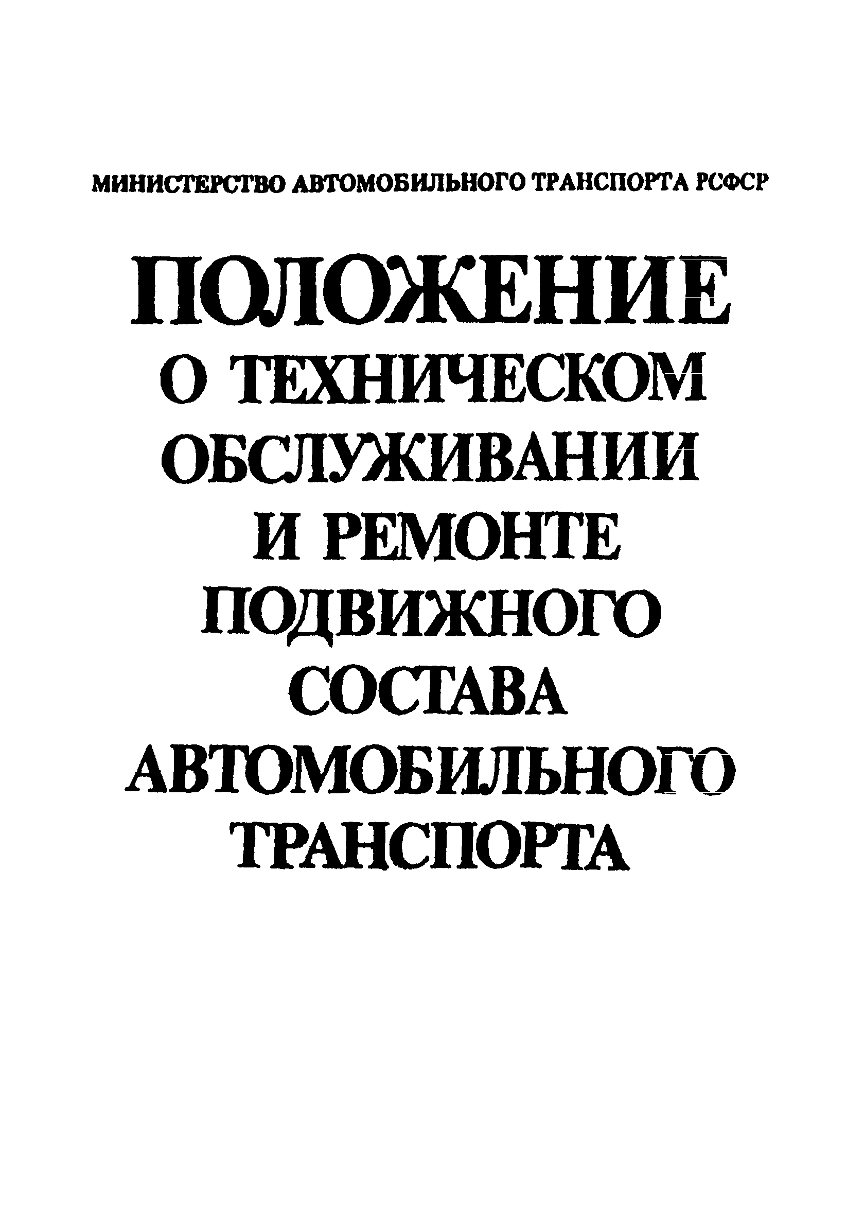 | Название рус.: | Положение о техническом обслуживании и ремонте подвижного состава автомобильного транспорта |