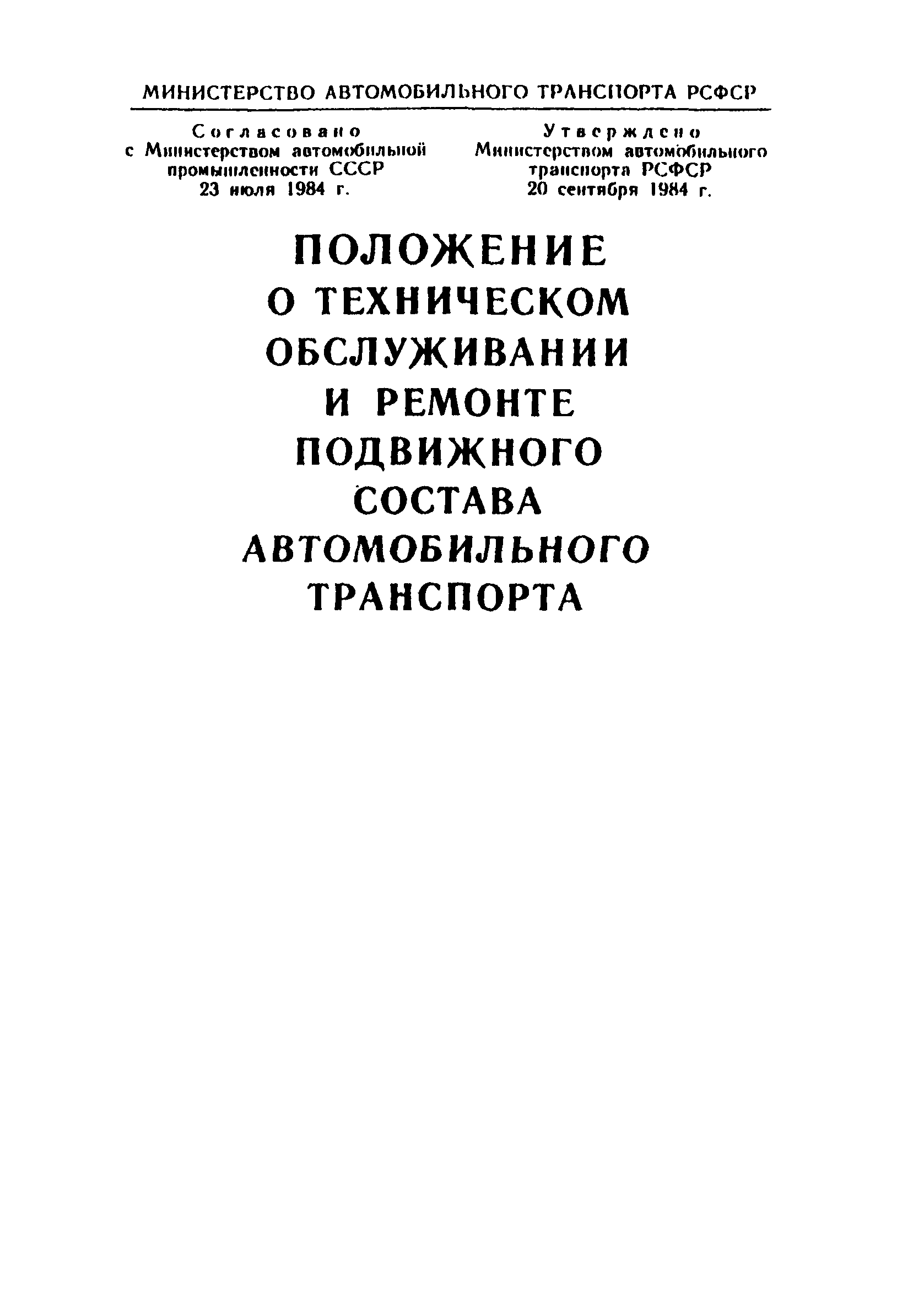 | Утверждён: | 20.09.1984 Министерство автомобильного транспорта РСФСР