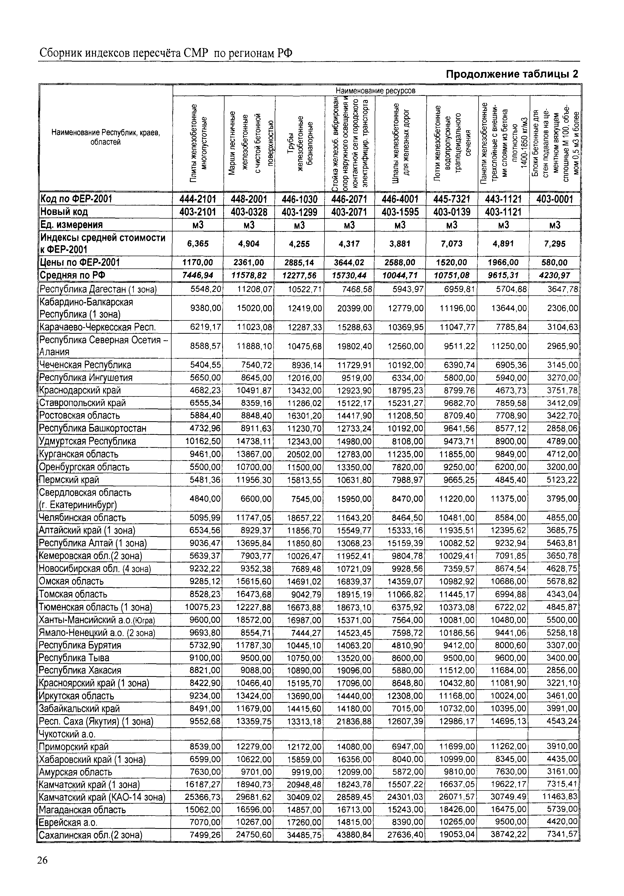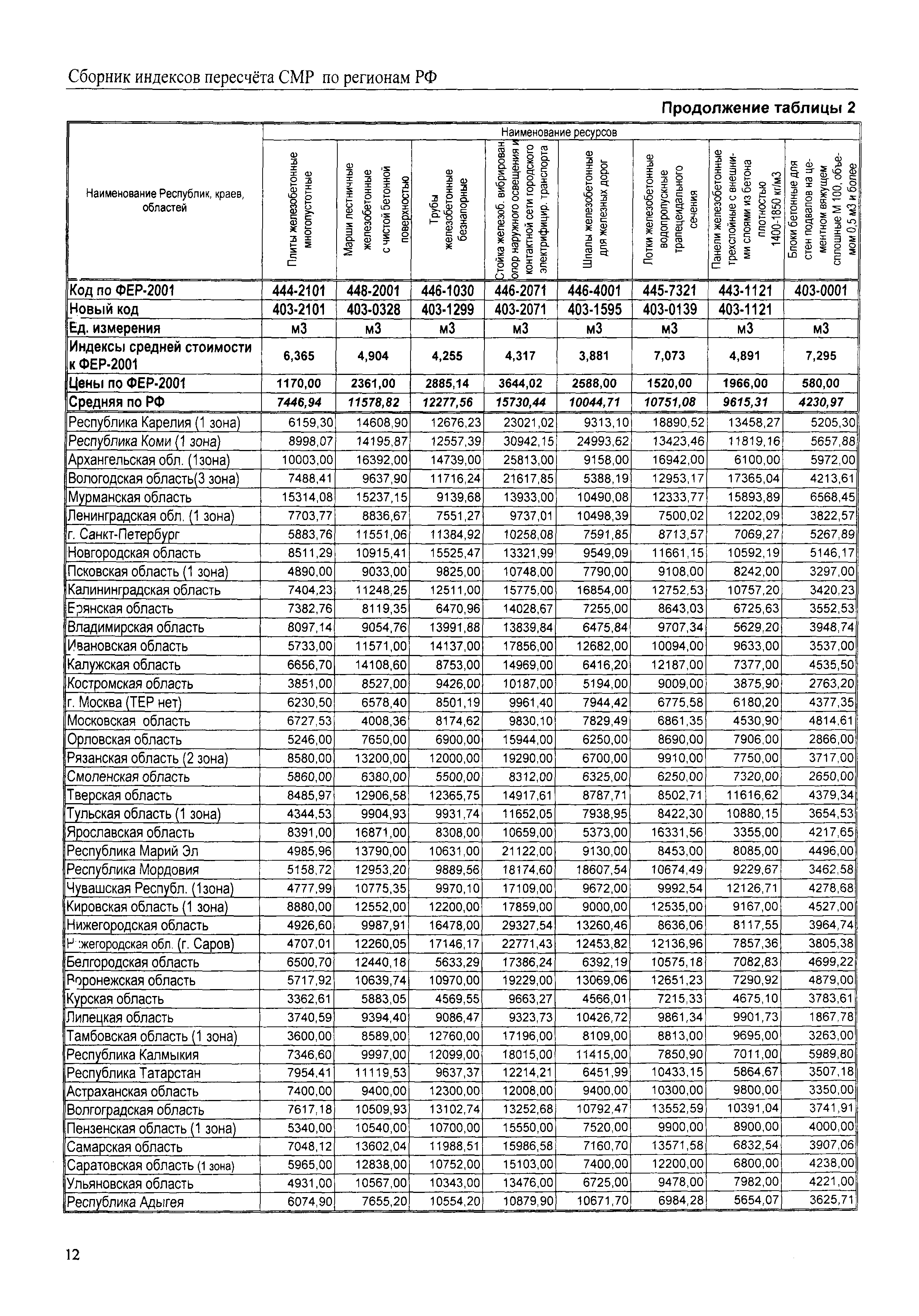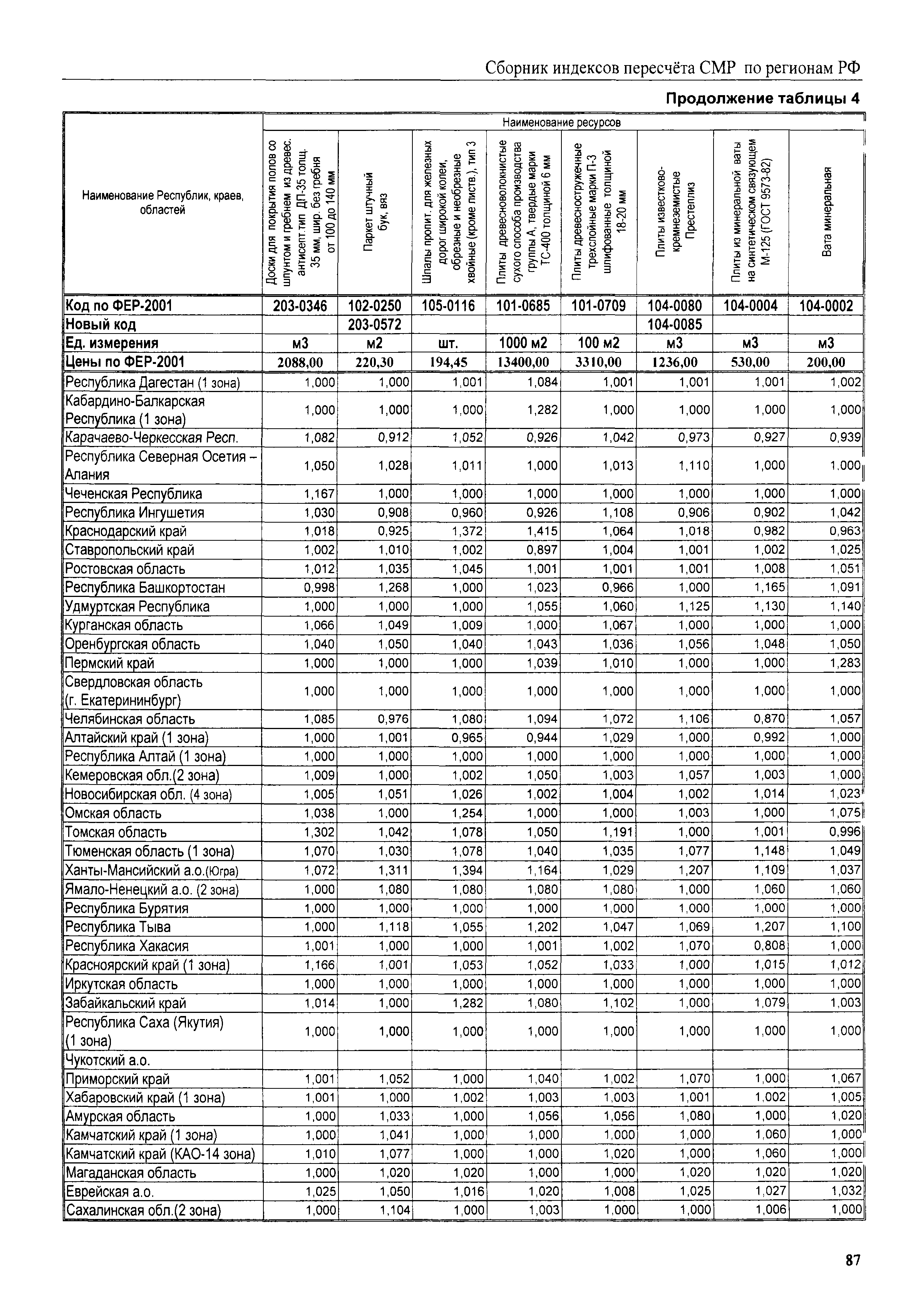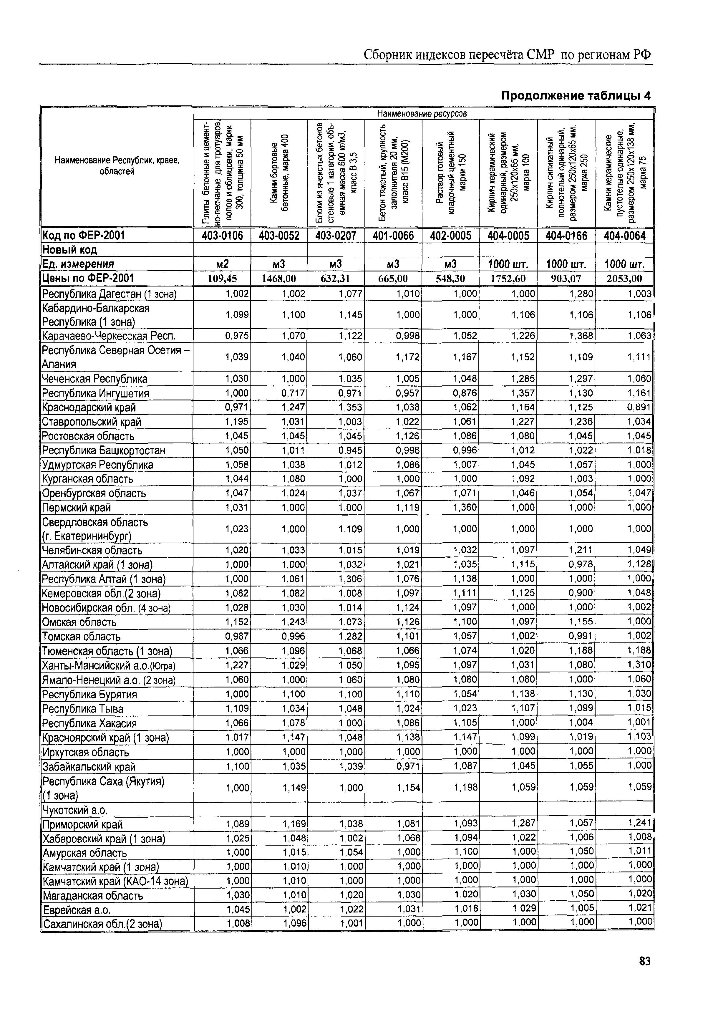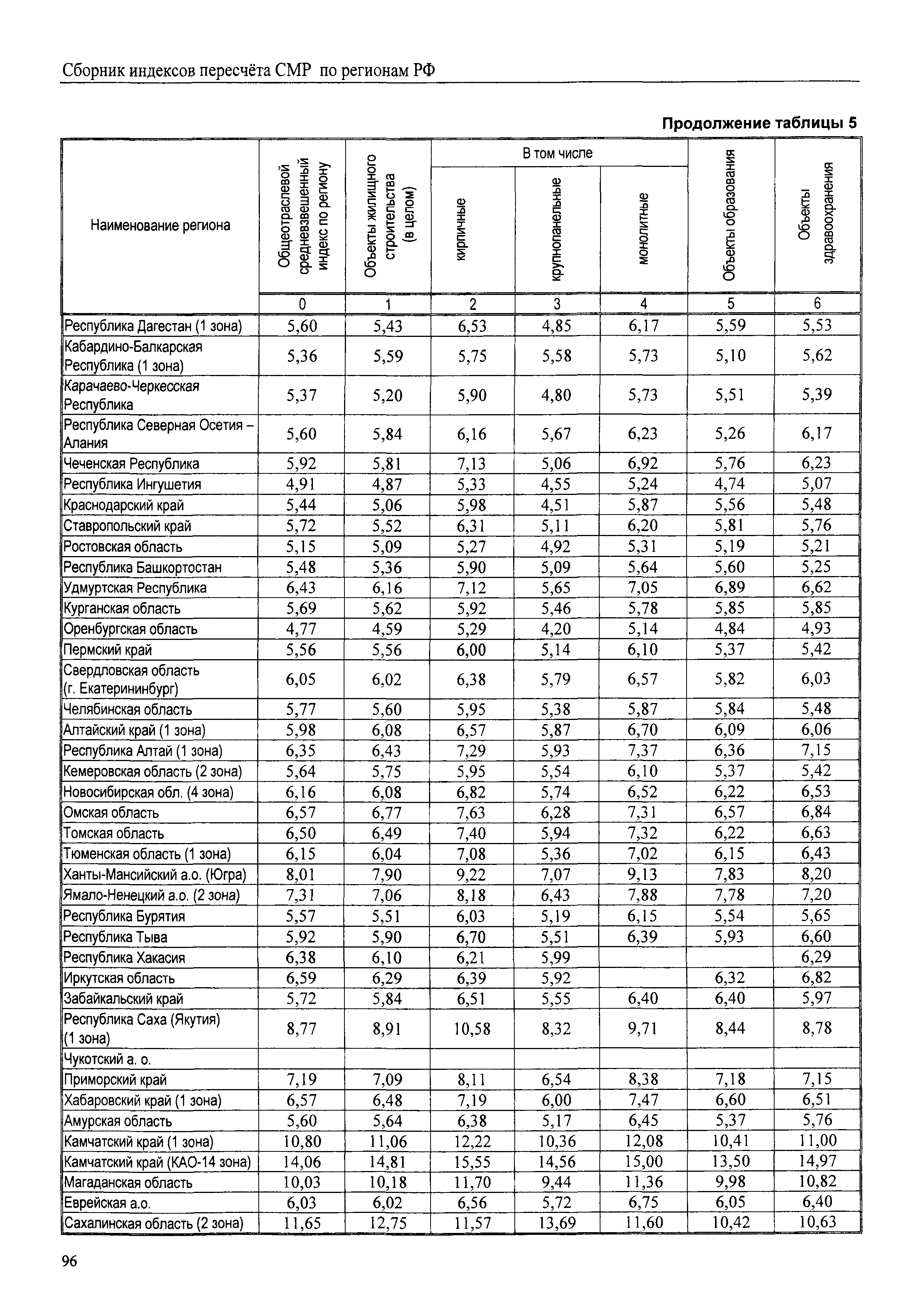 Межрегиональный сборник индексов пересчета сметной стоимости строительно-монтажных работ по субъектам Российской Федерации на III квартал 2008 г.| Статус: | не действует | | Название рус.: | Межрегиональный сборник индексов пересчета сметной стоимости строительно-монтажных работ по субъектам Российской Федерации на III квартал 2008 г. | | Дата добавления в базу: | 01.09.2013 | | Дата актуализации: | 01.09.2013 | | Область применения: | В сборнике приведены сводные таблицы текущих (III квартал 2008 г.) региональных цен на основные ресурсы, применяемые в строительстве, региональные индексы пересчета базисной стоимости строительно-монтажных работ, определяемой с использованием сборников новой сметно-нормативной базы (ФЕР-2001, ТЕР-2001), в территориальный текущий уровень. Индексы разработаны по единой методике, на основании отчетных данных региональных органов по ценообразованию в строительстве о стоимости строительных ресурсов, применяемых в регионе. | | Оглавление: | Общая часть Техническая часть (к таблицам 1, 2, 3, 4) Цены на строительную продукцию в III квартале 2008 г. Анализ роста индексов и стоимости 1 м2 по субъектам Российской Федерации в III квартале 2008 г. – таблица А Расчетная стоимость 1 м2 общей площади квартир и индексы изменения стоимости строительства по субъектам Российской Федерации за III квартал 2008 г. – Таблица 1 Сметная стоимость строительных ресурсов (без НДС) в руб. - Таблица 2 Индексы на отдельные виды ресурсов (к заложенным в ФЕР-2001) - Таблица 3 Индексы роста стоимости строительных ресурсов к предыдущему кварталу - Таблица 4 Региональные индексы к ФЕР-2001 и ТЕР-2001 по основным видам объектов строительства - Таблица 5 Региональные индексы изменения стоимости строительно-монтажных работ по отдельным видам объектов строительства Индексы на технологическое оборудование за III квартал 2008 г. Индексы на прочие работы и затраты за III квартал 2008 г. |