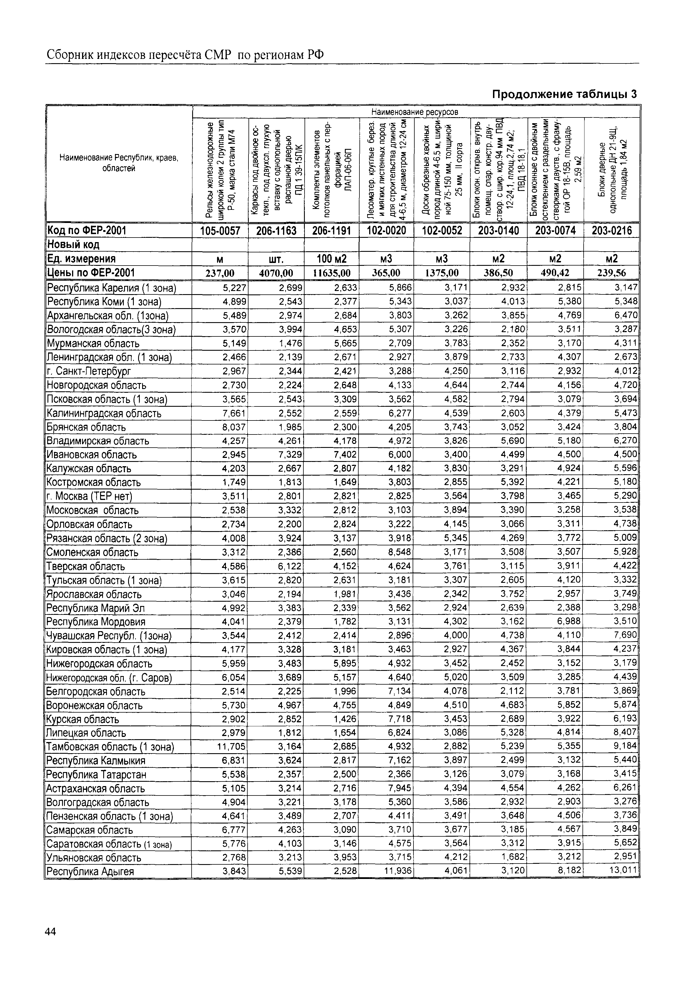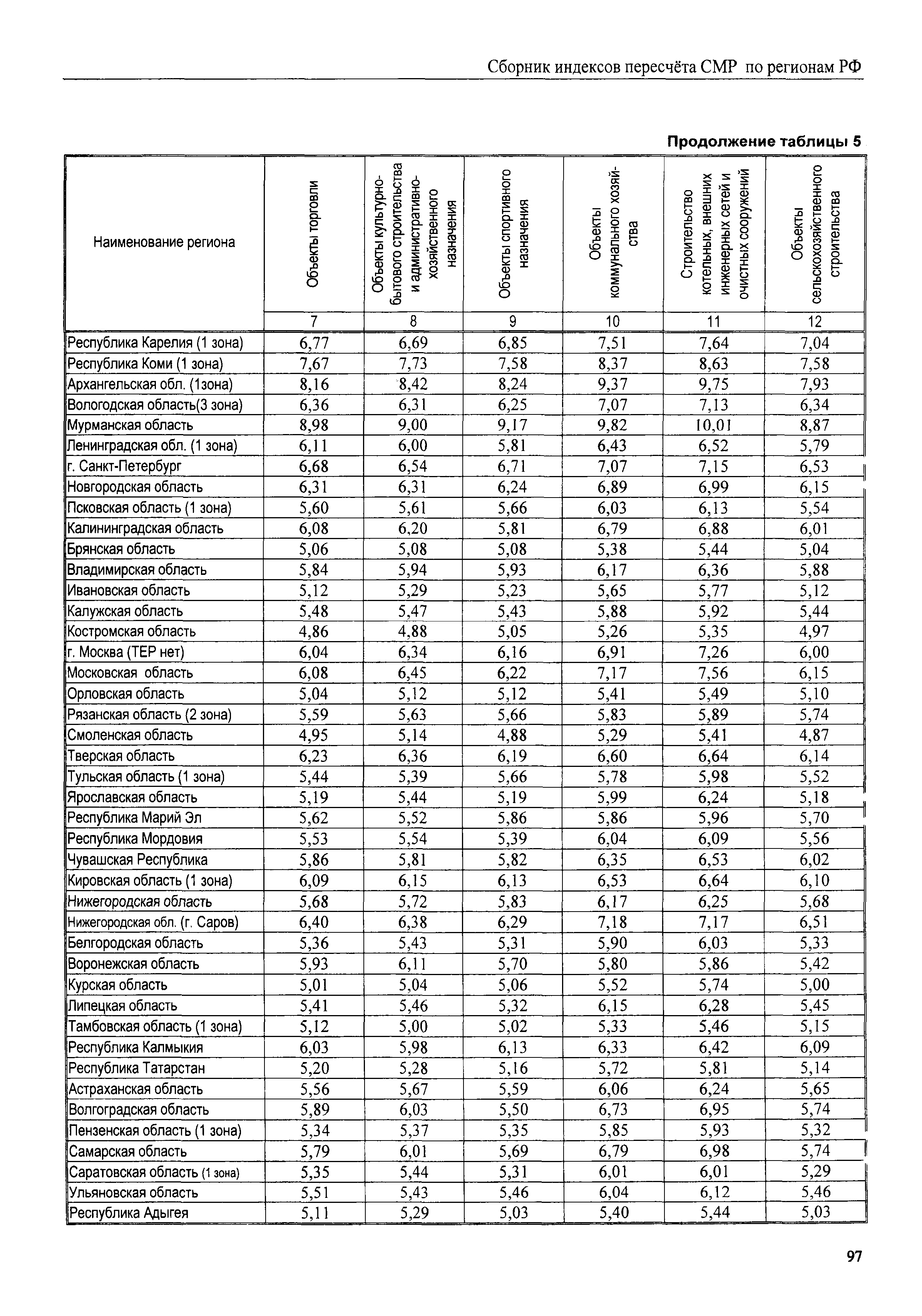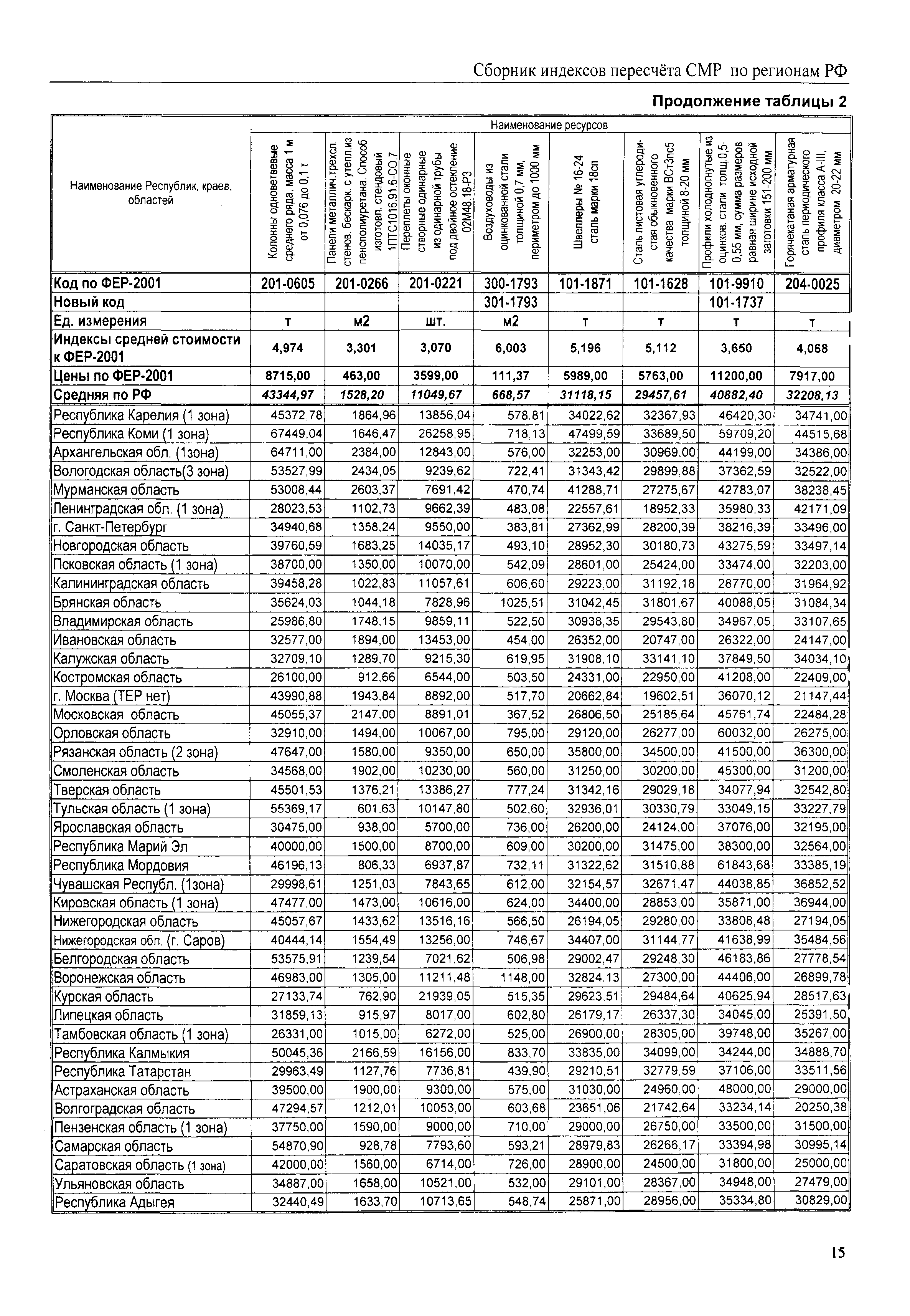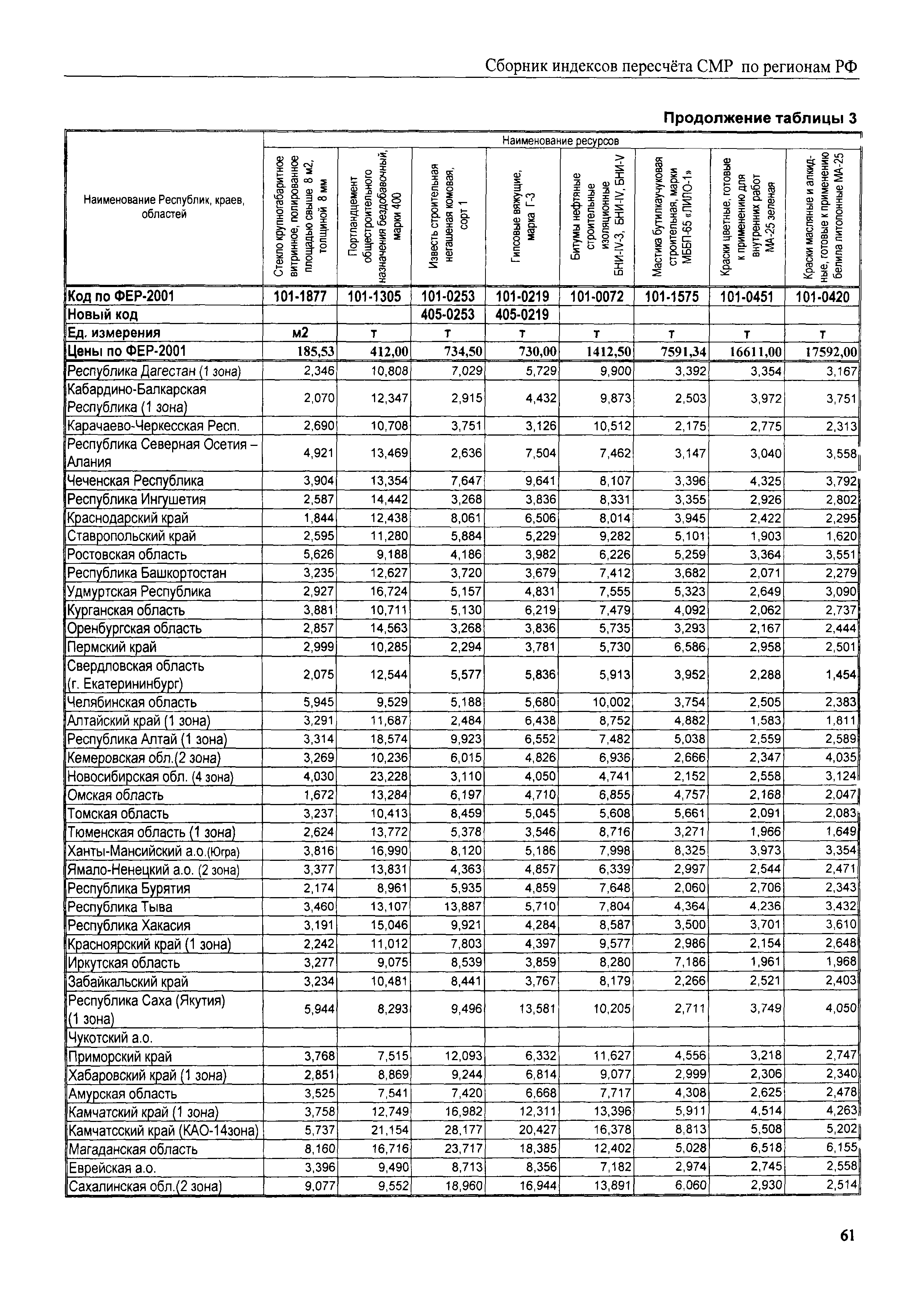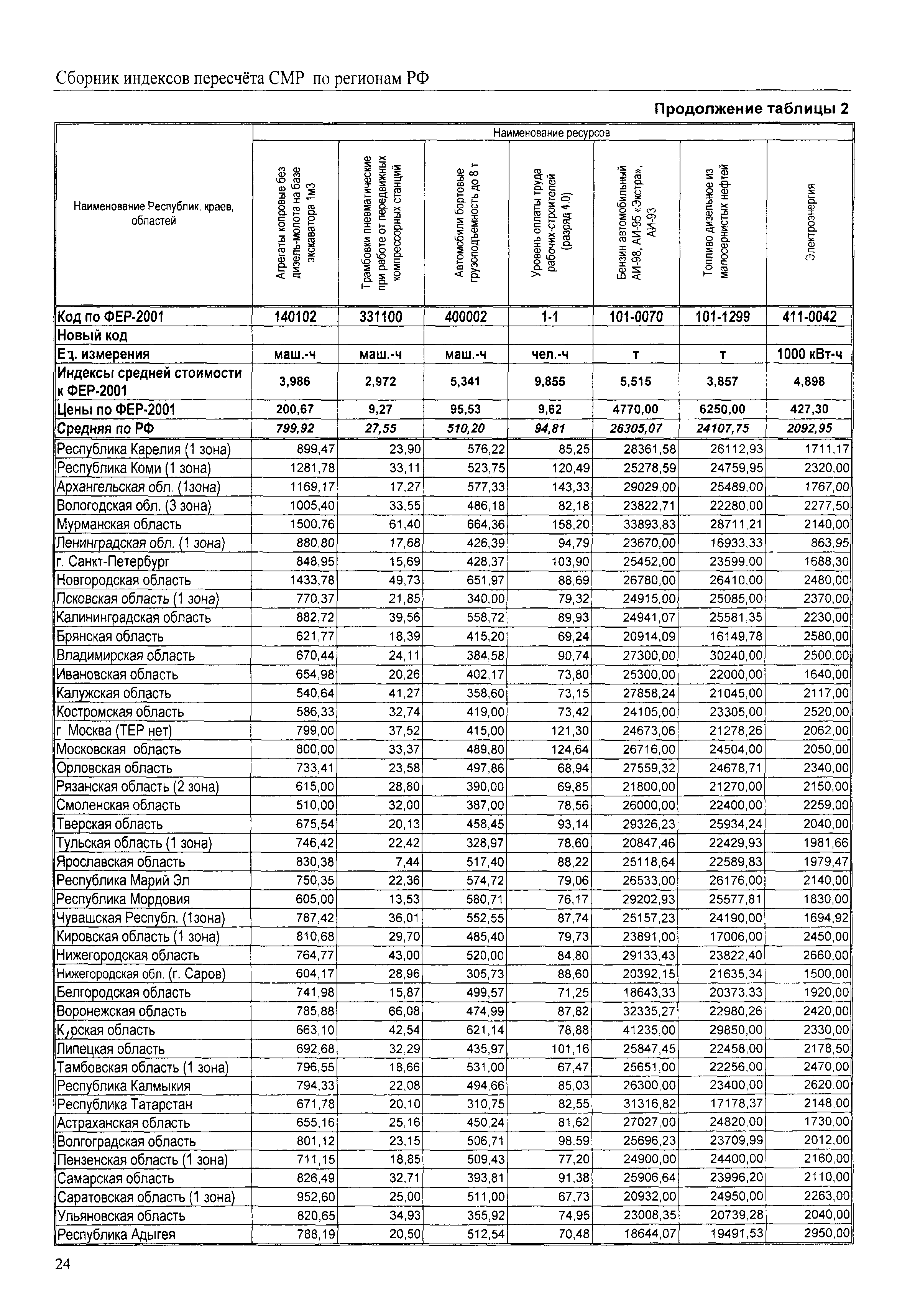 Межрегиональный сборник индексов пересчета сметной стоимости строительно-монтажных работ по субъектам Российской Федерации на III квартал 2008 г.| Статус: | не действует | | Название рус.: | Межрегиональный сборник индексов пересчета сметной стоимости строительно-монтажных работ по субъектам Российской Федерации на III квартал 2008 г. | | Дата добавления в базу: | 01.09.2013 | | Дата актуализации: | 01.09.2013 | | Область применения: | В сборнике приведены сводные таблицы текущих (III квартал 2008 г.) региональных цен на основные ресурсы, применяемые в строительстве, региональные индексы пересчета базисной стоимости строительно-монтажных работ, определяемой с использованием сборников новой сметно-нормативной базы (ФЕР-2001, ТЕР-2001), в территориальный текущий уровень. Индексы разработаны по единой методике, на основании отчетных данных региональных органов по ценообразованию в строительстве о стоимости строительных ресурсов, применяемых в регионе. | | Оглавление: | Общая часть Техническая часть (к таблицам 1, 2, 3, 4) Цены на строительную продукцию в III квартале 2008 г. Анализ роста индексов и стоимости 1 м2 по субъектам Российской Федерации в III квартале 2008 г. – таблица А Расчетная стоимость 1 м2 общей площади квартир и индексы изменения стоимости строительства по субъектам Российской Федерации за III квартал 2008 г. – Таблица 1 Сметная стоимость строительных ресурсов (без НДС) в руб. - Таблица 2 Индексы на отдельные виды ресурсов (к заложенным в ФЕР-2001) - Таблица 3 Индексы роста стоимости строительных ресурсов к предыдущему кварталу - Таблица 4 Региональные индексы к ФЕР-2001 и ТЕР-2001 по основным видам объектов строительства - Таблица 5 Региональные индексы изменения стоимости строительно-монтажных работ по отдельным видам объектов строительства Индексы на технологическое оборудование за III квартал 2008 г. Индексы на прочие работы и затраты за III квартал 2008 г. |