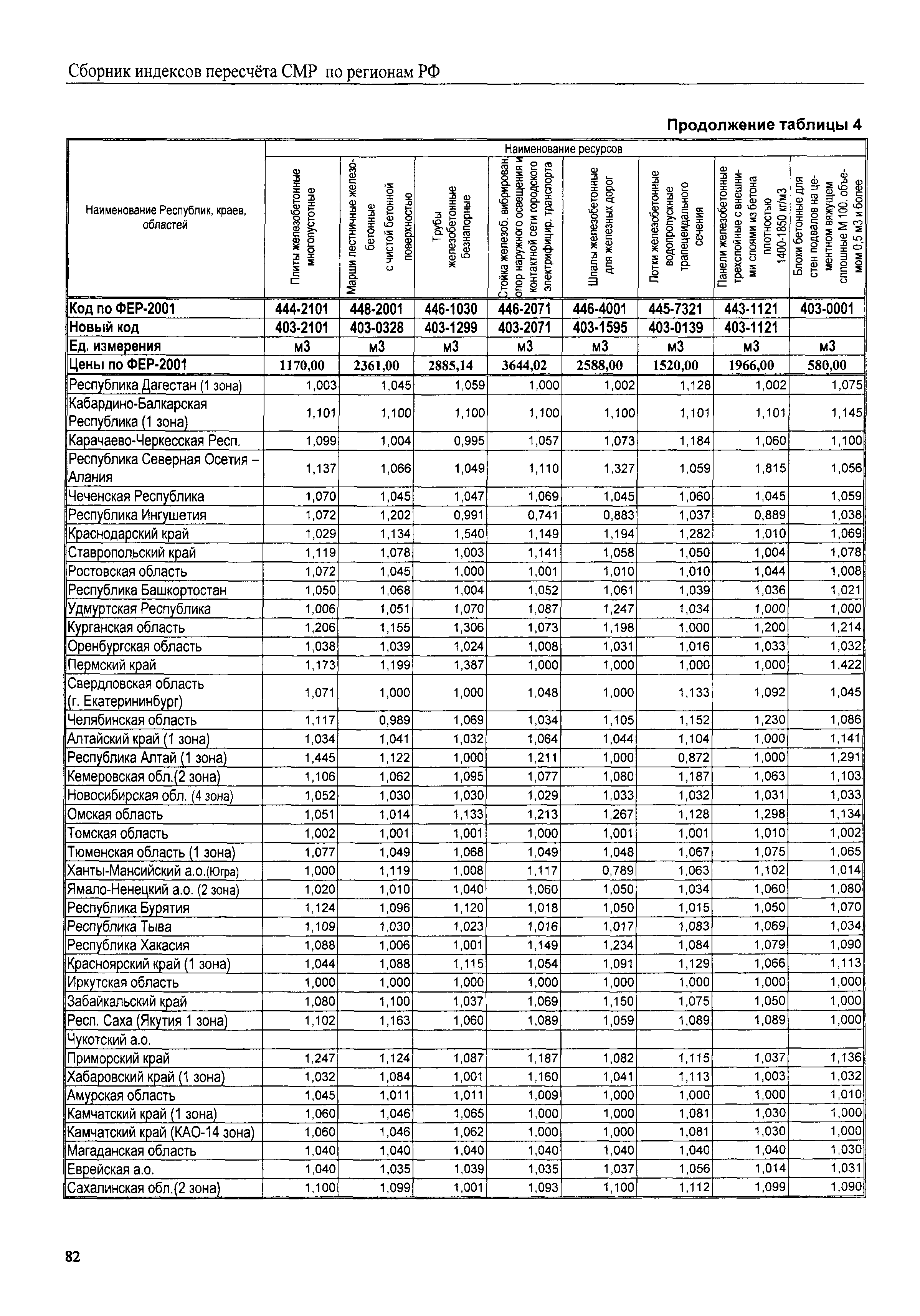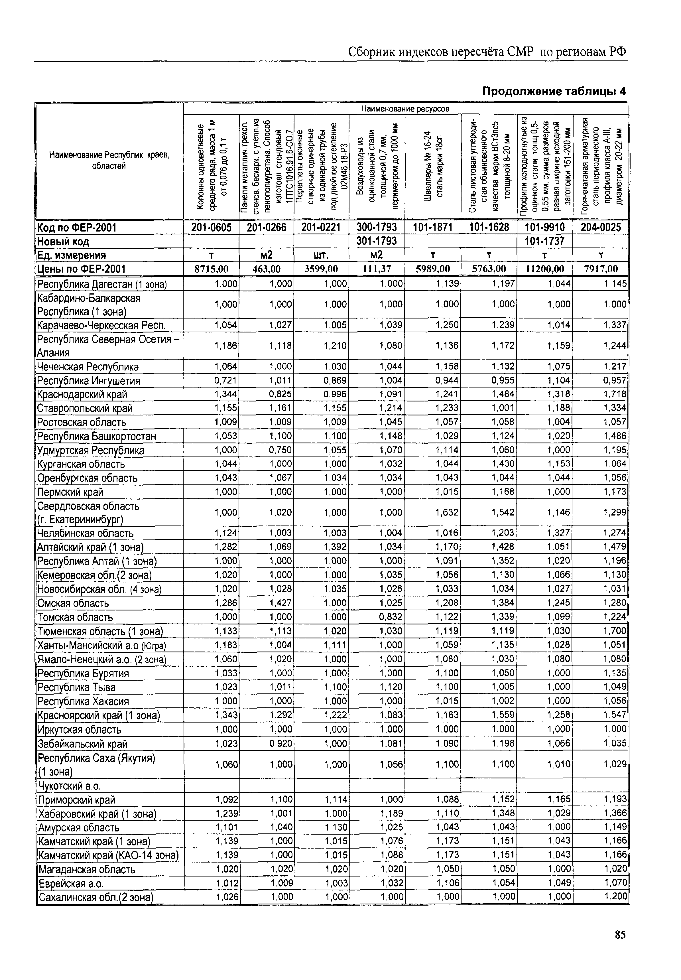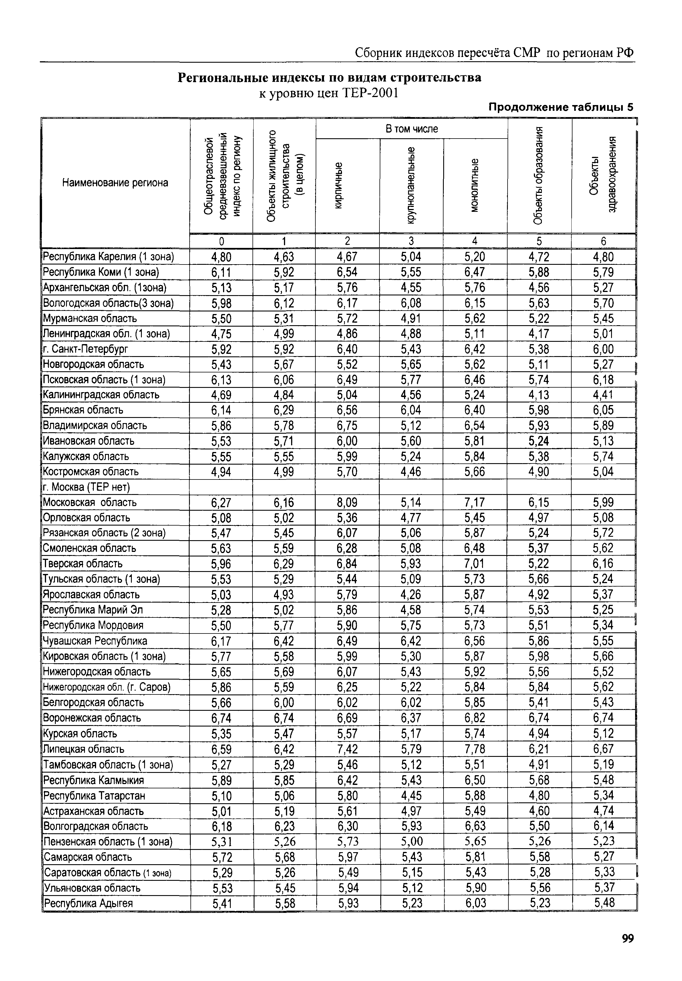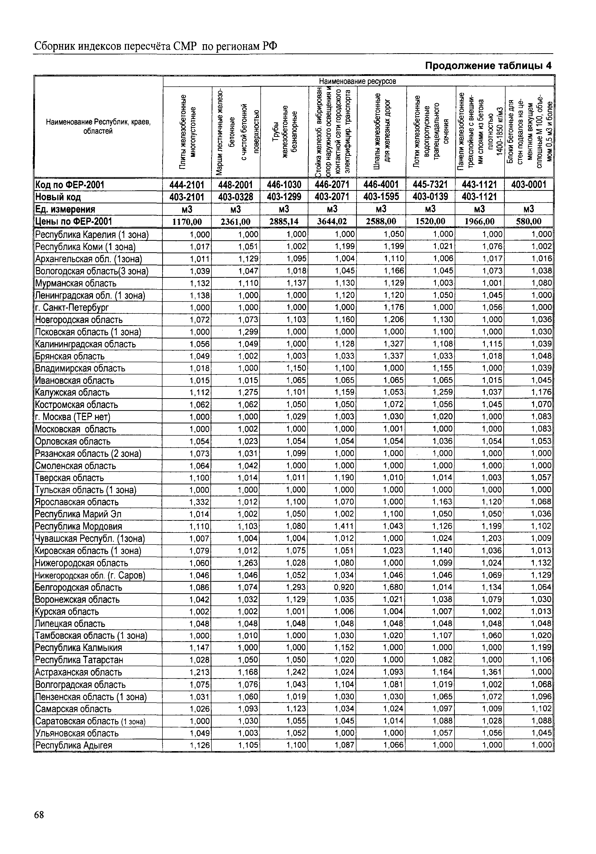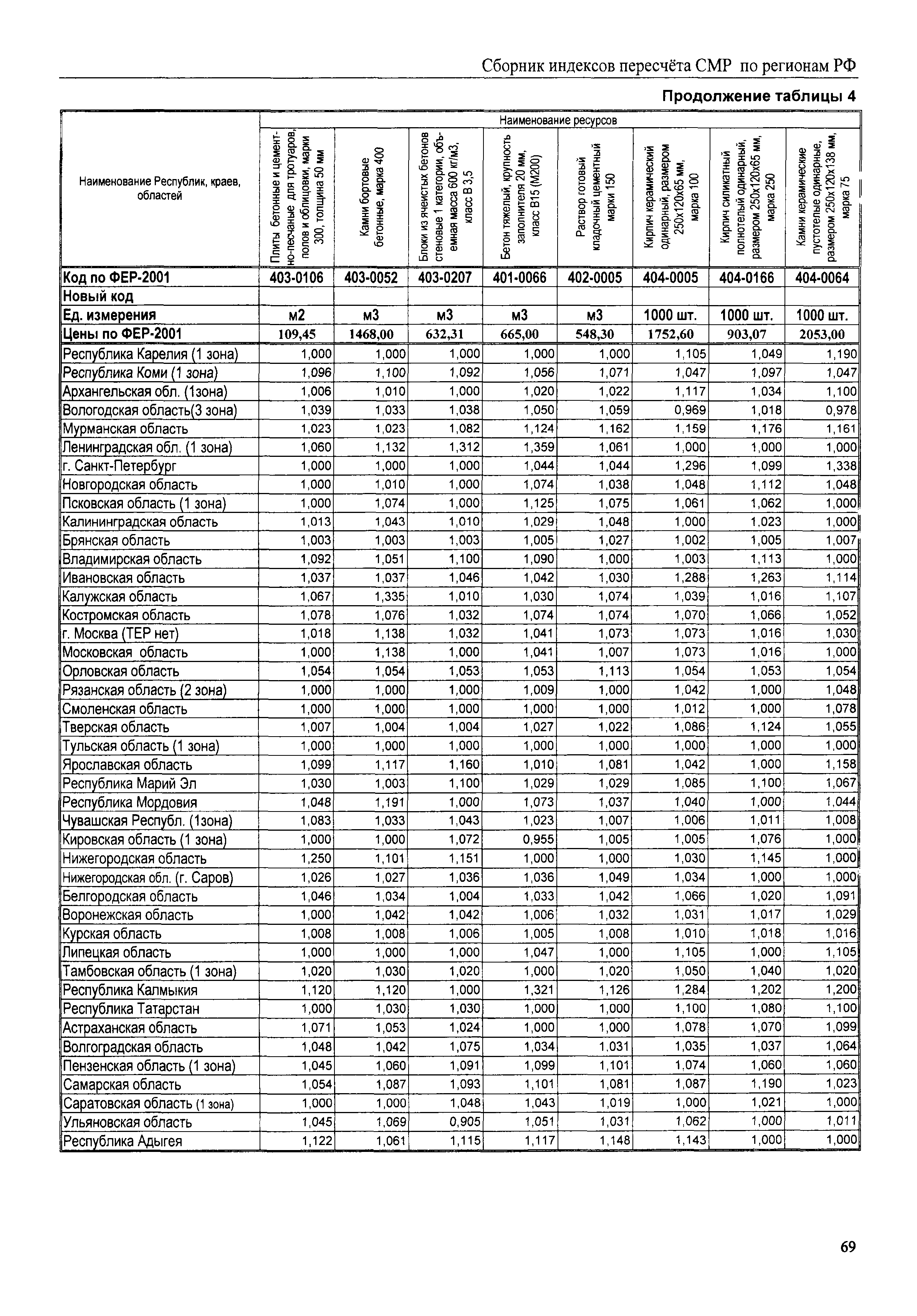 Межрегиональный сборник индексов пересчета сметной стоимости строительно-монтажных работ по субъектам Российской Федерации на III квартал 2008 г.| Статус: | не действует | | Название рус.: | Межрегиональный сборник индексов пересчета сметной стоимости строительно-монтажных работ по субъектам Российской Федерации на III квартал 2008 г. | | Дата добавления в базу: | 01.09.2013 | | Дата актуализации: | 01.09.2013 | | Область применения: | В сборнике приведены сводные таблицы текущих (III квартал 2008 г.) региональных цен на основные ресурсы, применяемые в строительстве, региональные индексы пересчета базисной стоимости строительно-монтажных работ, определяемой с использованием сборников новой сметно-нормативной базы (ФЕР-2001, ТЕР-2001), в территориальный текущий уровень. Индексы разработаны по единой методике, на основании отчетных данных региональных органов по ценообразованию в строительстве о стоимости строительных ресурсов, применяемых в регионе. | | Оглавление: | Общая часть Техническая часть (к таблицам 1, 2, 3, 4) Цены на строительную продукцию в III квартале 2008 г. Анализ роста индексов и стоимости 1 м2 по субъектам Российской Федерации в III квартале 2008 г. – таблица А Расчетная стоимость 1 м2 общей площади квартир и индексы изменения стоимости строительства по субъектам Российской Федерации за III квартал 2008 г. – Таблица 1 Сметная стоимость строительных ресурсов (без НДС) в руб. - Таблица 2 Индексы на отдельные виды ресурсов (к заложенным в ФЕР-2001) - Таблица 3 Индексы роста стоимости строительных ресурсов к предыдущему кварталу - Таблица 4 Региональные индексы к ФЕР-2001 и ТЕР-2001 по основным видам объектов строительства - Таблица 5 Региональные индексы изменения стоимости строительно-монтажных работ по отдельным видам объектов строительства Индексы на технологическое оборудование за III квартал 2008 г. Индексы на прочие работы и затраты за III квартал 2008 г. |
