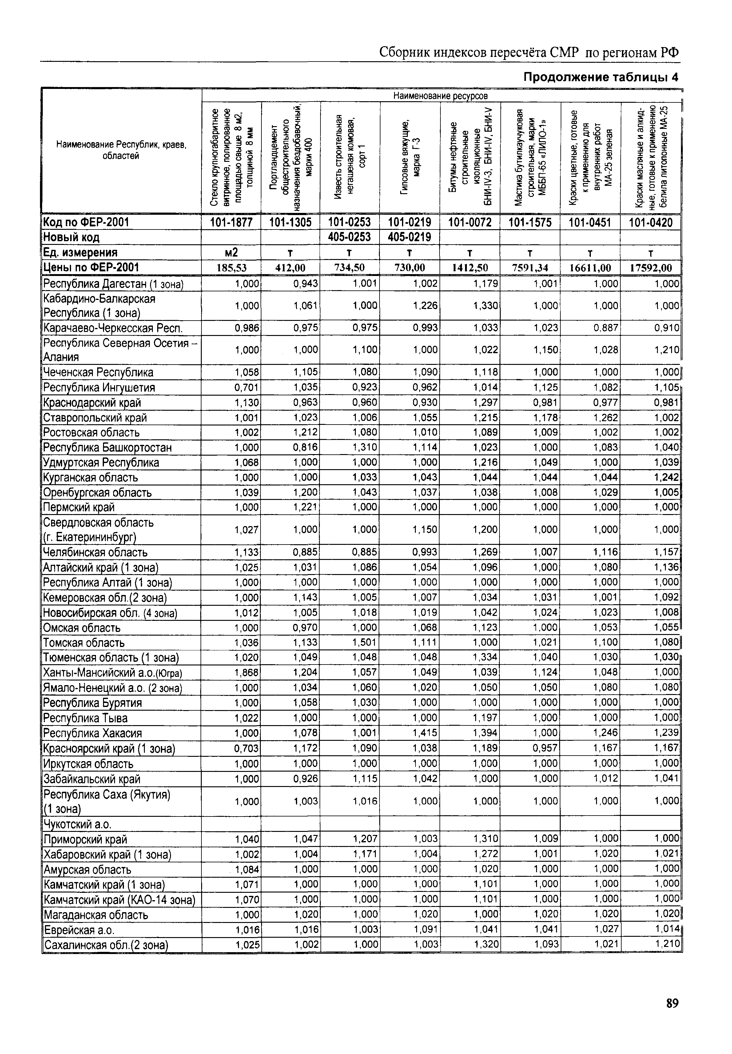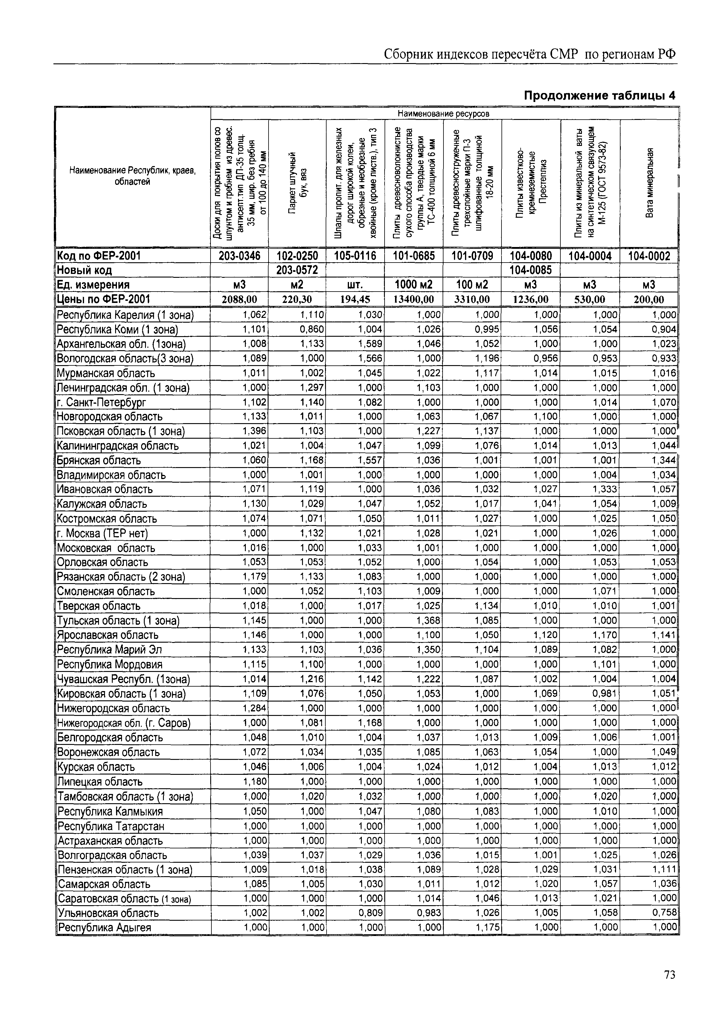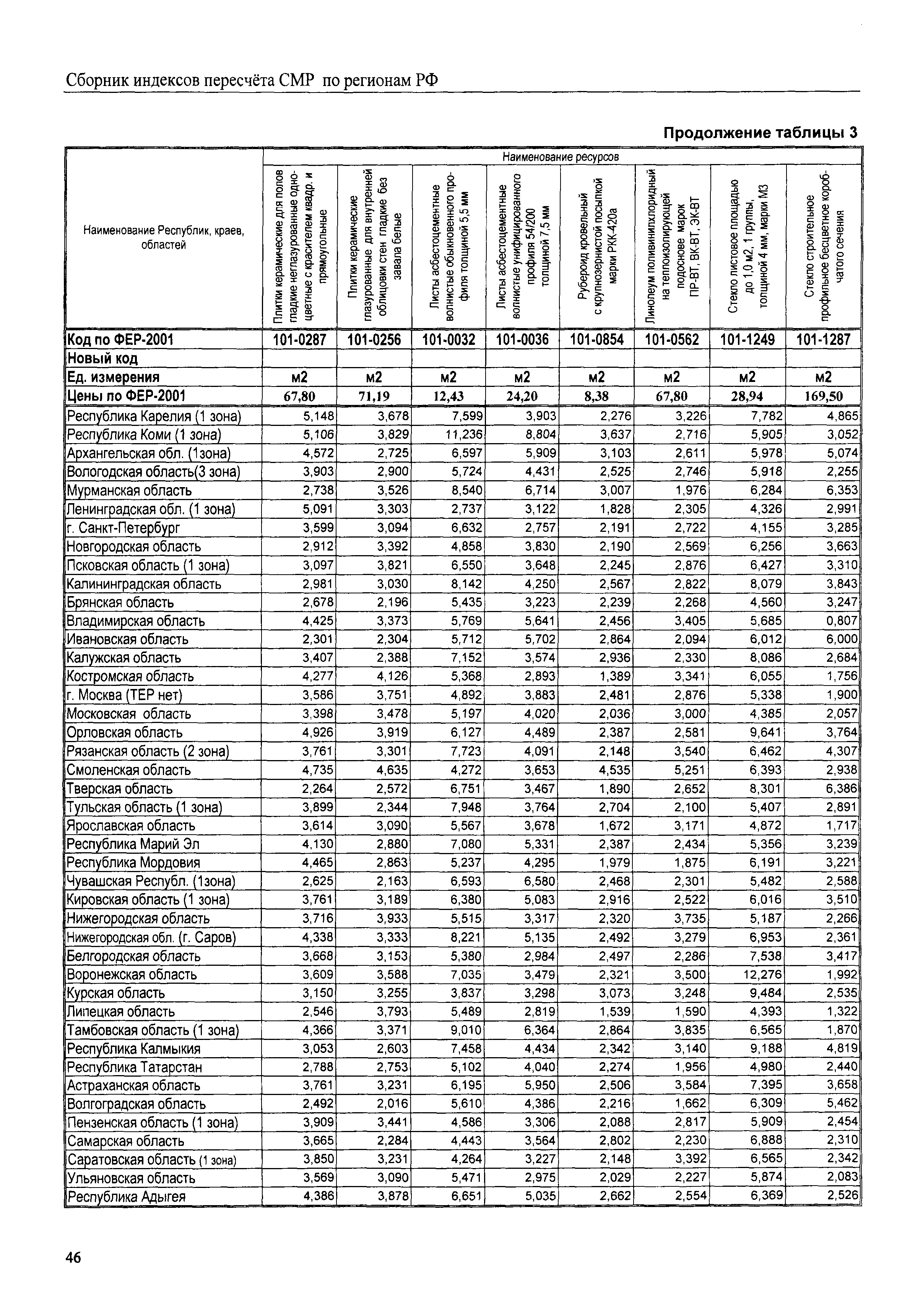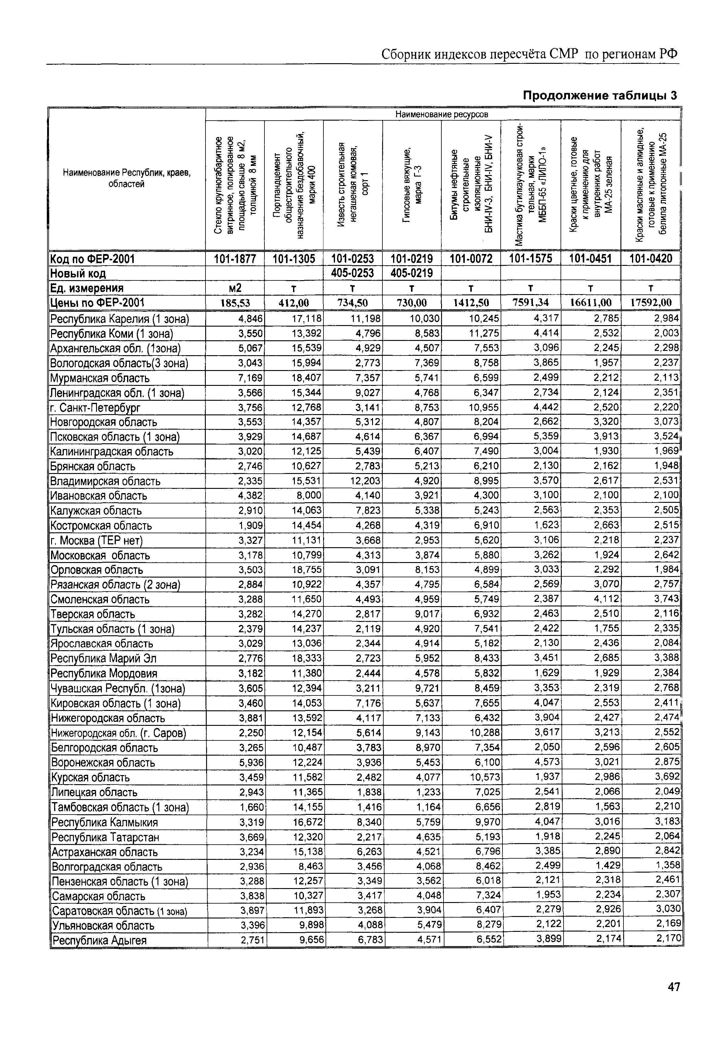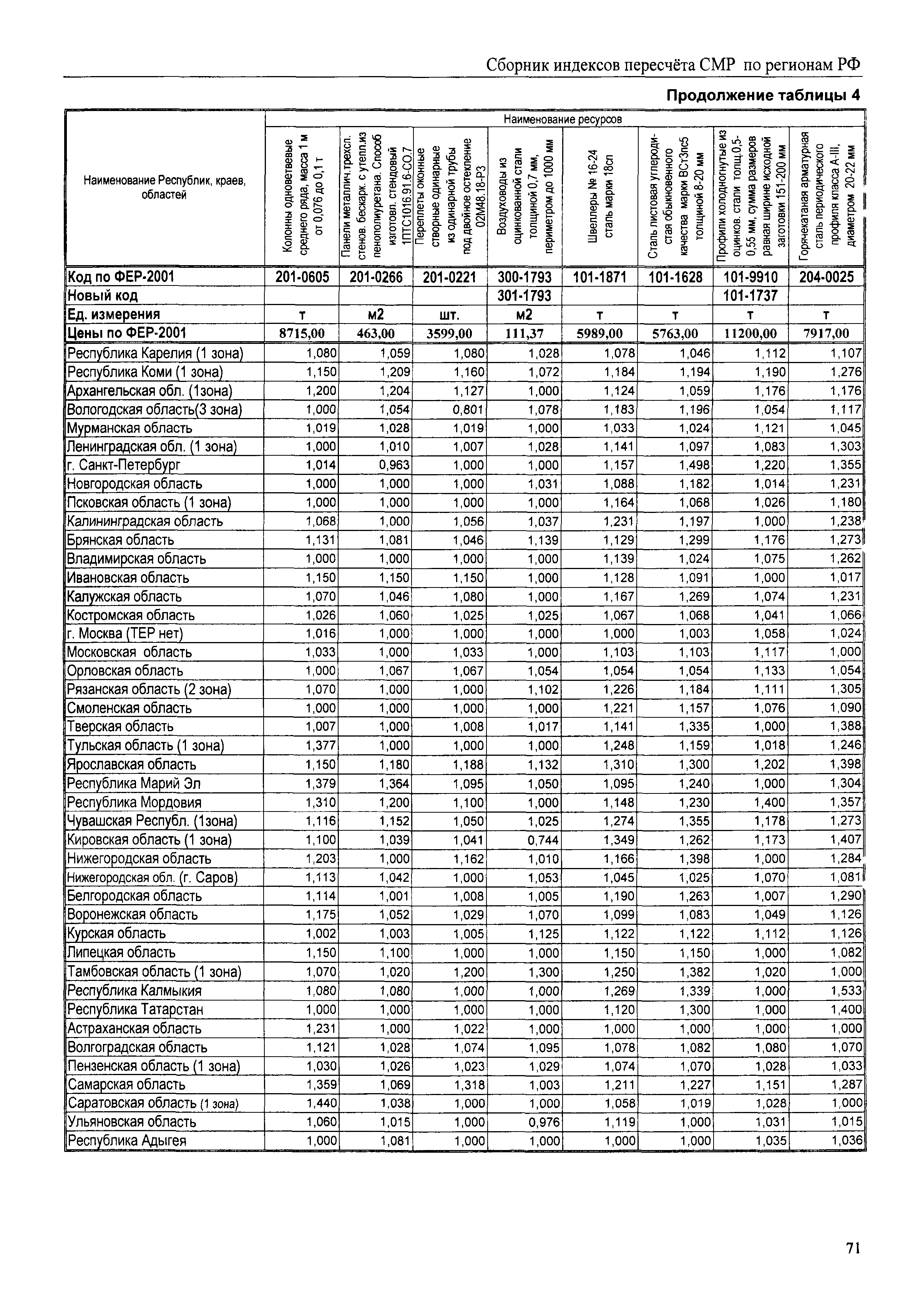 Межрегиональный сборник индексов пересчета сметной стоимости строительно-монтажных работ по субъектам Российской Федерации на III квартал 2008 г.| Статус: | не действует | | Название рус.: | Межрегиональный сборник индексов пересчета сметной стоимости строительно-монтажных работ по субъектам Российской Федерации на III квартал 2008 г. | | Дата добавления в базу: | 01.09.2013 | | Дата актуализации: | 01.09.2013 | | Область применения: | В сборнике приведены сводные таблицы текущих (III квартал 2008 г.) региональных цен на основные ресурсы, применяемые в строительстве, региональные индексы пересчета базисной стоимости строительно-монтажных работ, определяемой с использованием сборников новой сметно-нормативной базы (ФЕР-2001, ТЕР-2001), в территориальный текущий уровень. Индексы разработаны по единой методике, на основании отчетных данных региональных органов по ценообразованию в строительстве о стоимости строительных ресурсов, применяемых в регионе. | | Оглавление: | Общая часть Техническая часть (к таблицам 1, 2, 3, 4) Цены на строительную продукцию в III квартале 2008 г. Анализ роста индексов и стоимости 1 м2 по субъектам Российской Федерации в III квартале 2008 г. – таблица А Расчетная стоимость 1 м2 общей площади квартир и индексы изменения стоимости строительства по субъектам Российской Федерации за III квартал 2008 г. – Таблица 1 Сметная стоимость строительных ресурсов (без НДС) в руб. - Таблица 2 Индексы на отдельные виды ресурсов (к заложенным в ФЕР-2001) - Таблица 3 Индексы роста стоимости строительных ресурсов к предыдущему кварталу - Таблица 4 Региональные индексы к ФЕР-2001 и ТЕР-2001 по основным видам объектов строительства - Таблица 5 Региональные индексы изменения стоимости строительно-монтажных работ по отдельным видам объектов строительства Индексы на технологическое оборудование за III квартал 2008 г. Индексы на прочие работы и затраты за III квартал 2008 г. |