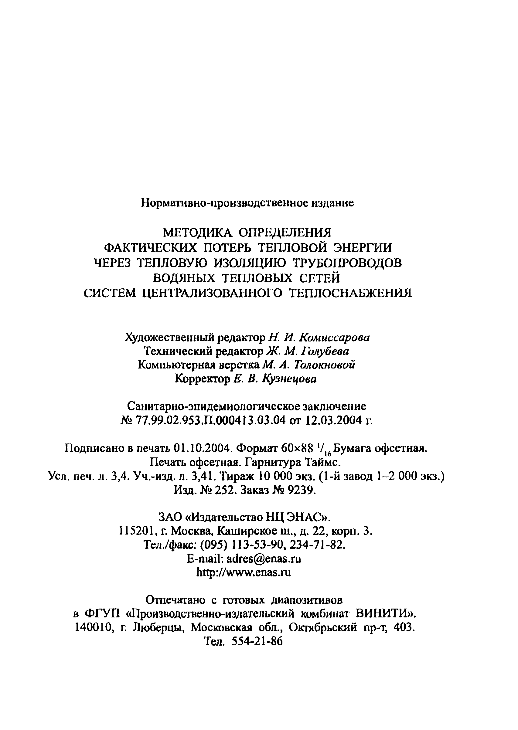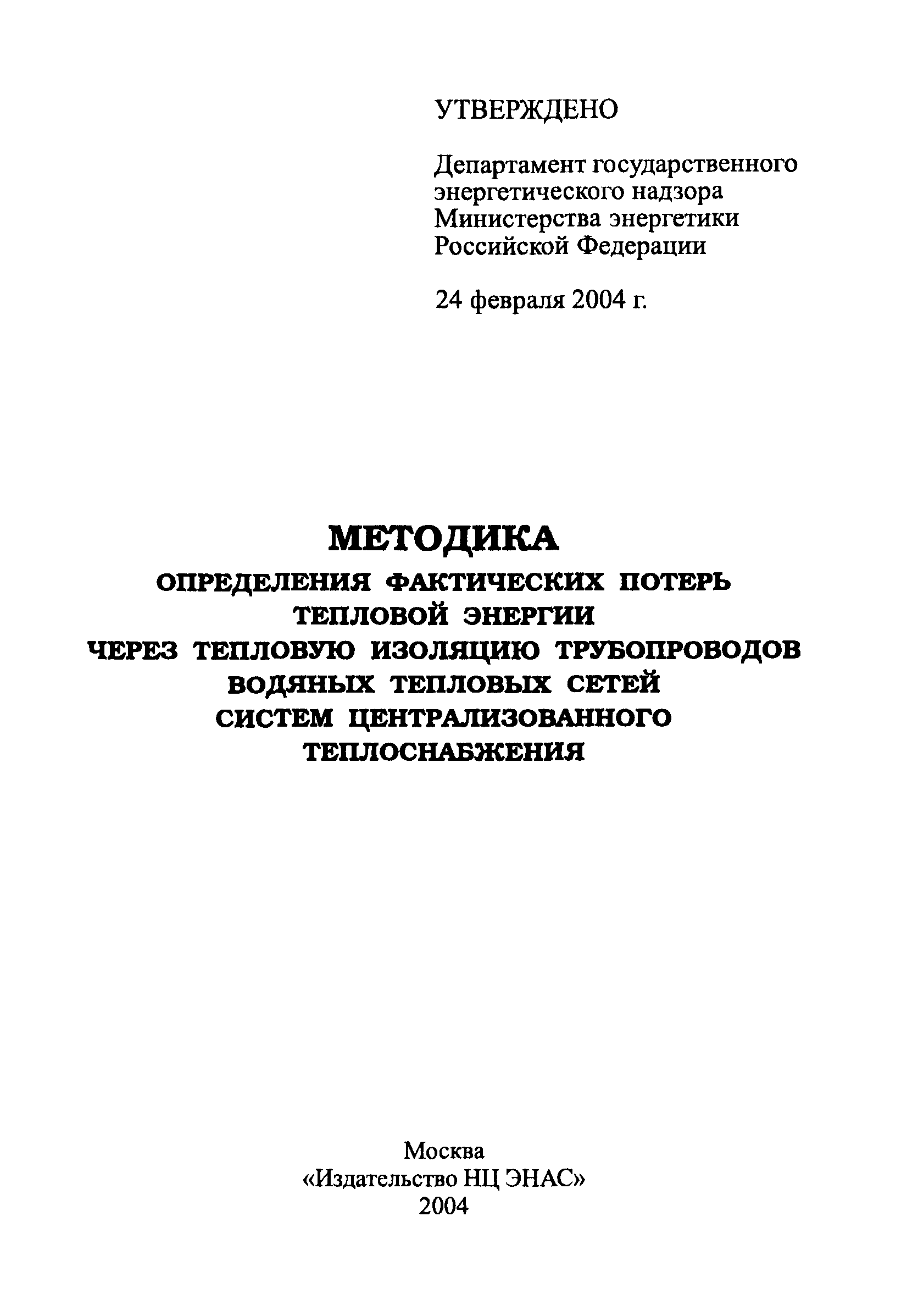 | Название рус.: | Методика определения фактических потерь тепловой энергии через тепловую изоляцию трубопроводов водяных тепловых сетей систем централизованного теплоснабжения |