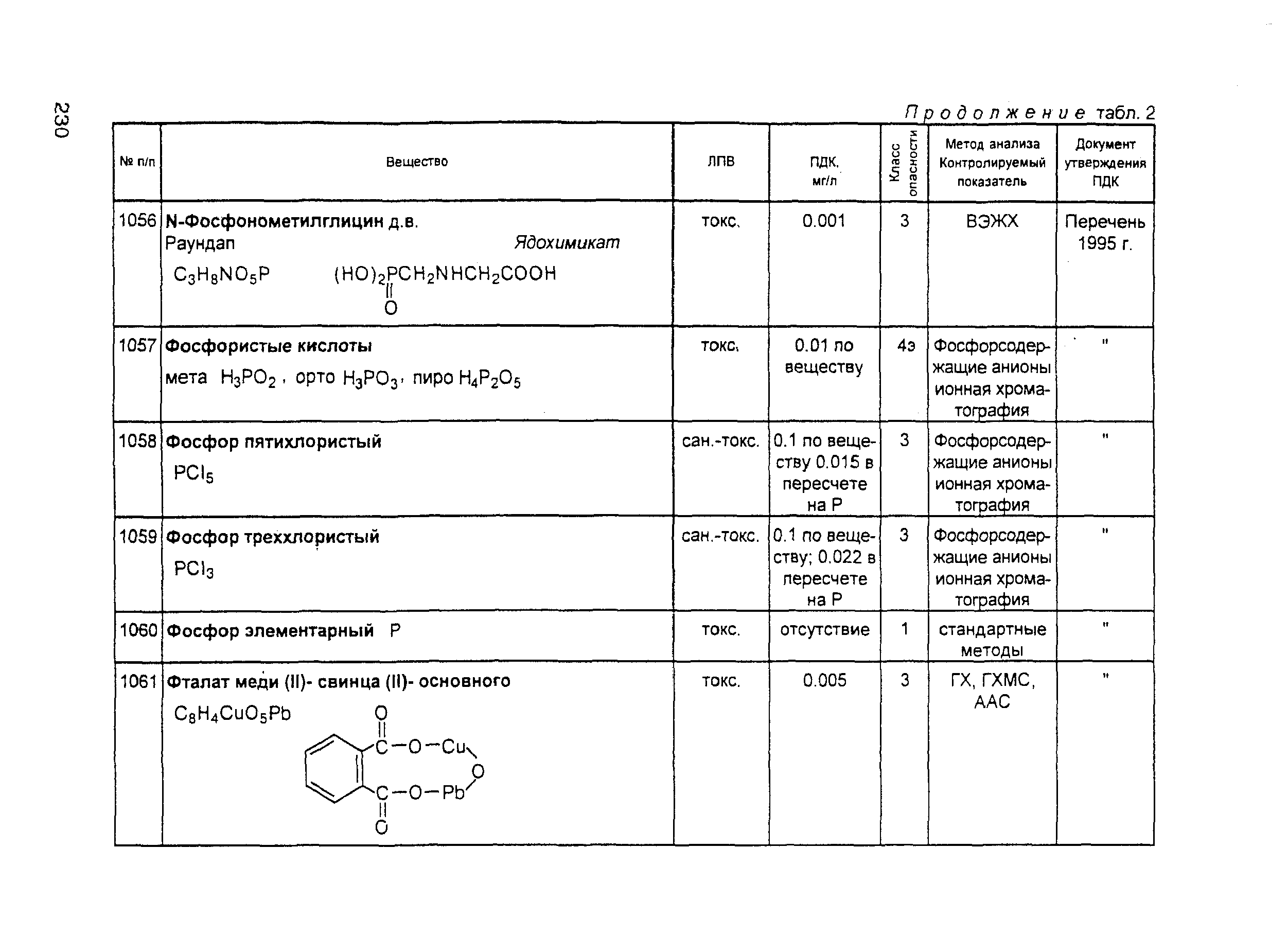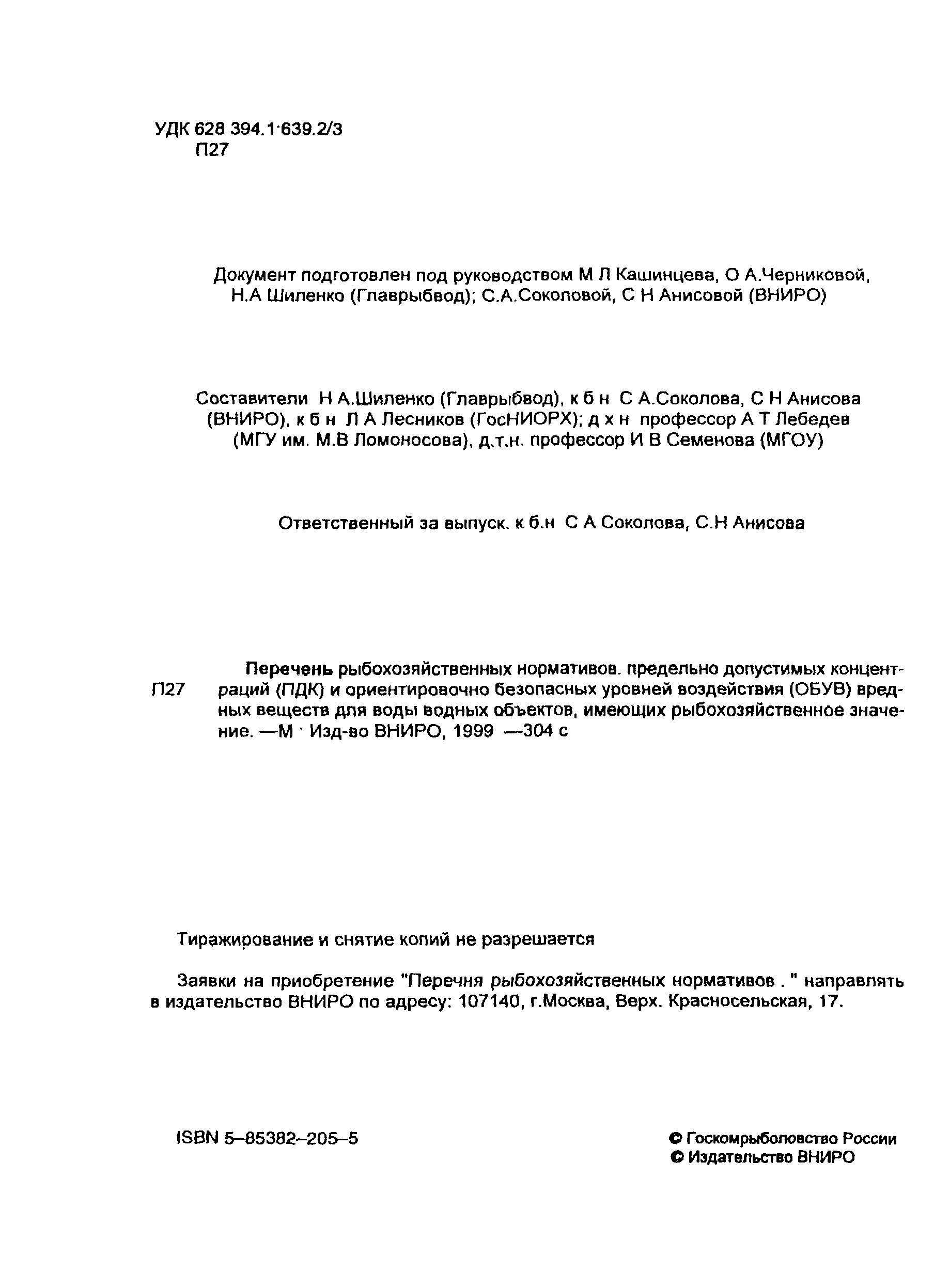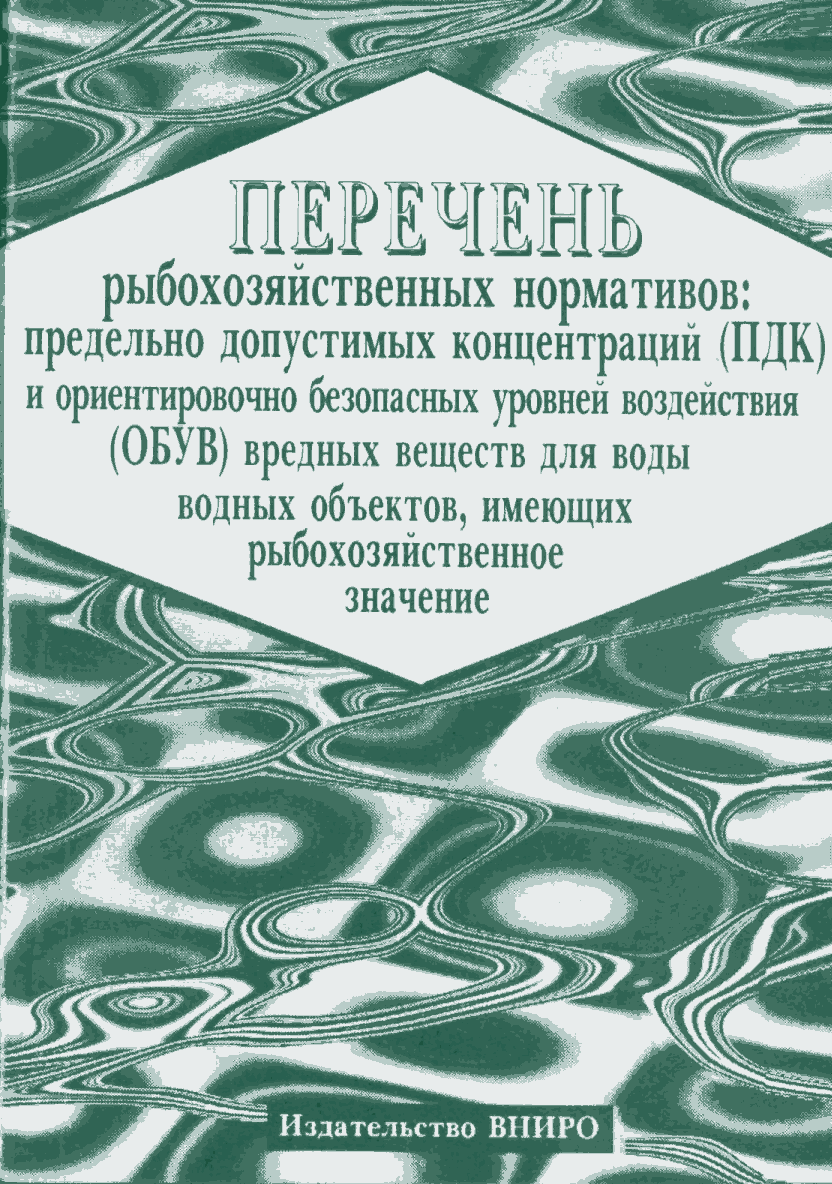 | Название рус.: | Перечень рыбохозяйственных нормативов: предельно допустимые концентрации (ПДК) и ориентировочно безопасные уровни воздействия (ОБУВ) вредных веществ для воды водных объектов, имеющих рыбохозяйственное значение |