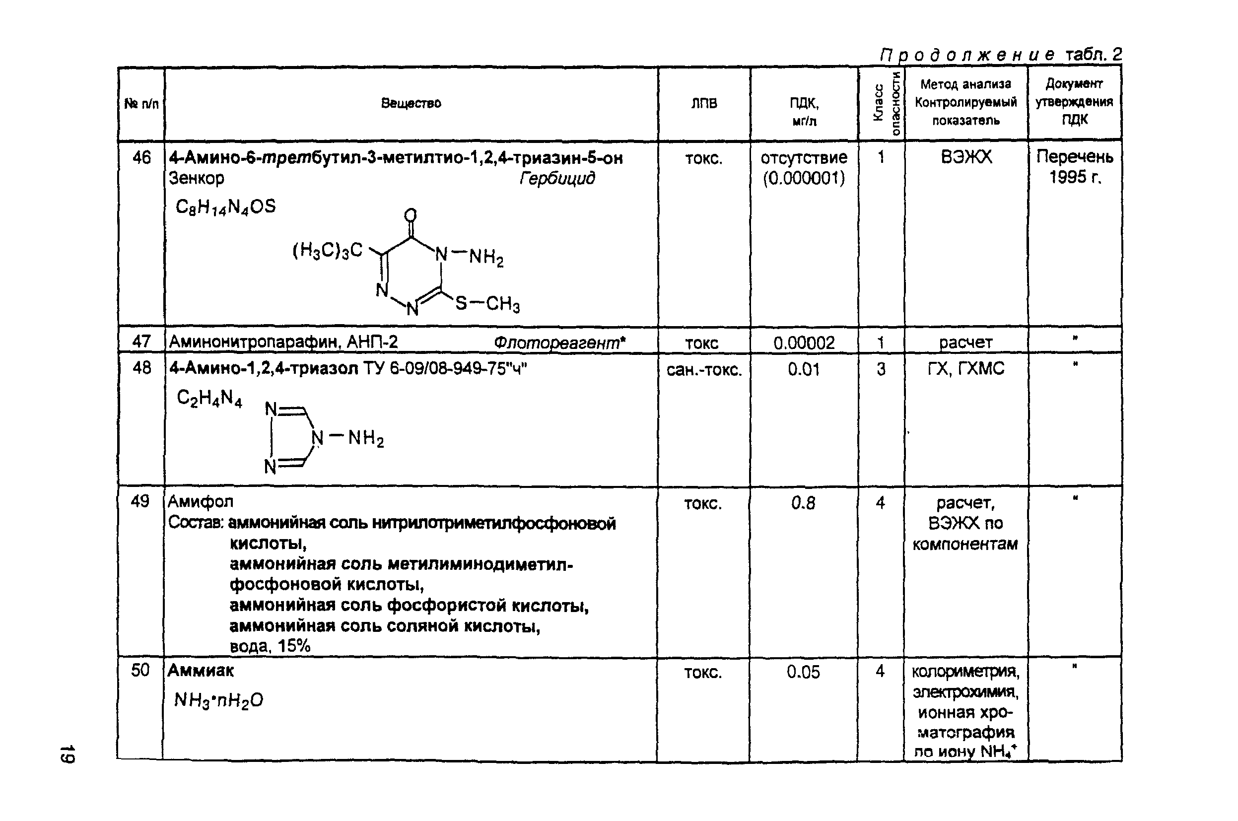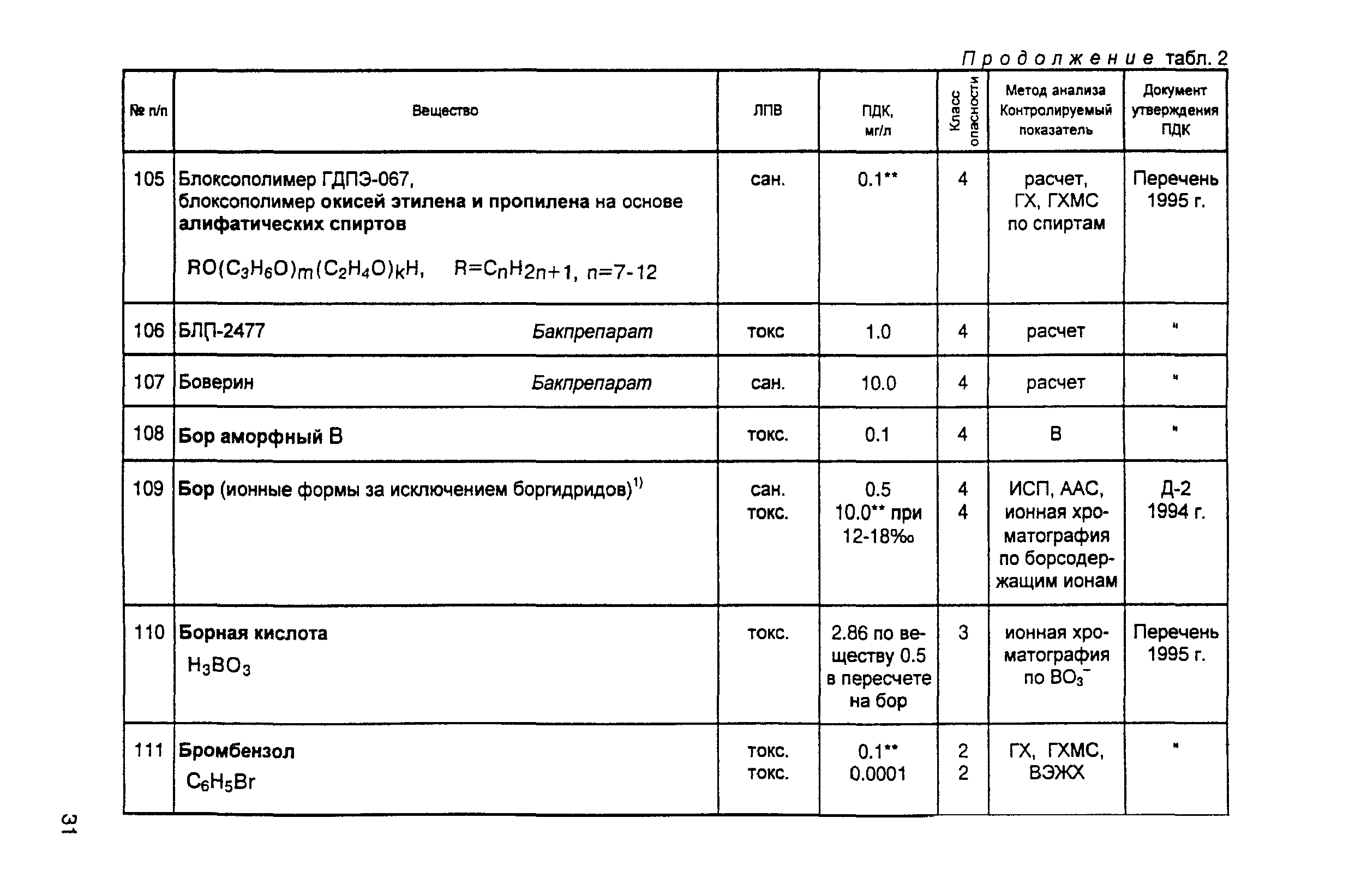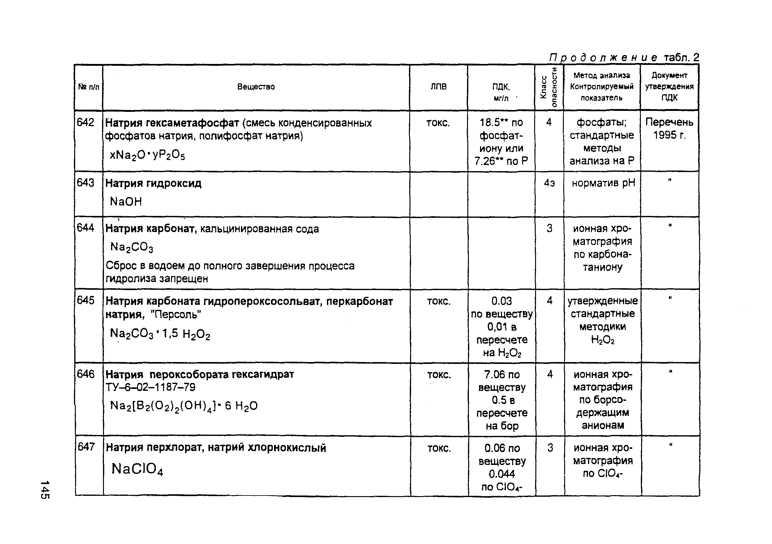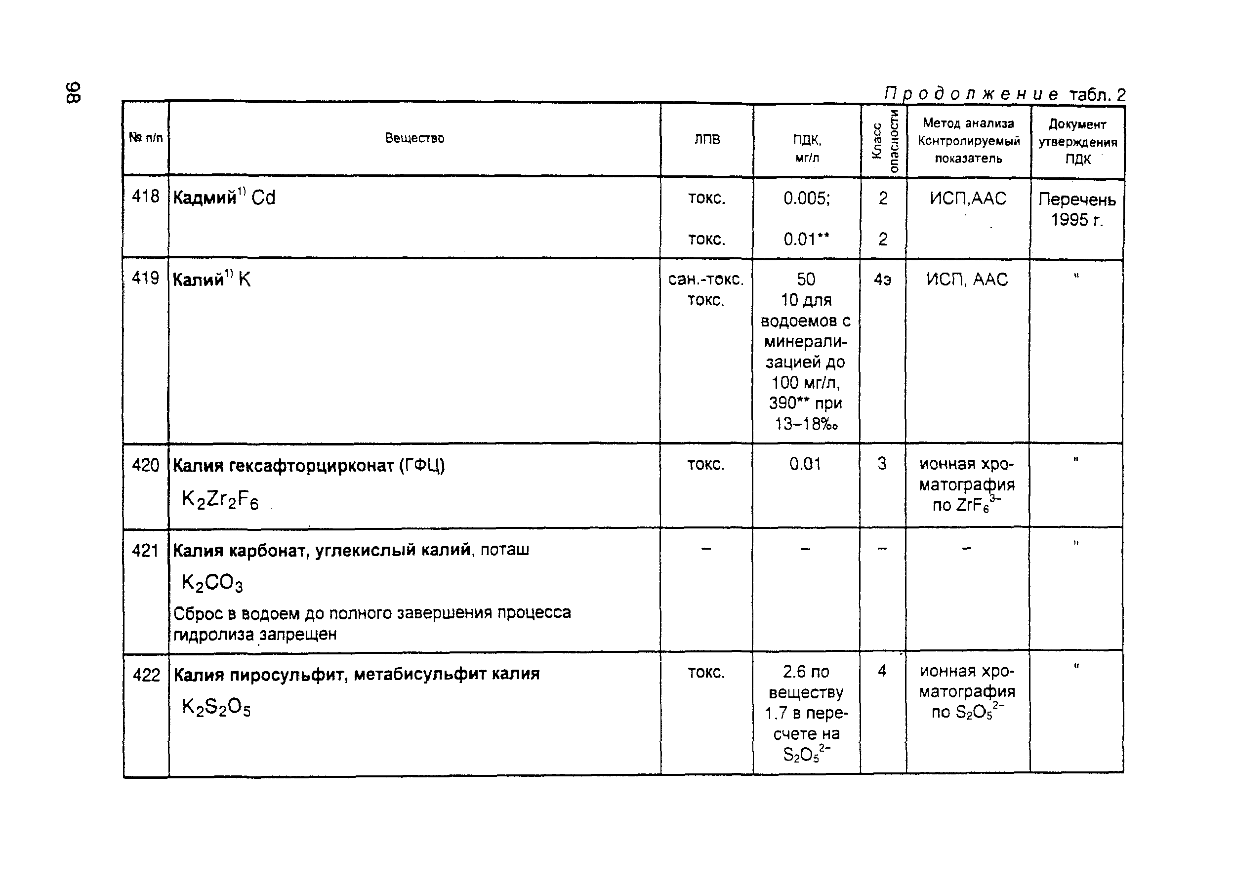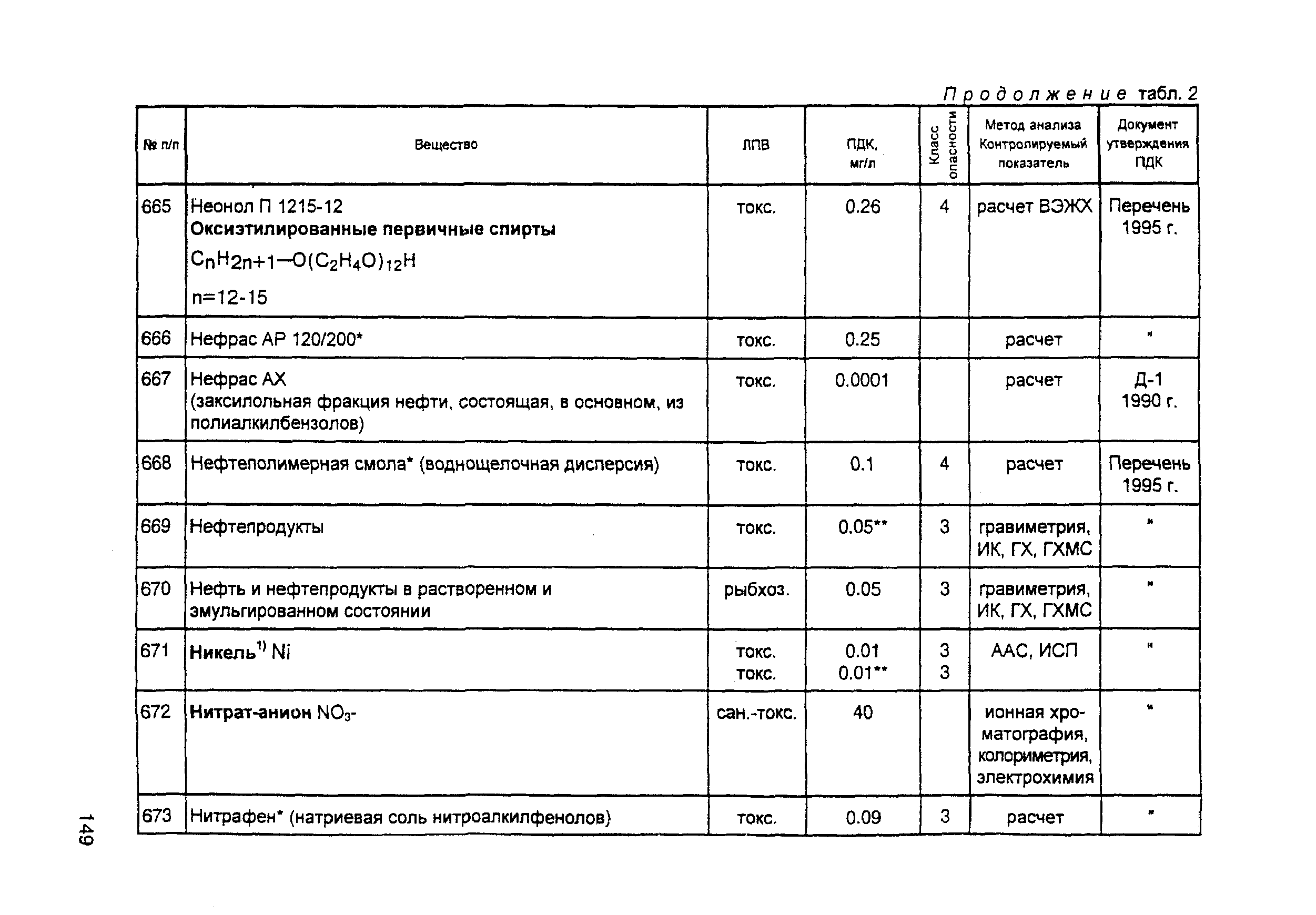| Оглавление: | Приказ Госкомрыбооловства от 28 апреля 1999 г. № 96 "О рыбохозяйственных нормативах" Общие требования к составу и свойствам воды водных объектов, используемых для рыбохозяйственных целей Перечень предельно допустимых концентраций и ориентировочно безопасных уровней воздействия вредных веществ для воды рыбохозяйственных водоемов Региональные ПДК Ориентировочно-безопасные уровни воздействия (ОБУВ) вредных веществ |