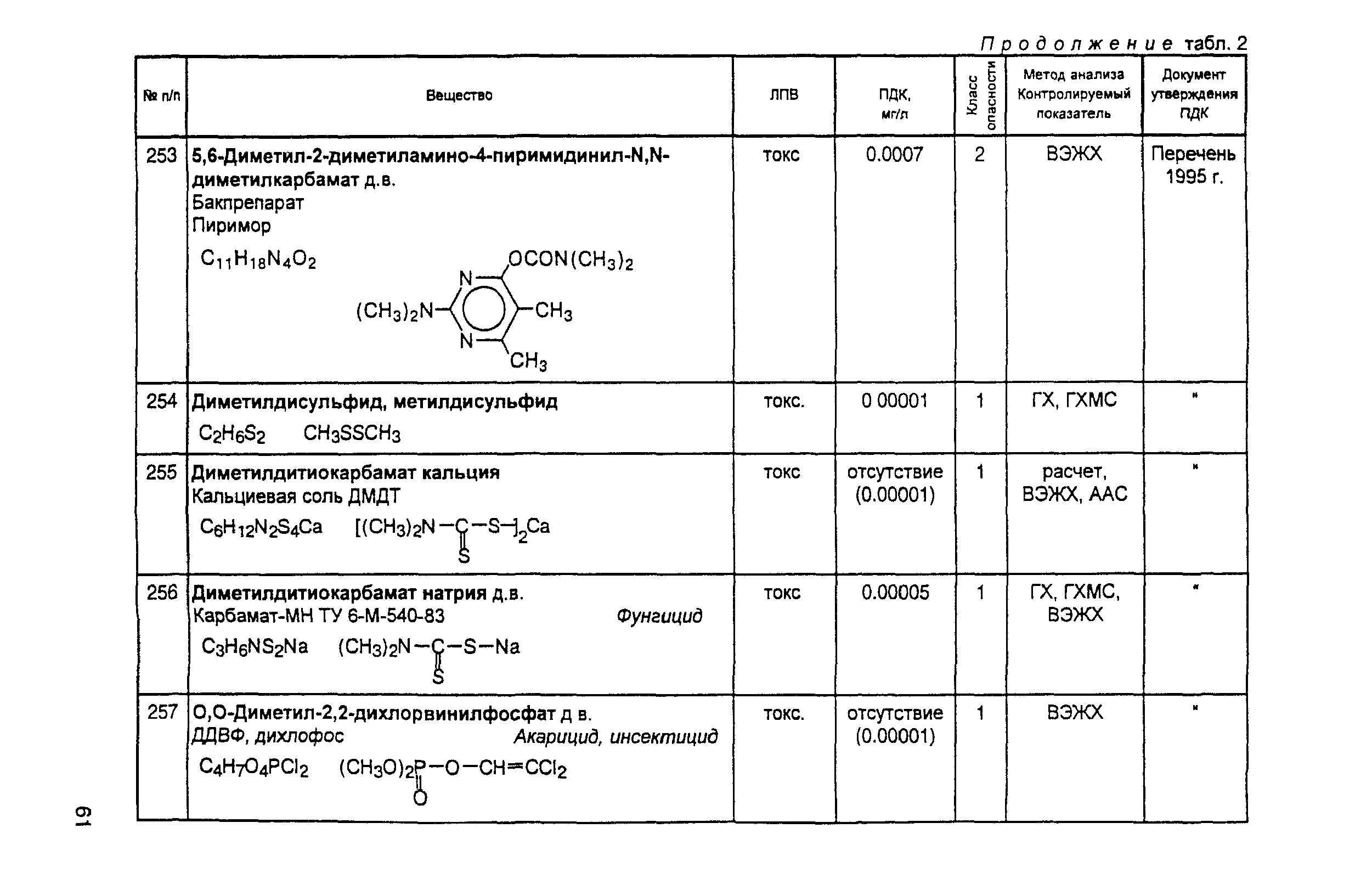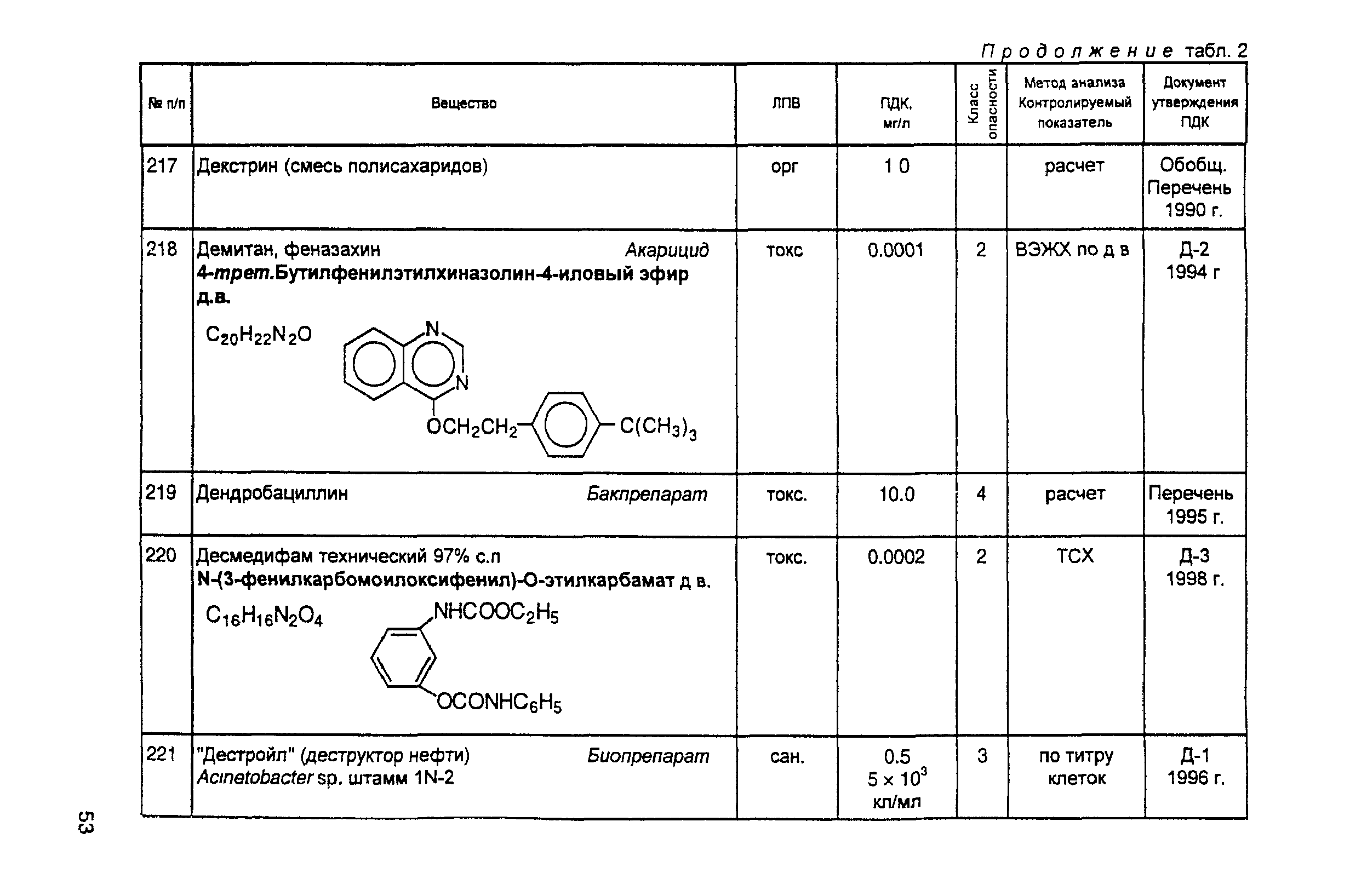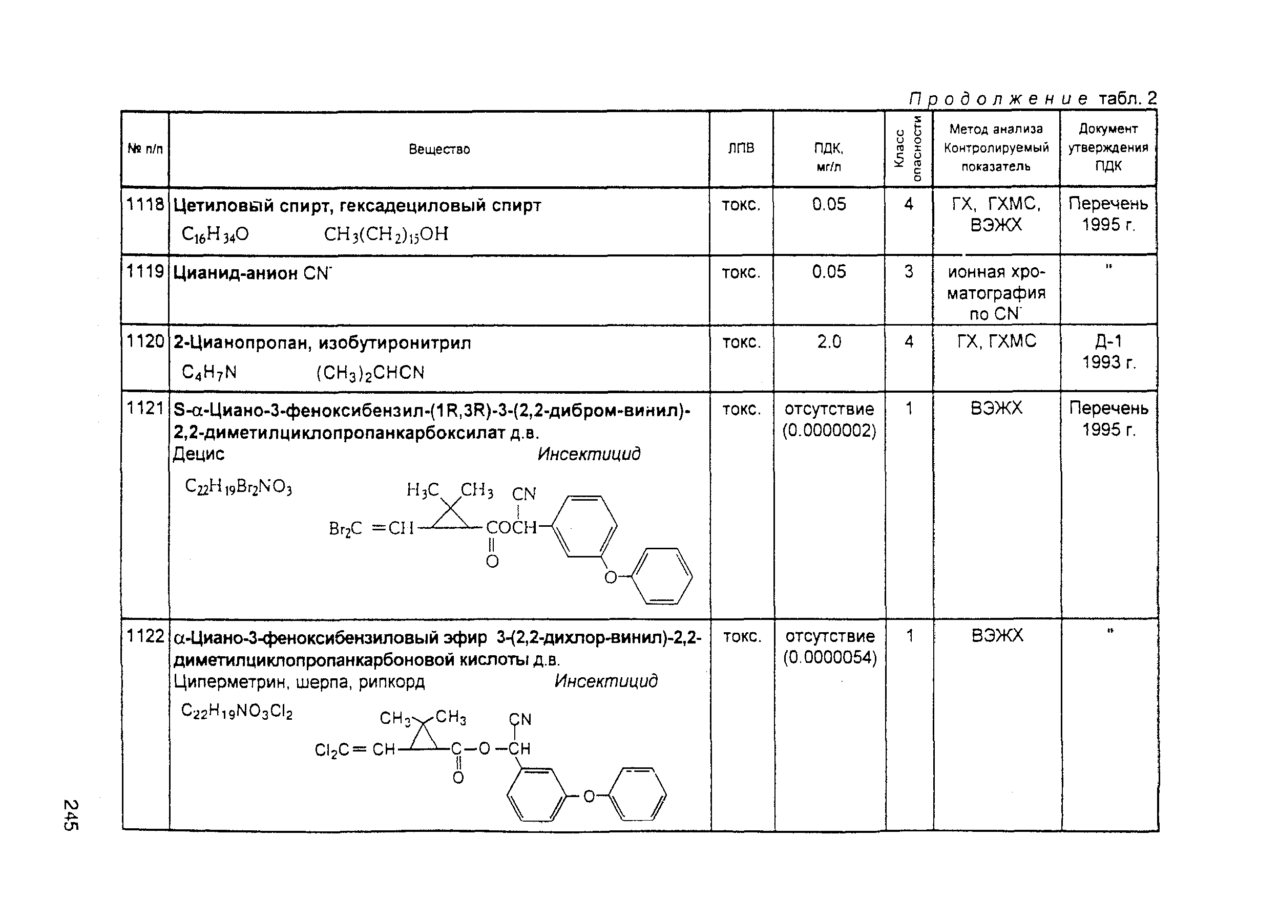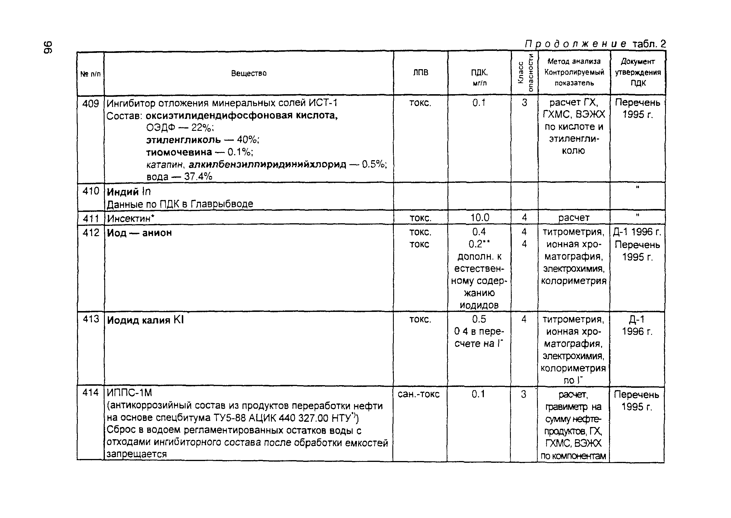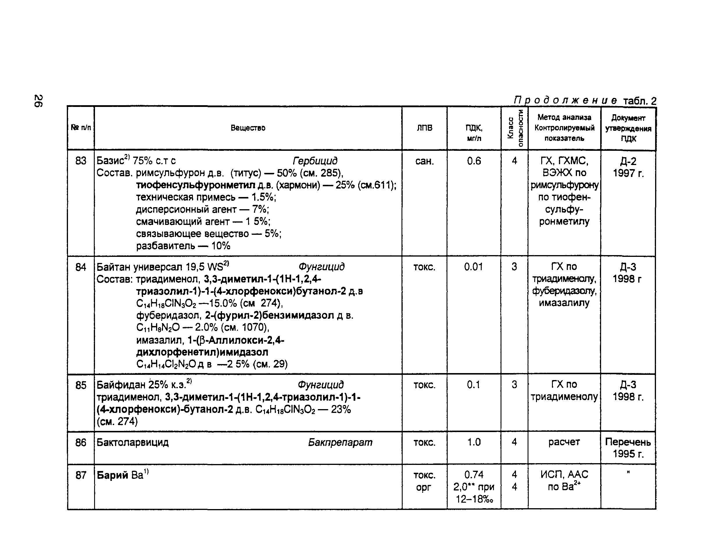 | Оглавление: | Приказ Госкомрыбооловства от 28 апреля 1999 г. № 96 "О рыбохозяйственных нормативах" Общие требования к составу и свойствам воды водных объектов, используемых для рыбохозяйственных целей Перечень предельно допустимых концентраций и ориентировочно безопасных уровней воздействия вредных веществ для воды рыбохозяйственных водоемов Региональные ПДК Ориентировочно-безопасные уровни воздействия (ОБУВ) вредных веществ |