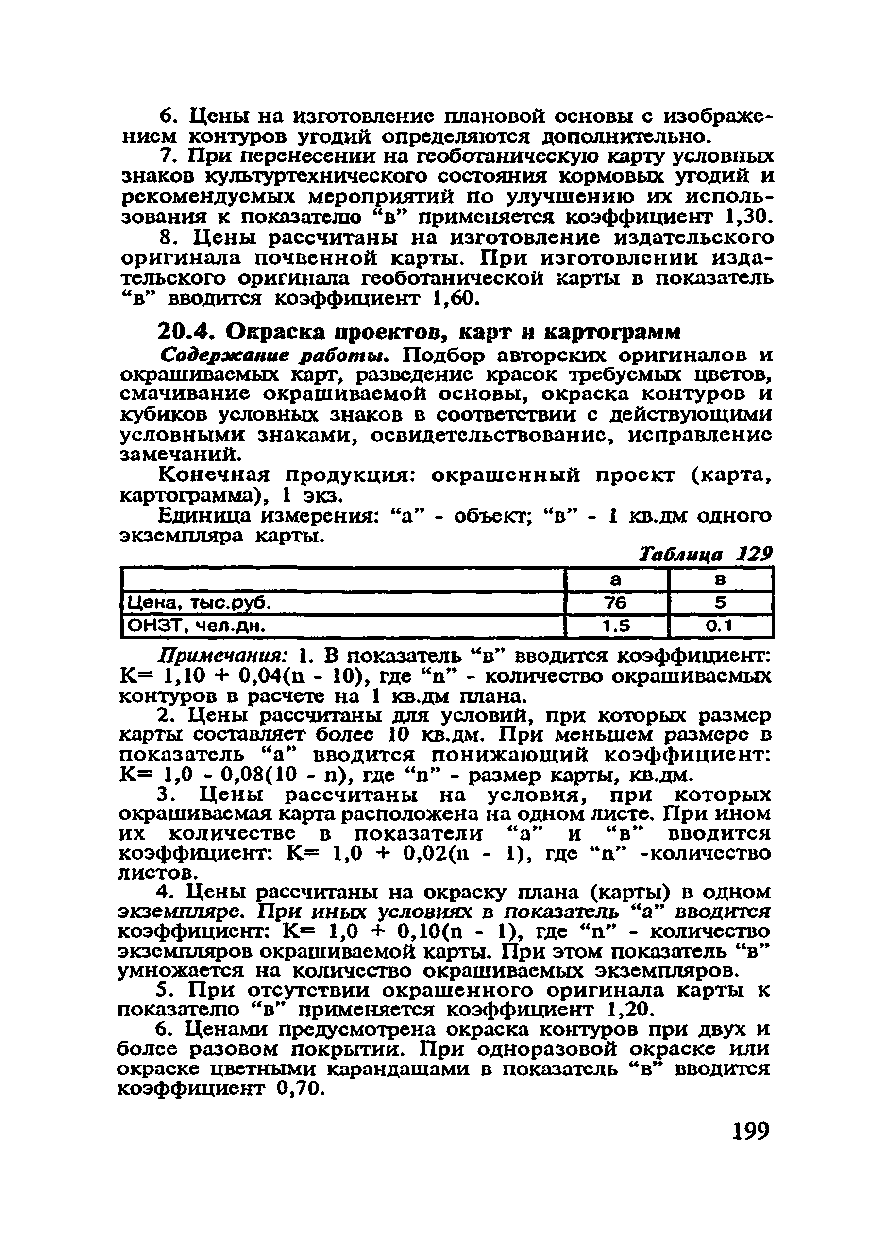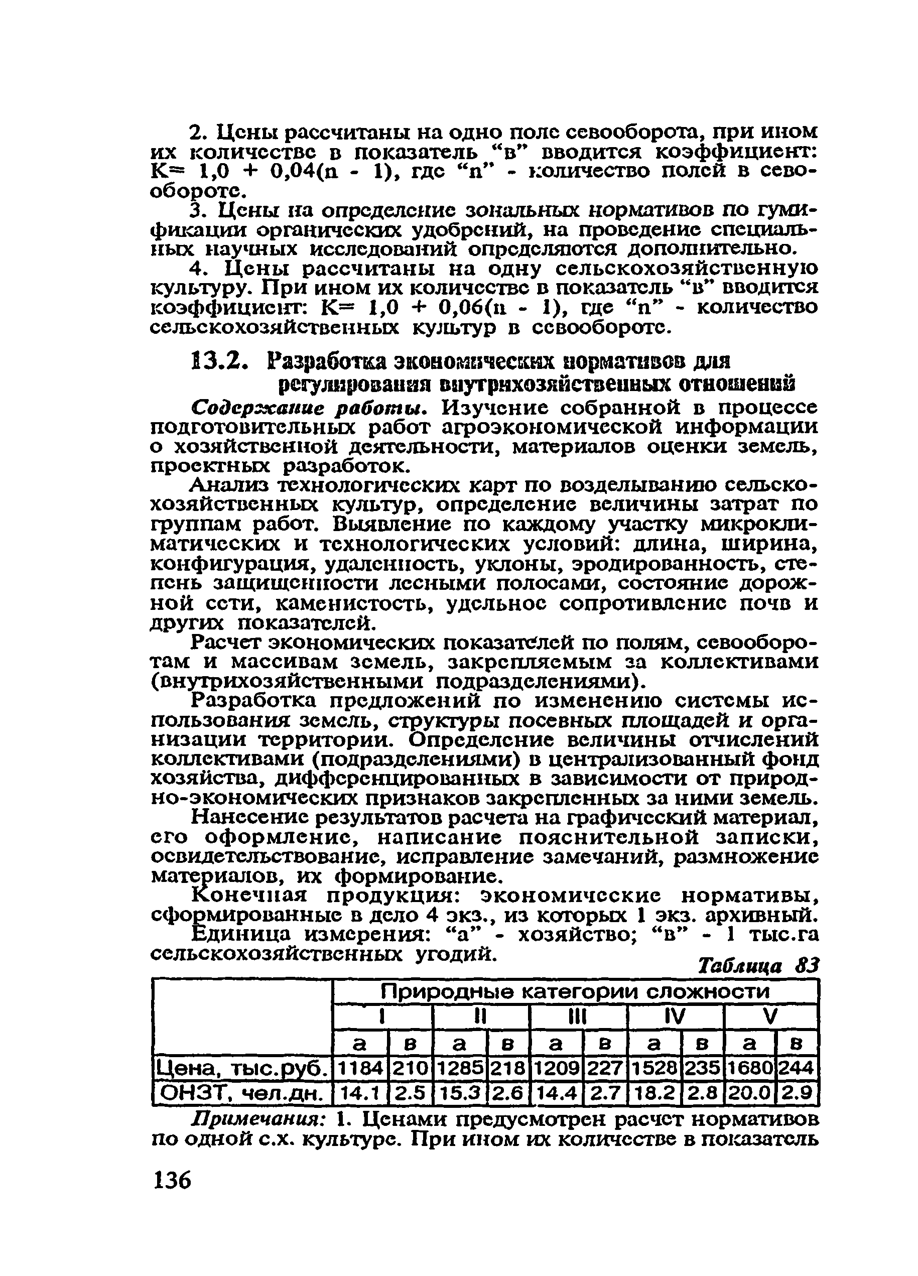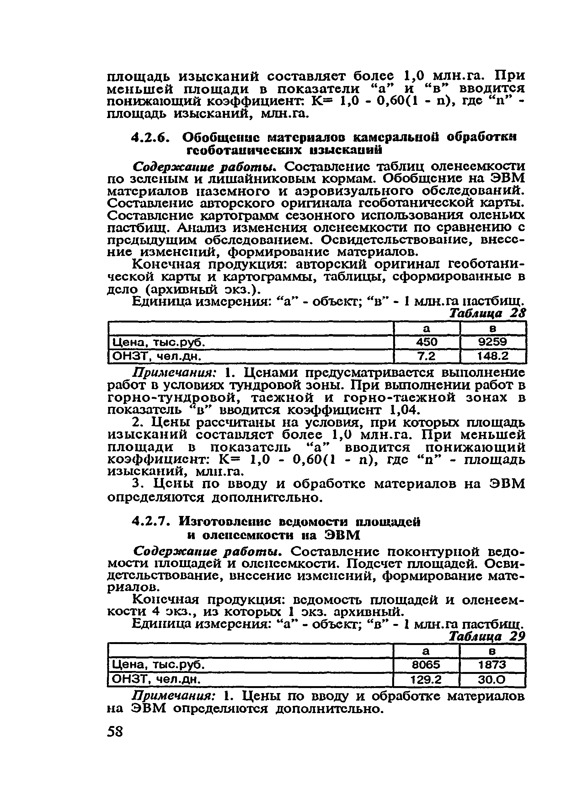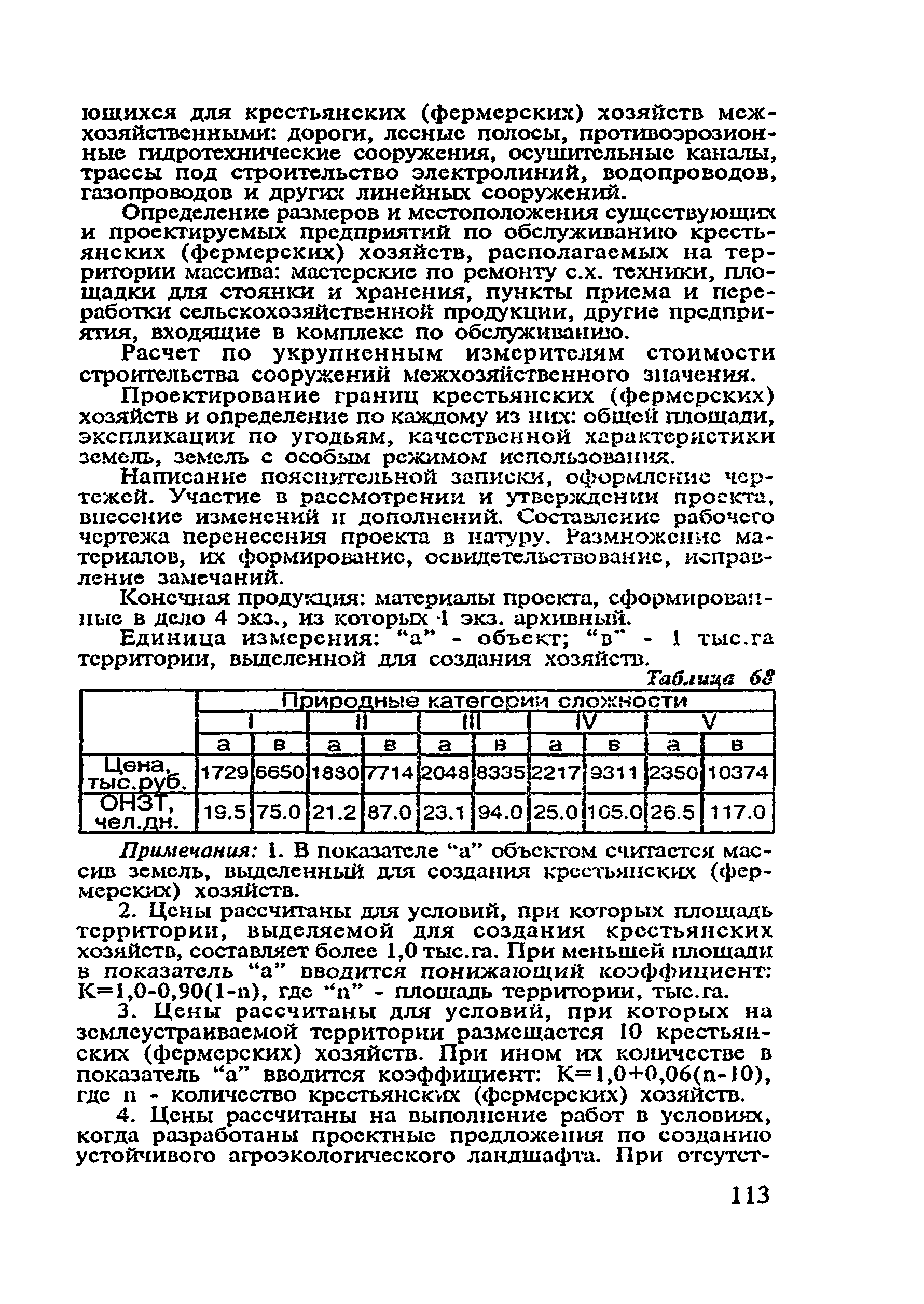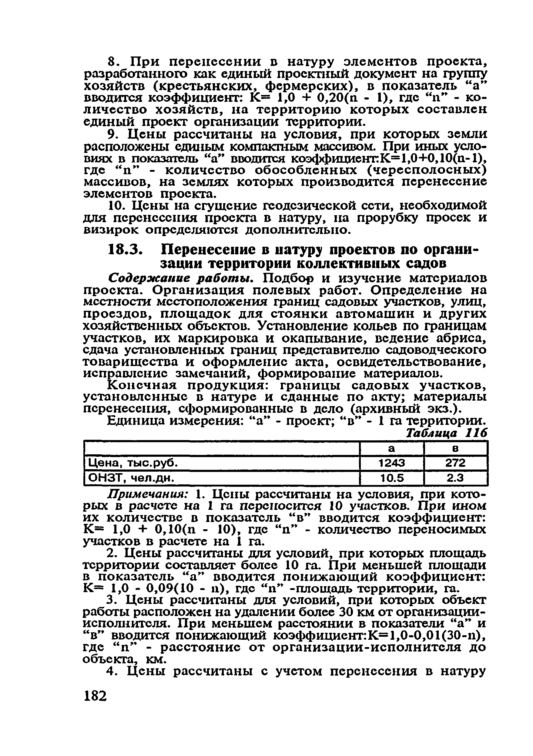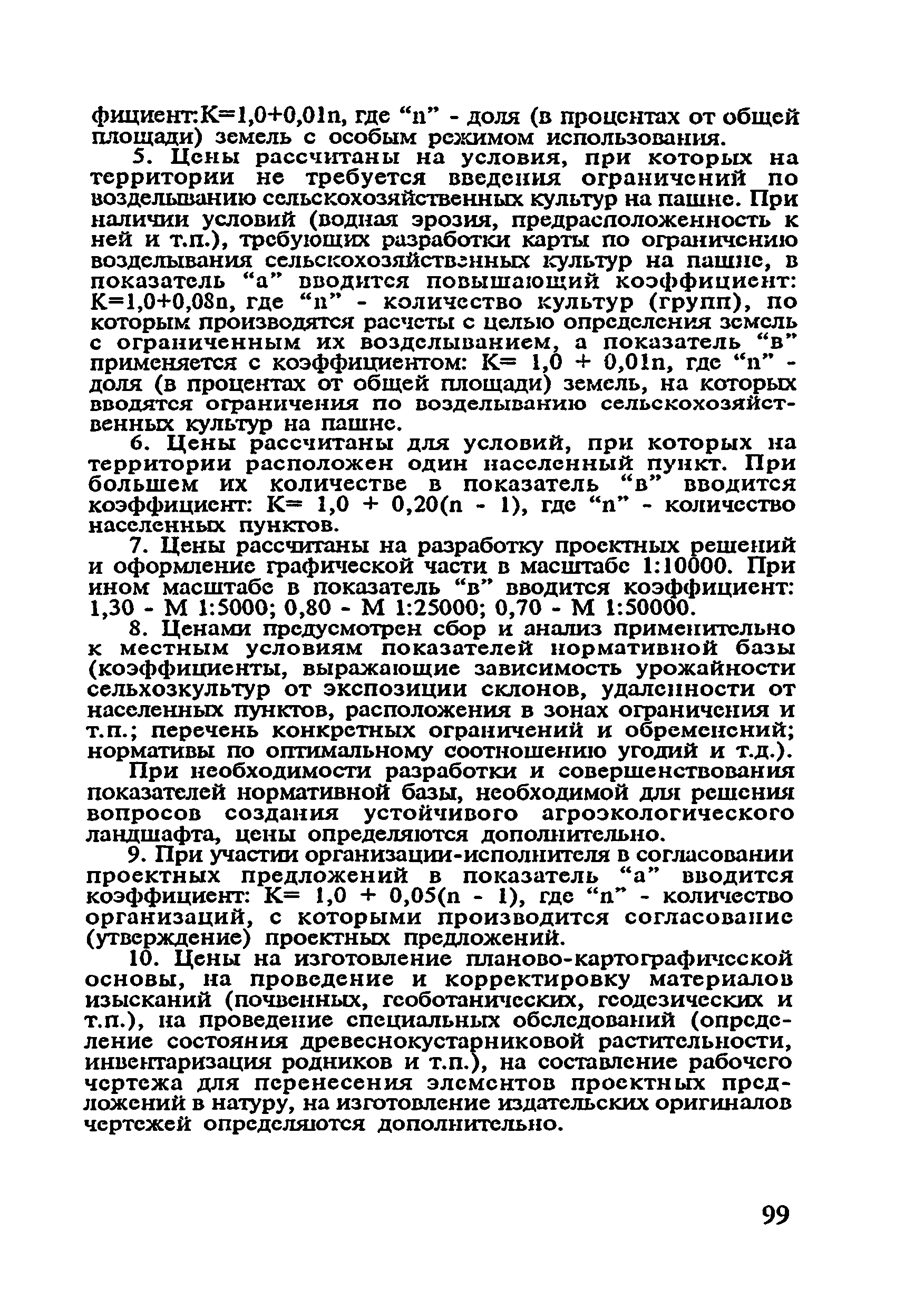 Сборник цен и общественно необходимых затрат труда (ОНЗТ) на изготовление проектной и изыскательской продукции землеустройства, земельного кадастра и мониторинга земель| Статус: | действует | | Название рус.: | Сборник цен и общественно необходимых затрат труда (ОНЗТ) на изготовление проектной и изыскательской продукции землеустройства, земельного кадастра и мониторинга земель | | Дата добавления в базу: | 01.09.2013 | | Дата актуализации: | 01.01.2021 | | Дата введения: | 01.01.1996 | | Область применения: | Сборник предназначен для установления нормативных затрат труда (ОНЗТ) и определения сметной стоимости работ при заключении договоров на изготовление проектной и изыскательской продукции землеустройства, земельного кадастра и мониторинга земель | | Оглавление: | Общие указания Часть I. Изыскания Глава 1. Топографо-геодезические изыскания Глава 2. Работы, сопутствующие геодезическим изысканиям Глава 3. Почвенно-мелиоративные изыскания Глава 4. Геоботанические и зоотехнические изыскания Часть II. Вычисление площадей, изготовление материалов для графического учета земель Глава 5. Вычисление площадей, изготовление материалов для графического учета земель Глава 6. Составление тематических карт и очерков по району, области (краю, республике) Часть III. Проектные работы по охране и использованию земель Глава 7. Схемы (прогнозы) по охране земельных ресурсов и окружающей среды Глава 8. Схемы по использованию земельных ресурсов Глава 9. Земельно-оценочные работы Часть IV. Межхозяйственное землеустройство Глава 10. Проектные работы по созданию новых хозяйств и перераспределению земель Глава 11. Землеустроительные работы по оформлению документов на право пользования землей Часть V. Проектные работы по организации территории хозяйств и разработке мероприятий по улучшению использования земель Глава 12. Разработка проектов по организации территории хозяйств Глава 13. Разработка мероприятий по улучшению земель и хозяйственной деятельности Глава 14. Землеустройство оленеводческих хозяйств и охотничьих угодий Часть VI. Разработка рабочих проектов Глава 15. Разработка рабочих проектов по защите почв от эрозии Глава 16. Разработка рабочих проектов по мелиорации земель Глава 17. Разработка рабочих проектов по строительству объектов хозяйственного назначения Часть VII. Землеустроительные работы по осуществлению проектных разработок Глава 18. Перенесение проектов землеустройства в натуру Глава 19. Контроль за освоением проектов и использованием земель Часть VIII. Чертежные работы, размножение и оформление материалов, разные работы Глава 20. Чертежные работы Глава 21. Картографические и множительные работы Глава 22. Оформительские работы Глава 23. Разные работы Часть IX. Аэрофотогеодезические работы Глава 24. Создание сельскохозяйственных планов и карт Глава 25. Создание топографических планов сельскохозяйственного назначения Глава 26. Создание планов сельских населенных пунктов Глава 27. Работы, сопутствующие аэрофотогеодезическим изысканиям Часть X. Отдельные виды проектной и изыскательской продукции, прочие работы Глава 28. Лабораторные анализы растительных образцов, другие виды проектно-изыскательских работ Глава 29. Разработка норм времени, затрат труда (ОНЗТ) и цен на изготовление проектной и изыскательской продукции Приложения | | Разработан: | Научно-методическ